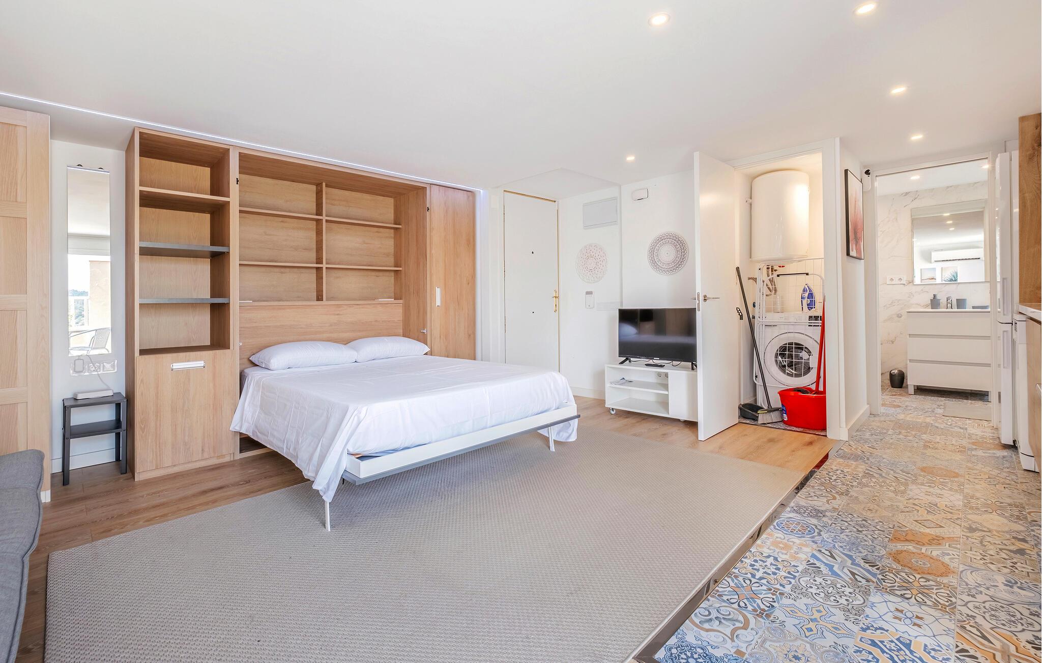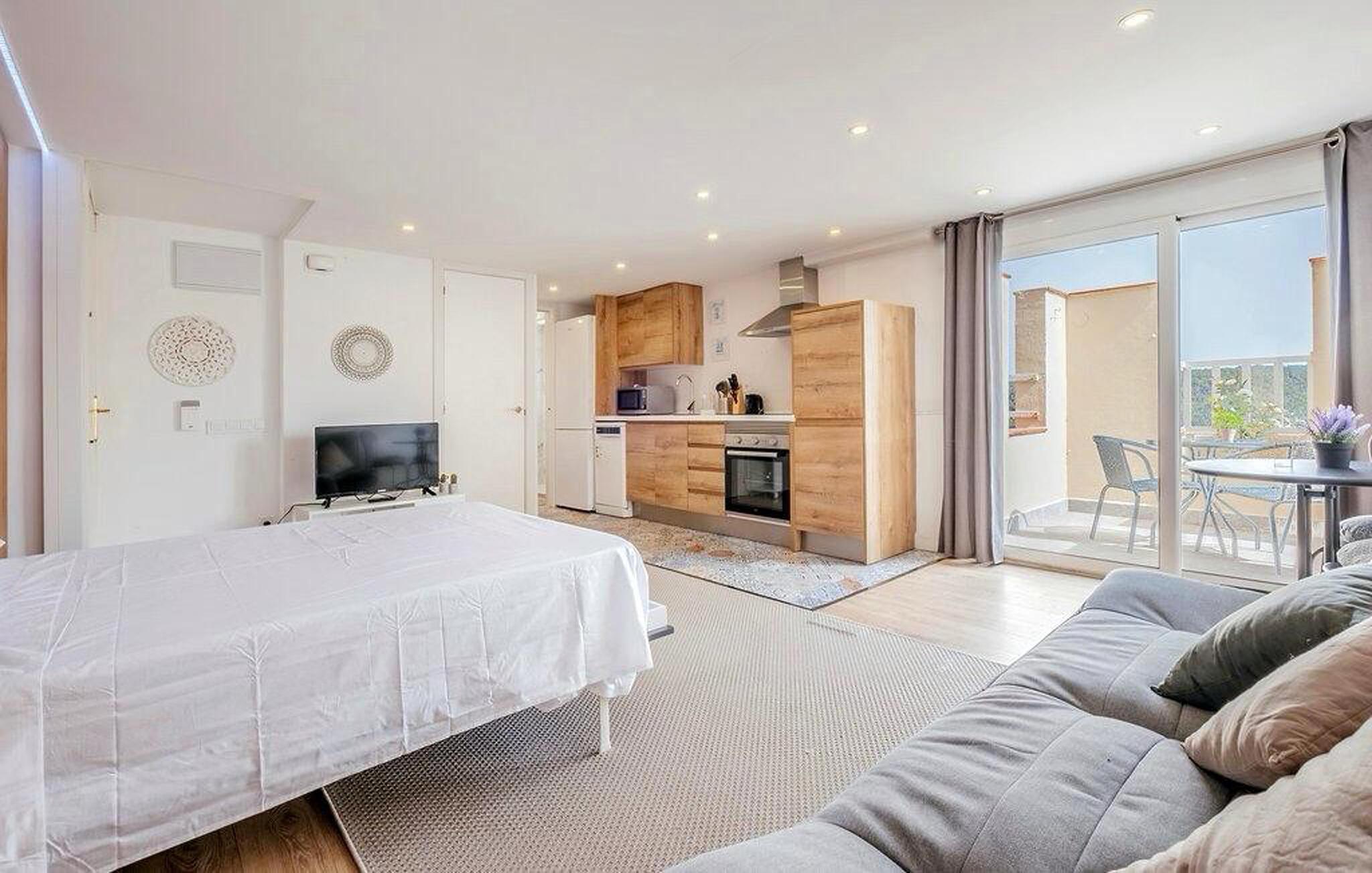 Velkommen til denne stilfulde etværelseslejlighed i Sitges - den perfekte oase til par eller små familier. Det moderne og attraktive bolig giver jer alt, hvad I skal bruge til et behageligt ophold. Det lyse opholdsrum har en afslappet atmosfære, mens altanen lægger op til udendørs morgenmad eller en hyggelig aften ved solnedgang. Udforsk den fælles pool, som giver jer mulighed for at køle ned og perfekt komplementerer den gode stemning i den charmerende lejlighed.