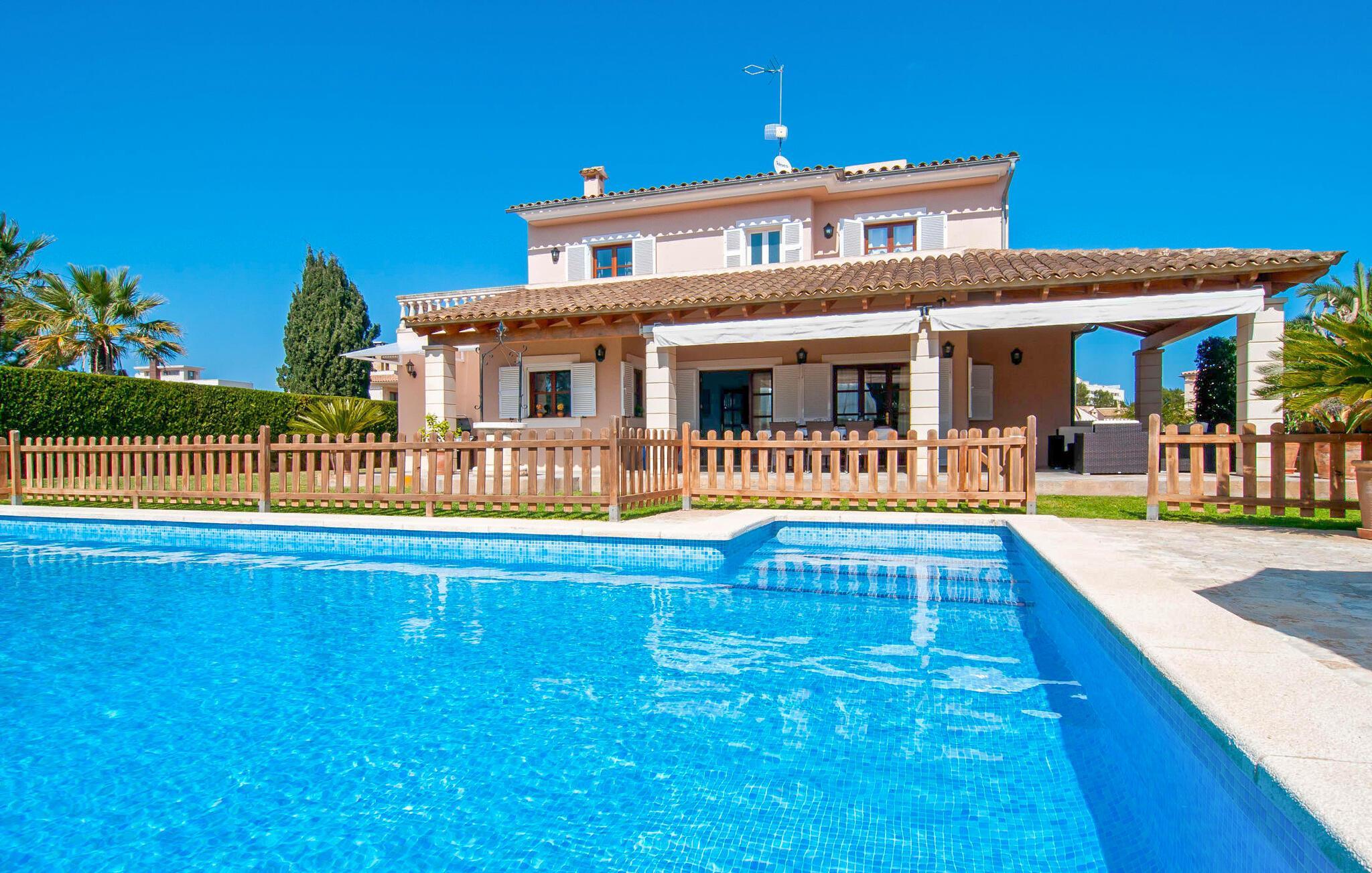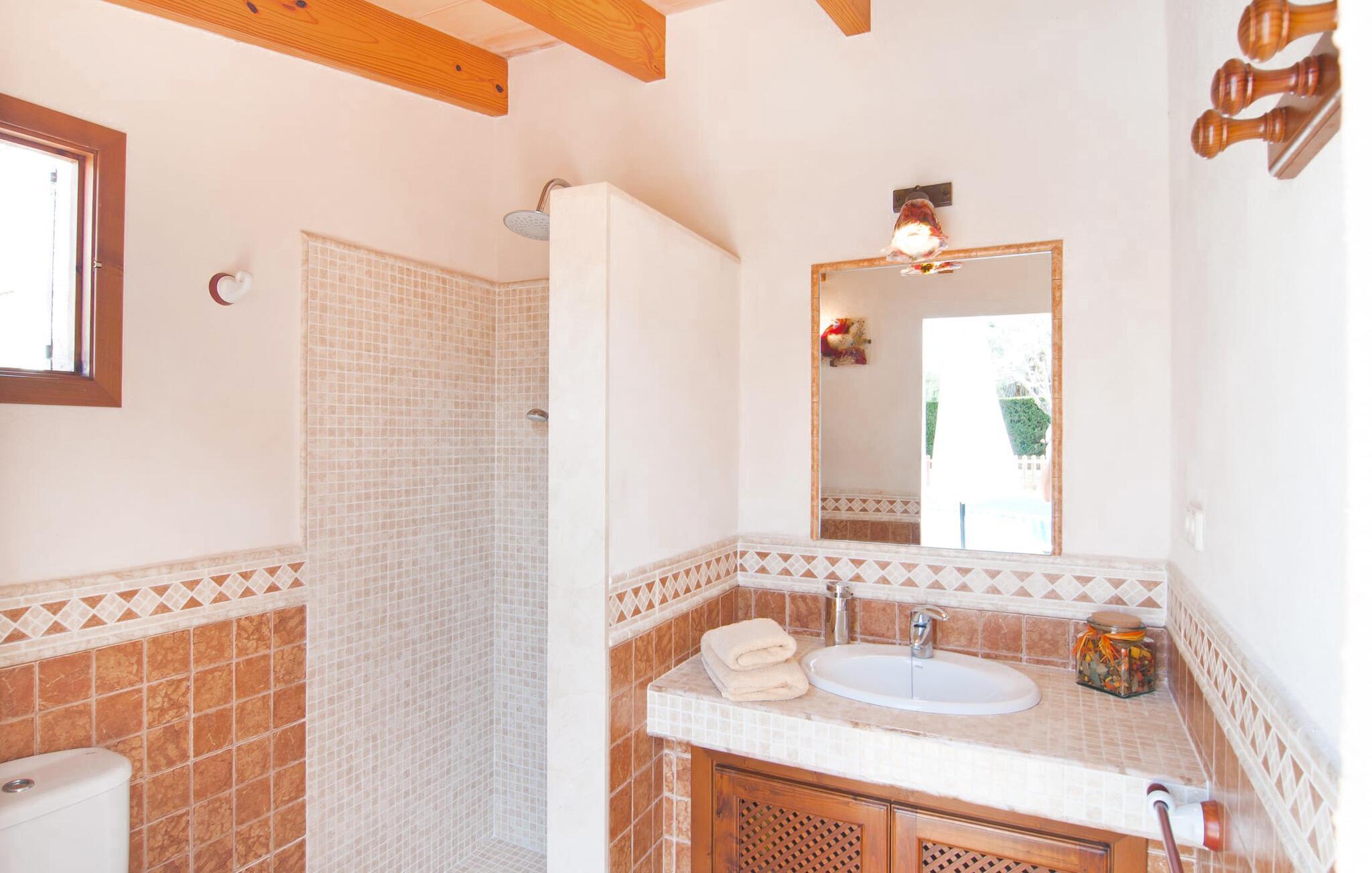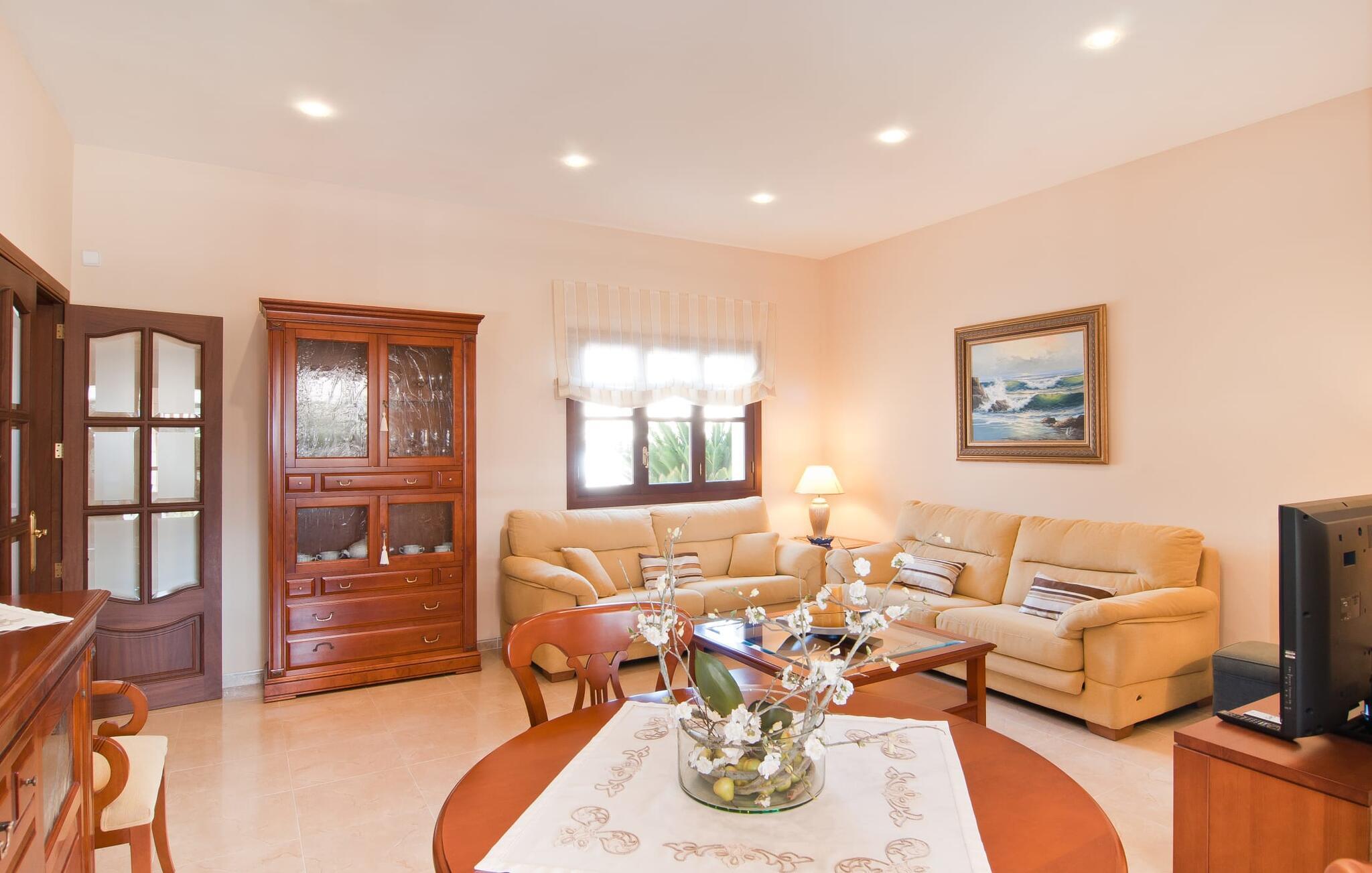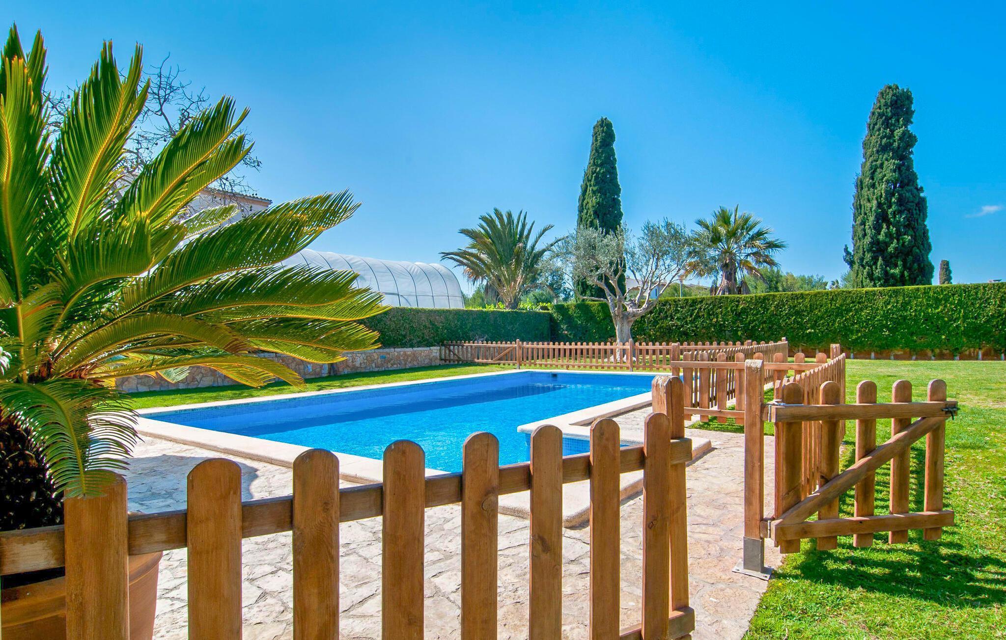 Villa "Sofia" er et charmerende, familievenligt tilflugtssted. Ved ankomsten bliver I mødt af to store bukser, mens en stille vej fører næsten direkte til huset til aflæsning og parkering. Dette er et Fincallorca feriehus. Den store græsplæne omkranser villaen og giver et skønt legeområde, mens et plankeværk sikrer poolen og sikrer tryghed. Nyd udendørslivet på den store skyggefulde veranda med en moderne elektrisk grill. Inde i villaen er der et lyst, moderne køkken med et langt spisebord, ideelt til sammenkomster. Den hyggelige stue byder på en rustik charme, mens tre elegant indrettede soveværelser deler badeværelse. Et ekstra soveværelse og badeværelse er placeret i stueetagen, hvilket gør det til et alsidigt rum for familier. Den smukke “Sofia” ligger nær strand og indkøbsmuligheder, midt i en rolig bebyggelse i Sa Coma. Beliggende på østkysten - mellem det sofistikerede Cala Millor og det maleriske Porto Cristo med dens havn og interessante kalkstensgrotter. To strande, Reserva Africa Safari Park og vidunderlige vandremuligheder på Punta de n'Amer-halvøen er i umiddelbar nærhed, og den nærmeste købmand er heller ikke langt væk. Elektricitet er inkluderet i prisen, hvis den anvendes hensigtsmæssigt. Gebyret afregnes herefter kontant på stedet. Bemærk venligst, at denne ejendom ikke accepterer ungdomsgrupper eller polterabender. En ungdomsgruppe på denne ejendom består af personer på 25 år eller derunder. Book ikke denne ejendom, hvis du er en ungdomsgruppe eller polterabend, da din reservation vil blive afvist, når den er booket, hvilket også kan være tilfældet ved ankomst til ejendommen eller under dit ophold, og du vil ikke modtage en refusion