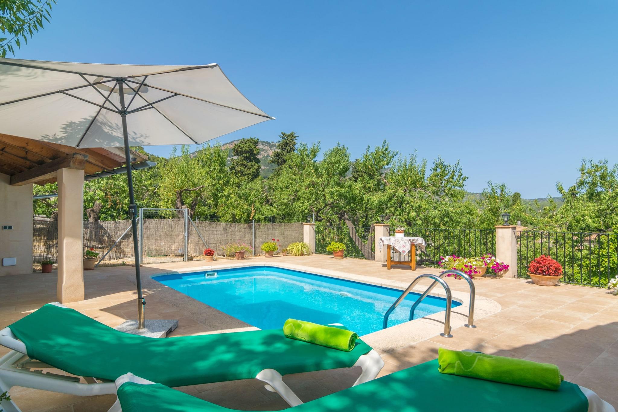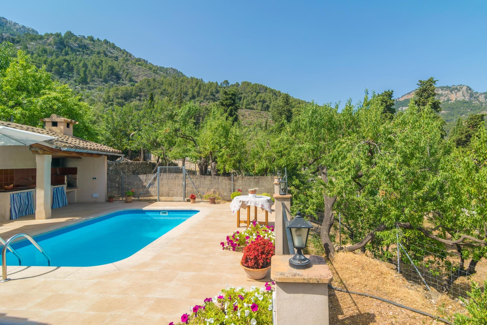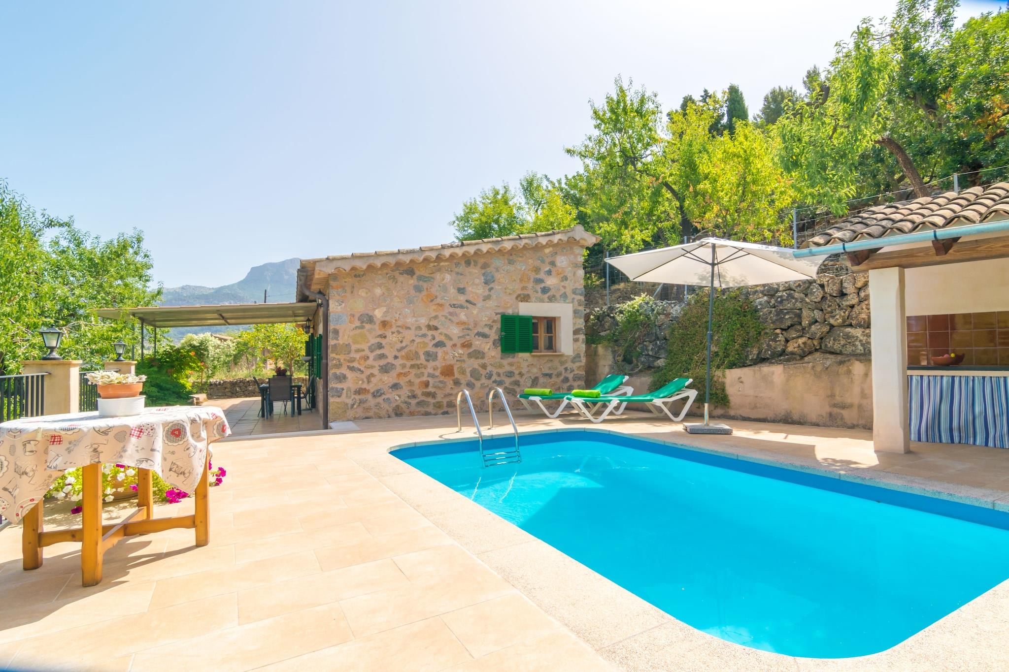 Het privé chloorzwembad heeft een afmeting van 5m x 4m en een diepte die varieert van 1,15m tot 1,5m en daar kun je midden in de bergen zwemmen. Na een verfrissende duik nodigen twee ligstoelen uit om te zonnebaden. Ernaast bevindt zich een kleine buitenkeuken met vaste barbecue, waar u heerlijke diners kunt bereiden. Het terras is een prachtige plek om buiten te eten met een idyllisch uitzicht op de steden Fornalutx en Biniaraix. Het perceel is omheind en er zijn buren verspreid over het gebied. Binnen wacht u een comfortabele woon-eetkamer-keuken met airconditioning en satelliettelevisie. De keuken is volledig uitgerust en beschikt over elektrische kookplaten. In de wasruimte, gelegen op het terras, vindt u een wasmachine, een strijkijzer en een strijkplank. De slaapkamer heeft twee eenpersoonsbedden, een ventilator, een kledingkast en een elektrische radiator voor de koudere maanden. Een badkamer met douche bedient het huis. Een paar minuten lopen brengt u naar het pittoreske stadje Sóller, dat door UNESCO tot werelderfgoed is verklaard. Het meest emblematische gebouw is de kerk van Sant Bartomeu, waarvan het begin teruggaat tot het jaar 1236. In Sóller zijn zeer goede restaurants, supermarkten en cafés, kortom alles wat u nodig heeft voor een zelfstandig verblijf. Met de tram of bus kunt u naar Puerto de Sóller en zijn prachtige zandstrand, winkels en bars. Er zijn veel mooie routes en excursies in de omgeving, maar de bekendste is een ritje met de oude trein naar Palma, langs prachtige landschappen en authentieke stadjes totdat je de hoofdstad van Mallorca bereikt. De baaien van de Tramuntana zijn grotendeels rotsachtig, waaronder Llucalcari, Cala Dei en Port des Canonge. Panoramische en zeer romantische routes leiden u door de bergen, ideaal voor ritten met de auto of de fiets. Een auto is noodzakelijk. Voor eventuele extra kosten kunt u contact opnemen met de adverteerder. Wij accepteren geen huisdieren. Het vieren van evenementen is niet toegestaan. Afstanden Strand: 7,2 km - Port de Soller Luchthaven: 39 km - Aeroport Son Sant Joan Golfbaan: 25 km - Son Termes Stad: 3 km - Soller Treinstation: 3 km - Soller Bushalte: 3 km - Ctra. de Desviament, Soller Veerboot: 36 km - Port de Palma Ziekenhuis: 30 km - Son Epases Toeristenvergunning: ETV/4811 Bij de ingang moet u de Ecotasa (toeristenbelasting van de Balearen) contant betalen. Het bedrag varieert tussen EURO 0,55 / per nacht per persoon in het laagseizoen en EURO 2,2 / per nacht per persoon in het hoogseizoen. Vanaf de negende dag wordt het met de helft verminderd. Personen onder de 16 jaar uitgesloten.