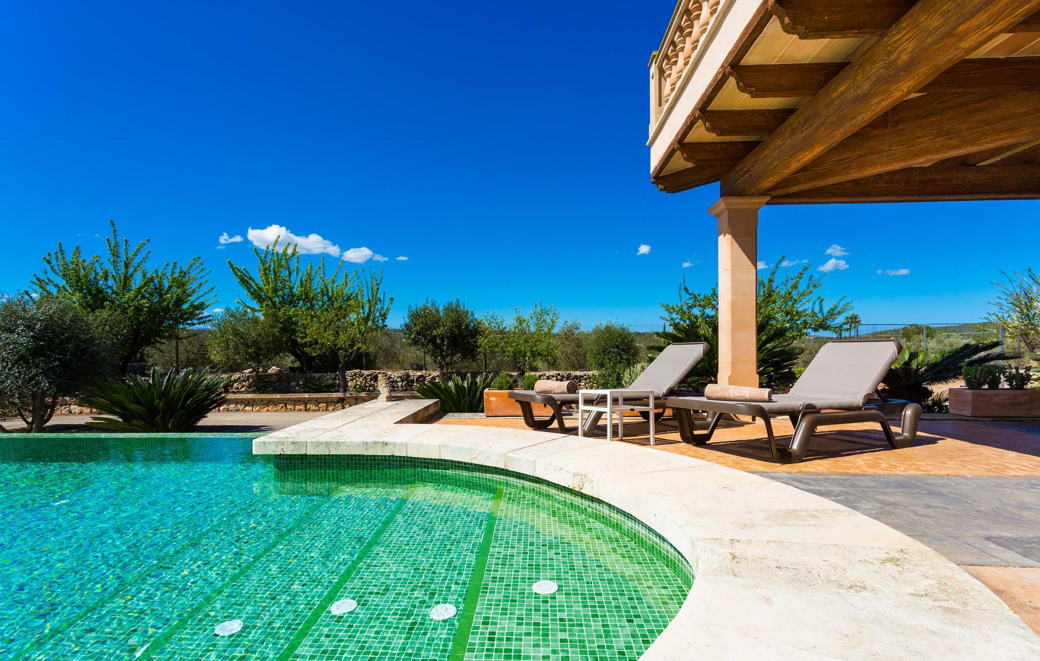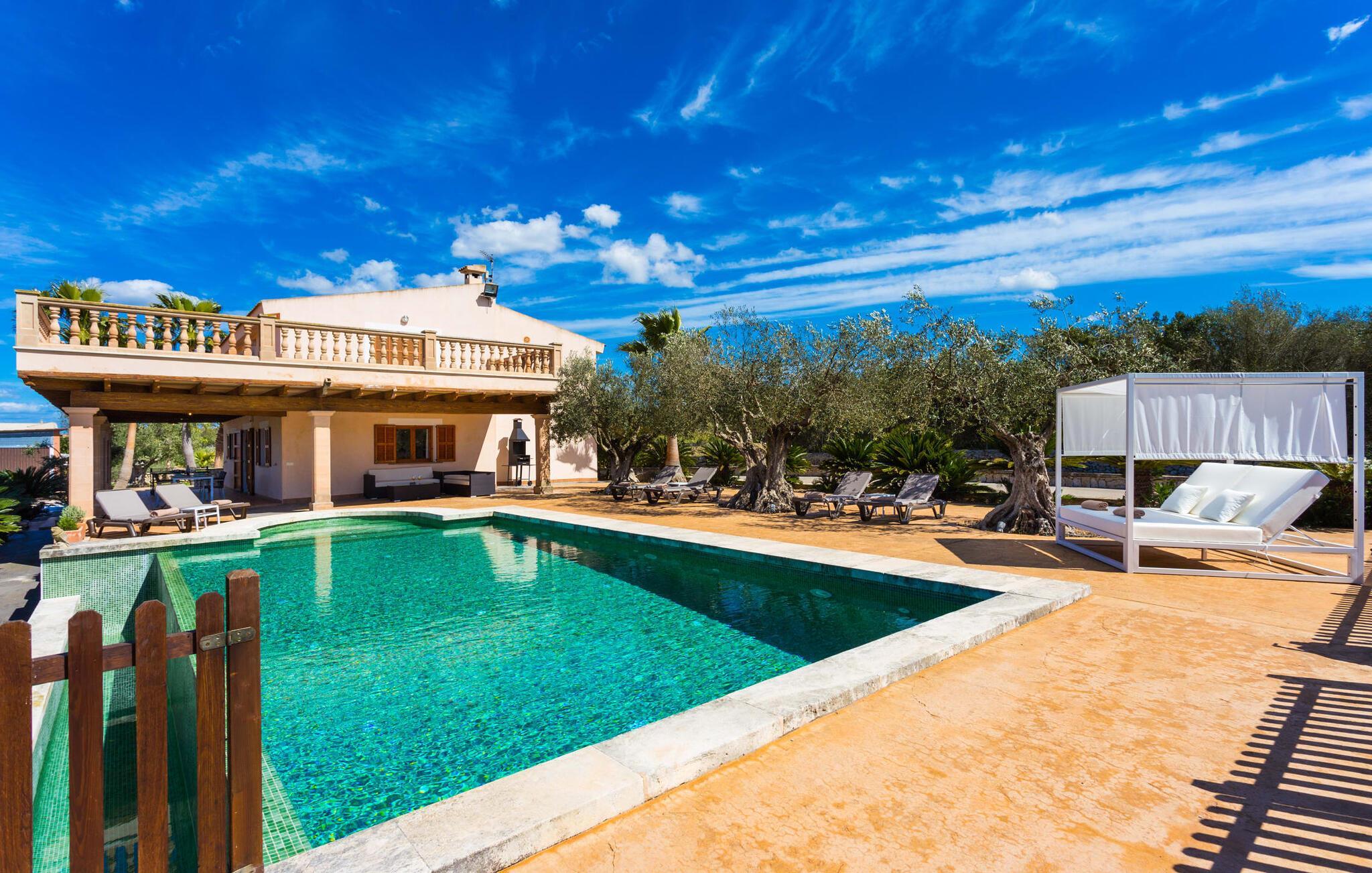 Nyd livet på landet til fulde og tilbring din næste ferie i den fortryllende villa "Son Arcaines de Can Simo". Det smukke, sandstensfarvede hus med sin store overdækkede terrasse ligger i hjertet af den landlige østlige region på Mallorca og tilbyder dig ikke kun en masse privatliv, men også alle de faciliteter, der helt sikkert vil gøre dit ophold på den baleariske ø uforglemmelig. Et absolut højdepunkt er den vidunderligt store infinity-pool, som ligger direkte ved huset og fører til det forfriskende vand via let skrånende trapper. Nyd at svømme et par længder - og børn vil helt sikkert have det sjovt her! Føl dig godt tilpas på en af de komfortable liggestole ved poolen for at varme dig lidt op – eller hold et diskret, men vågent øje med de små. Vil du hellere undgå den brændende sol, så tag plads under et af de imponerende og ærværdige oliventræer, som er elegant omgivet af naturstensterrassen. Du kan også finde forfriskende skygge under den overdækkede terrasse med sine vidunderlige rustikke træbjælker - slap af på de blødt polstrede udendørs sofaer eller sæt dig ved det store spisebord og nyd en lækker snack. Har du lyst til lidt action, kan du spille en kort omgang bordtennis – selvfølgelig er bordet også dækket og i skygge. Dette er et Fincallorca feriehus. Dit sommerhus er ikke kun i fremragende stand, det udstråler også en beroligende klarhed. De enkle hvide vægge er dekoreret med et par udvalgte kunstværker; Her er ingen unødvendig eller hektisk dekoration! Alt udstråler en behagelig ro og åbenhed. Dette overbevisende helhedsindtryk forstærkes af den rummelige rumindretning: stue, spisestue og køkken er i ét stort og lyst rum. Med ganske få enkle trin kan du bringe maden tilberedt i det moderne køkken med en lille disk direkte til det store spisebord - og det gør, lige så praktisk, også den uvelkomne oprydning af opvasken meget nemmere efterfølgende. Du kan selvfølgelig også fremtrylle en snack til en hyggelig aften med at se tv på sofaen – medmindre du foretrækker at se på den knitrende ild i pejsen. Når du er træt efter en lang dag i poolen eller en tur rundt på øen, skal du blot trække dig tilbage til et af de tre soveværelser, alle placeret i stueetagen. Også her er alt diskret indrettet, og træsengene er ægte centerpieces. Soveværelserne har små natborde med flotte lamper, spejle og indbygget garderobe - dit fortryllende soveværelse til søde feriedrømme. Badeværelserne er desuden udstyret med alt, hvad hjertet begærer: Lys, ren, behagelig belysning og badekar eller bruseniche. Din villa er beliggende i det landlige vest på Mallorca - omgivet af grønne marker og oliven- og mandeltræer: perfekt til lange gåture eller cykelture i naturen. Et supermarked, bank og apotek ligger blot 4 km derfra i den autentiske mallorcanske landsby Ariany. Den historiske by Sineu med talrige butikker og restauranter er også værd at køre på 7,6 km. Her kan du afslappet slentre gennem de små gader i den gamle bydel, beundre den imponerende arkitektur i de talrige gamle palæer og sognekirken, eller nyde en drink og atmosfæren i en af de smukke caféer på Plaza des Fossar. Det ugentlige marked i Sineu er særligt populært; Der tilbydes frisk mad samt husdyr, tøj og traditionelt kunsthåndværk. For en dag på stranden skal du for eksempel blot køre de 19,6 km til Can Picafort, hvor den fine sandstrand Playa de Can Picafort med en skøn feriestrand, en promenade og god infrastruktur venter på dig. I hjertet af den østlige region af øen venter den velholdte sandstensfarvede villa "Son Arcaines de Can Simo" på gæster - en sand oase for en afslappende ferie på Mallorca. Fra ejendommen, lad dit blik vandre over de frodige grønne omgivelser: et smukt, typisk middelhavslandskab under en rolig blå himmel, med bølgende bakker i det fjerne. Nyd solen ved den store infinity-pool ved siden af huset - til shopping og et lækkert måltid eller en kop kaffe skal du bare køre til Sineu (kun 7,6 km væk).