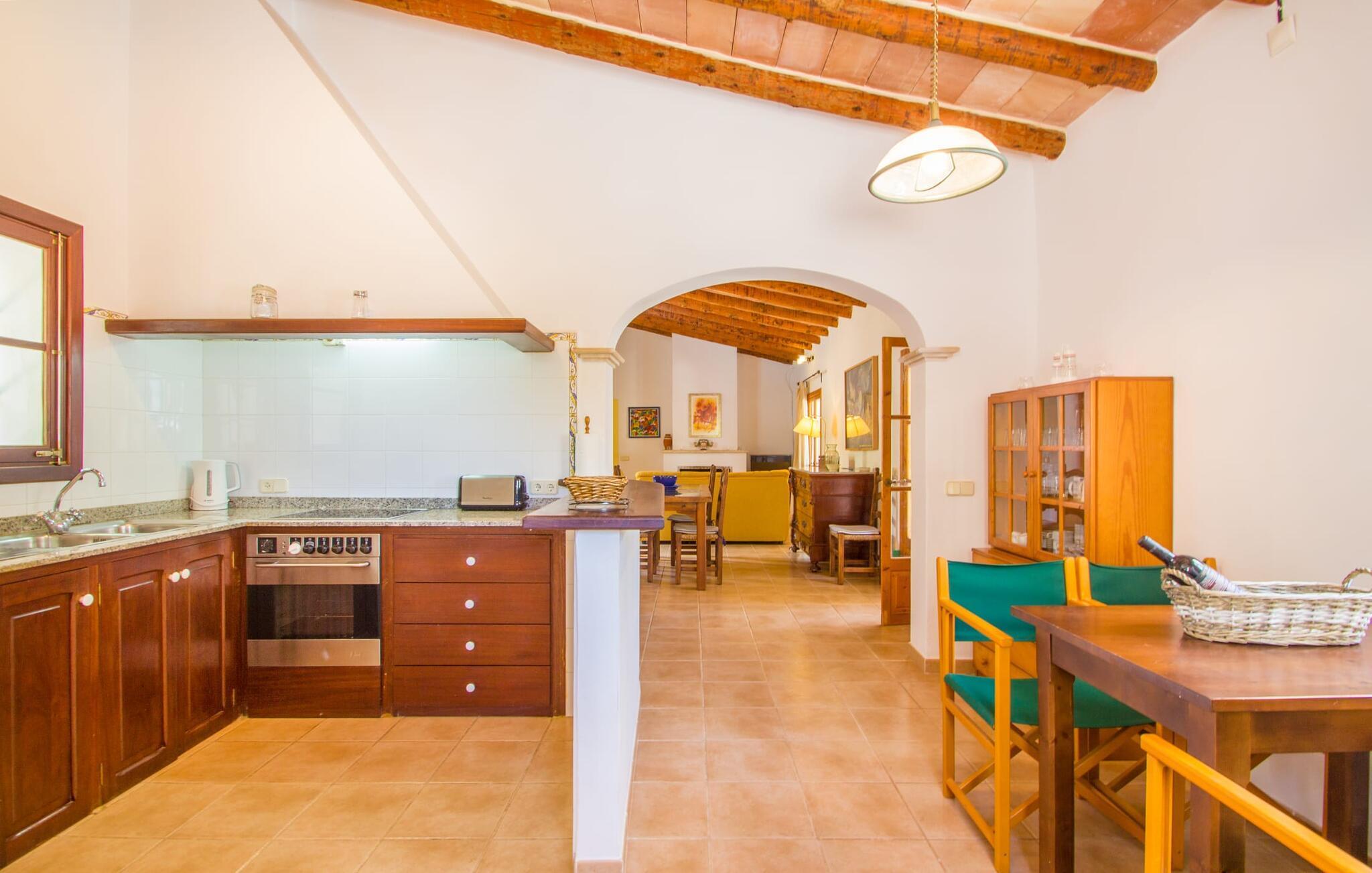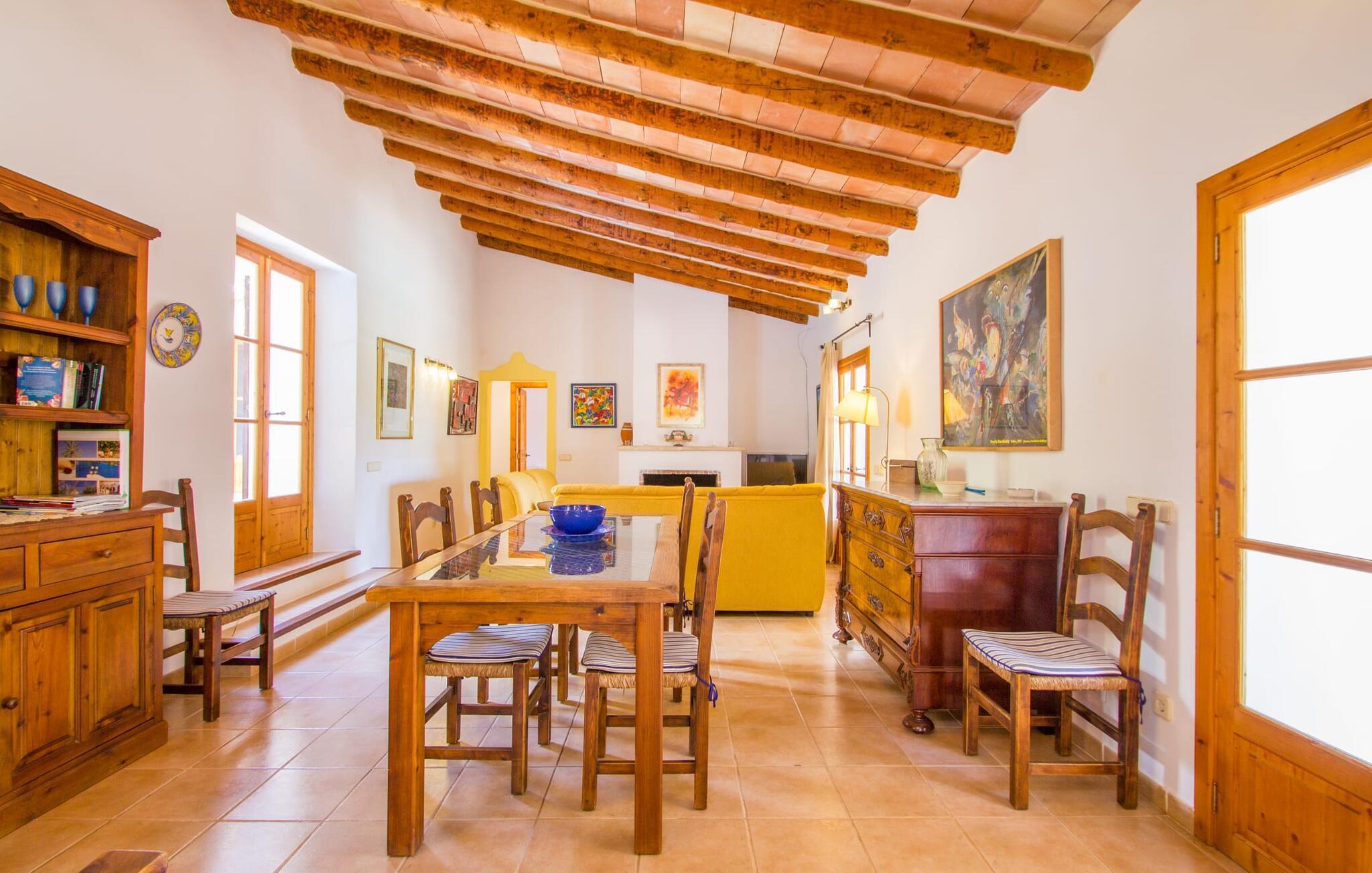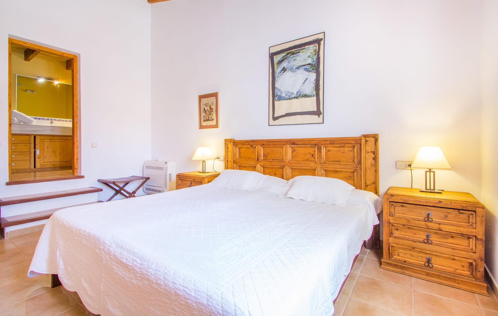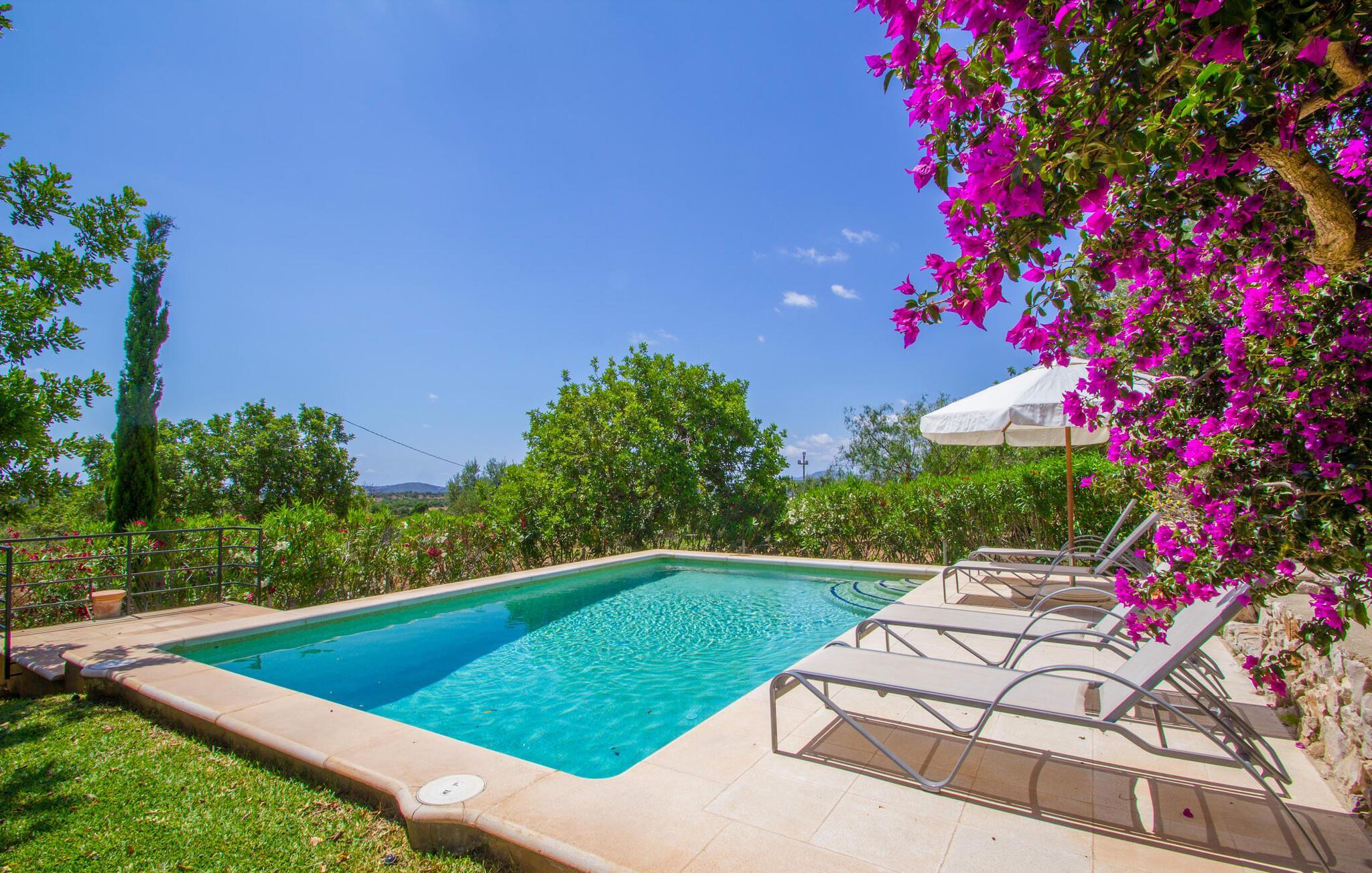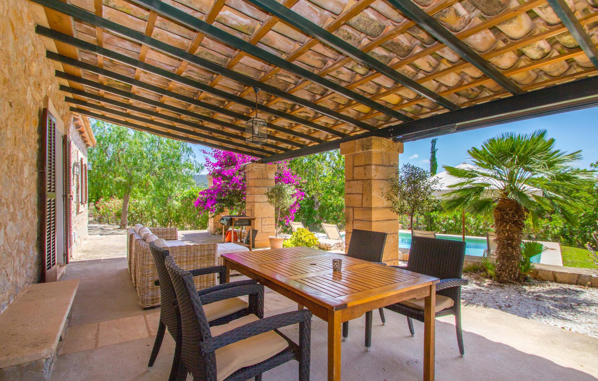 Den lille charmerende villa "Son Barbot de Can Robi Nou" ligger på en 70.000 m² stor grund, der er helt indhegnet. En pool lige ved siden af huset sikrer en afslappende familieferie, men også en stor loungesofa på den overdækkede terrasse, en hængekøje til afslapning og et bordtennisbord. Uanset om det er endeløs badesjov i den 7 x 5 m store pool med udendørs bruser eller slapper af i solen på en af de komfortable liggestole - her kommer du med garanti i feriestemning. Særlig smuk er den vide udsigt over de bølgende bakker og brede marker i det maleriske landskab helt ud til havet; Om aftenen bader den nedgående sol omgivelserne i et magisk lys. I kan tilberede lækre lækkerier på en BBQ, som I kan spise sammen ved det store spisebord på terrassen. Hele haven er en oase af afslapning: Gamle træer og ejendommens mangfoldige, farverige planter gør din villa til et sted, hvor du kan slappe af. Villaen, der er bygget helt i ét plan, strækker sig over 124 m² boligareal. Det lyse, åbne opholds- og spiseområde er indrettet i rustik mallorcansk stil: varme farver, masser af træ og moderne kunst på væggene - med stor sans for detaljer har nogen skabt et tilflugtssted for at byde deres besøgende velkommen. Et fuldt udstyret køkken med ovn, keramisk kogeplade, vaskemaskine, opvaskemaskine, elkedel, kaffemaskine, brødrister og mikroovn byder på alt, hvad du behøver for straks at føle dig hjemme. Du kan sidde i en behagelig sofa ved den åbne pejs; Et stort spisebord udgør midten af rummet. Hvert af de to soveværelser med aircondition har sit eget badeværelse, hvoraf det ene er en-suite og tilgængeligt via en lille trappe. Det ene soveværelse har en 1,80 x 2,00 m dobbeltseng, det andet værelse har to enkeltsenge. De moderne, dagslysfyldte badeværelser er udstyret med rummelige håndvaske og store spejle. Der er også et brusekabine eller brusebad. Huset har et pengeskab til dine værdigenstande. Placeringen af denne bolig er perfekt for feriegæster, der ønsker at udforske de mange facetter af øen væk fra masseturismen. Beliggende nær den lille by Sant Llorenc des Cardassar, er villaen idyllisk omgivet af olivenlunde, figentræer, dværgpalmer og rosmarinbuske: vi er beliggende i en frugtbar slette i Llevant-bjergene, som strækker sig over den østlige del af øen . Området omkring din villa byder på fantastiske muligheder for vandreture, cykling, golf og vandsport. Den gode forbindelse til det mallorcanske vejnet muliggør korte afstande til kystbyernes smukke strande og maleriske bugter. Udforsk for eksempel den fantastiske Cala Romantica, Cala Varques omgivet af klipper eller den fine sandstrand ved Costa dels Pins. Der er talrige shoppingmuligheder i de nærliggende byer Artà og Manacor. I Sant Llorenc er restauranten Es Pati blevet et mødested for gourmeter. Hver torsdag er der et lille gastromarked i byen. Et besøg i havnen i Porto Cristo kan også varmt anbefales. Dette er Mallorca for feinschmeckere! Uden for den slagne vej ligger denne lille perle nær den drømmende by Sant Llorenç des Cardassar på den østlige del af øen. I en landlig beliggenhed, men perfekt forbundet med transportnettet, kan du udforske de mange smukke strande og bugter på østkysten fra din villa. Fordyb dig i den mallorcanske livsstil og oplev de historiske byer Artà og Manacor med deres farverige markeder, udsøgte butikker og caféer, som bestemt er et besøg værd. Dette er et Fincallorca feriehus.