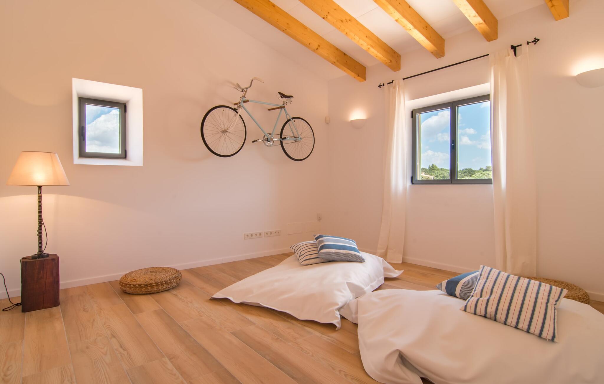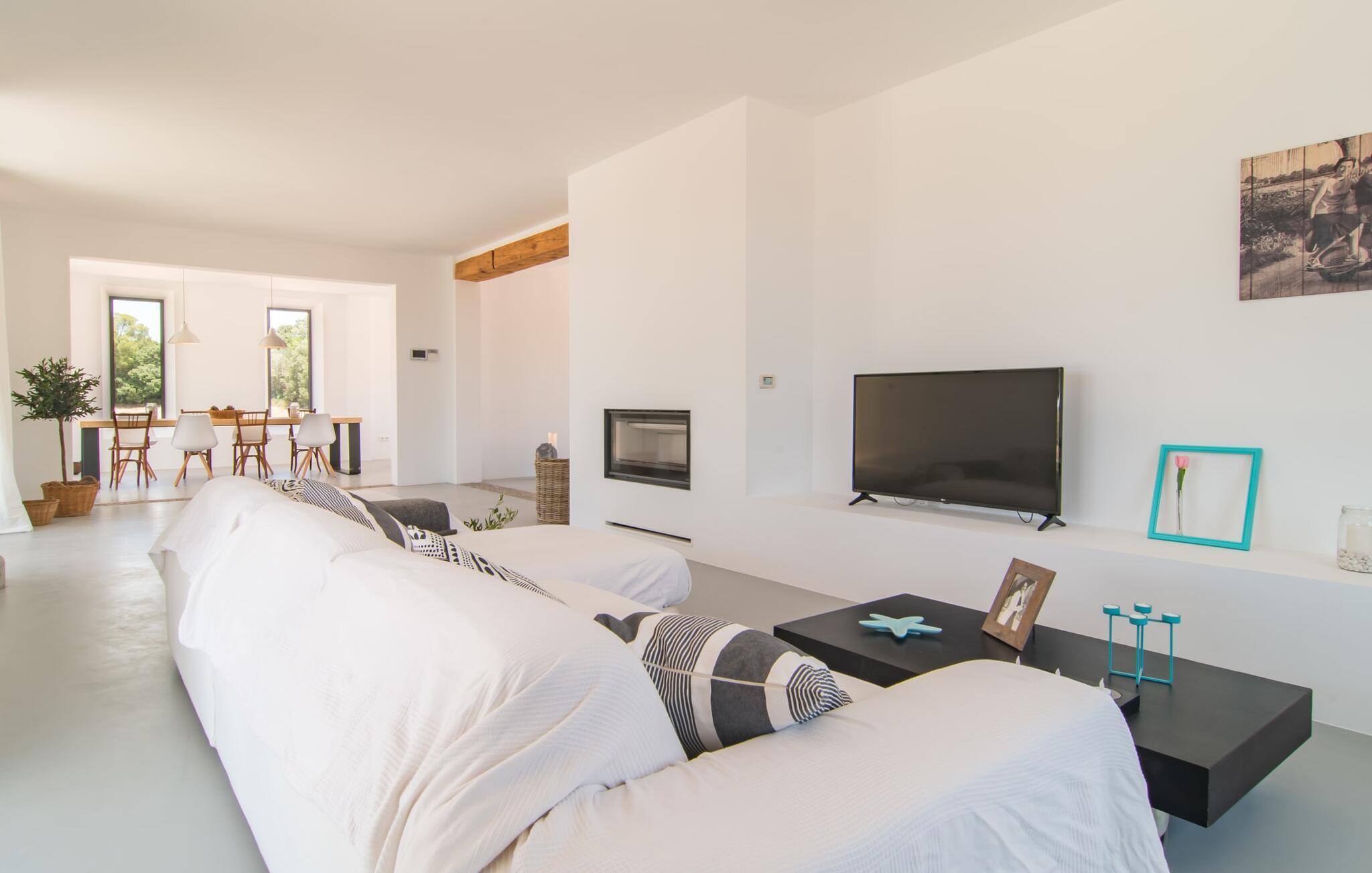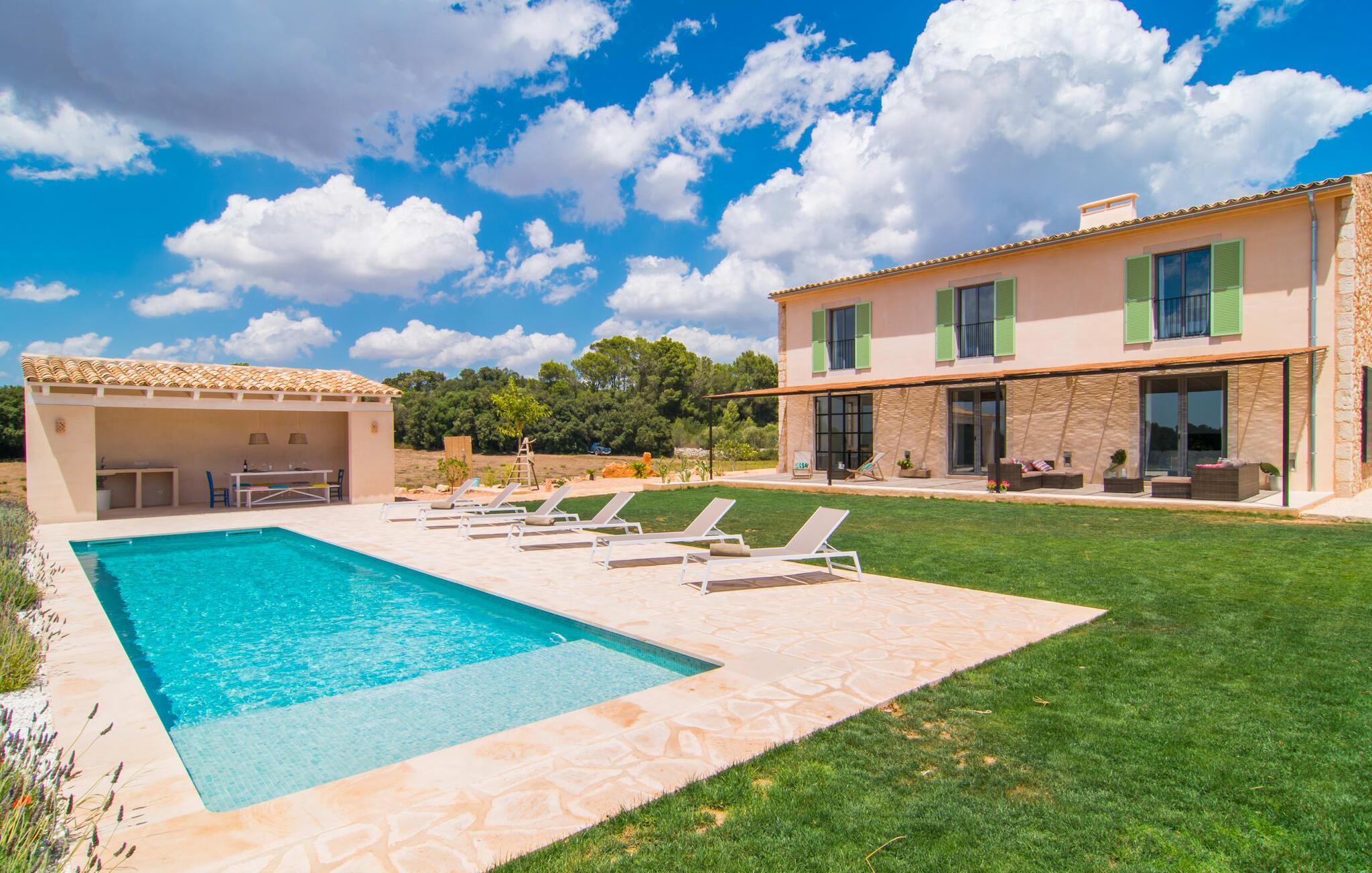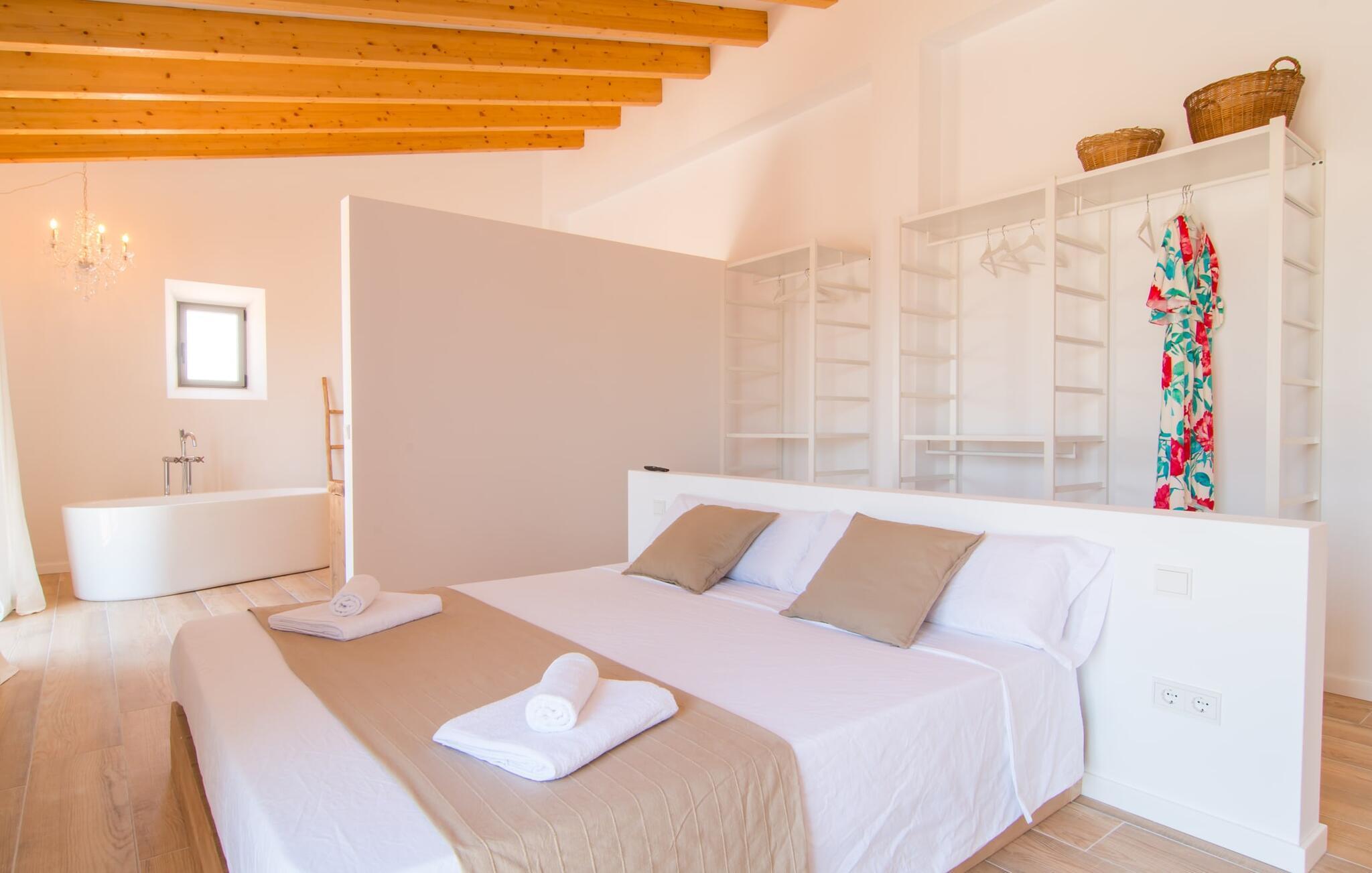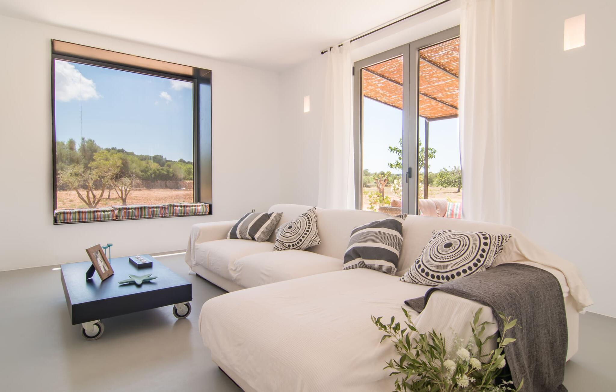 Villaen "Son Benassar Ses Figueres" er et imponerende bevis på, at "landligt" og "stilfuldt" ikke behøver at udelukke hinanden. Det nybyggede hus med sine smukke grønne skodder og store vinduer i stueetagen ligger i en absolut rolig beliggenhed nær byen Felanitx på det sydlige Mallorca. Enhver, der kigger ud fra den overdækkede terrasse med trendy udendørsmøbler, vil ikke se andet end det vidunderlige, typisk mallorcanske landskab, som indbyder til f.eks. lange cykelture. Selve ejendommen på 38.000 m², med sin smukt anlagte have og fantastiske pool med græsplæne til solbadning, naturstenssolterrasse og overdækket udekøkken, indbyder også til en afslappende gåtur. Dette er et Fincallorca feriehus. Indersiden af villaen er en sand drøm! Hvide vægge, lyse gulve, klare linjer og store vinduespartier dominerer indretningen - og skaber en behagelig moderne og meget stilfuld boligatmosfære, der får dig til at føle dig godt tilpas. Værelserne er rummelige, især den aflange opholds- og spisestue i stueetagen. Hvis du kan lide at se en spændende krimi med et glas rødvin, kan du finde dig tilpas i den store, komfortable sofa. Lige ved siden af er der et attraktivt spisebord i træ med designerstole, hvor du kan tilbringe lange aftener med god mad og nyde udsigten til den uberørte natur gennem de store vinduespartier. Du har også en vidunderlig udsigt fra det åbne og stilfuldt udstyrede køkken. Udover et gæstebadeværelse er der også et dobbeltværelse i stueplan, indrettet med stor smag og flair for pæne detaljer, samt et tilhørende en-suite badeværelse. På øverste etage, hvor brune træbjælker kan ses overalt på lofterne, er der endnu en stue - udstyret med indbydende sækkestole, hvor man kan slappe af. Yderligere to smarte soveværelser med virkelig fantastiske en-suite badeværelser - for eksempel med et fritstående badekar eller en rustik stenvask - sikrer fuld komfort på første sal. Drømmer du om en ferie på landet, men vil du ikke gå glip af moderne komfort og en stilfuld stemning? Så er den nybyggede villa "Son Benassar Ses Figueres" nær byen Felanitx på den sydlige del af øen lige noget for dig! Det smukke hus er ekstremt stille midt i et smukt landskab og scorer også point med den store pool i haven. Den nærmeste strand "Cala Gran" er kun ca. 13 km væk med lejebil. Bemærk venligst, at denne ejendom ikke accepterer ungdomsgrupper eller polterabender. En ungdomsgruppe på denne ejendom består af personer på 27 år eller derunder. Book ikke denne ejendom, hvis du er en ungdomsgruppe eller polterabend, da din reservation vil blive afvist, når den er booket, hvilket også kan være tilfældet ved ankomst til ejendommen eller under dit ophold, og du vil ikke modtage en refusion
