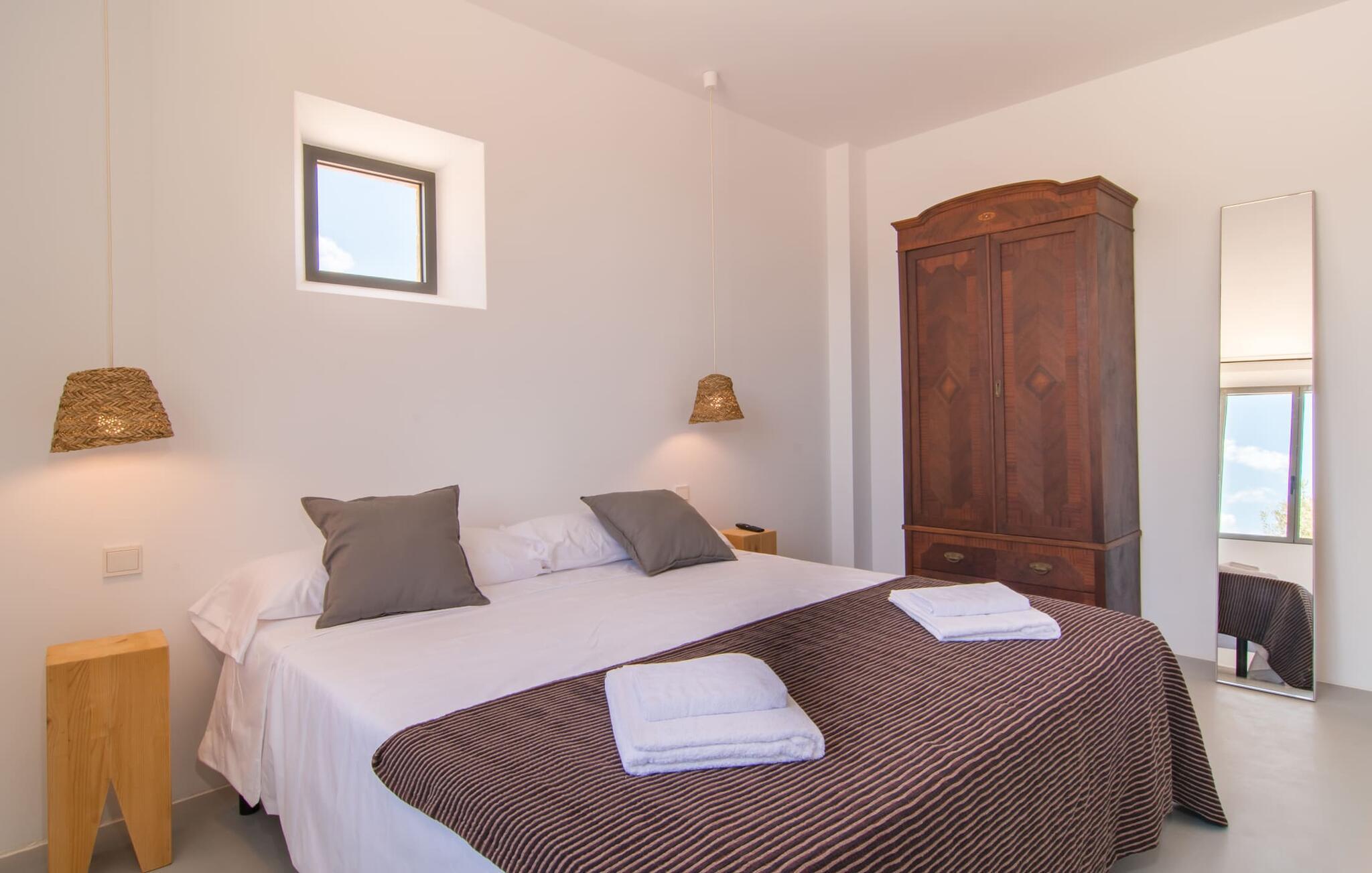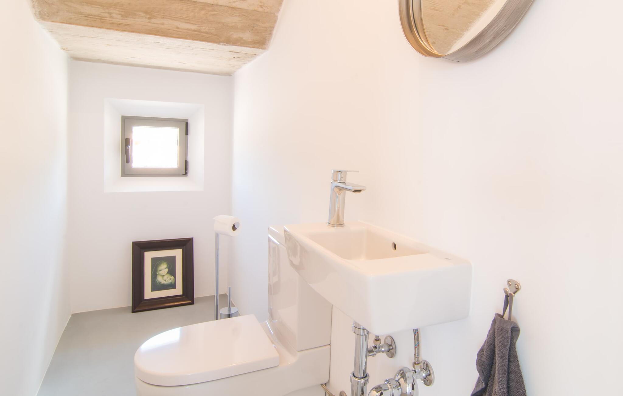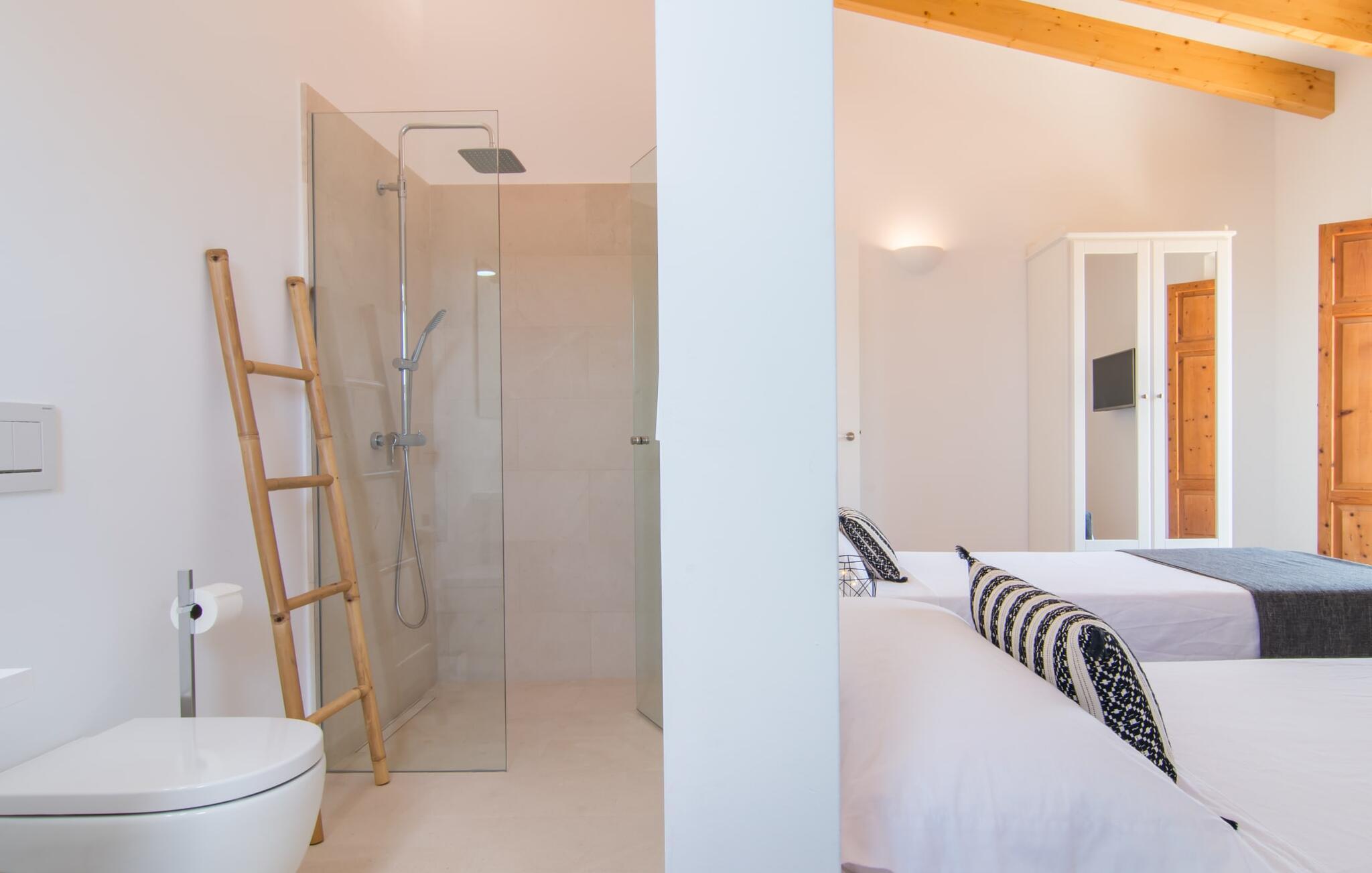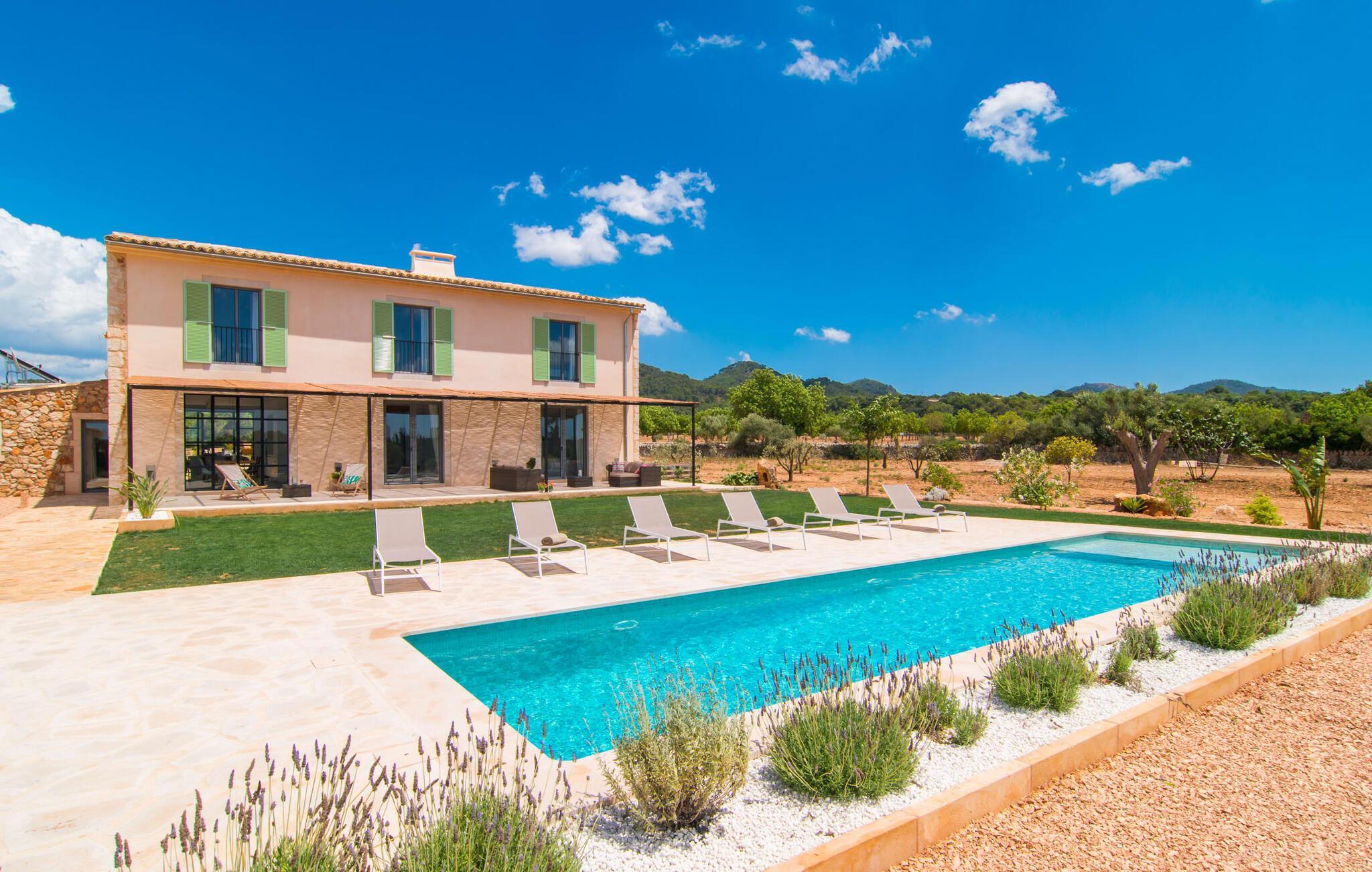 Villaen "Son Benassar Ses Figueres" er et imponerende bevis på, at "landligt" og "stilfuldt" ikke behøver at udelukke hinanden. Det nybyggede hus med sine smukke grønne skodder og store vinduer i stueetagen ligger i en absolut rolig beliggenhed nær byen Felanitx på det sydlige Mallorca. Enhver, der kigger ud fra den overdækkede terrasse med trendy udendørsmøbler, vil ikke se andet end det vidunderlige, typisk mallorcanske landskab, som indbyder til f.eks. lange cykelture. Selve ejendommen på 38.000 m², med sin smukt anlagte have og fantastiske pool med græsplæne til solbadning, naturstenssolterrasse og overdækket udekøkken, indbyder også til en afslappende gåtur. Dette er et Fincallorca feriehus. Indersiden af villaen er en sand drøm! Hvide vægge, lyse gulve, klare linjer og store vinduespartier dominerer indretningen - og skaber en behagelig moderne og meget stilfuld boligatmosfære, der får dig til at føle dig godt tilpas. Værelserne er rummelige, især den aflange opholds- og spisestue i stueetagen. Hvis du kan lide at se en spændende krimi med et glas rødvin, kan du finde dig tilpas i den store, komfortable sofa. Lige ved siden af er der et attraktivt spisebord i træ med designerstole, hvor du kan tilbringe lange aftener med god mad og nyde udsigten til den uberørte natur gennem de store vinduespartier. Du har også en vidunderlig udsigt fra det åbne og stilfuldt udstyrede køkken. Udover et gæstebadeværelse er der også et dobbeltværelse i stueplan, indrettet med stor smag og flair for pæne detaljer, samt et tilhørende en-suite badeværelse. På øverste etage, hvor brune træbjælker kan ses overalt på lofterne, er der endnu en stue - udstyret med indbydende sækkestole, hvor man kan slappe af. Yderligere to smarte soveværelser med virkelig fantastiske en-suite badeværelser - for eksempel med et fritstående badekar eller en rustik stenvask - sikrer fuld komfort på første sal. Drømmer du om en ferie på landet, men vil du ikke gå glip af moderne komfort og en stilfuld stemning? Så er den nybyggede villa "Son Benassar Ses Figueres" nær byen Felanitx på den sydlige del af øen lige noget for dig! Det smukke hus er ekstremt stille midt i et smukt landskab og scorer også point med den store pool i haven. Den nærmeste strand "Cala Gran" er kun ca. 13 km væk med lejebil. Bemærk venligst, at denne ejendom ikke accepterer ungdomsgrupper eller polterabender. En ungdomsgruppe på denne ejendom består af personer på 27 år eller derunder. Book ikke denne ejendom, hvis du er en ungdomsgruppe eller polterabend, da din reservation vil blive afvist, når den er booket, hvilket også kan være tilfældet ved ankomst til ejendommen eller under dit ophold, og du vil ikke modtage en refusion
