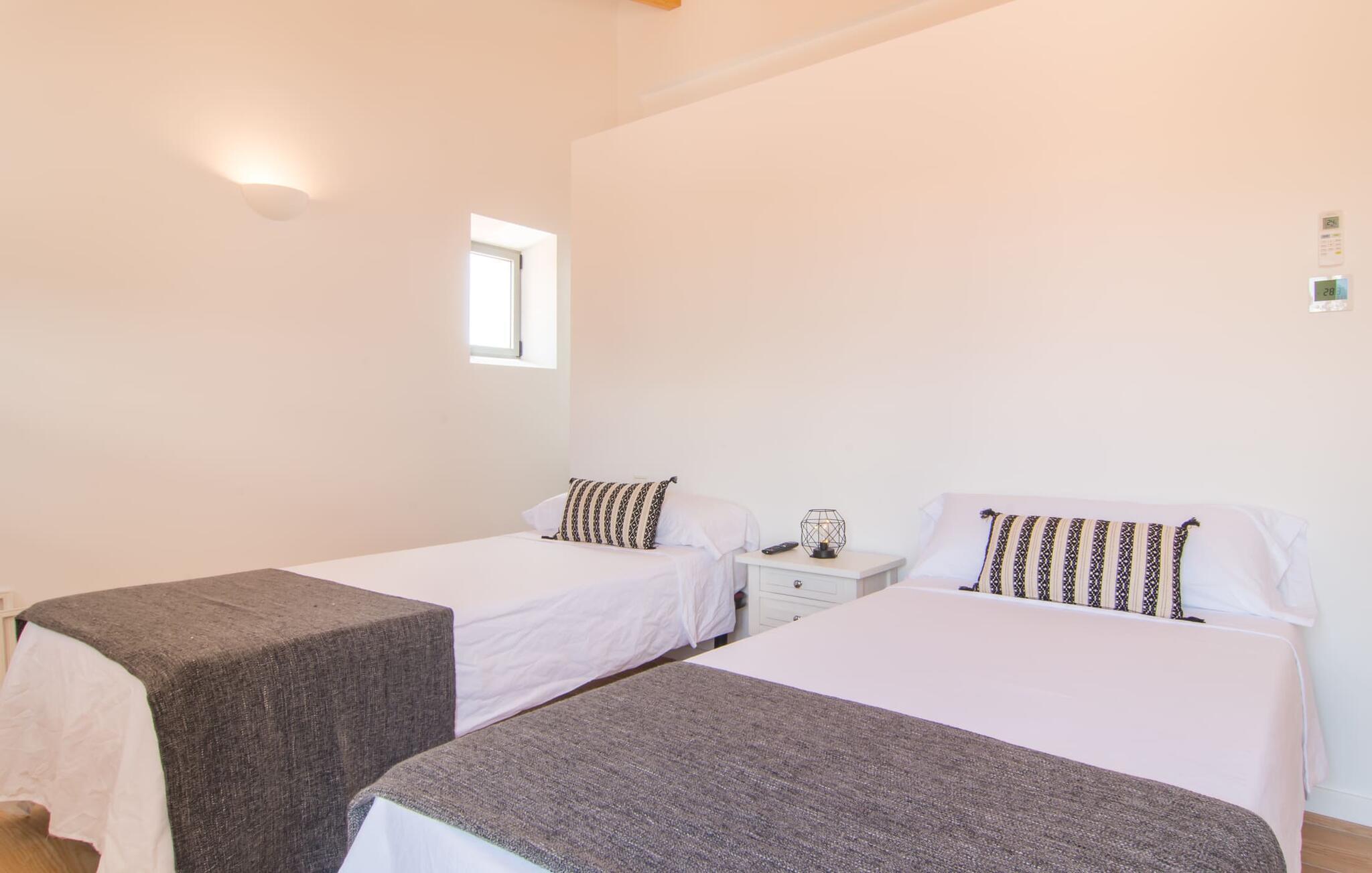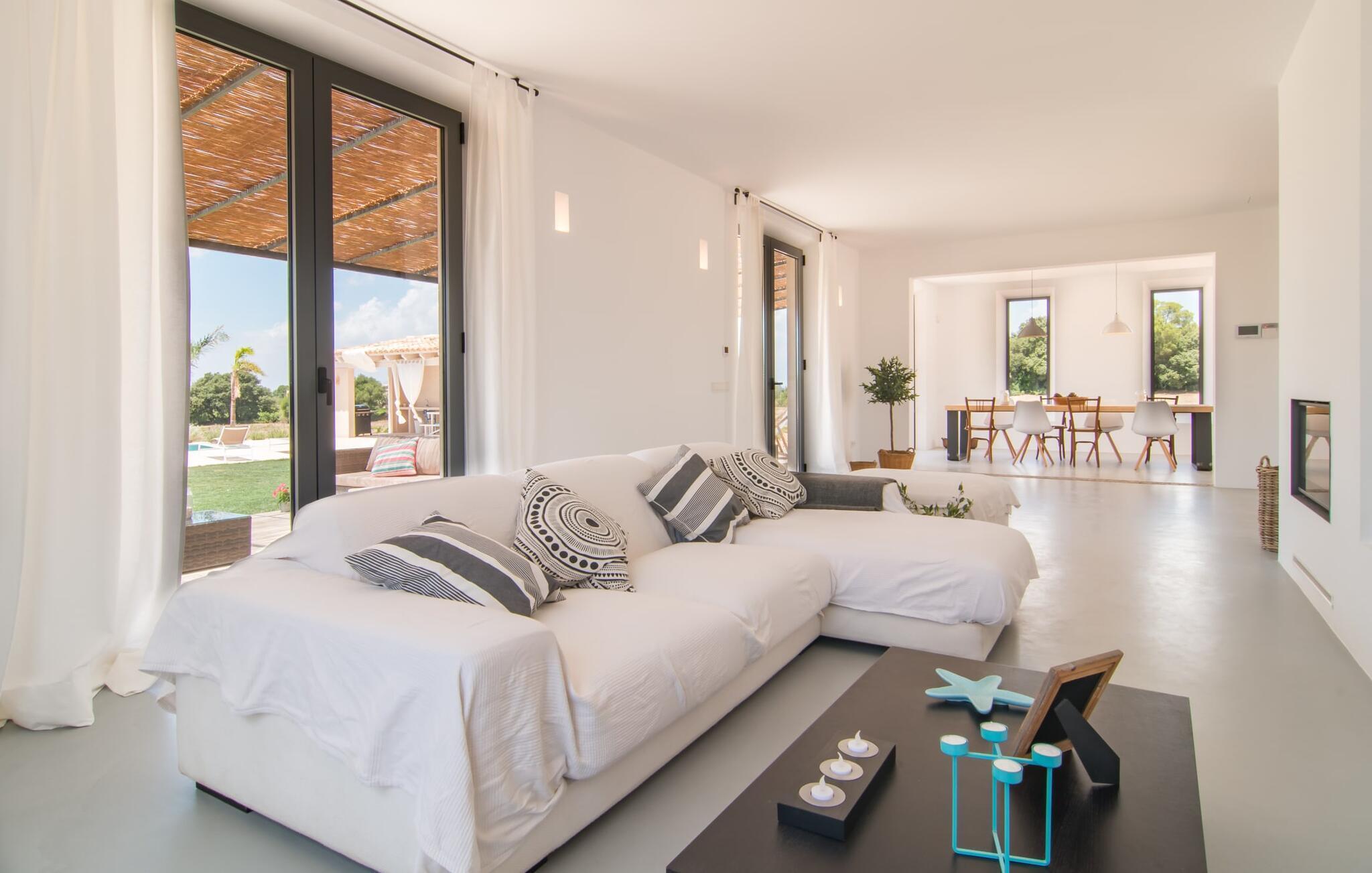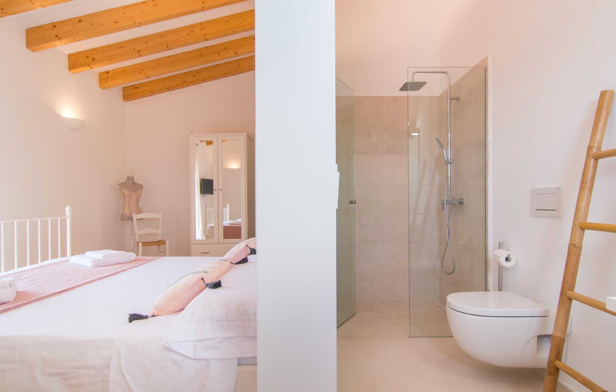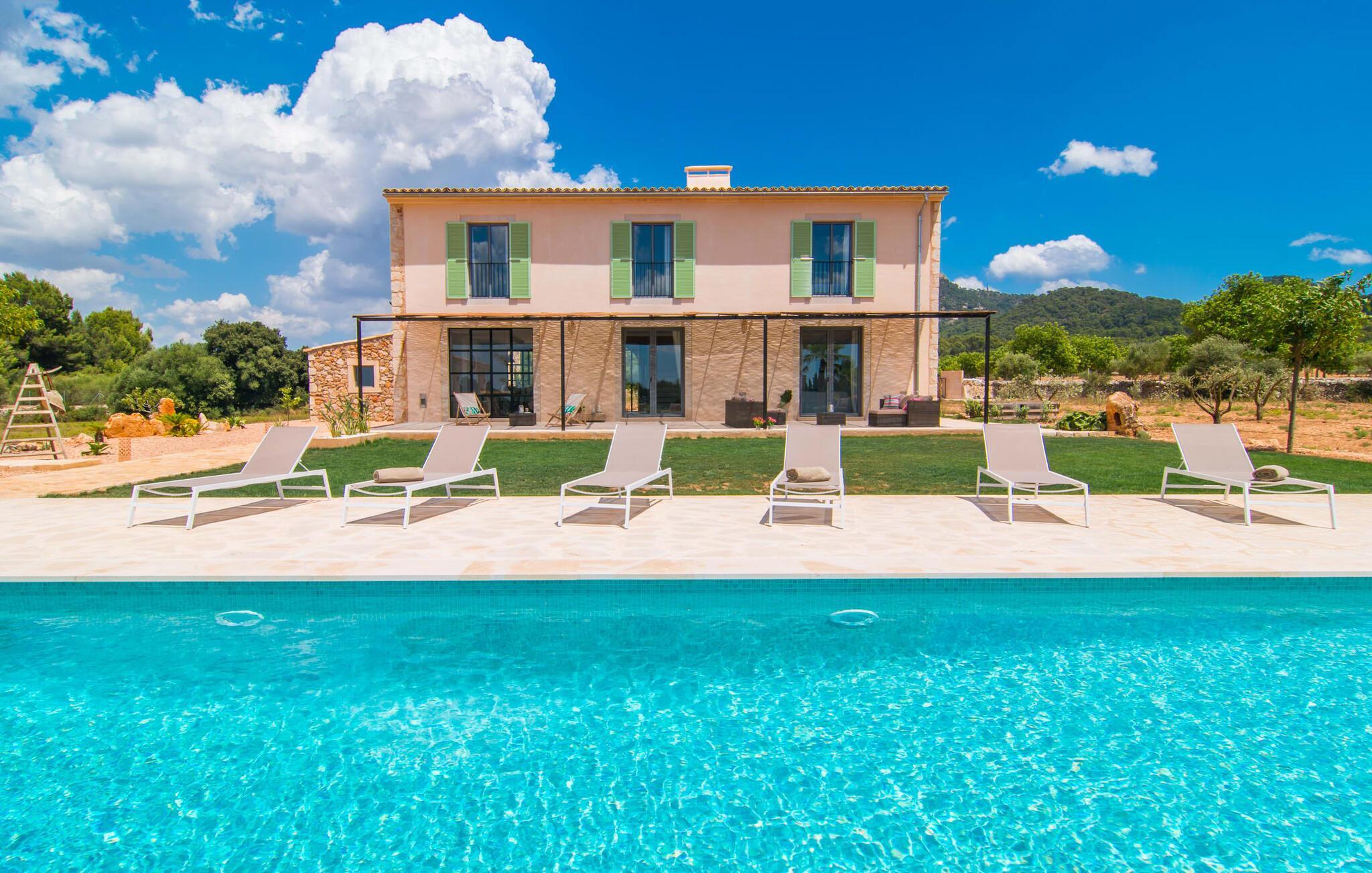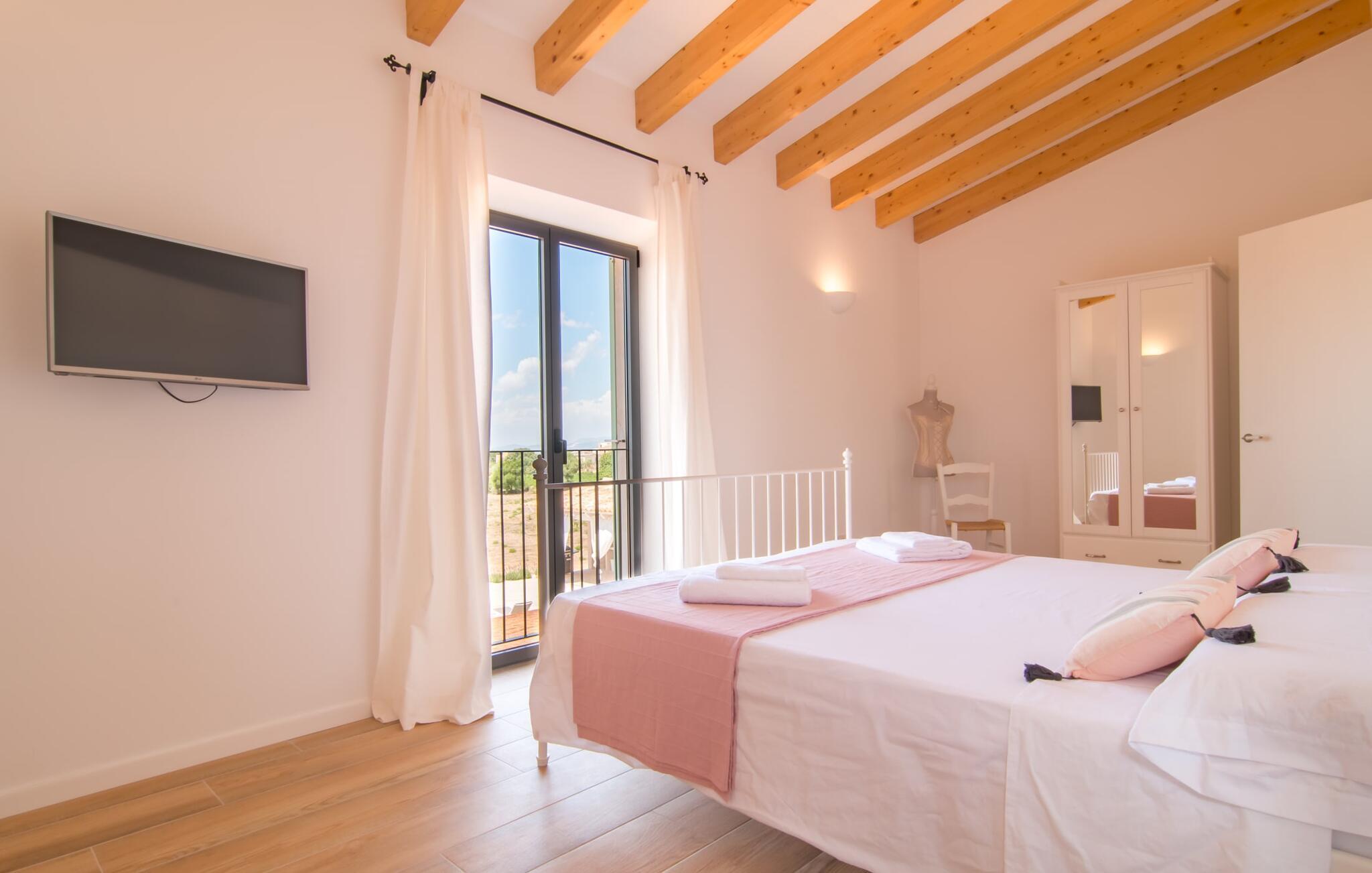 Villaen "Son Benassar Ses Figueres" er et imponerende bevis på, at "landligt" og "stilfuldt" ikke behøver at udelukke hinanden. Det nybyggede hus med sine smukke grønne skodder og store vinduer i stueetagen ligger i en absolut rolig beliggenhed nær byen Felanitx på det sydlige Mallorca. Enhver, der kigger ud fra den overdækkede terrasse med trendy udendørsmøbler, vil ikke se andet end det vidunderlige, typisk mallorcanske landskab, som indbyder til f.eks. lange cykelture. Selve ejendommen på 38.000 m², med sin smukt anlagte have og fantastiske pool med græsplæne til solbadning, naturstenssolterrasse og overdækket udekøkken, indbyder også til en afslappende gåtur. Dette er et Fincallorca feriehus. Indersiden af villaen er en sand drøm! Hvide vægge, lyse gulve, klare linjer og store vinduespartier dominerer indretningen - og skaber en behagelig moderne og meget stilfuld boligatmosfære, der får dig til at føle dig godt tilpas. Værelserne er rummelige, især den aflange opholds- og spisestue i stueetagen. Hvis du kan lide at se en spændende krimi med et glas rødvin, kan du finde dig tilpas i den store, komfortable sofa. Lige ved siden af er der et attraktivt spisebord i træ med designerstole, hvor du kan tilbringe lange aftener med god mad og nyde udsigten til den uberørte natur gennem de store vinduespartier. Du har også en vidunderlig udsigt fra det åbne og stilfuldt udstyrede køkken. Udover et gæstebadeværelse er der også et dobbeltværelse i stueplan, indrettet med stor smag og flair for pæne detaljer, samt et tilhørende en-suite badeværelse. På øverste etage, hvor brune træbjælker kan ses overalt på lofterne, er der endnu en stue - udstyret med indbydende sækkestole, hvor man kan slappe af. Yderligere to smarte soveværelser med virkelig fantastiske en-suite badeværelser - for eksempel med et fritstående badekar eller en rustik stenvask - sikrer fuld komfort på første sal. Drømmer du om en ferie på landet, men vil du ikke gå glip af moderne komfort og en stilfuld stemning? Så er den nybyggede villa "Son Benassar Ses Figueres" nær byen Felanitx på den sydlige del af øen lige noget for dig! Det smukke hus er ekstremt stille midt i et smukt landskab og scorer også point med den store pool i haven. Den nærmeste strand "Cala Gran" er kun ca. 13 km væk med lejebil. Bemærk venligst, at denne ejendom ikke accepterer ungdomsgrupper eller polterabender. En ungdomsgruppe på denne ejendom består af personer på 27 år eller derunder. Book ikke denne ejendom, hvis du er en ungdomsgruppe eller polterabend, da din reservation vil blive afvist, når den er booket, hvilket også kan være tilfældet ved ankomst til ejendommen eller under dit ophold, og du vil ikke modtage en refusion