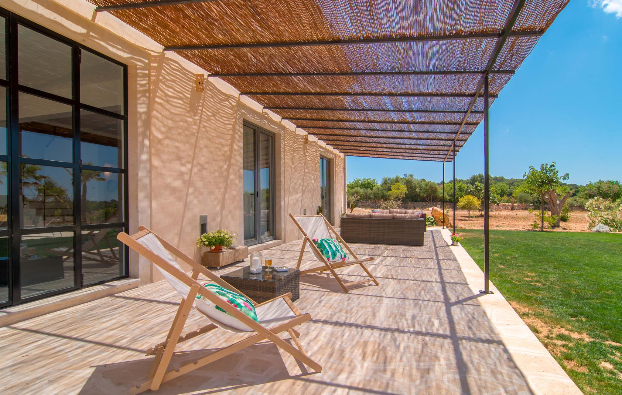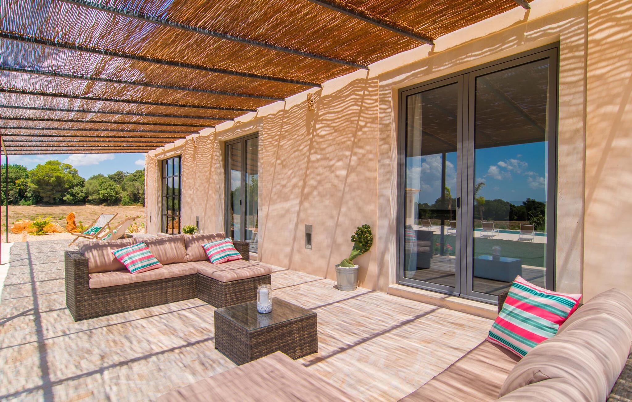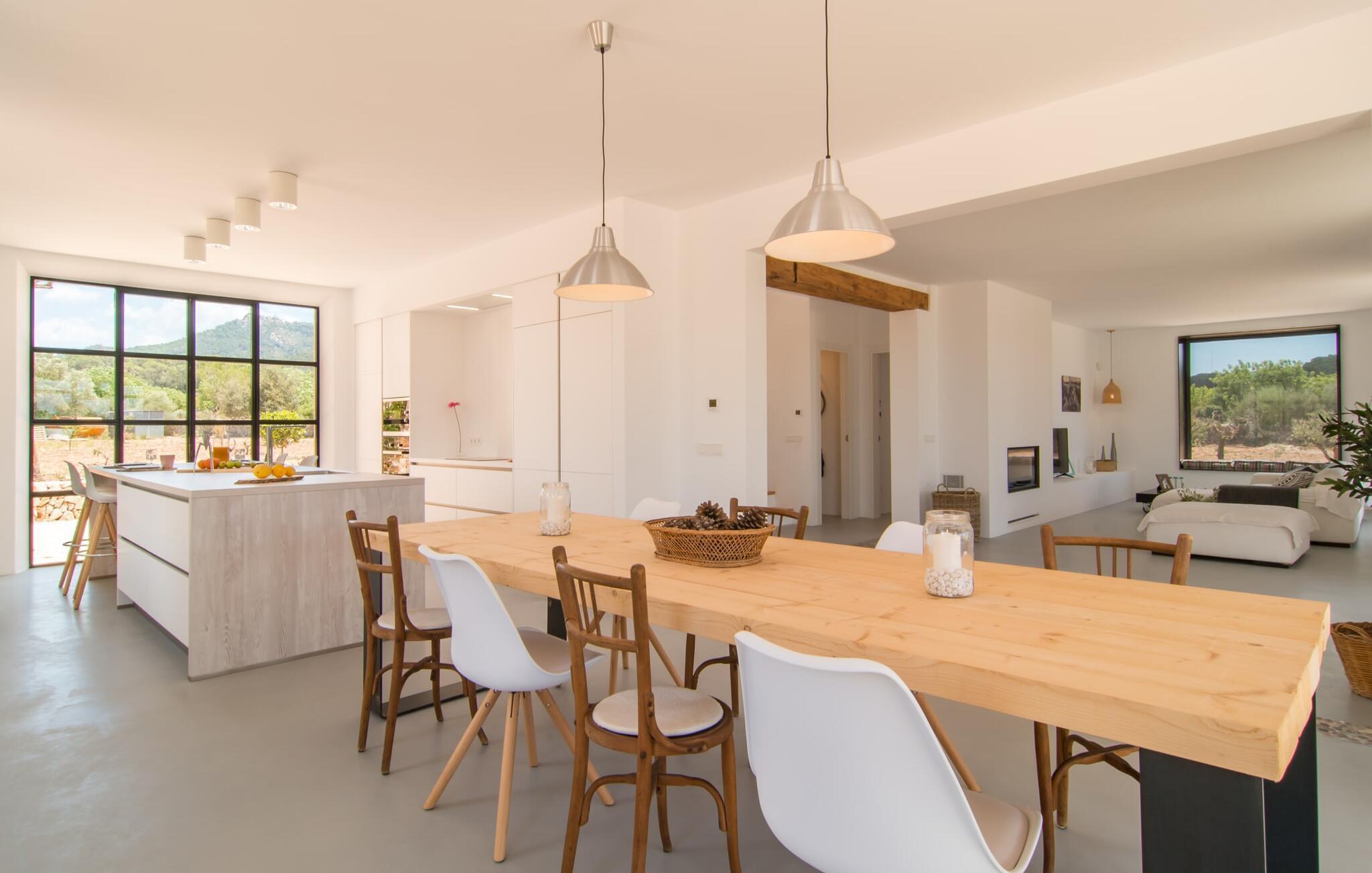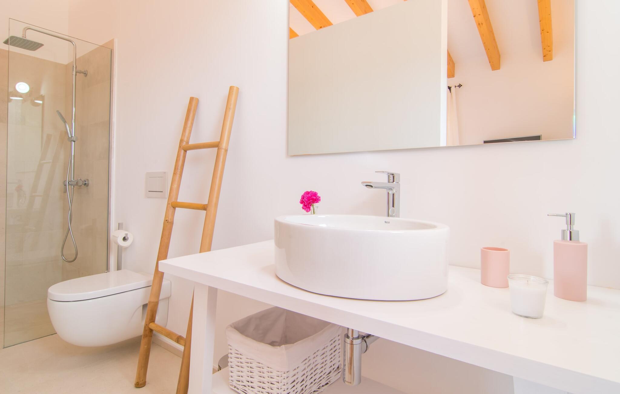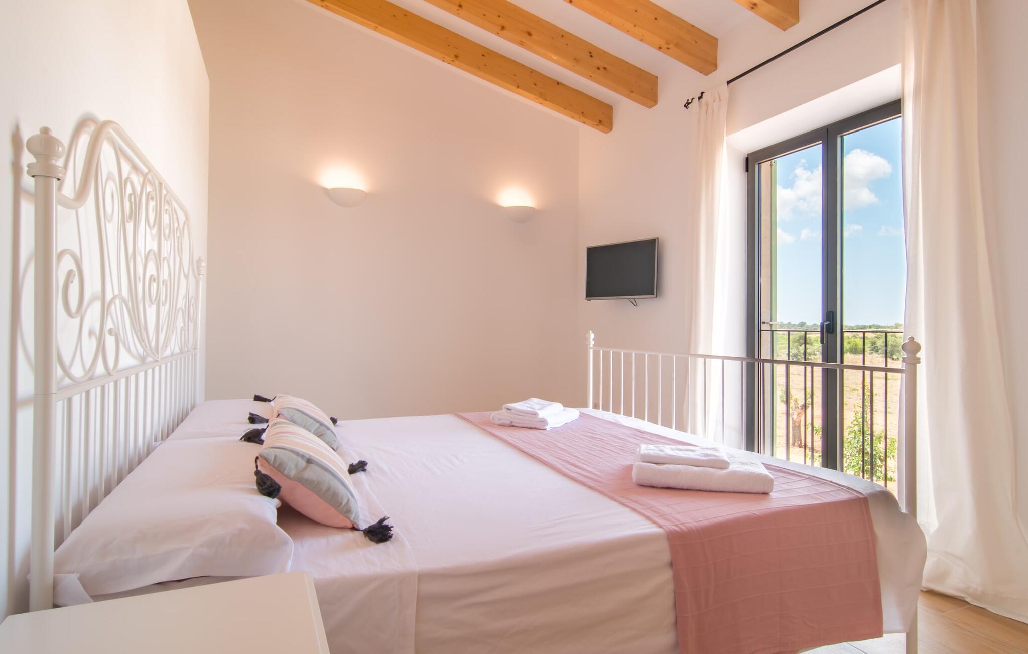 Villaen "Son Benassar Ses Figueres" er et imponerende bevis på, at "landligt" og "stilfuldt" ikke behøver at udelukke hinanden. Det nybyggede hus med sine smukke grønne skodder og store vinduer i stueetagen ligger i en absolut rolig beliggenhed nær byen Felanitx på det sydlige Mallorca. Enhver, der kigger ud fra den overdækkede terrasse med trendy udendørsmøbler, vil ikke se andet end det vidunderlige, typisk mallorcanske landskab, som indbyder til f.eks. lange cykelture. Selve ejendommen på 38.000 m², med sin smukt anlagte have og fantastiske pool med græsplæne til solbadning, naturstenssolterrasse og overdækket udekøkken, indbyder også til en afslappende gåtur. Dette er et Fincallorca feriehus. Indersiden af villaen er en sand drøm! Hvide vægge, lyse gulve, klare linjer og store vinduespartier dominerer indretningen - og skaber en behagelig moderne og meget stilfuld boligatmosfære, der får dig til at føle dig godt tilpas. Værelserne er rummelige, især den aflange opholds- og spisestue i stueetagen. Hvis du kan lide at se en spændende krimi med et glas rødvin, kan du finde dig tilpas i den store, komfortable sofa. Lige ved siden af er der et attraktivt spisebord i træ med designerstole, hvor du kan tilbringe lange aftener med god mad og nyde udsigten til den uberørte natur gennem de store vinduespartier. Du har også en vidunderlig udsigt fra det åbne og stilfuldt udstyrede køkken. Udover et gæstebadeværelse er der også et dobbeltværelse i stueplan, indrettet med stor smag og flair for pæne detaljer, samt et tilhørende en-suite badeværelse. På øverste etage, hvor brune træbjælker kan ses overalt på lofterne, er der endnu en stue - udstyret med indbydende sækkestole, hvor man kan slappe af. Yderligere to smarte soveværelser med virkelig fantastiske en-suite badeværelser - for eksempel med et fritstående badekar eller en rustik stenvask - sikrer fuld komfort på første sal. Drømmer du om en ferie på landet, men vil du ikke gå glip af moderne komfort og en stilfuld stemning? Så er den nybyggede villa "Son Benassar Ses Figueres" nær byen Felanitx på den sydlige del af øen lige noget for dig! Det smukke hus er ekstremt stille midt i et smukt landskab og scorer også point med den store pool i haven. Den nærmeste strand "Cala Gran" er kun ca. 13 km væk med lejebil. Bemærk venligst, at denne ejendom ikke accepterer ungdomsgrupper eller polterabender. En ungdomsgruppe på denne ejendom består af personer på 27 år eller derunder. Book ikke denne ejendom, hvis du er en ungdomsgruppe eller polterabend, da din reservation vil blive afvist, når den er booket, hvilket også kan være tilfældet ved ankomst til ejendommen eller under dit ophold, og du vil ikke modtage en refusion