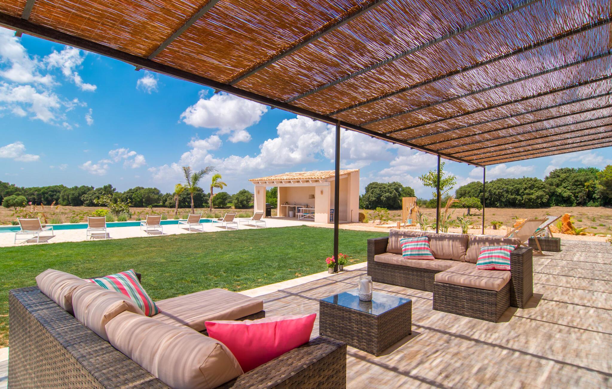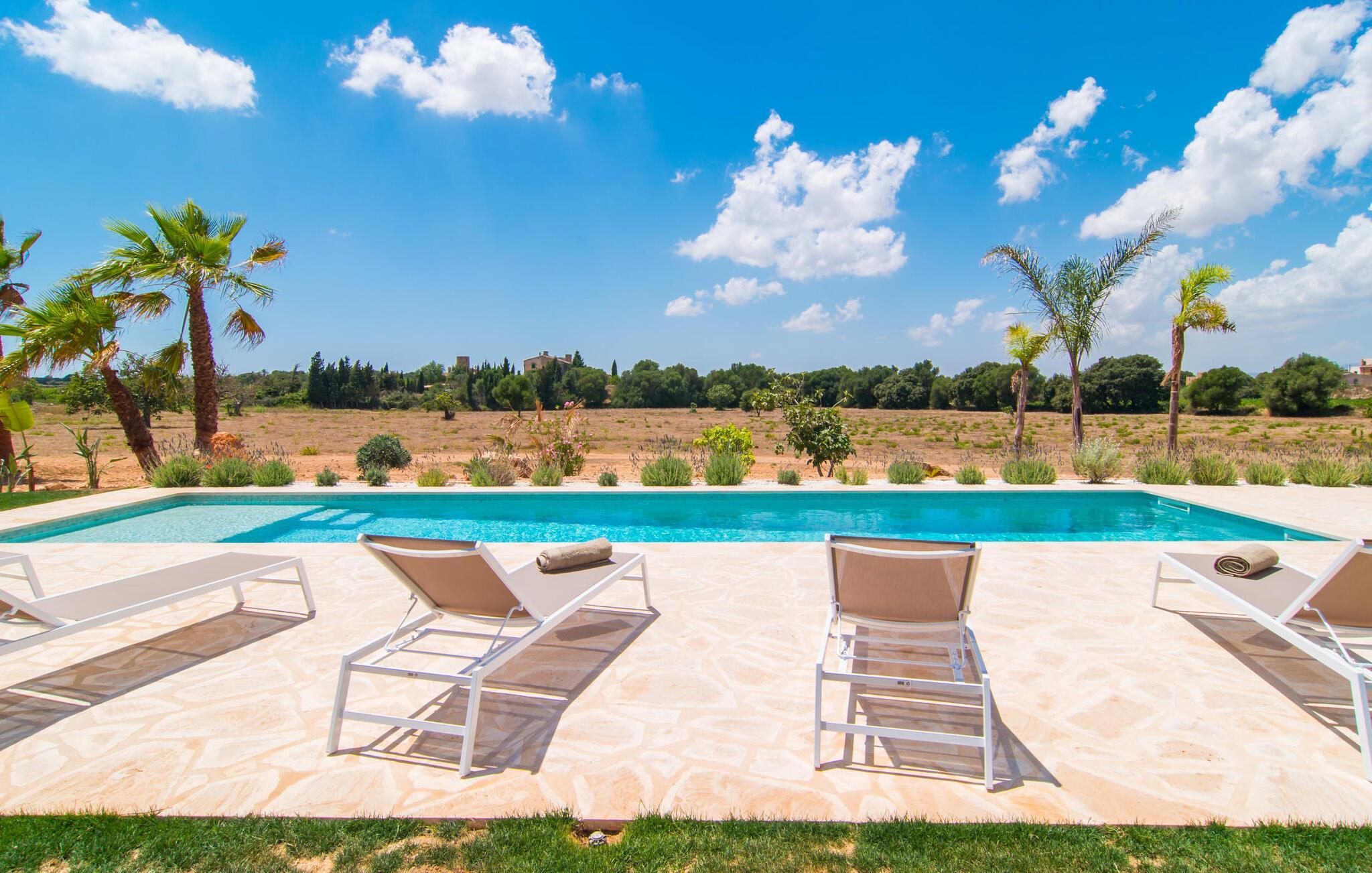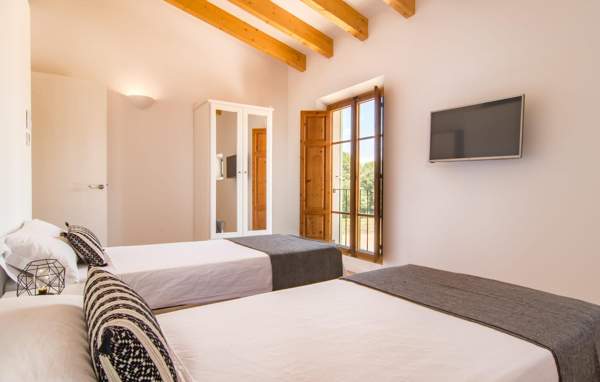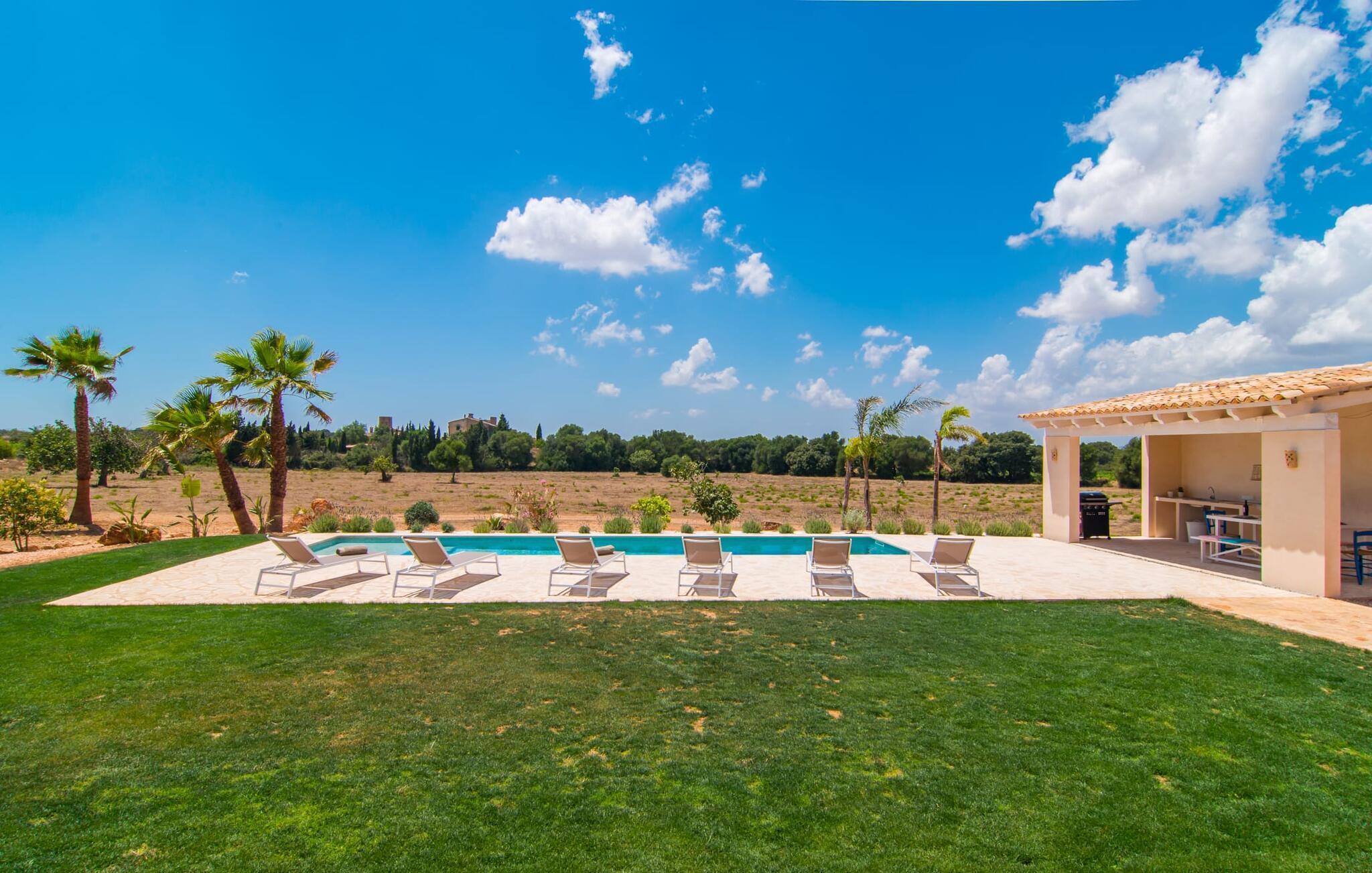 Villaen "Son Benassar Ses Figueres" er et imponerende bevis på, at "landligt" og "stilfuldt" ikke behøver at udelukke hinanden. Det nybyggede hus med sine smukke grønne skodder og store vinduer i stueetagen ligger i en absolut rolig beliggenhed nær byen Felanitx på det sydlige Mallorca. Enhver, der kigger ud fra den overdækkede terrasse med trendy udendørsmøbler, vil ikke se andet end det vidunderlige, typisk mallorcanske landskab, som indbyder til f.eks. lange cykelture. Selve ejendommen på 38.000 m², med sin smukt anlagte have og fantastiske pool med græsplæne til solbadning, naturstenssolterrasse og overdækket udekøkken, indbyder også til en afslappende gåtur. Dette er et Fincallorca feriehus. Indersiden af villaen er en sand drøm! Hvide vægge, lyse gulve, klare linjer og store vinduespartier dominerer indretningen - og skaber en behagelig moderne og meget stilfuld boligatmosfære, der får dig til at føle dig godt tilpas. Værelserne er rummelige, især den aflange opholds- og spisestue i stueetagen. Hvis du kan lide at se en spændende krimi med et glas rødvin, kan du finde dig tilpas i den store, komfortable sofa. Lige ved siden af er der et attraktivt spisebord i træ med designerstole, hvor du kan tilbringe lange aftener med god mad og nyde udsigten til den uberørte natur gennem de store vinduespartier. Du har også en vidunderlig udsigt fra det åbne og stilfuldt udstyrede køkken. Udover et gæstebadeværelse er der også et dobbeltværelse i stueplan, indrettet med stor smag og flair for pæne detaljer, samt et tilhørende en-suite badeværelse. På øverste etage, hvor brune træbjælker kan ses overalt på lofterne, er der endnu en stue - udstyret med indbydende sækkestole, hvor man kan slappe af. Yderligere to smarte soveværelser med virkelig fantastiske en-suite badeværelser - for eksempel med et fritstående badekar eller en rustik stenvask - sikrer fuld komfort på første sal. Drømmer du om en ferie på landet, men vil du ikke gå glip af moderne komfort og en stilfuld stemning? Så er den nybyggede villa "Son Benassar Ses Figueres" nær byen Felanitx på den sydlige del af øen lige noget for dig! Det smukke hus er ekstremt stille midt i et smukt landskab og scorer også point med den store pool i haven. Den nærmeste strand "Cala Gran" er kun ca. 13 km væk med lejebil. Bemærk venligst, at denne ejendom ikke accepterer ungdomsgrupper eller polterabender. En ungdomsgruppe på denne ejendom består af personer på 27 år eller derunder. Book ikke denne ejendom, hvis du er en ungdomsgruppe eller polterabend, da din reservation vil blive afvist, når den er booket, hvilket også kan være tilfældet ved ankomst til ejendommen eller under dit ophold, og du vil ikke modtage en refusion