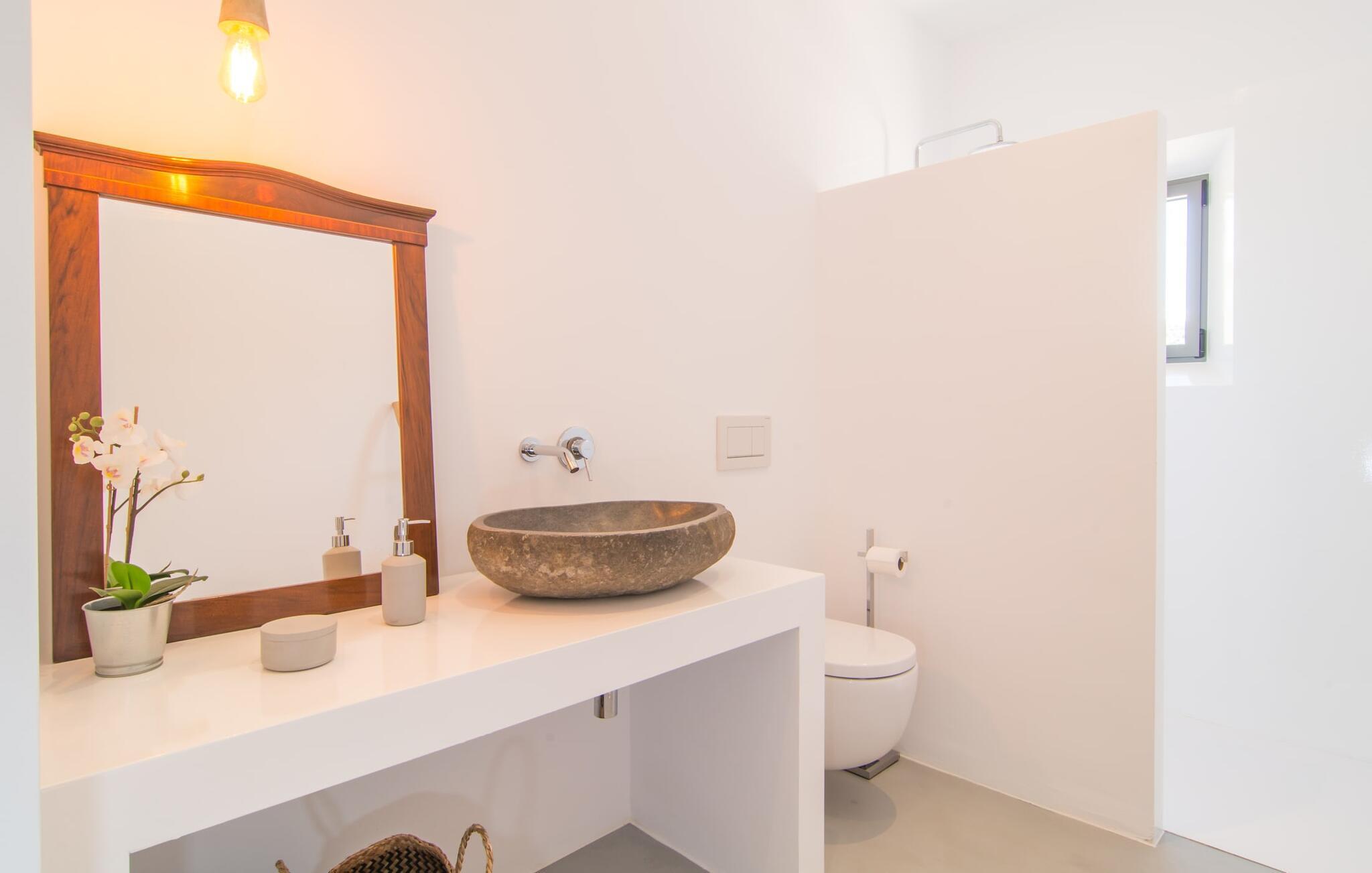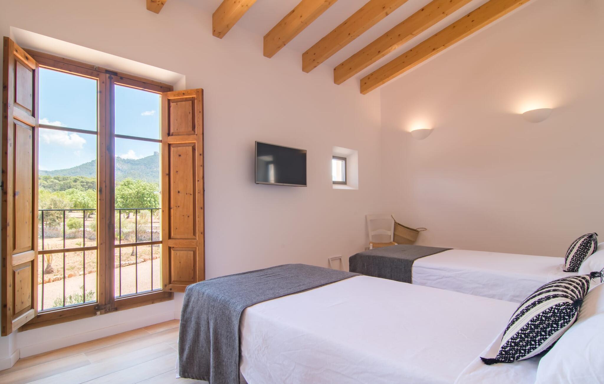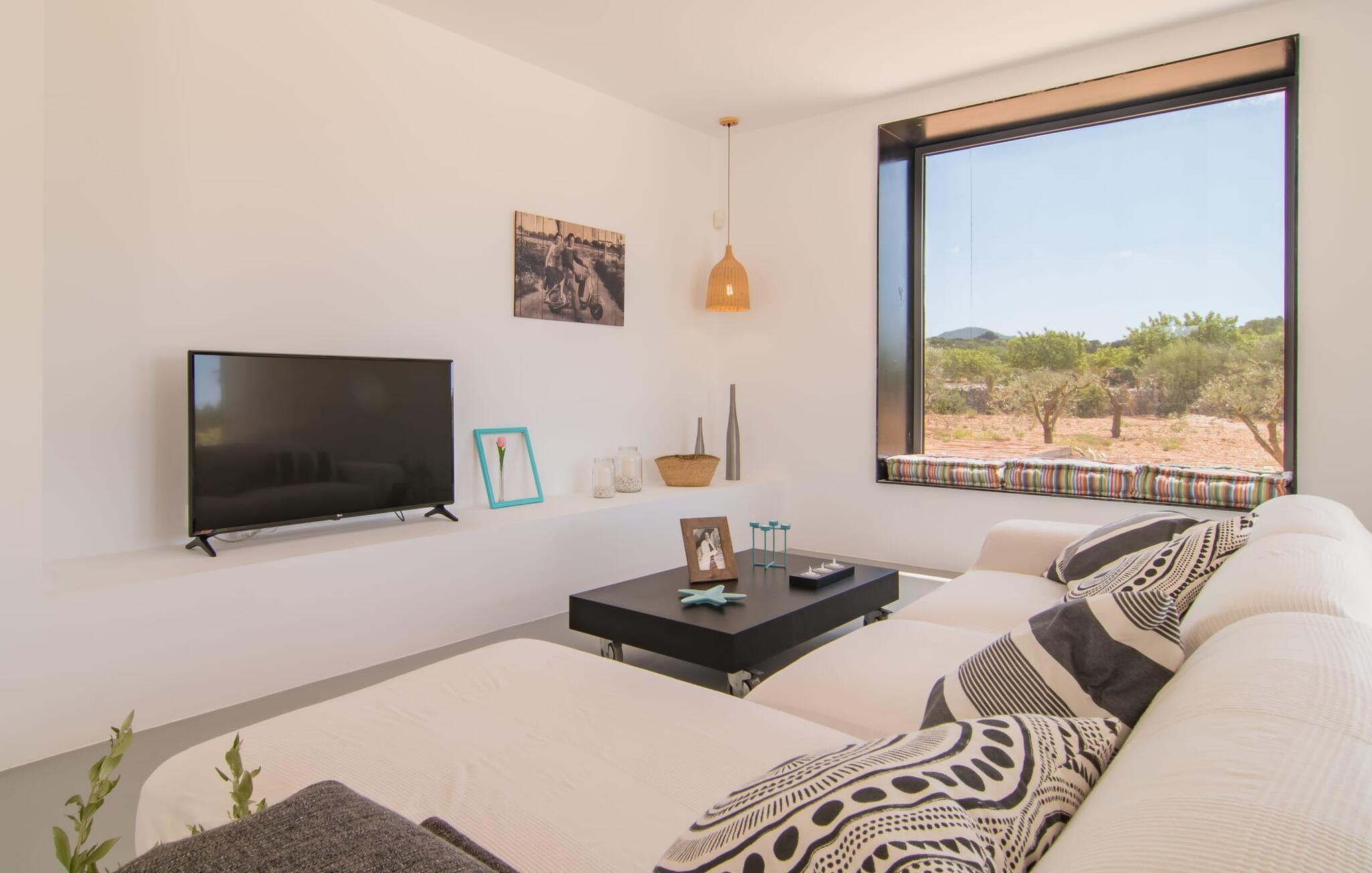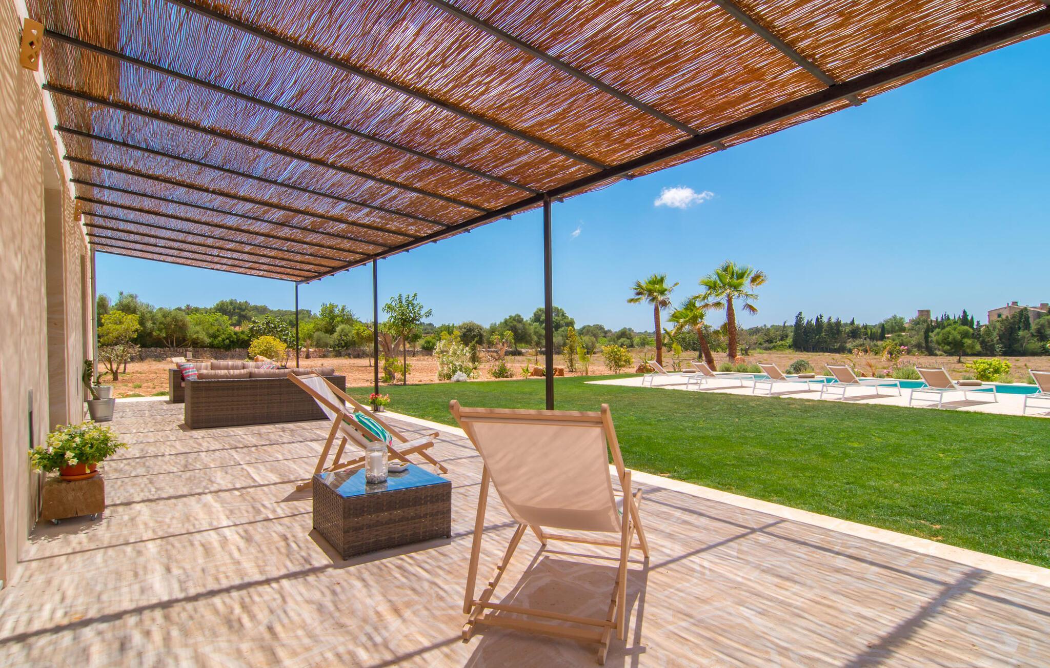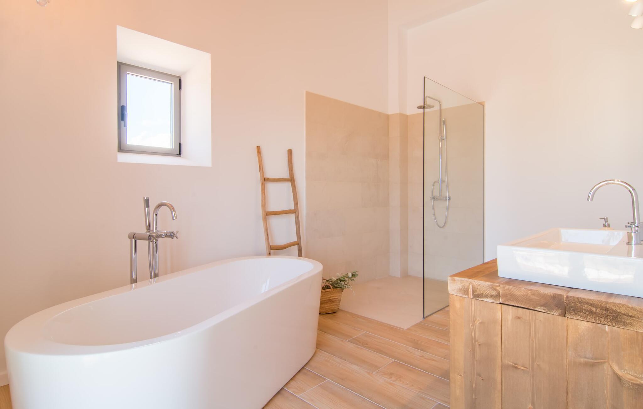 Villaen "Son Benassar Ses Figueres" er et imponerende bevis på, at "landligt" og "stilfuldt" ikke behøver at udelukke hinanden. Det nybyggede hus med sine smukke grønne skodder og store vinduer i stueetagen ligger i en absolut rolig beliggenhed nær byen Felanitx på det sydlige Mallorca. Enhver, der kigger ud fra den overdækkede terrasse med trendy udendørsmøbler, vil ikke se andet end det vidunderlige, typisk mallorcanske landskab, som indbyder til f.eks. lange cykelture. Selve ejendommen på 38.000 m², med sin smukt anlagte have og fantastiske pool med græsplæne til solbadning, naturstenssolterrasse og overdækket udekøkken, indbyder også til en afslappende gåtur. Dette er et Fincallorca feriehus. Indersiden af villaen er en sand drøm! Hvide vægge, lyse gulve, klare linjer og store vinduespartier dominerer indretningen - og skaber en behagelig moderne og meget stilfuld boligatmosfære, der får dig til at føle dig godt tilpas. Værelserne er rummelige, især den aflange opholds- og spisestue i stueetagen. Hvis du kan lide at se en spændende krimi med et glas rødvin, kan du finde dig tilpas i den store, komfortable sofa. Lige ved siden af er der et attraktivt spisebord i træ med designerstole, hvor du kan tilbringe lange aftener med god mad og nyde udsigten til den uberørte natur gennem de store vinduespartier. Du har også en vidunderlig udsigt fra det åbne og stilfuldt udstyrede køkken. Udover et gæstebadeværelse er der også et dobbeltværelse i stueplan, indrettet med stor smag og flair for pæne detaljer, samt et tilhørende en-suite badeværelse. På øverste etage, hvor brune træbjælker kan ses overalt på lofterne, er der endnu en stue - udstyret med indbydende sækkestole, hvor man kan slappe af. Yderligere to smarte soveværelser med virkelig fantastiske en-suite badeværelser - for eksempel med et fritstående badekar eller en rustik stenvask - sikrer fuld komfort på første sal. Drømmer du om en ferie på landet, men vil du ikke gå glip af moderne komfort og en stilfuld stemning? Så er den nybyggede villa "Son Benassar Ses Figueres" nær byen Felanitx på den sydlige del af øen lige noget for dig! Det smukke hus er ekstremt stille midt i et smukt landskab og scorer også point med den store pool i haven. Den nærmeste strand "Cala Gran" er kun ca. 13 km væk med lejebil. Bemærk venligst, at denne ejendom ikke accepterer ungdomsgrupper eller polterabender. En ungdomsgruppe på denne ejendom består af personer på 27 år eller derunder. Book ikke denne ejendom, hvis du er en ungdomsgruppe eller polterabend, da din reservation vil blive afvist, når den er booket, hvilket også kan være tilfældet ved ankomst til ejendommen eller under dit ophold, og du vil ikke modtage en refusion