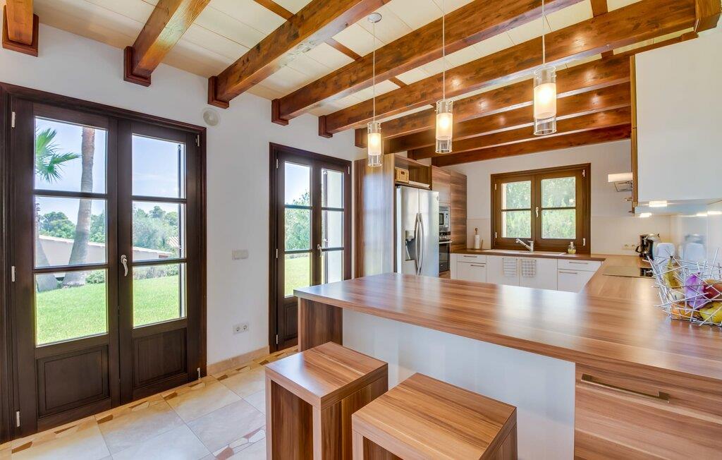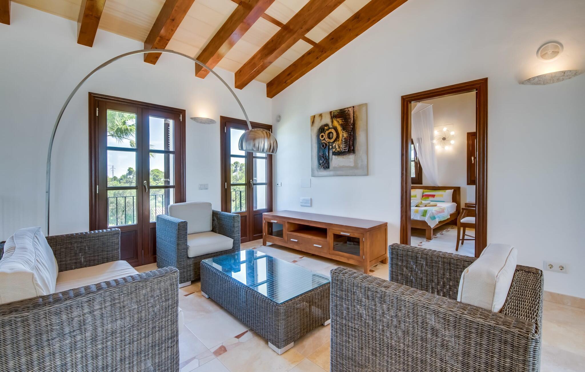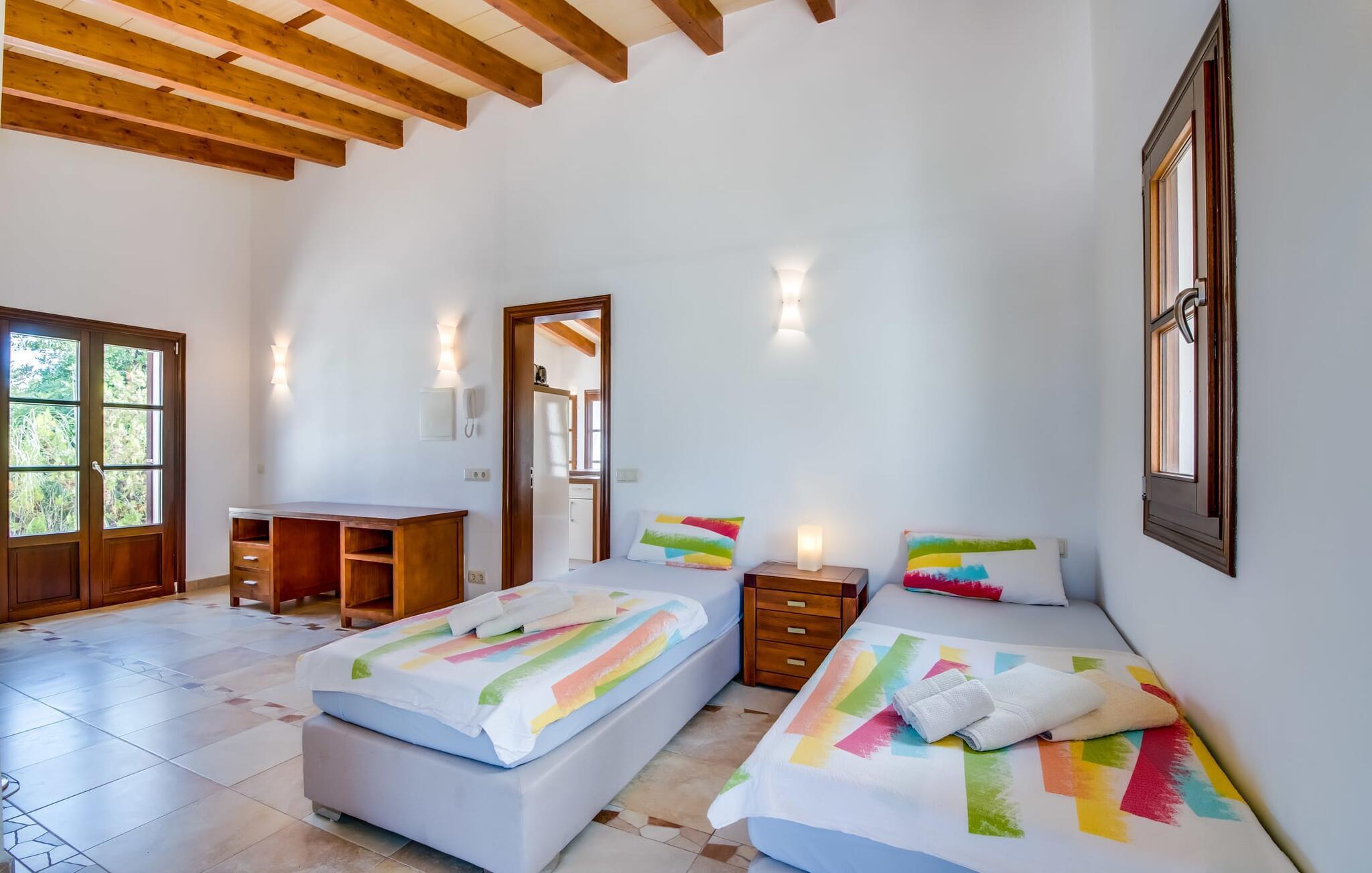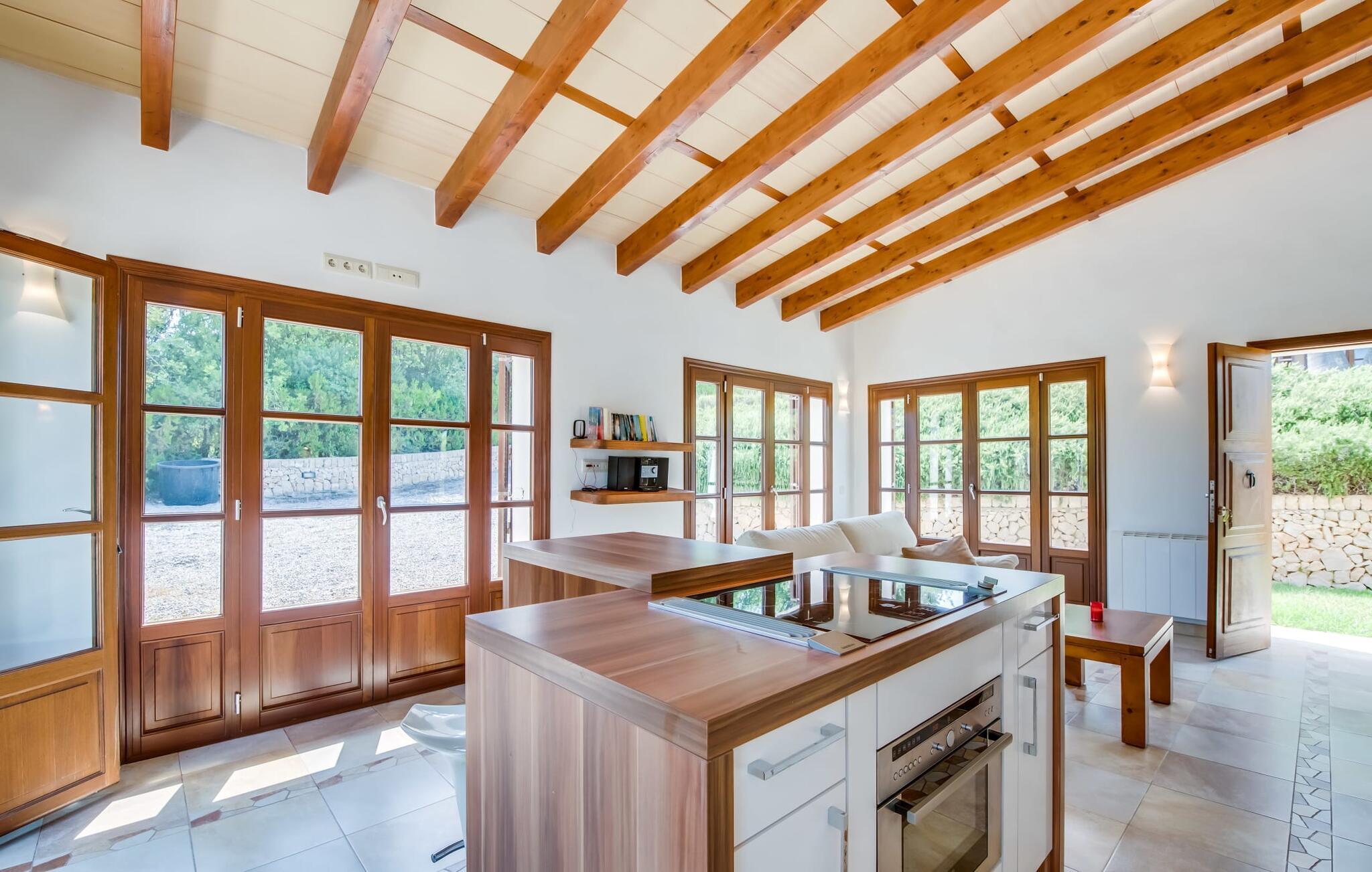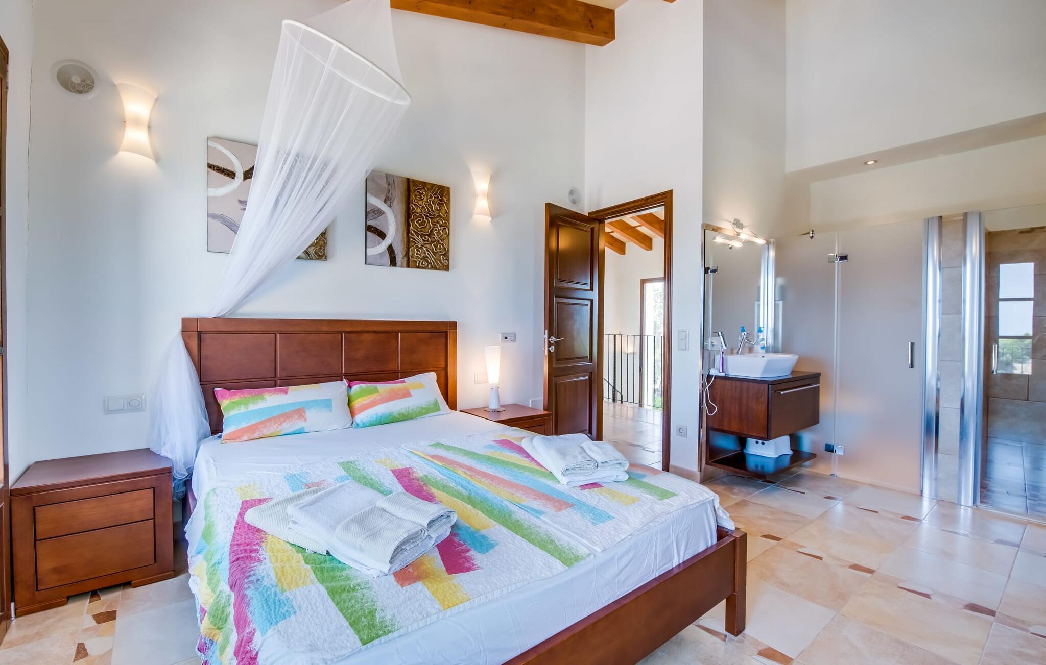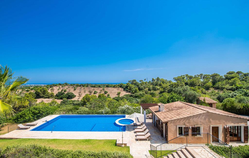 Fincaen "Son Blavet" i det landlige hjerte af Mallorca legemliggør klassisk middelhavsarkitektur og tilbyder en ekstraordinær ferieoplevelse. Denne rummelige ejendom er udstyret med moderne bekvemmeligheder og sikrer et kvalitetsophold. Beliggende på en blid bakke, er det omgivet af palmer og velplejede græsplæner og byder på en rolig udsigt over det maleriske mallorcanske landskab. Rejsen er let, parkeringspladser er tilgængelige direkte ved fincaen. Et par trin fører til et fantastisk poolområde, som byder på et gæstehus med et udendørs badeværelse og udendørs køkken, der problemfrit komplementerer hovedboligen. Den rummelige pool, omgivet af liggestole, inviterer jer til at slappe af og slappe af. Indenfor præsenterer fincaen en harmonisk blanding af traditionelle og moderne stilarter, med varme træelementer og stengulve, der skaber en elegant atmosfære. I stueetagen er der rummelig opholds- og spiseplads, moderne køkken med hårde hvidevarer af høj kvalitet, gæstetoilet og lyst soveværelse med eget badeværelse. En åben trappe fører til øverste etage, hvor yderligere dobbeltværelser, hver med eget badeværelse og store vinduer, sikrer privatliv og komfort. Poolhuset tilbyder endnu en boligenhed med soveværelse, køkken og badeværelse, hvilket øger fincaens attraktivitet. Den klassisk elegante finca "Son Blavet" rejser sig imponerende på en blid bakke - midt i det grønne mellem byen Manacor og kystbyen Porto Cristo. Beliggenheden er vidunderlig rolig og Manacor, Cala Mendia og Porto Cristo samt forskellige strande er mindre end 10 km væk.