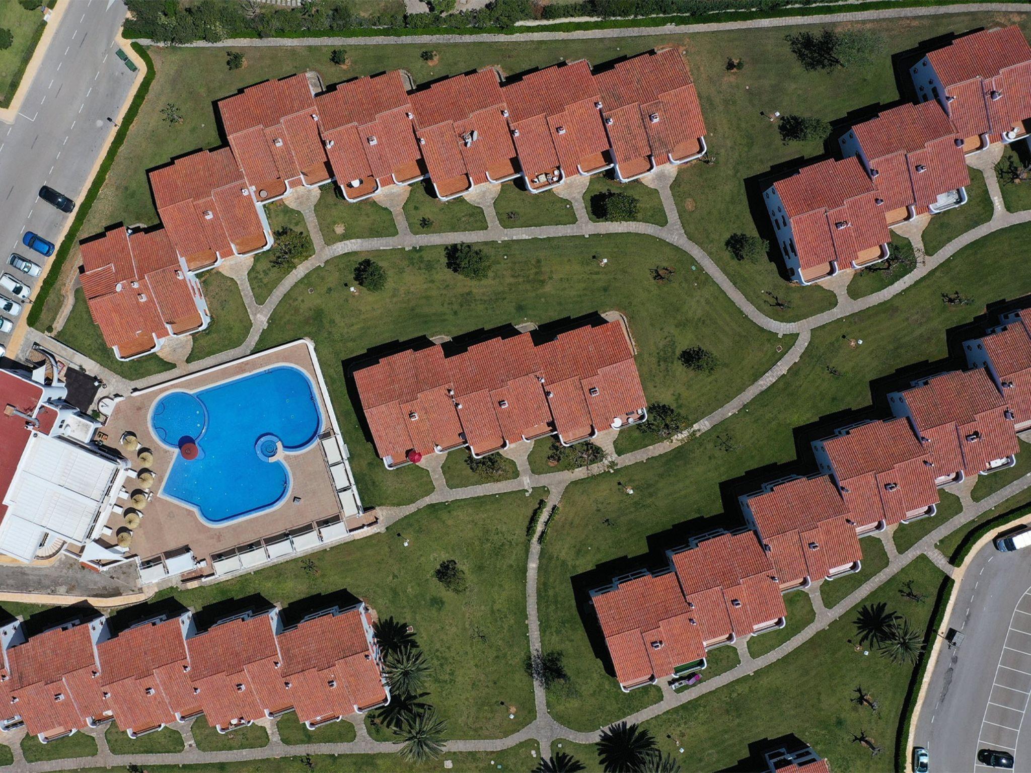 Son Bou: The swimming pools are not managed by the resort. They are managed by the restaurants in the area and the use of sunbeds / umbrellas is subject to a supplement. Some restaurants also require guests to consume in order to swim. Child friendly, cosy, rustic holiday development "Son Bou Gardens Plus", surrounded by trees. In the centre of Son Bou, in a central, sunny position, 1 km from the sea, 1 km from the beach. For shared use: park, garden, swimming pool (24 x 11 m, seasonal availability: 30.Apr. - 24.Oct.). Outdoor shower, tennis, children's playground. In the house: WiFi. Parking on the premises. Shop 200 m, grocery 300 m, supermarket 200 m, bus stop "Son Bou" 450 m, sandy beach 1 km. Golf course (18 hole) 20 km. Please note: car recommended. Baby equipment on request. Object suitable for 4 adults groups of teenagers on request only. Loading and unloading of baggage is possible at the holiday house. Airfield 20 km from the property.