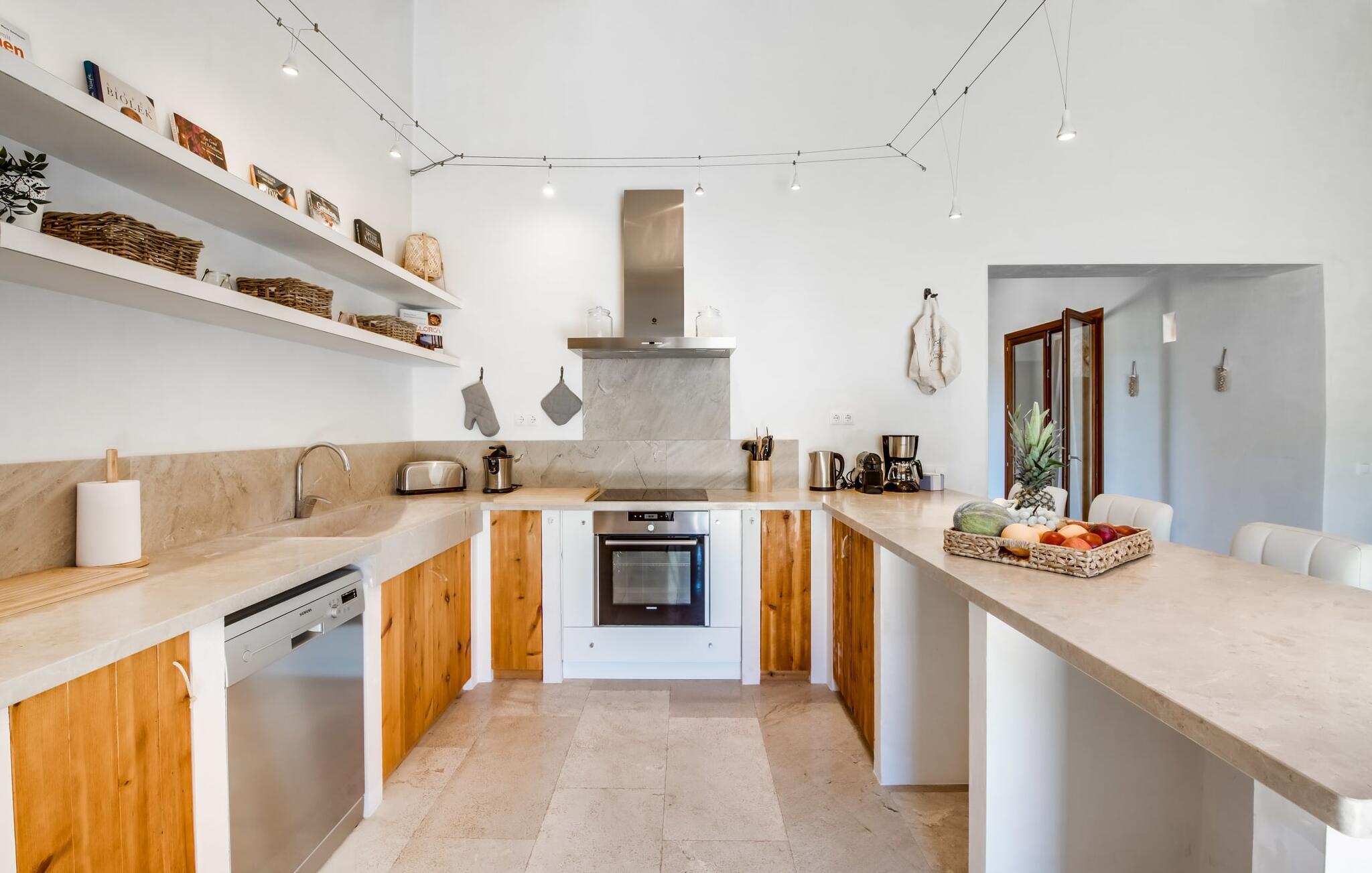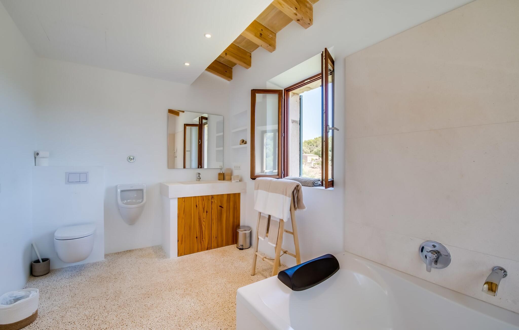 Her kan I nyde det maritime middelhavsliv til fulde uden sko og med al tænkelig komfort: Naturstensvillaen "Son Buc" med sine smukke lyseblå skodder og smukke strandobjekter i haven blev bygget for foden af en bakke i en fantastisk ugeneret beliggenhed på en kæmpe ejendom. Rundt om hele huset inviterer den kærligt anlagte have med mange hvidkalkede skibsplanker, tykke bådreb, strandbøjer og talrige høje palmer børn til leg og voksne til at blive hængende. De mange terrasser - dels solrige, dels overdækkede - ligger smukt spredt rundt i villaen og byder på en vidunderlig udsigt over den omkringliggende natur samt komfortable sidde- og liggeområder. Alle kan hurtigt finde deres yndlingssted her, hvad enten det er med en lækker cocktail på loungestolen på tagterrassen, ved det rustikke træbord til en lille snack eller med en god bog på den romantiske daybed ved poolen. Apropos poolen: Takket være et diskret hegn, der er børnesikkert, glitrer det let skrånende vand lokkende i solen og lover en forfriskning på varme dage. Takket være de mange, nogle gulv-til-loft vinduer, præsenterer "Son Buc" et vidunderligt lyst og venligt interiør. Træbjælker på lofterne og rustikke, fritlagte naturstensvægge står i kontrast til lyse hvide vægge og elegante klinkegulve - en perfekt kombination af tradition og modernitet. Indretningen er også stilfuld: En klassisk landlig stil står i kontrast til de næsten puristisk udseende møbler. Stuen med en ekstra dyb sofa, hvor I kan krølle jer sammen foran tv'et, spisepladsen med et langt træbord og kurvestole og det meget smarte, enkle og moderne køkken med hvid bord, perfekt til afslapning med en hurtig morgenmad eller et glas Vin flyder problemfrit ind i hinanden takket være det åbne design. To smagfuldt designede, rummelige og airconditionerede dobbeltværelser, et i stueetagen og et på øverste etage, der er adgang til via en stentrappe, lover søde drømme: værelserne undgår unødvendige dikkedarer og overdreven indretning, men lægger i stedet vægt på naturligt. toner og dygtig belysning. Det samme gør sig gældende for de to elegante en-suite badeværelser, det ene med bruseniche i gulvniveau og det andet med et vidunderligt bredt badekar. Selvom I ikke ønsker at forlade dette grønne paradis, så sørg for at planlægge en tur eller to til det omkringliggende område – det er det værd! Det typisk mallorcanske, bakkede landskab omkring villaen er simpelthen perfekt til lange gåture eller cykelture gennem naturen. For at shoppe, slentre gennem byen eller besøge en restaurant, skal I køre ca. 3,9 km ned ad vejen, der kan høres fra ejendommen til middelalderbyen Artà. Gå ikke glip af det farverige ugentlige marked om tirsdagen. Så tag en afslappet spadseretur gennem de smalle gader i denne smukke by med dens særlige atmosfære, som har motiveret mange kunstnere til at slå sig ned her gennem årene. Men selvom I foretrækker at tage til stranden, behøver I ikke at gå langt: Sa Marjal, en smuk sandstrand med klitter, bølger og god infrastruktur, ligger kun 10,3 km væk, mens Canyamel-stranden kun ligger 10,3 km væk. beliggende, omgivet af smuk natur, er kun 10,8 km væk. Et maritimt middelhavsparadis med hvidkalkede skibsplanker, tykke bådreb, strandbøjer og småsten omgiver den smukke naturstensvilla "Son Buc", der ligger mellem havnebyen Cala Ratjada og Artà, et kystsamfund på den østlige del af øen. Huset, med sine smukke lyseblå skodder og talrige strandfund i haven, ligger ved foden af en grøn bakke på en enorm 4 hektar stor ejendom. Den turkise pool er indlejret i et omfattende havelandskab og giver jer lyst til at gå til havet og gå barfodet. Nogle af de smukkeste sandbugter på Mallorca ligger i umiddelbar nærhed af villaen.