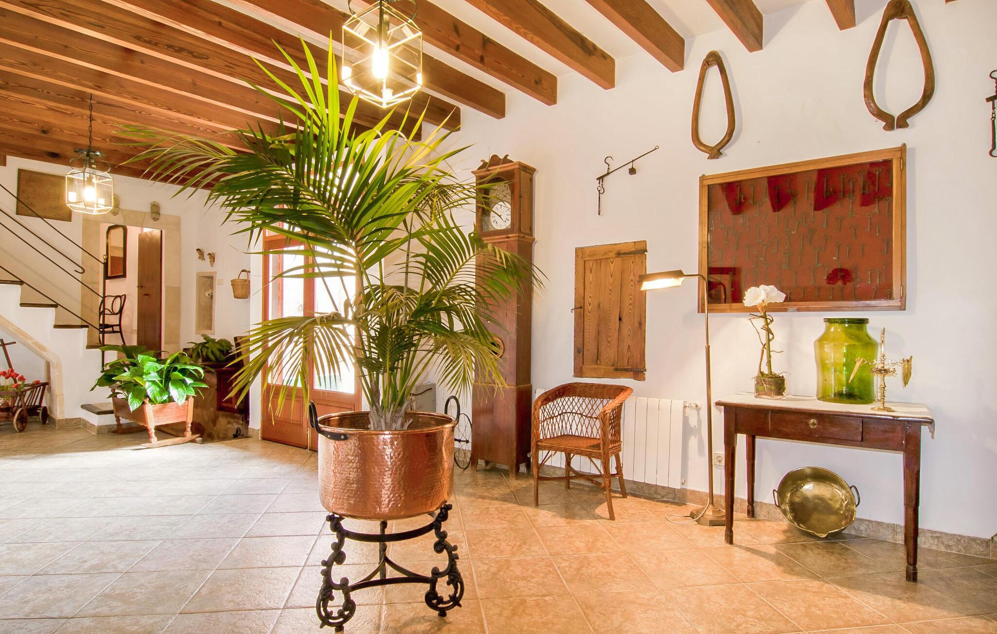 De, der ønsker at booke en villa, leder ofte efter et særligt feriehus væk fra turistmasserne, hvor de kan slappe af og have det godt. Enhver, der er interesseret i Mallorcas historie og øens etnologi, er kommet til det rigtige sted med villaen "Son Caldes", det ideelle feriehus fuld af tradition. Det gamle stuehus er kærligt og bæredygtigt omdannet til en charmerende villa, der venter på sine feriegæster. På en imponerende ejendom på 50.000 m² kan du nyde en absolut afsondret beliggenhed midt på sletterne omkring Llucmajor. Du kan nyde travlheden i denne meget smukke by kun en kort køretur væk. De venlige udlejere har opdelt det generøse boligareal på 300 m² i et hovedhus med tre komfortable soveværelser og tre badeværelser (to en-suite, det andet med et fritstående, nostalgisk badekar) samt rustikke stuer, hvoraf nogle er forbundet med charmerende sideværelser med overligger og en separat sekundær lejlighed, kun 10 m væk. Lejligheden har et lille køkken og et lækkert badeværelse. Det lille galleri ved siden af opholdsområdet, som rummer to enkeltsenge, der kan skubbes sammen, er særligt flot. Du kan sove vidunderligt direkte under taget. Lejligheden er ikke opvarmet, men har en pejs, der kan bruges til opvarmning på køligere dage. Lejligheden er ideel til børn eller teenagere (især hvis de er lidt ældre og vil nyde deres personlige rum eller tage en ven med på ferie). Hovedhuset er meget smukt designet. Synligt stenbrud og træloftsbjælker harmonerer tydeligt med de mange landbrugsartefakter. En moderne pejs, som er placeret i køkkenet, hvor komfuret plejede at stå, håndmalede typiske mallorcanske vægfliser og den mest moderne komfort gennem det amerikanske køleskab med ismaskine er ikke i modsætning til hinanden. Denne gamle hytte er blevet opdateret til at opfylde moderne standarder, mens den subtilt formidler detaljer fra sin fortid med samlinger af vintage kander, vægplader, kobberpander og andre kærligt arrangerede detaljer. Opholdsstuen med lænestole og stole i forskellige farver er på et andet niveau fra køkkenet. Der er endda et fjernsyn. Den meget rummelige stue har endnu et LCD-tv. Ud over de meget komfortable og hyggelige opholds- og soveværelser er der talrige udendørs siddemuligheder. Her finder du et stort spisebord med mange stole, små skyggefulde bænke og et kaffehusensemble på fire stole under en bue, hvor du kan nyde din kaffe i solen eller skyggen. De polyrattan liggestole tilbyder gæsterne et behageligt sted at ligge ned - med skygge leveret af en parasol, hvis det ønskes - og kan nyde det rolige og milde middelhavsklima eller slappe af efter en svømmetur i den private pool. Kunne du tænke dig en lille vinsmagning? Et særligt højdepunkt er den hvælvede kælder, som huser rigtige vintønder. Et særligt rustikt sted at tilbringe en aften eller en dag i dårligt vejr Nyd din dag i villaens omgivelser, for eksempel i den nærliggende, mangfoldige by Llucmajor. Et marked finder sted to gange om ugen i Placa d'Espana, som er fyldt med adskillige caféer, restauranter og barer. Der er et stort grøntsagsmarked om fredagen, hvor du kan købe friske lokale råvarer og tilberede dem senere i villaen. Afslut dagen med en hyggelig grillmad og et godt glas mallorcansk rødvin. Da villaen ligger på vejen, der forbinder den fantastiske ø-metropol Palma med den sydlige by Santanyi, kan du nemt besøge begge byer. Shopping i Palma er et must for mange feriegæster i villaer. Afhængigt af årstiden kan du nogle gange bemærke, at villaen er omgivet af et jagtreservat. Den traditionelle villaejendom "Son Caldes" er beliggende nær den velkendte by Llucmajor på den sydlige del af øen. Gæsterne har adgang til hovedhuset og nabohuset, som ligger ca. 10 m væk. Du kan shoppe i Llucmajor og nyde travlheden på Placa d'Espana. Ø-metropolen Palma kan nås på omkring 25 minutter i bil og er perfekt til lange shoppingture. De smukke strande på sydkysten såsom Calo de San Antoni er omkring 15 minutter væk. Dette er et Fincallorca feriehus.