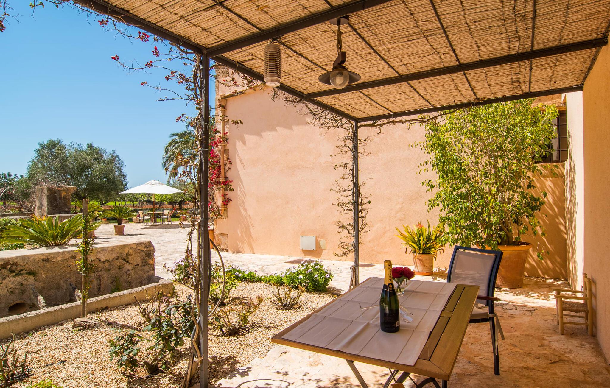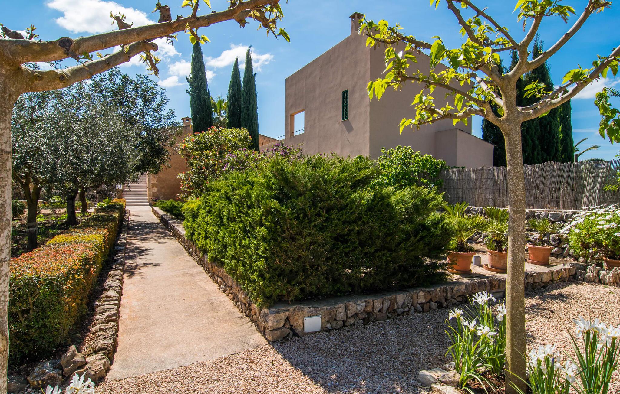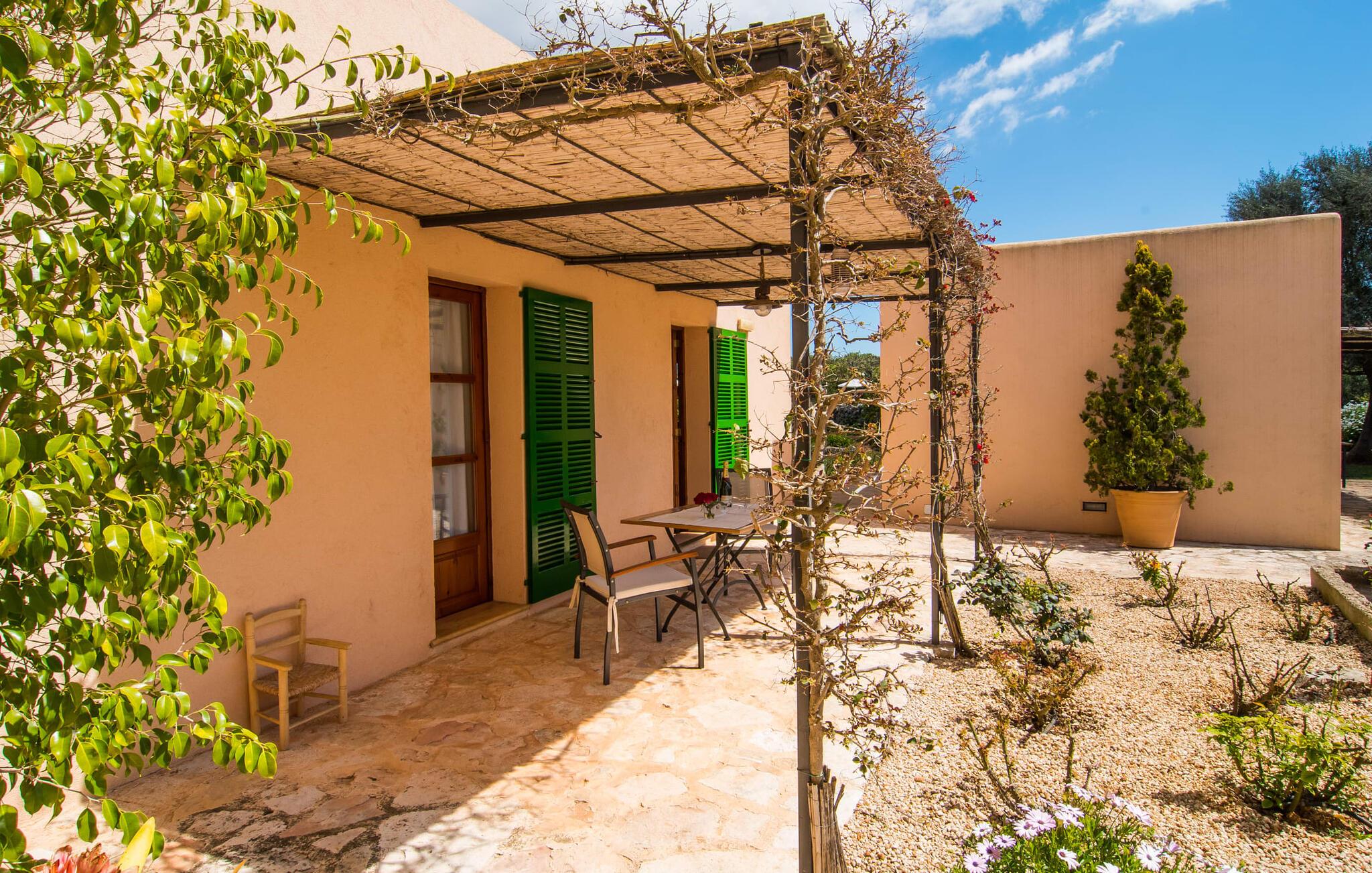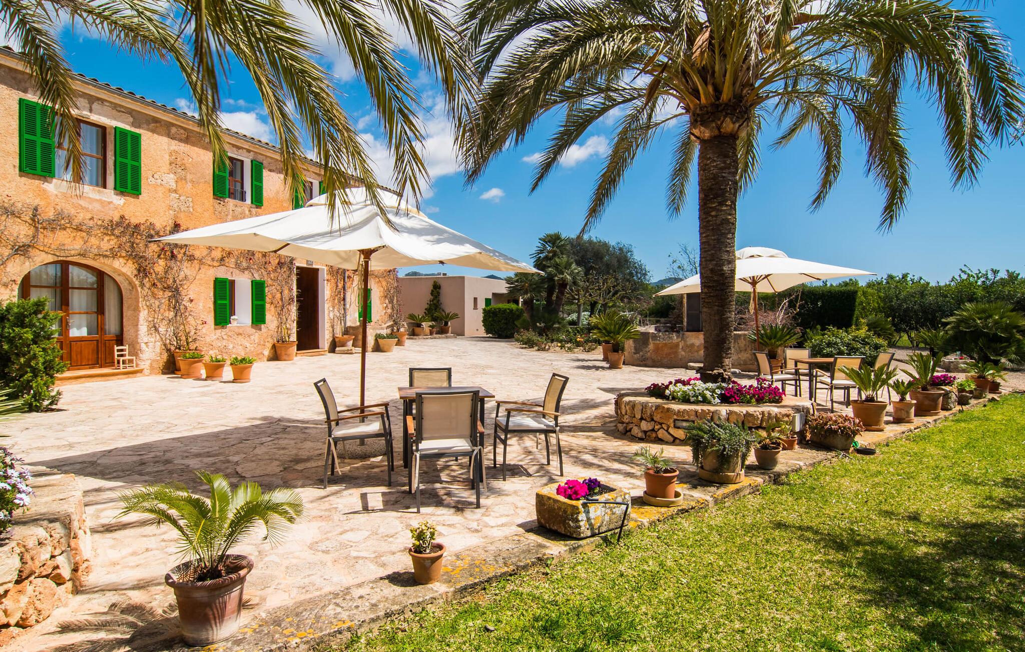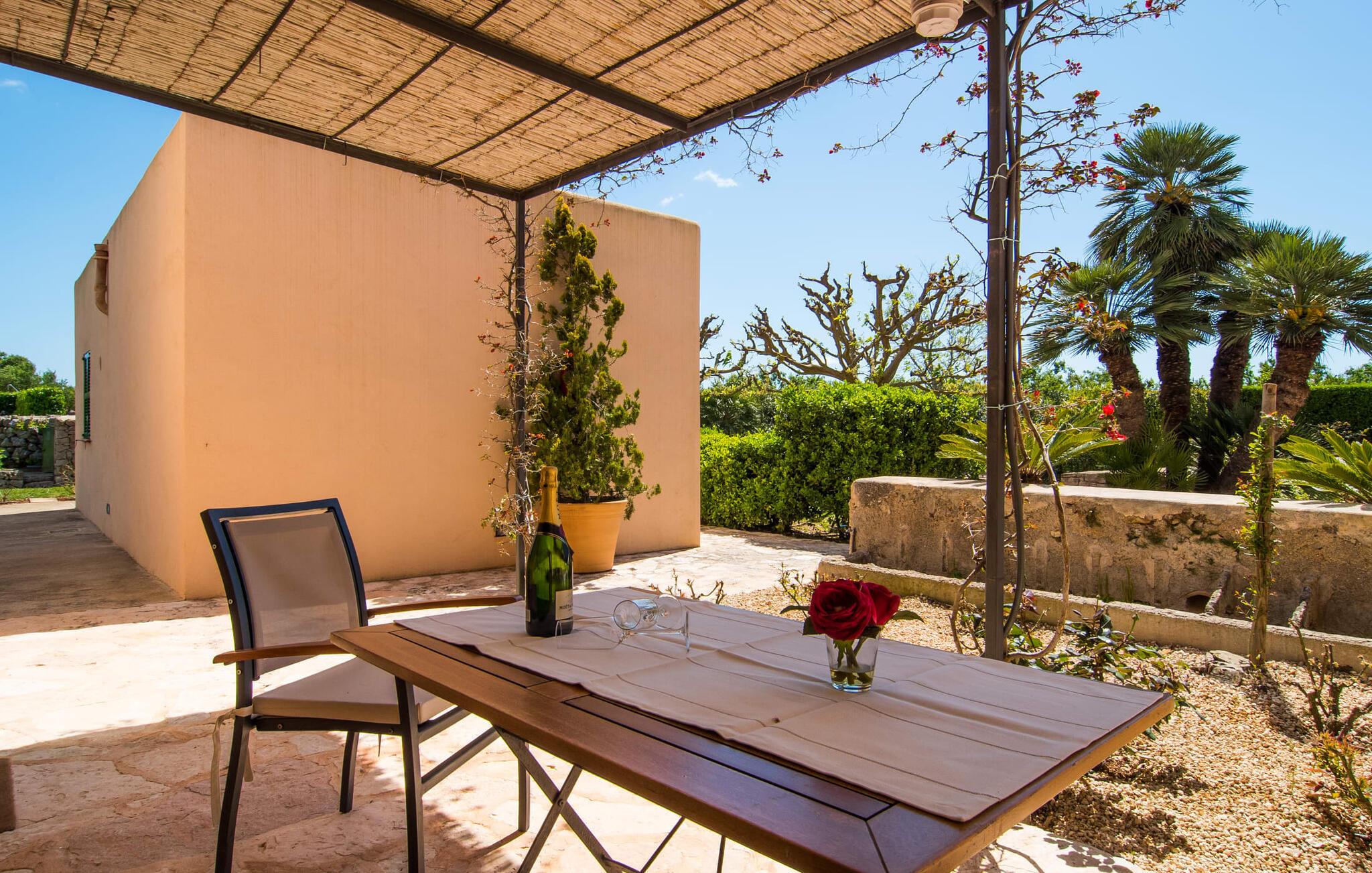 Så meget charme! Når bougainvilleaerne blomstrer, ser det over 200 år gamle hovedhus "Son Capellot" bogstaveligt talt ud til at gløde. Denne renoverede landejendom har mere end 200.000 m² jord og fem ferielejligheder, hver med et til to soveværelser - det er den perfekte feriedestination for landbrugsturisme for ren fred og afslapning! Når I går mellem de duftende æble-, citron-, oliven- og mandeltræer og ser fåreflokkene græsse i nærheden, har I naturligvis en tendens til at sætte farten ned og lade batterierne op. En vidunderlig 16 m lang pool - beskyttet af en børnebeskyttelseslåge - er som jeres eget lille hav lige foran hoveddøren, liggestole under parasoller er gratis til rådighed for alle gæster. Borde og stole på den delvist overdækkede fællesterrasse, nicher og hjørner dekoreret med blomster og den indendørs lounge med tilhørende morgenmadslokale (til kølige dage) giver rig mulighed for at sludre med andre gæster, slappe af osv. Krøll op med en god bog eller jeres yogamåtte tilbage i naturen. Og vil I efterlade jeres lejebil på ejendommen, er det kun 10 minutters cykeltur eller en halv times gåtur ind til byen, hvor I finder flere hyggelige caféer at besøge. Der er fem nyrenoverede, moderne ferielejligheder i forskellige størrelser at vælge imellem på pladsen: "Son Capellot Dos", et feriehus til to personer på øverste etage af det mindre hus, er tilgængeligt via en udvendig trappe og sin egen lille terrasse, som har en vidunderlig udsigt over haven og det omkringliggende landskab byder på. Hvide vægge og hvide møbler skaber en lys, frisk og klar atmosfære på 42 m². Foruden et hemslignende soveværelse - med dobbeltseng bestående af to madrasser på 0,90 x 2,00 m - og åben stue, er der også et indbygget køkken med komfur, køleskab og mikroovn samt badeværelse med bl.a. brus/bad kombination. I kan nemt tilberede mindre måltider selv eller bruge den fælles grill. De nærmeste restauranter er heller ikke langt væk. Lejligheden er naturligvis udstyret med aircondition og radiatorer, så I er forberedt på alt vejr i sæsonen fra april til oktober. Den lille by Felanitx har en af de ældste kirker på Mallorca og er et godt sted for en rolig ferie, men alligevel så centralt beliggende, at mange attraktive destinationer er inden for rækkevidde: fiskerbyen Portocolom og den børnevenlige sandstrand i Cala Marçal og stranden Platja de S'Arenal, det "Mallorcanske Toscana" omkring Santanyí og Cas Concos des Cavaller, Mondragó Naturpark, den smukke by Campos og Manacor, en by kendt for sine perler. Uanset om det er til fods, på cykel eller i bil - her er det utrolig nemt at komme rundt. Felanitx i sig selv er en by kendt for sine vine og vinmarker - efter en spadseretur gennem de smalle gader kan vi klart anbefale en vinsmagning i en af bodegaerne. To storslåede strukturer rejser sig mellem toppene af de omkringliggende bakker og tilbyder en spektakulær udsigt: det klippeudskårne Castell de Santueri og Santuari de Sant Salvador. Og strande som Es Trenc (25 km), Cala Sa Nau eller Cala Mitjana (begge 16 km) er bestemt et besøg værd! Idyllisk agriturisme oase af fred fra april til oktober: Lad jer fortrylle af fem separate ferielejligheder (med morgenmad) på den 200 år gamle "Son Capellot" ejendom. Frodige haver og frugtplantager, en lang, rektangulær fælles pool og den charmerende lille vinby Felanitx med butikker og et ugentligt marked - alt hvad I behøver for en helt afslappende ferie på landet. Her venter nogle af de smukkeste strande på øst- og sydkysten samt cykelture gennem vindmølleregionen.