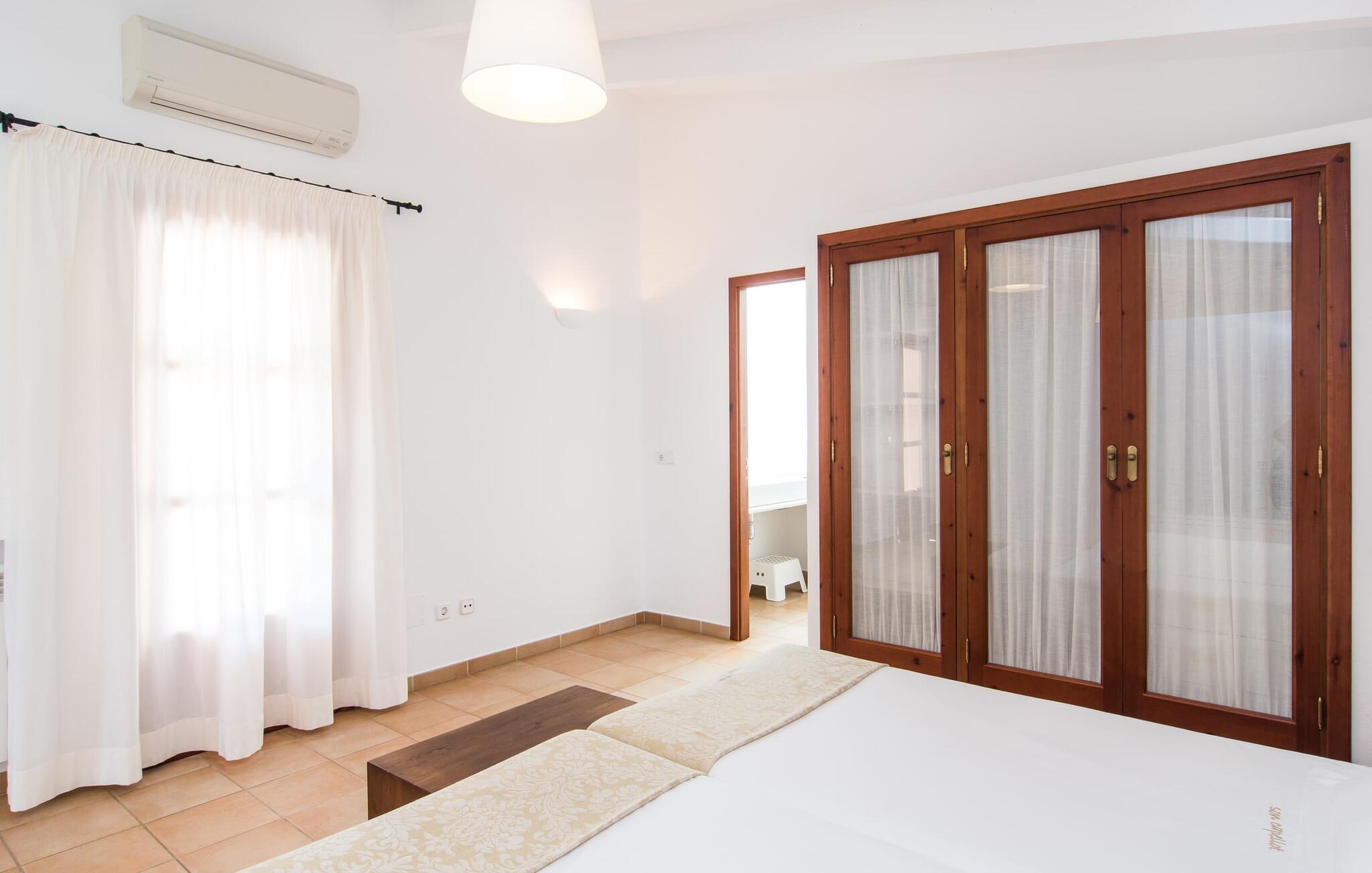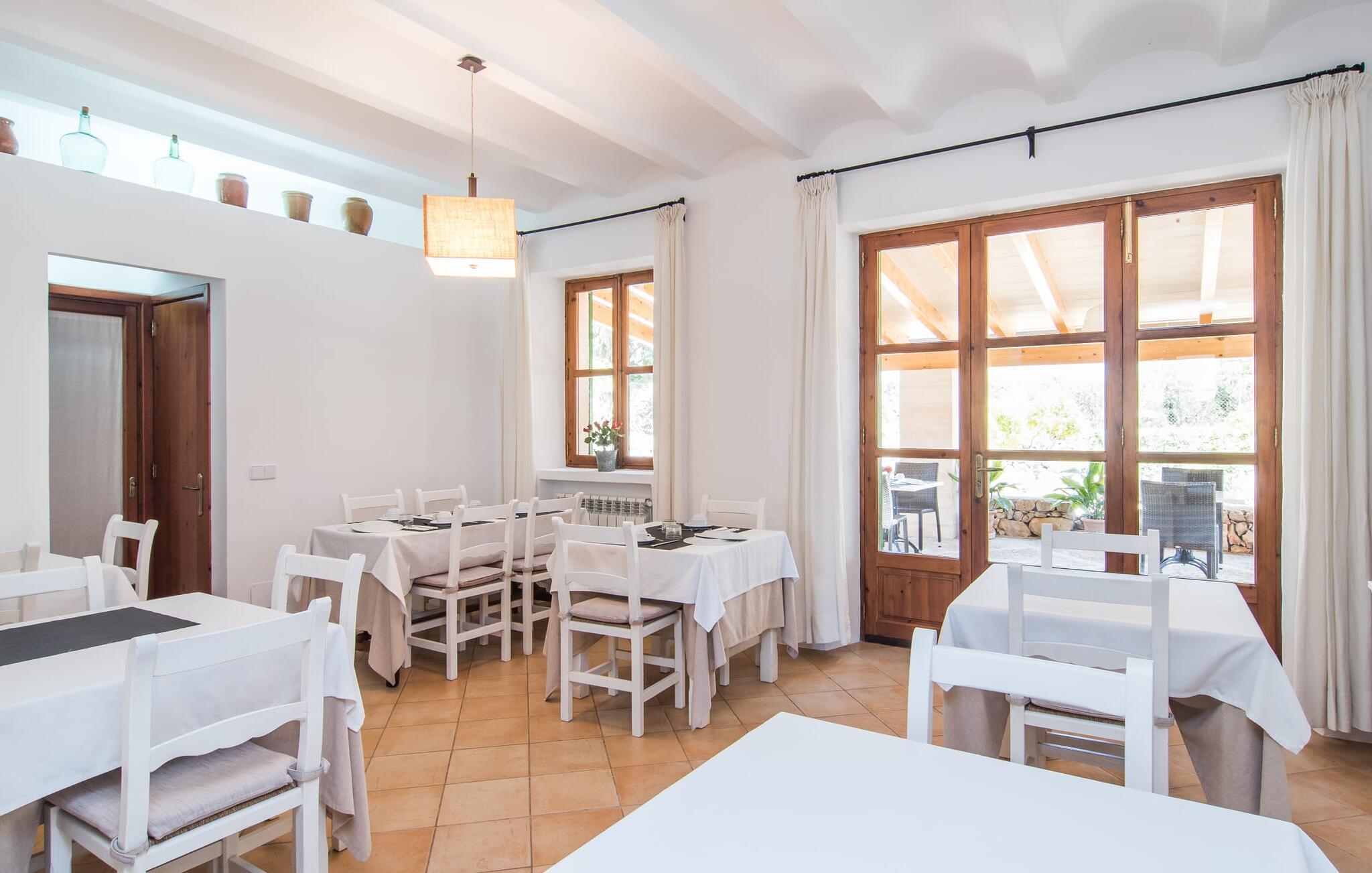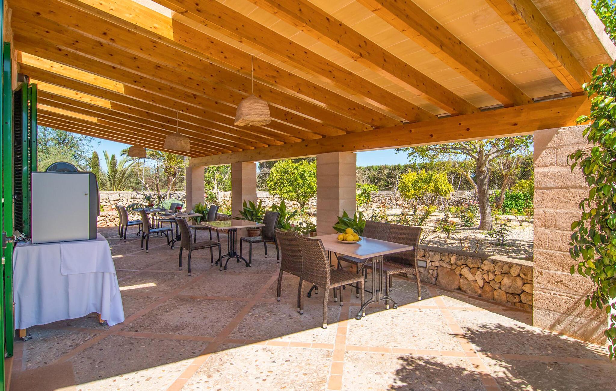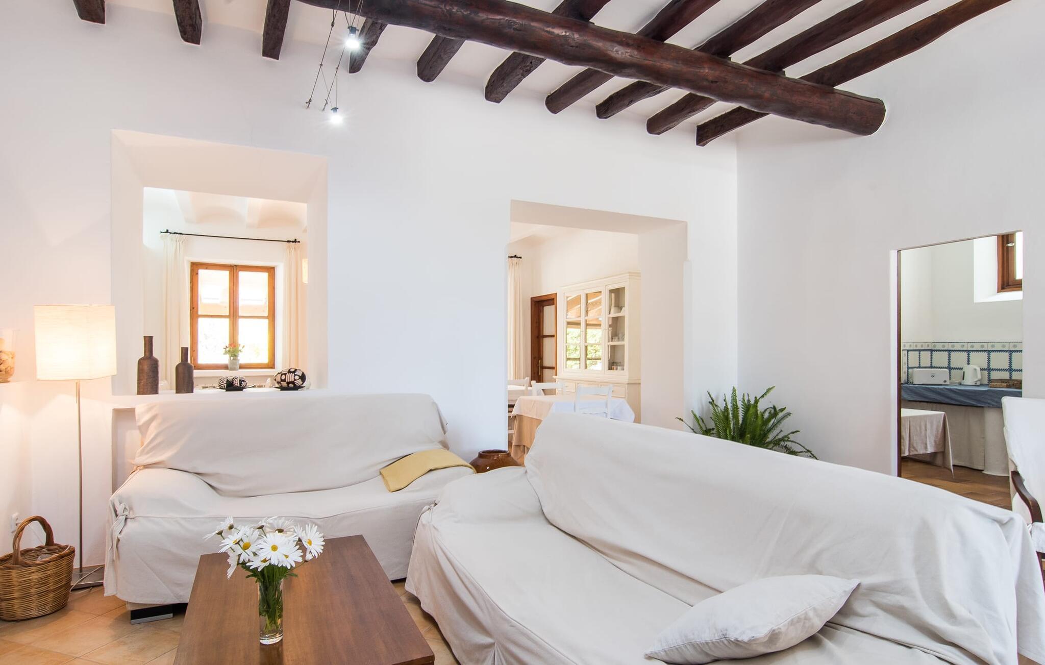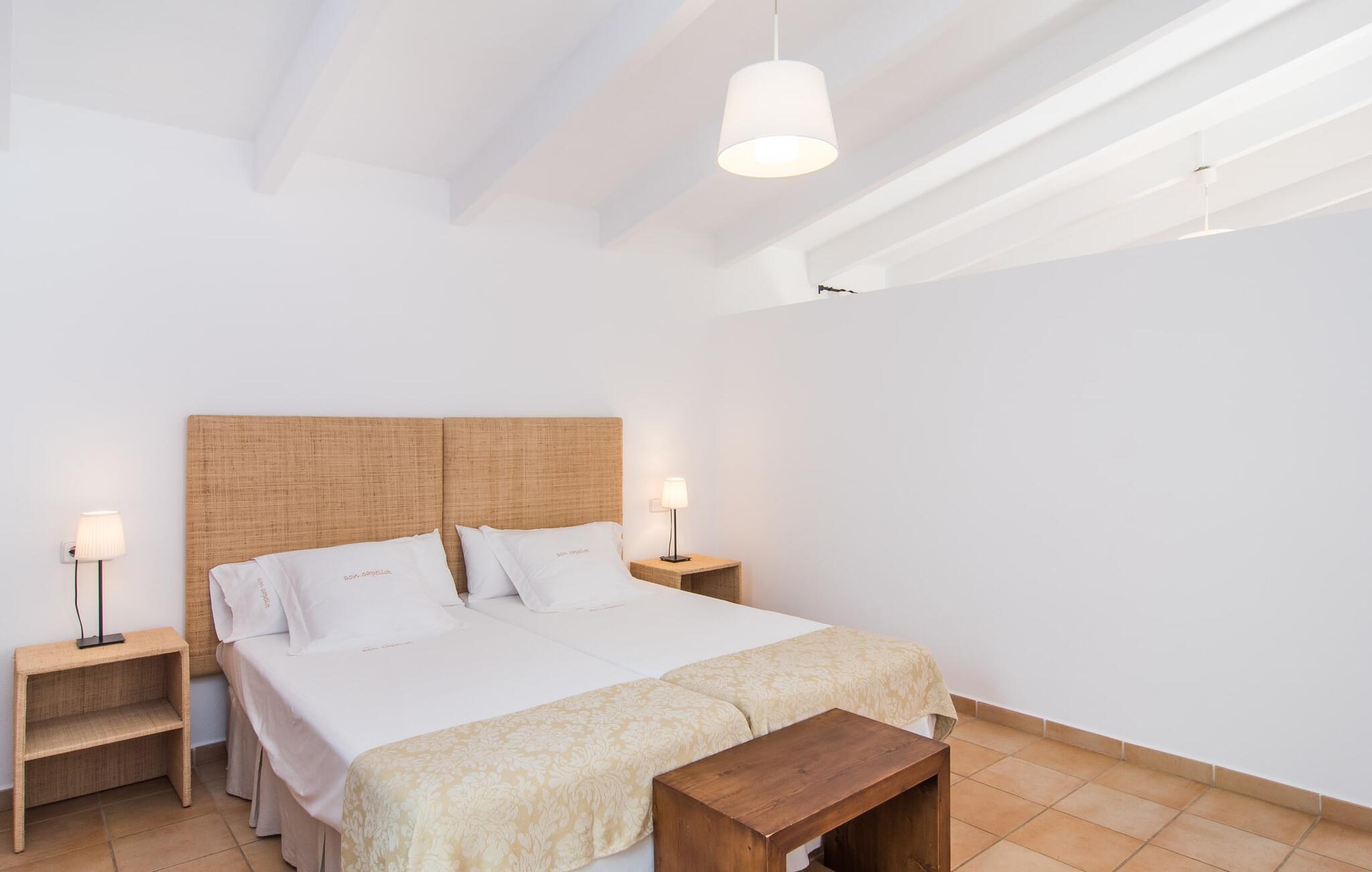 Så meget charme! Når bougainvilleaerne blomstrer, ser det over 200 år gamle hovedhus "Son Capellot" bogstaveligt talt ud til at gløde. Denne renoverede landejendom har mere end 200.000 m² jord og fem ferielejligheder, hver med et til to soveværelser - det er den perfekte feriedestination for landbrugsturisme for ren fred og afslapning! Når I går mellem de duftende æble-, citron-, oliven- og mandeltræer og ser fåreflokkene græsse i nærheden, har I naturligvis en tendens til at sætte farten ned og lade batterierne op. En vidunderlig 16 m lang pool - beskyttet af en børnebeskyttelseslåge - er som jeres eget lille hav lige foran hoveddøren, liggestole under parasoller er gratis til rådighed for alle gæster. Borde og stole på den delvist overdækkede fællesterrasse, nicher og hjørner dekoreret med blomster og den indendørs lounge med tilhørende morgenmadslokale (til kølige dage) giver rig mulighed for at sludre med andre gæster, slappe af osv. Krøll op med en god bog eller jeres yogamåtte tilbage i naturen. Og vil I efterlade jeres lejebil på ejendommen, er det kun 10 minutters cykeltur eller en halv times gåtur ind til byen, hvor I finder flere hyggelige caféer at besøge. Der er fem nyrenoverede, moderne ferielejligheder i forskellige størrelser at vælge imellem på pladsen: "Son Capellot Dos", et feriehus til to personer på øverste etage af det mindre hus, er tilgængeligt via en udvendig trappe og sin egen lille terrasse, som har en vidunderlig udsigt over haven og det omkringliggende landskab byder på. Hvide vægge og hvide møbler skaber en lys, frisk og klar atmosfære på 42 m². Foruden et hemslignende soveværelse - med dobbeltseng bestående af to madrasser på 0,90 x 2,00 m - og åben stue, er der også et indbygget køkken med komfur, køleskab og mikroovn samt badeværelse med bl.a. brus/bad kombination. I kan nemt tilberede mindre måltider selv eller bruge den fælles grill. De nærmeste restauranter er heller ikke langt væk. Lejligheden er naturligvis udstyret med aircondition og radiatorer, så I er forberedt på alt vejr i sæsonen fra april til oktober. Den lille by Felanitx har en af de ældste kirker på Mallorca og er et godt sted for en rolig ferie, men alligevel så centralt beliggende, at mange attraktive destinationer er inden for rækkevidde: fiskerbyen Portocolom og den børnevenlige sandstrand i Cala Marçal og stranden Platja de S'Arenal, det "Mallorcanske Toscana" omkring Santanyí og Cas Concos des Cavaller, Mondragó Naturpark, den smukke by Campos og Manacor, en by kendt for sine perler. Uanset om det er til fods, på cykel eller i bil - her er det utrolig nemt at komme rundt. Felanitx i sig selv er en by kendt for sine vine og vinmarker - efter en spadseretur gennem de smalle gader kan vi klart anbefale en vinsmagning i en af bodegaerne. To storslåede strukturer rejser sig mellem toppene af de omkringliggende bakker og tilbyder en spektakulær udsigt: det klippeudskårne Castell de Santueri og Santuari de Sant Salvador. Og strande som Es Trenc (25 km), Cala Sa Nau eller Cala Mitjana (begge 16 km) er bestemt et besøg værd! Idyllisk agriturisme oase af fred fra april til oktober: Lad jer fortrylle af fem separate ferielejligheder (med morgenmad) på den 200 år gamle "Son Capellot" ejendom. Frodige haver og frugtplantager, en lang, rektangulær fælles pool og den charmerende lille vinby Felanitx med butikker og et ugentligt marked - alt hvad I behøver for en helt afslappende ferie på landet. Her venter nogle af de smukkeste strande på øst- og sydkysten samt cykelture gennem vindmølleregionen.