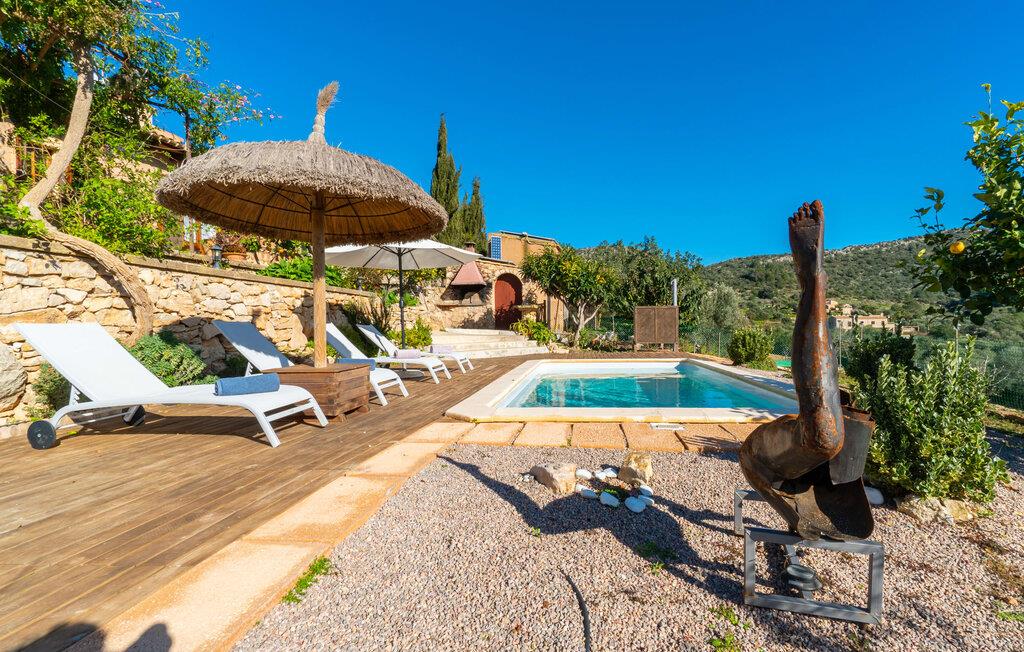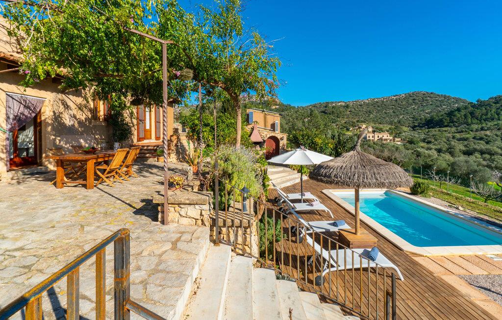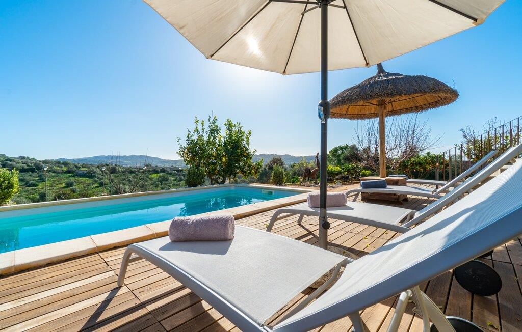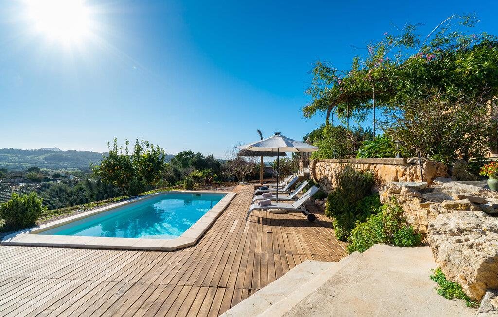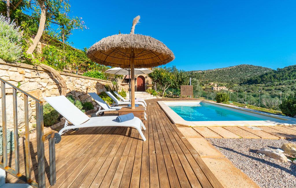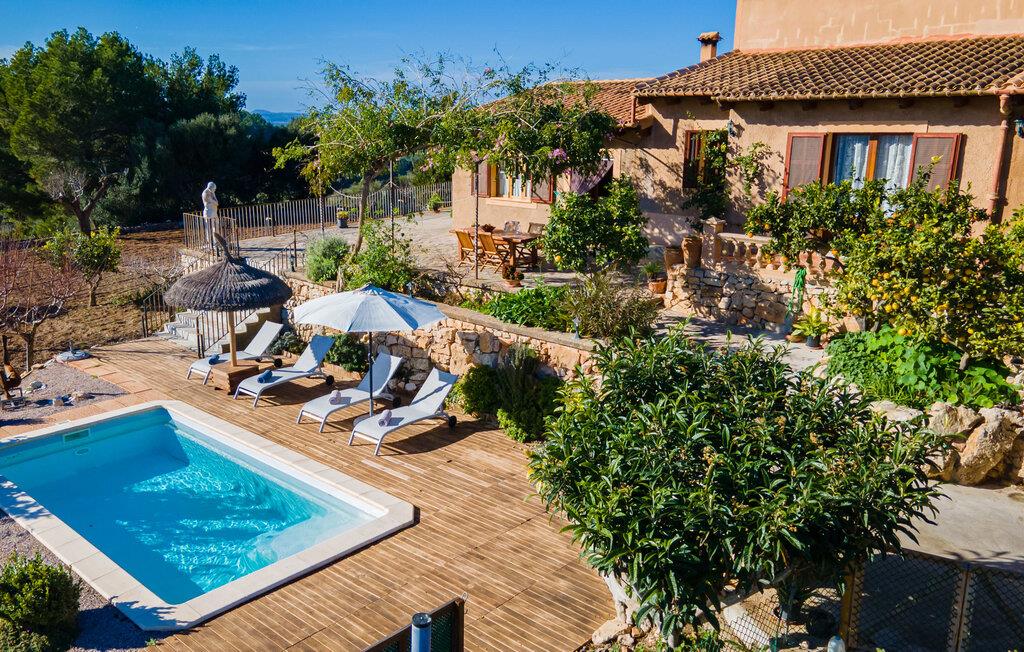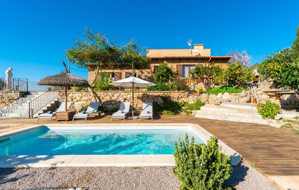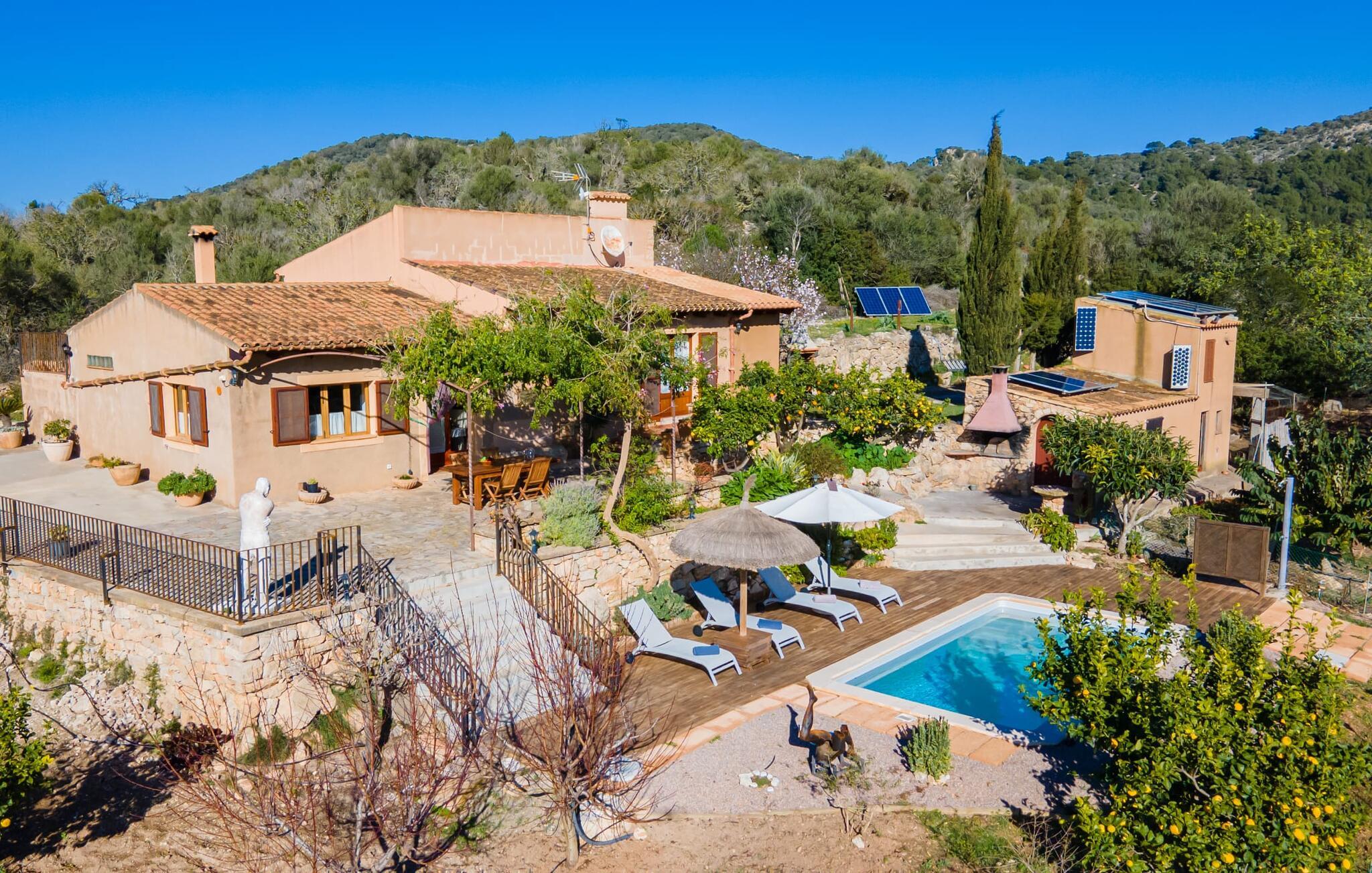 Mange komplimenter kan gives til den charmerende stenvilla "Søn Cladera Bosch"; Den samlede pakke er lige her. Det bedste ved det er, at I simpelthen kan tilbringe jeres ferie her og føle jer godt tilpas. Ejerne har sans for flot havedesign og skaber en idyllisk oase, hvor I kan trække vejret dybt og glemme hverdagen under den mallorcanske sol. Frisk grønt breder sig ud over siddeområdet foran terrassen og giver skygge og en følelse af ren idyl. Når I klatrer op i poolen, vil I blive mødt af en betagende udsigt, der vil øge jeres afslapning. Til dejlige aftener kan I bruge murstensgrillen og det tilstødende opholdsområde, hvor I kan nyde den kærligt rustikke mallorcanske charme. Indvendigt skaber naturlige materialer som træ en varm og indbydende atmosfære. Forrummet med sine store glasflader leder jer trin for trin ind i jeres sommerhus. Stueetagen har en rummelig opholds- og spisestue, der viser villaens håndværk og historie. Detaljen i designet er tydelig, med smukt skulpturelle trapper, der fører jer til de to komfortable soveværelser. Nyd hvert betagende øjeblik; Det er trods alt de små ting, der gør jeres ferie så speciel. Stenvillaen "Son Cladera Bosch" ligger i et smukt skovområde nær Manacor. På den østlige del af øen kan I nyde en særlig smuk udsigt over landskabet. Til jeres daglige behov skal I blot køre cirka 3 km til det nærmeste supermarked i byen. Travle Manacor er det bedste sted at starte en shoppingtur. Drømmestrande som Cala Bota eller Cala Virgili med deres krystalklare vand kan nås på kun 11 km.