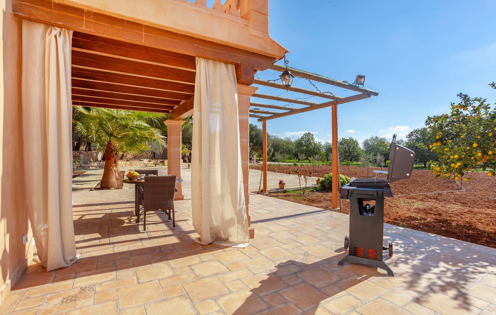 Et hus for to - i en rolig beliggenhed, med en pool (åben fra marts til november) og flair og plads... det er ikke nemt at finde! Især små villaer er en sjældenhed på øen og er samtidig meget populære blandt enlige rejsende og par. Den landlige beliggenhed giver mulighed for en befriende udsigt over det smukke flade til let kuperede område; Ejendommen på over 5.000 m² udstråler en vidunderlig følelse af fred og privatliv. Alt dette kan nydes på de skønne terrasser på flere sider af huset – eller på altanen på øverste etage, som byder på en udsigt, der rækker endnu længere ind i de maleriske omgivelser. Når vejret er godt, kan I gå en tur ad den smukke stensti til poolområdet, som ligger lidt længere fra huset og har en helt unik, idyllisk atmosfære. Omgivet af gamle træer og en asfalteret græsplæne, venter et helt specielt sted at slappe af på jer - glem ikke at tage jeres yndlingsdrink med! I kan køle ned, som I vil, eller vælge noget fysisk aktivitet. Ingen vil spørge her; I alene sætter tonen for jeres personlige feriemelodi. En glasdør fører fra terrassen ind i villaens indre med 45 m² boligareal. I træder først ind i den hyggelige lyse stue og spisestue, som er gjort endnu mere hyggelig ved pejsen og det praktiske tekøkken. Den udfoldelige sofa i naturfarvet stof matcher resten af opholdsstuen med sine terracotta-fliser og synlige træbjælker. Den anden del af køkkenet - vask, opbevaringsplads - er lige om hjørnet, så man nemt kan dele opgaverne op uden at komme i vejen for hinanden. Et badeværelse med bruser på den anden side af gangen fuldender denne etage - og en etage deroppe er der en anden, som også rummer soveværelset med udgang til det fri og altan. Efter I har sovet her, kan I om morgenen se ud over det store landskab – som om I stadig drømmer. I dette venlige og velholdte feriehus er I som par sikre på at finde den fred og ro I har brug for og tid sammen væk fra hverdagens stress. Hvis I ønsker at forlade jeres oase for en kort tid, er der meget at opdage i det omkringliggende område. Den lille, lidt søvnige by Porreres byder på en oplevelse hver tirsdag: halvdelen af landsbyen går til det ugentlige marked. Udover frugt og grønt kan I også finde husholdningsartikler, tøj og sko der. Boderne er spredt ud over hovedtorvet og de mindre gader. Klippeslottet Castell de Santueri og klosteret San Salvador ligger i nærheden af Felanitx og vil hver især belønne jer for jeres indsats med en fantastisk udsigt. Syd- og østkystens strande kan nemt nås med en lejebil - vi anbefaler en model, der er velegnet til landeveje på grund af adgangsvejen - til afslappede, afslappede dage på stranden. Den originale to-personers villa "Son Coix Nou" ligger på en rummelig grund i en afsondret landlig beliggenhed nær Porreres (ca. 5 km), hvor I kan gøre jeres daglige indkøb. Stedet er lidt væk fra hovedvejen mellem Llucmajor og Felanitx. I kan for eksempel tilbringe en smuk dag på kysten i havnebyen Colonia de Sant Jordi. De nærmeste strande som Cala Murada eller Cala Tropicana ligger ca. 24 km væk.