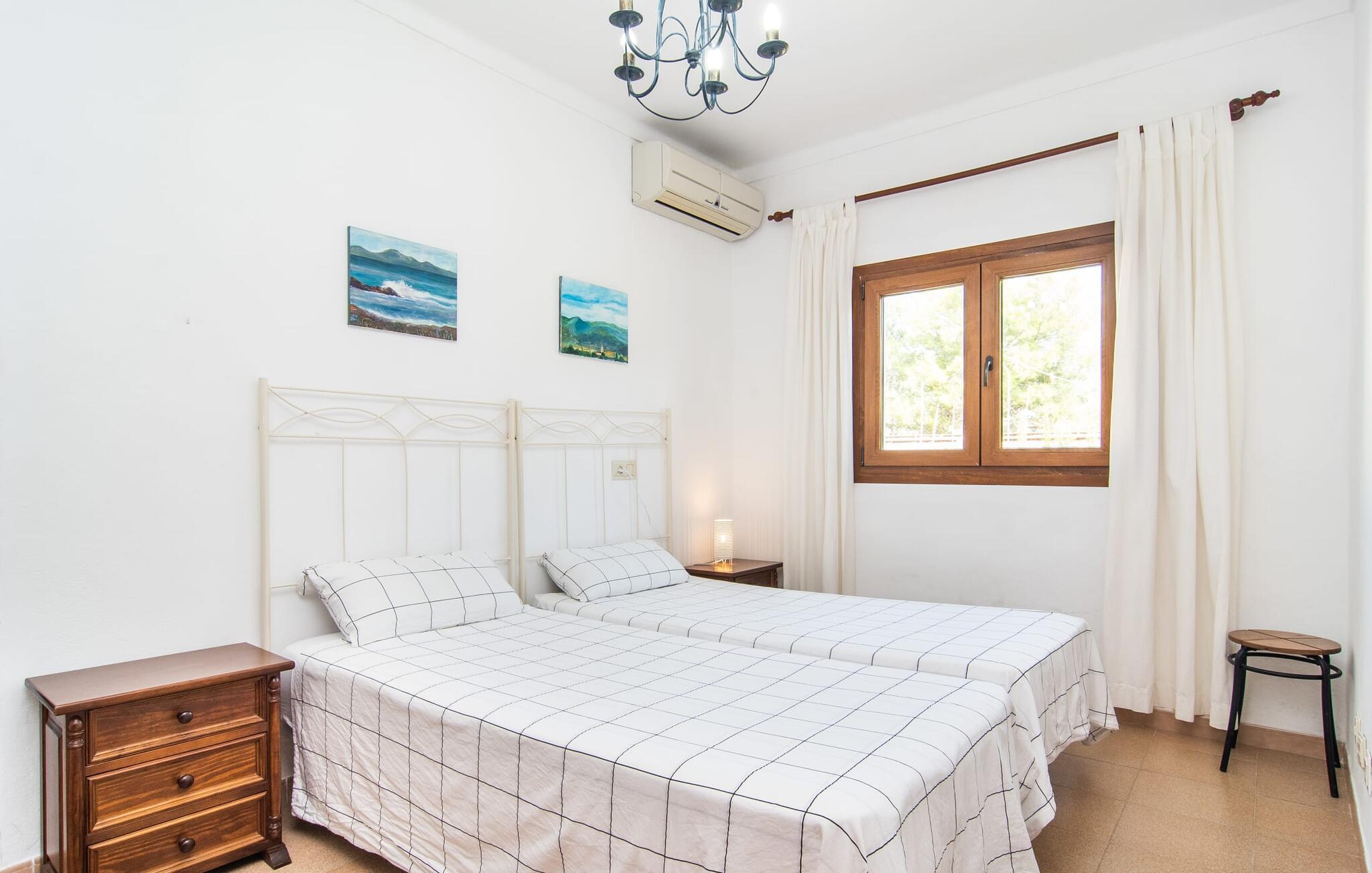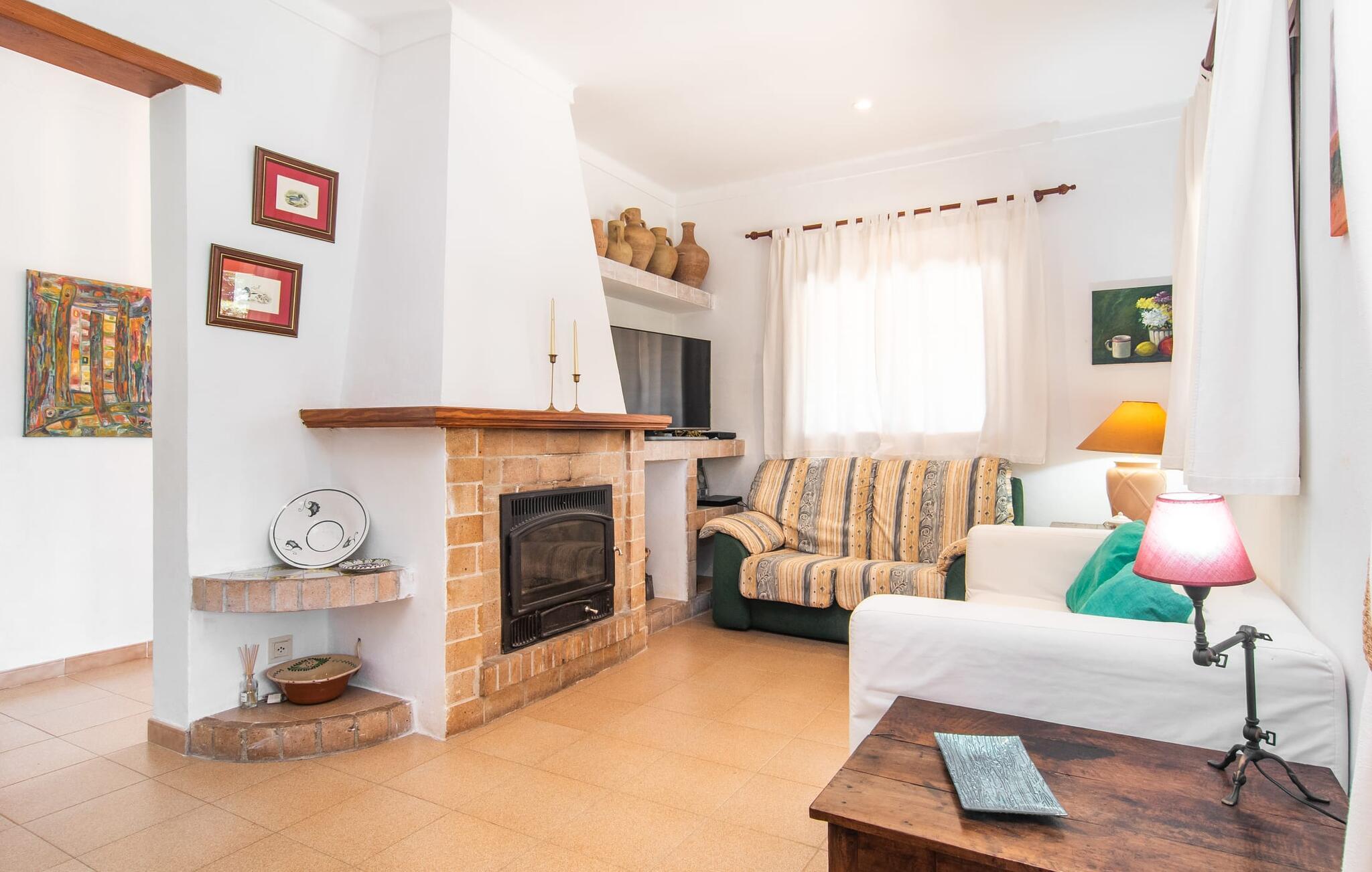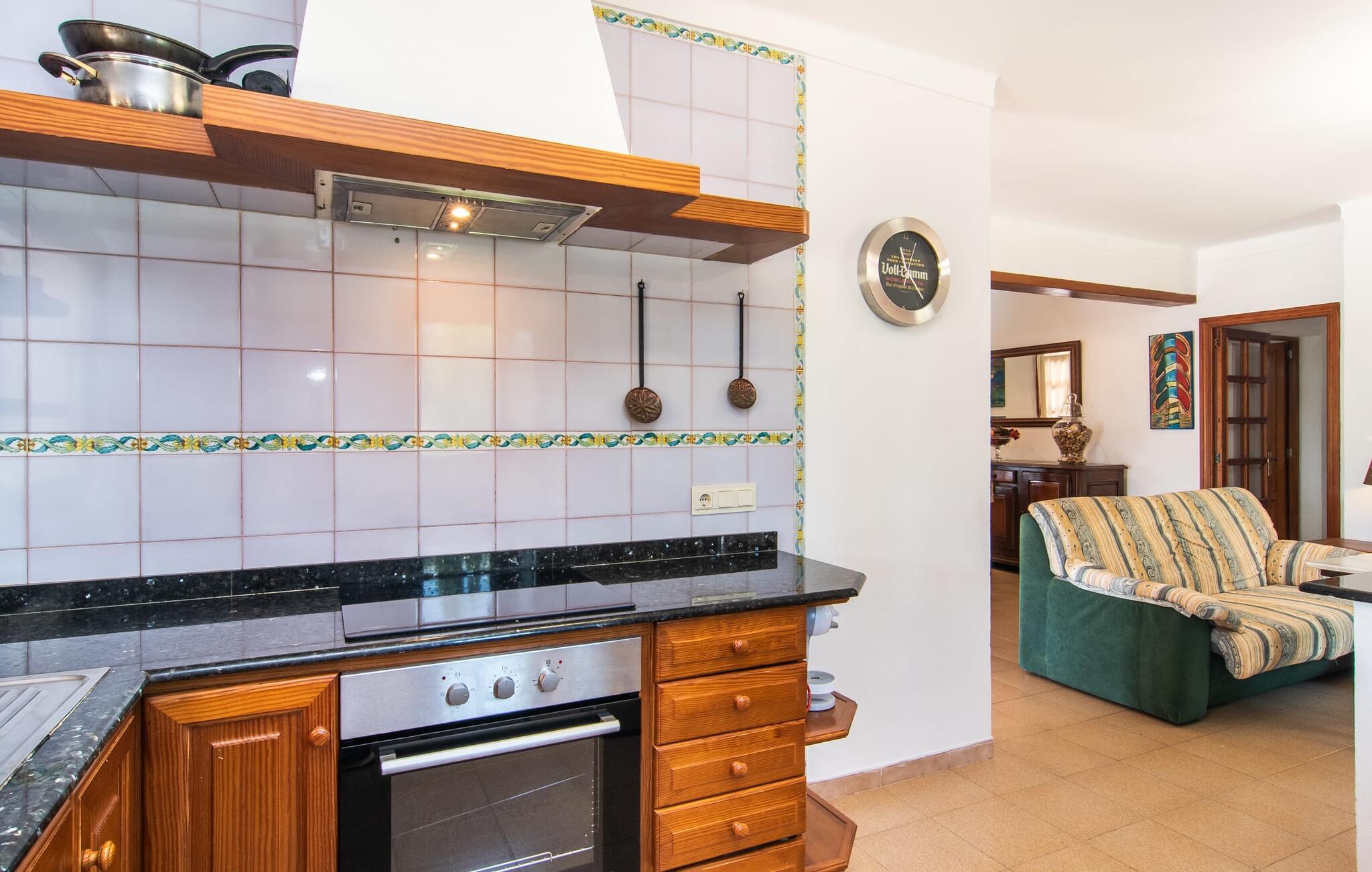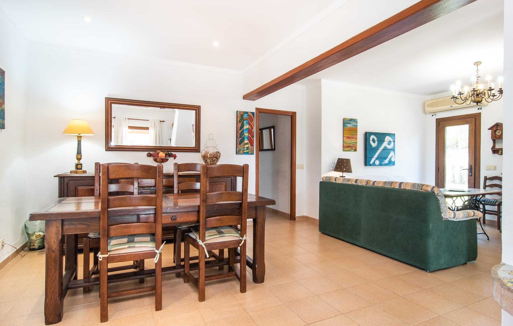 Nyd en sporty ferie i det klassiske bondehus "Son Coll" i hjertet af Mallorca, beliggende mellem Tramuntana-bjergene og Palma. Dette hyggelige feriehus er perfekt til vandreture, cykling og afslapning ved poolen, som har et smukt mosaikdesign og er omgivet af terrasser og græsplæner. Der er komfortable liggestole og skyggefulde områder at slappe af i, mens børn kan lege på græsplænen eller svømme i poolen. Udendørsområdet er designet til nydelse og har en udendørs bruser, flere terrasser med siddepladser til afslapning og et overdækket udendørs køkken med kulgrill og pizzaovn. Haven, omkranset af en grøn hæk, sikrer privatlivets fred og er samtidig bekvemt placeret i gåafstand til restauranter og caféer. Indenfor giver det fuldt udstyrede spisekøkken mulighed for familiemåltider, suppleret med en hyggelig tv-stue med pejs. Det lyst indrettede feriehus har værelser med varme og aircondition. Tilbyder overnatning for op til fem gæster i tre velindrettede soveværelser, med masser af opbevaringsplads til jeres ejendele og to badeværelser med badekar eller bruser. Oplev en varieret ferie med en central beliggenhed med historiske byer, kulturelle seværdigheder og de betagende Tramuntana-bjerge i nærheden. Vi ser frem til jeres besøg! Feriehuset "Son Coll" ligger i gåafstand fra landsbyen Lloseta i hjertet af Mallorca. Det er 30 minutters kørsel til den lange, familievenlige strand Playa de Muro. Toglinjen, der kører langs ejendommen, forbinder jer til øens hovedstad Palma på 40 minutter og til Incas centrum på 16 minutter.
