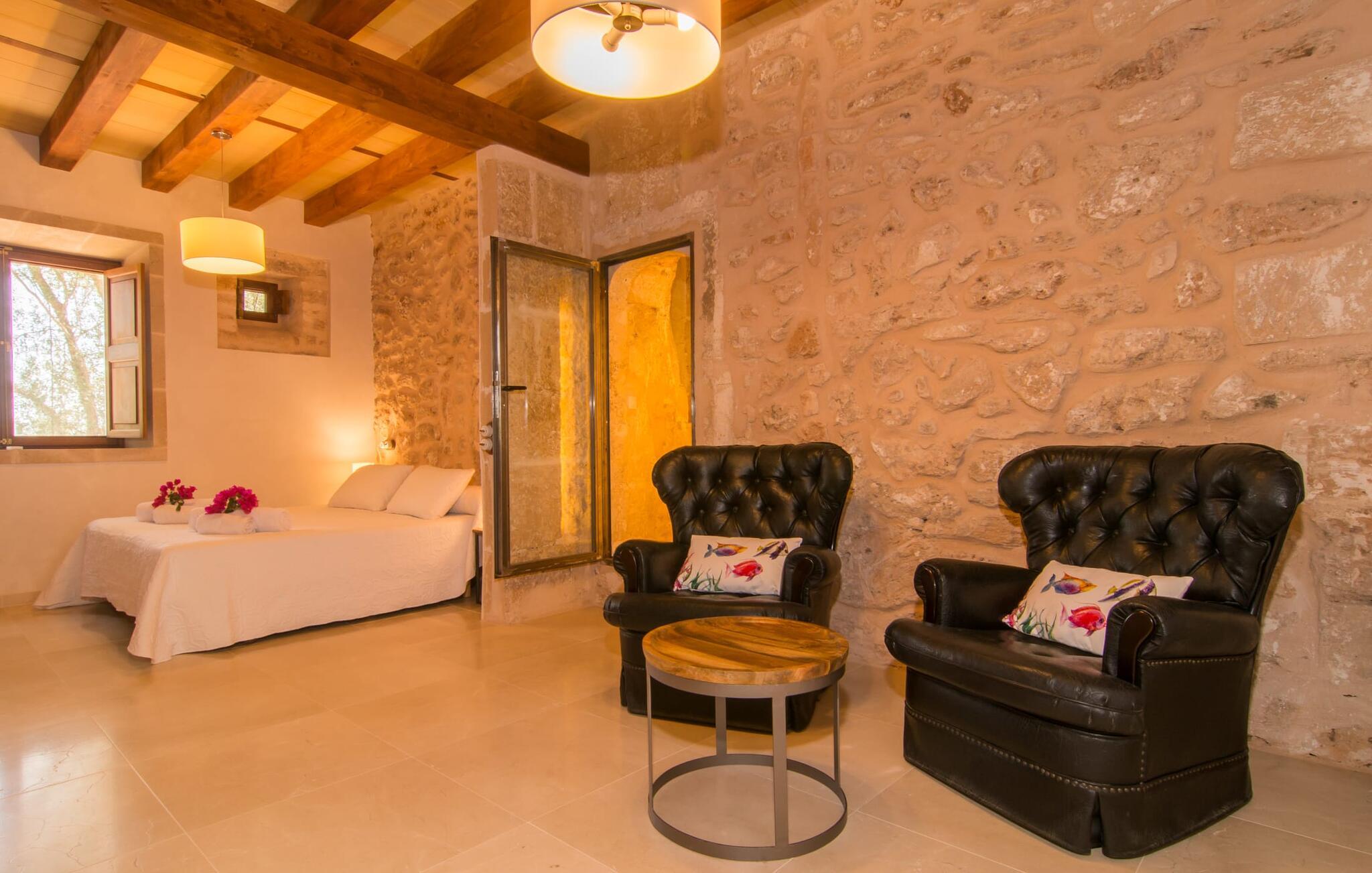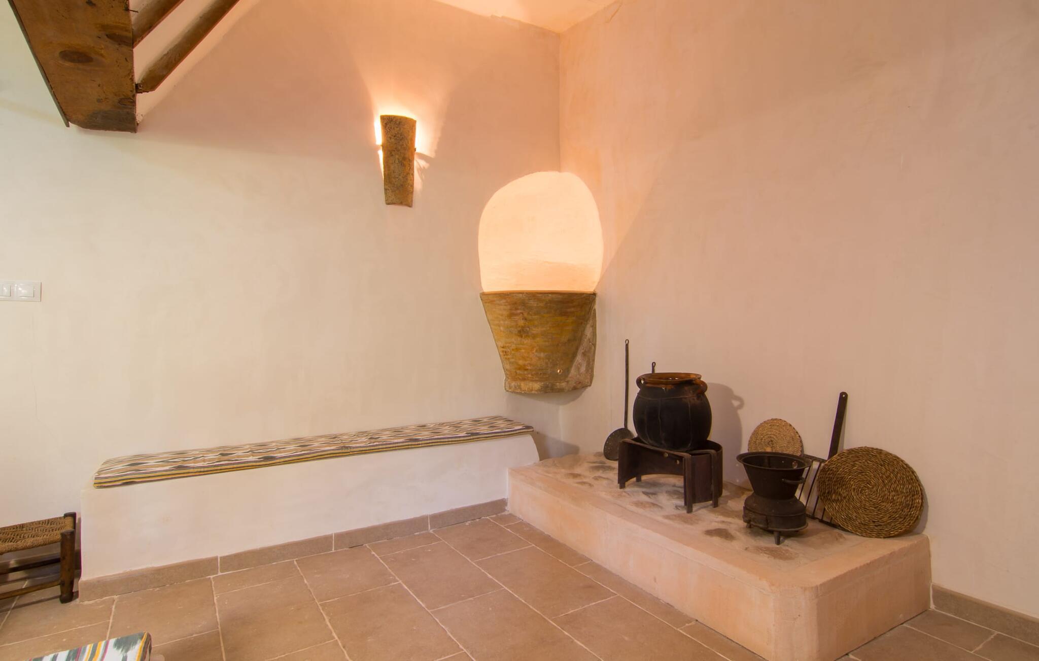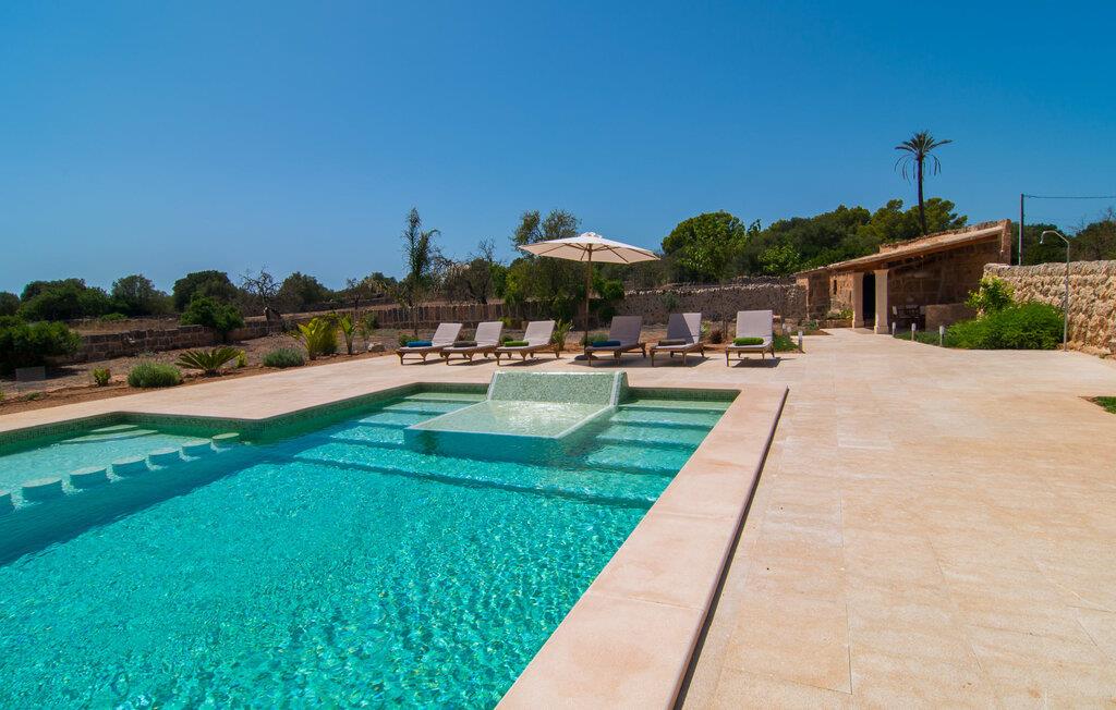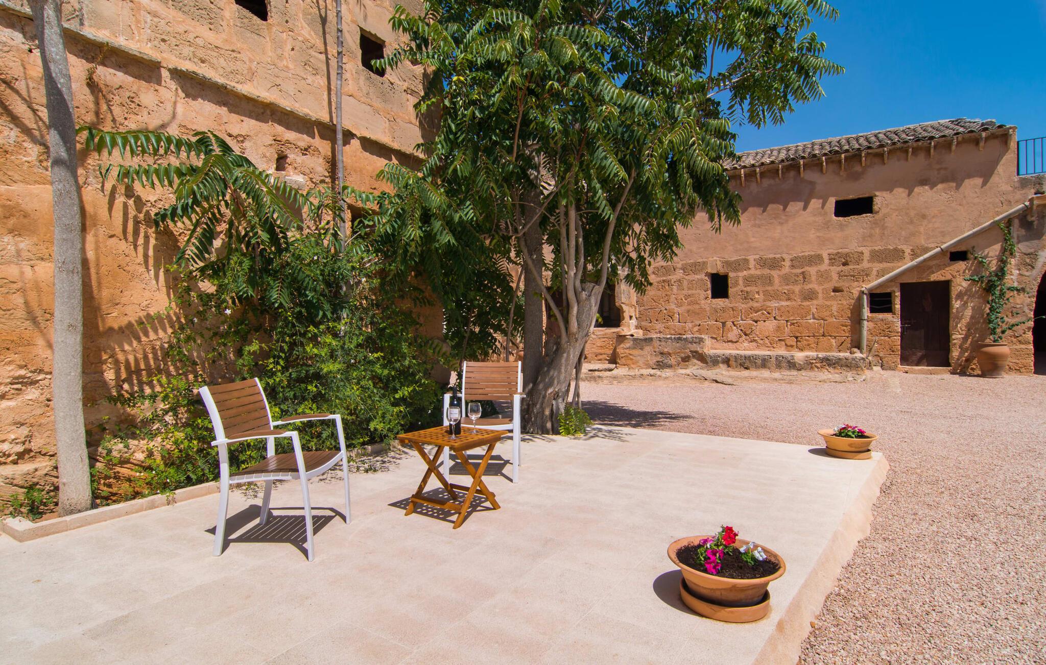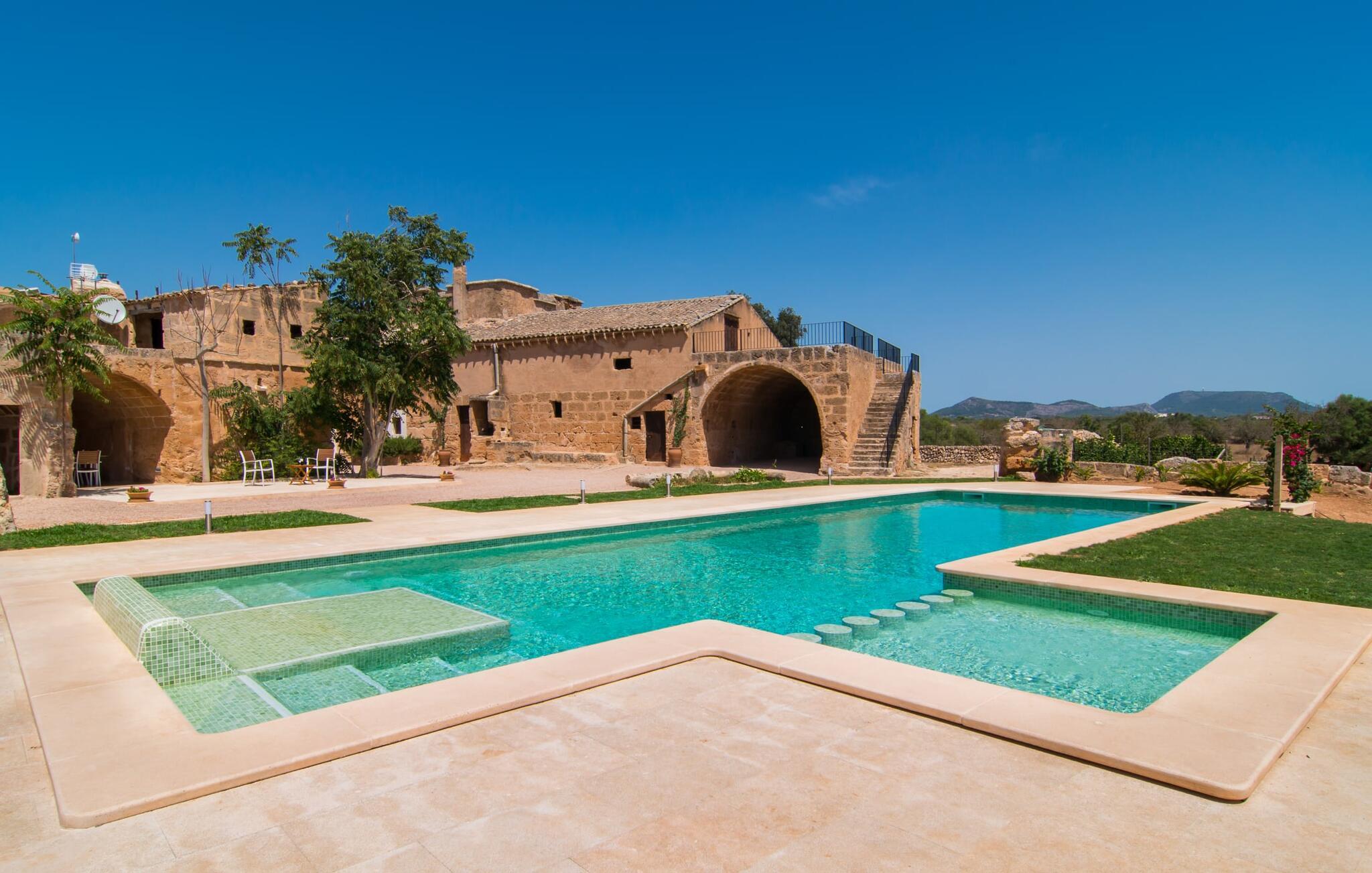 Der er villaer, der giver jer følelsen af, at halvdelen af Mallorca ligger for jeres fødder. Dette er tilfældet med villaen "Son Delabau Gran". Så snart I når den vidtstrakte ejendom efter en kort køretur fra den mallorcanske lufthavn, sætter følelsen af tidløs luksus uundgåeligt ind. På trods af den attraktive nærhed til spændende byer som Palma eller Llucmajor, emmer udsigten over det omkringliggende landskab af ren landlig idyl. Og måske vil den buede terrasse minde jer om de store tider i jeres barndom, hvor I havde en særlig forkærlighed for slotte, der lignede noget ud af et eventyr. Smalle trin, der giver indtryk af et gammelt vartegn, fører til en smuk tagterrasse, hvor I kan nyde øens solskinn. Poolvandet glitrer forførende i solen, noget I måske ikke kan modstå længe. Og hvorfor skulle I det? En af de gavnlige effekter ved vand er, at maden smager meget bedre bagefter. Især når det blev tilberedt i sådan et hyggeligt udekøkken, perfekt udstyret til en stor BBQ. Når I ligger på en af liggestolene og ser solnedgangen eller bruger et af siddeområderne - som pergolaen eller chill-out loungen - til at smage et glas ø-vin, vil I vide: I gjorde alt rigtigt, en mere billedskønt Der er ingen idyl. Vildt romantiske roser kravler op ad stenmursfronten i indgangspartiet. Når I kommer ind, befinder I jer i et hus af særlig kvalitet. I finder ikke noget overflødigt her, den minimalistiske og hyggelige stil minder om skandinavisk æstetik, samtidig med at den "finca-agtige" landlige charme stadig er til stede i næsten alle hjørner. Et hyggeligt opholdsområde med en stenbænk badet i varmt lys, ideel til lange nætter med historie, kan blive et af jeres yndlingssteder i huset. Det kunne den grønne sofa, hvorfra I kan se ud i jeres drømmehave, sige noget om det. Der er to spisepladser. En af dem ligger lige ved siden af det allerede nævnte opholdsområde og springvandet, det andet spisebord står i et større rum. Vinduerne, der varierer i størrelse og form, bidrager til originaliteten af den magiske stemning. Et af værelserne ligner endda et kapel med sit farverige glasvindue i loftet. Her kan I for eksempel meditere om morgenen for at starte dagen afbalanceret og i godt humør. Indretningen af værelserne er meget rustik de to soveværelser nås gennem snoede gange. Hver af dem har sit eget badeværelse, og det lille tredje soveværelse er det perfekte sted for børnene. Naturstensvægelementerne i huset skaber en hjemlig slotsstemning, som også formidler modernitet gennem de hvide farver og det venlige lyskoncept. Så I vil føle jer frisk, når I forlader ejendommen om morgenen. Vejen er let at nå, hvilket kan forårsage hørbar trafikstøj afhængigt af vindretningen. I er ikke meget mere end 10 minutter fra Llucmajor, hvor det livlige Placa d'Espana byder på en farverig blanding af caféer, restauranter og barer. Der er et marked her to gange om ugen, hvor I kan forsyne jer med friske grøntsager, især om fredagen. Til en shoppingtur anbefaler vi også de 20 minutters kørsel til den pulserende ø-hovedstad Palma, som imponerer med sit mangfoldige kulturelle tilbud. Golfentusiaster vil få noget for pengene på Son Antem golfbane, 1 km væk. Efter en halv times kørsel vil I befinde jer foran den paradisiske naturlige sandstrand Es Trenc. Rejsen til Tramuntana-bjergene, som er ideel til vandreture, tager omtrent samme tid. Den fantastiske villa "Son Delabau Gran" har masser af plads og ligger mellem drømmestranden S'Arenal og Llucmajor, 11 km væk. I kan tage ind til byen og nyde den livlige atmosfære på Placa d'Espana. Da I kun er 20 minutters kørsel fra hovedstaden Palma, finder I masser af variation i byens centrum. Efter shopping kan I slappe af på sydkystens strande, herunder Calo de San Antoni.