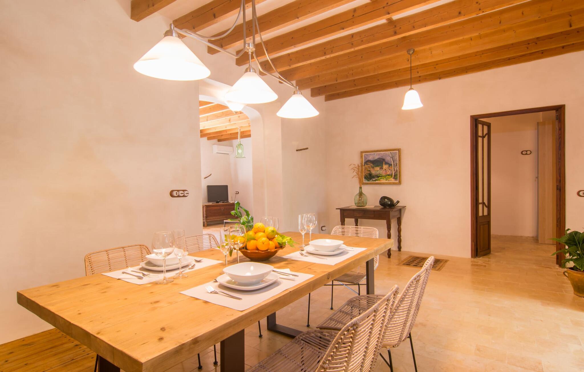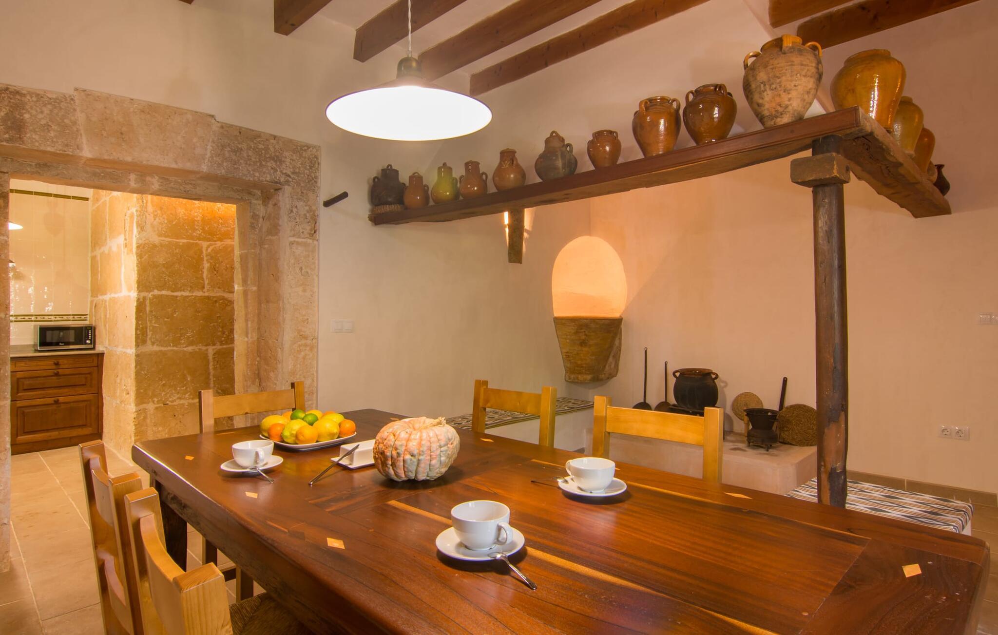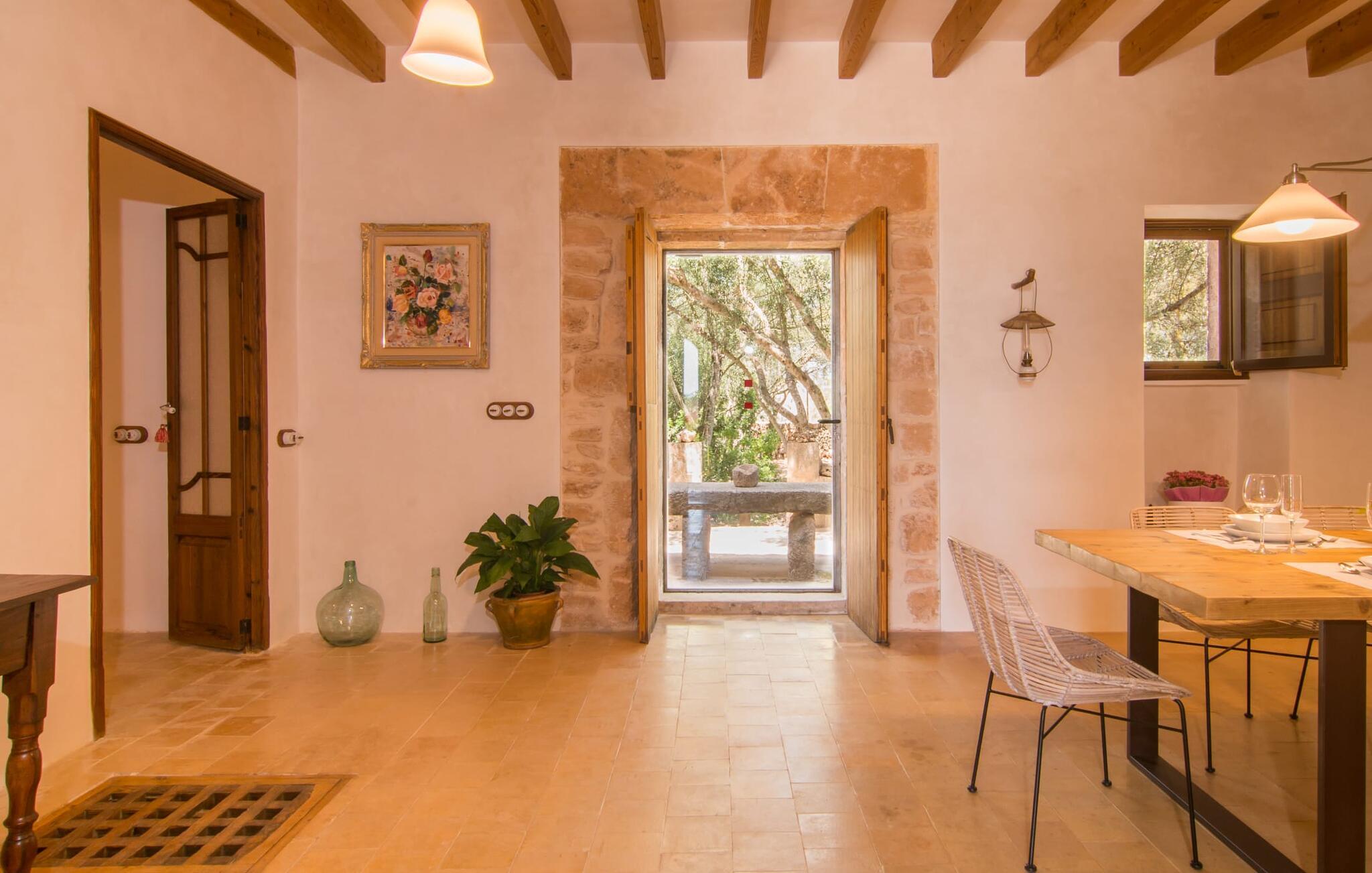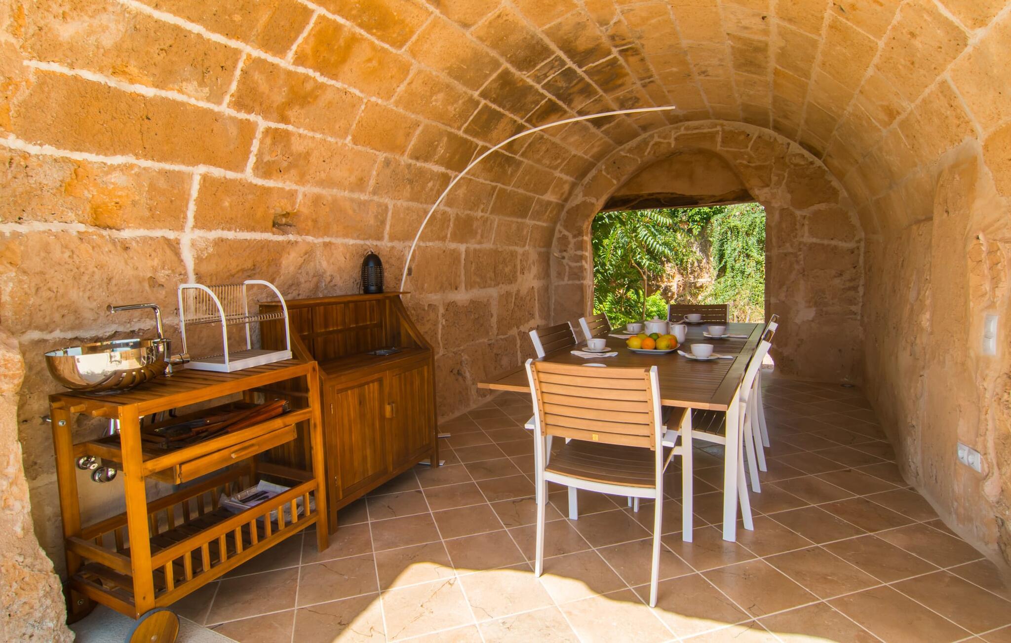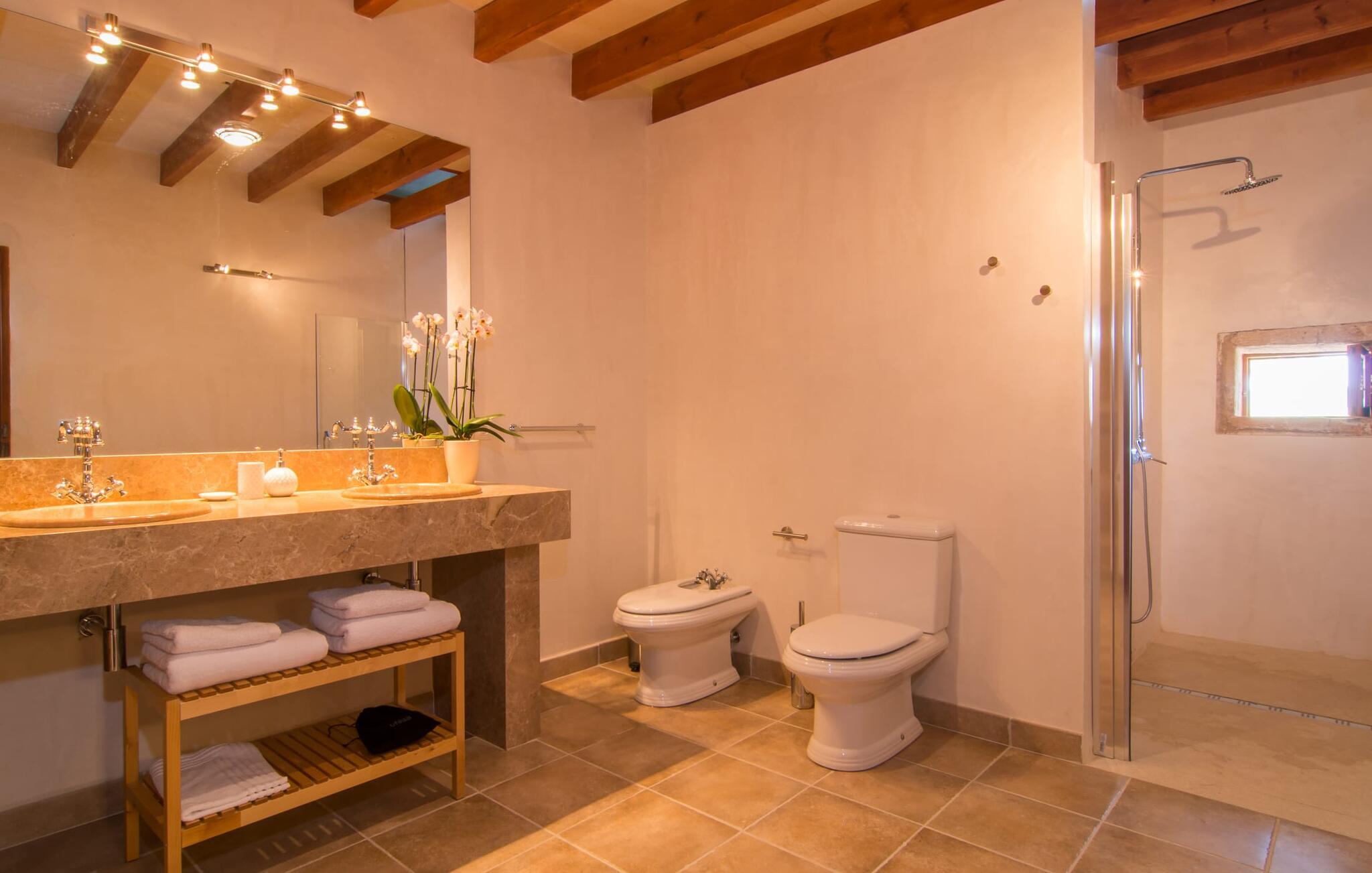 Der er villaer, der giver jer følelsen af, at halvdelen af Mallorca ligger for jeres fødder. Dette er tilfældet med villaen "Son Delabau Gran". Så snart I når den vidtstrakte ejendom efter en kort køretur fra den mallorcanske lufthavn, sætter følelsen af tidløs luksus uundgåeligt ind. På trods af den attraktive nærhed til spændende byer som Palma eller Llucmajor, emmer udsigten over det omkringliggende landskab af ren landlig idyl. Og måske vil den buede terrasse minde jer om de store tider i jeres barndom, hvor I havde en særlig forkærlighed for slotte, der lignede noget ud af et eventyr. Smalle trin, der giver indtryk af et gammelt vartegn, fører til en smuk tagterrasse, hvor I kan nyde øens solskinn. Poolvandet glitrer forførende i solen, noget I måske ikke kan modstå længe. Og hvorfor skulle I det? En af de gavnlige effekter ved vand er, at maden smager meget bedre bagefter. Især når det blev tilberedt i sådan et hyggeligt udekøkken, perfekt udstyret til en stor BBQ. Når I ligger på en af liggestolene og ser solnedgangen eller bruger et af siddeområderne - som pergolaen eller chill-out loungen - til at smage et glas ø-vin, vil I vide: I gjorde alt rigtigt, en mere billedskønt Der er ingen idyl. Vildt romantiske roser kravler op ad stenmursfronten i indgangspartiet. Når I kommer ind, befinder I jer i et hus af særlig kvalitet. I finder ikke noget overflødigt her, den minimalistiske og hyggelige stil minder om skandinavisk æstetik, samtidig med at den "finca-agtige" landlige charme stadig er til stede i næsten alle hjørner. Et hyggeligt opholdsområde med en stenbænk badet i varmt lys, ideel til lange nætter med historie, kan blive et af jeres yndlingssteder i huset. Det kunne den grønne sofa, hvorfra I kan se ud i jeres drømmehave, sige noget om det. Der er to spisepladser. En af dem ligger lige ved siden af det allerede nævnte opholdsområde og springvandet, det andet spisebord står i et større rum. Vinduerne, der varierer i størrelse og form, bidrager til originaliteten af den magiske stemning. Et af værelserne ligner endda et kapel med sit farverige glasvindue i loftet. Her kan I for eksempel meditere om morgenen for at starte dagen afbalanceret og i godt humør. Indretningen af værelserne er meget rustik de to soveværelser nås gennem snoede gange. Hver af dem har sit eget badeværelse, og det lille tredje soveværelse er det perfekte sted for børnene. Naturstensvægelementerne i huset skaber en hjemlig slotsstemning, som også formidler modernitet gennem de hvide farver og det venlige lyskoncept. Så I vil føle jer frisk, når I forlader ejendommen om morgenen. Vejen er let at nå, hvilket kan forårsage hørbar trafikstøj afhængigt af vindretningen. I er ikke meget mere end 10 minutter fra Llucmajor, hvor det livlige Placa d'Espana byder på en farverig blanding af caféer, restauranter og barer. Der er et marked her to gange om ugen, hvor I kan forsyne jer med friske grøntsager, især om fredagen. Til en shoppingtur anbefaler vi også de 20 minutters kørsel til den pulserende ø-hovedstad Palma, som imponerer med sit mangfoldige kulturelle tilbud. Golfentusiaster vil få noget for pengene på Son Antem golfbane, 1 km væk. Efter en halv times kørsel vil I befinde jer foran den paradisiske naturlige sandstrand Es Trenc. Rejsen til Tramuntana-bjergene, som er ideel til vandreture, tager omtrent samme tid. Den fantastiske villa "Son Delabau Gran" har masser af plads og ligger mellem drømmestranden S'Arenal og Llucmajor, 11 km væk. I kan tage ind til byen og nyde den livlige atmosfære på Placa d'Espana. Da I kun er 20 minutters kørsel fra hovedstaden Palma, finder I masser af variation i byens centrum. Efter shopping kan I slappe af på sydkystens strande, herunder Calo de San Antoni.