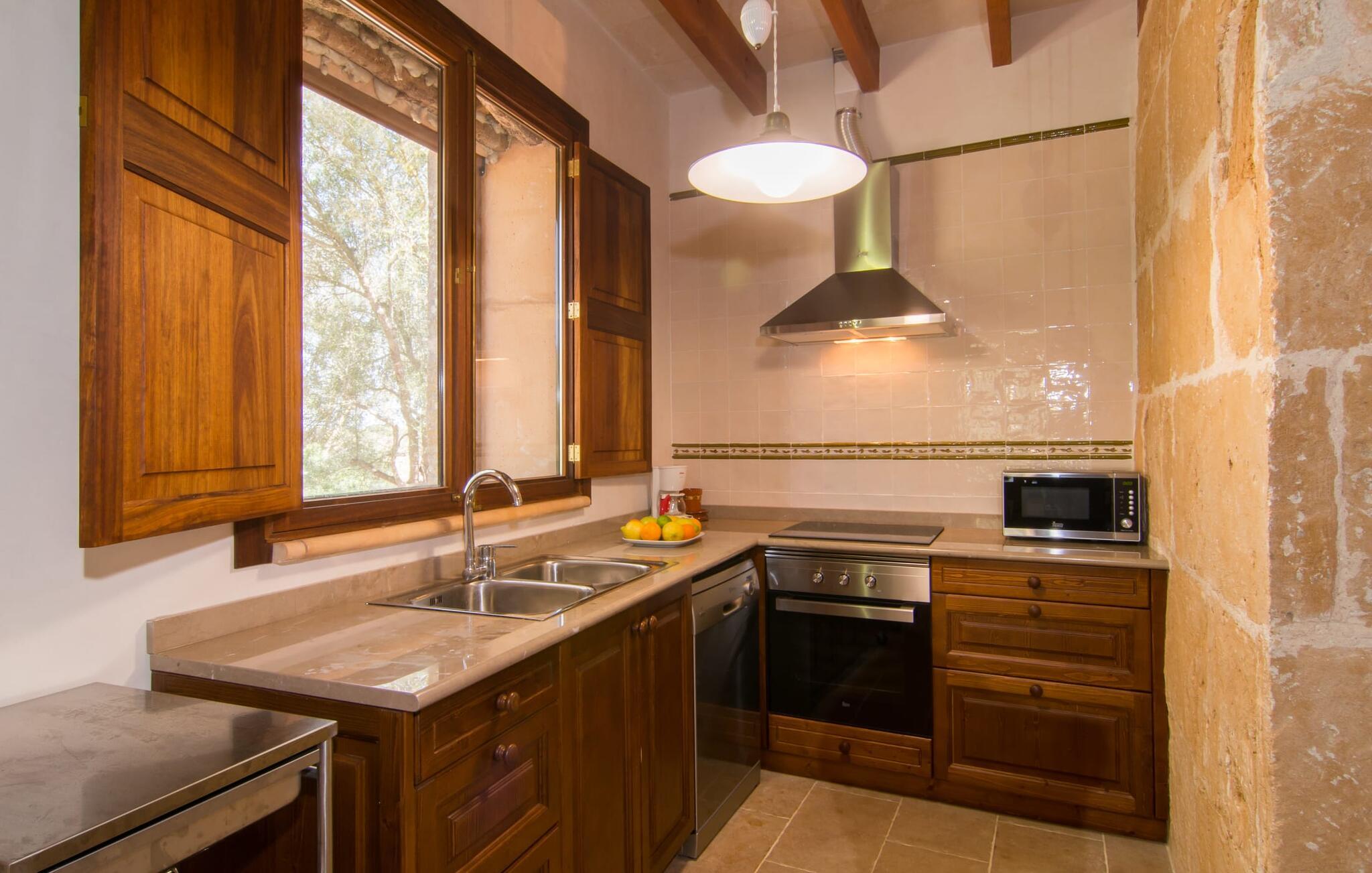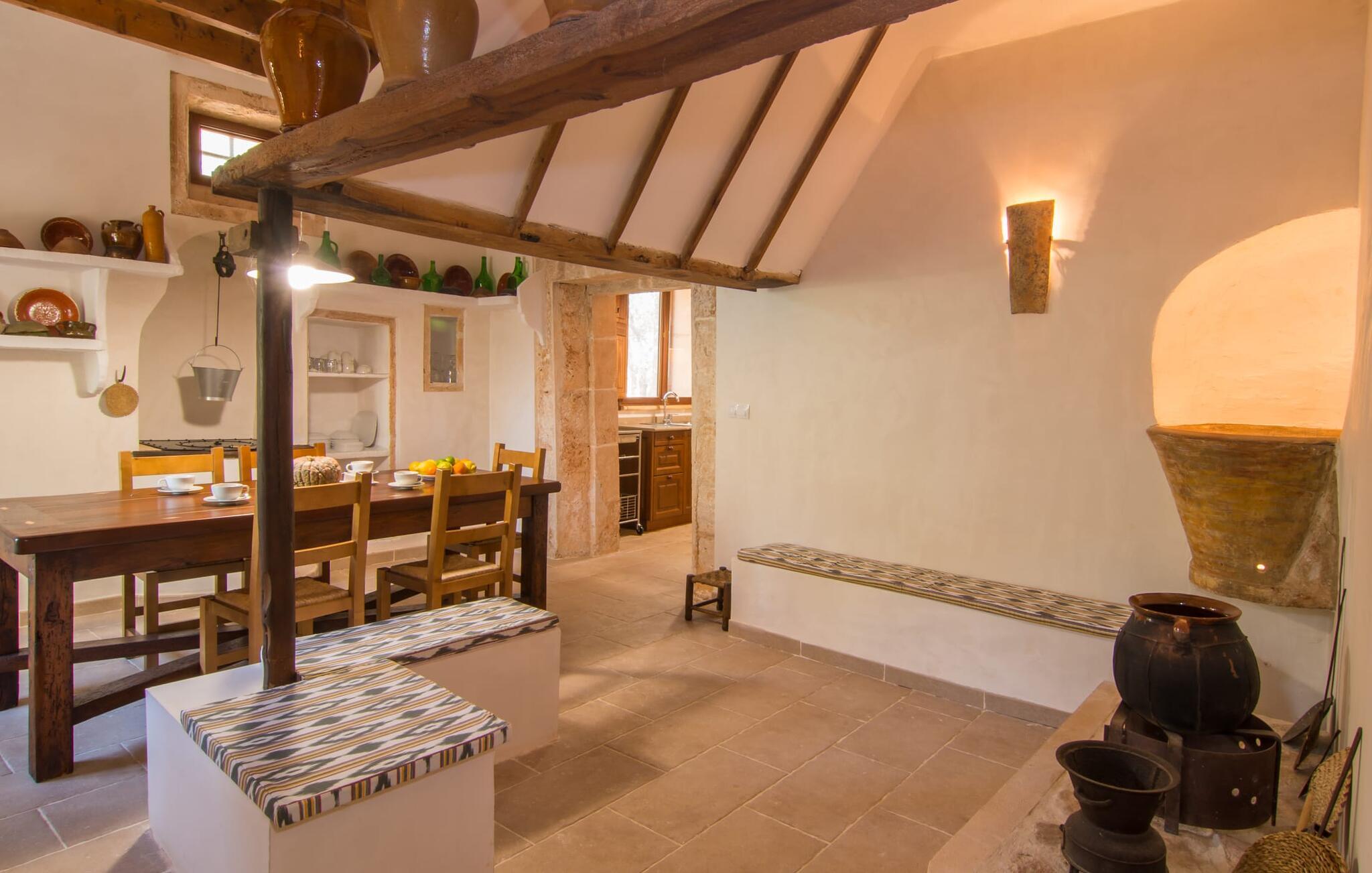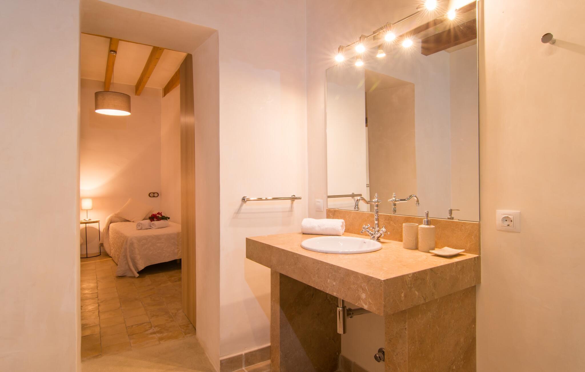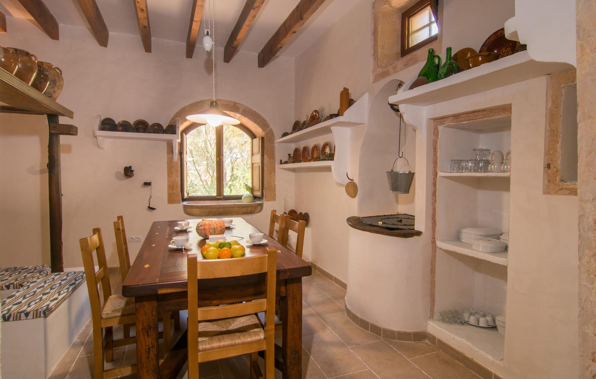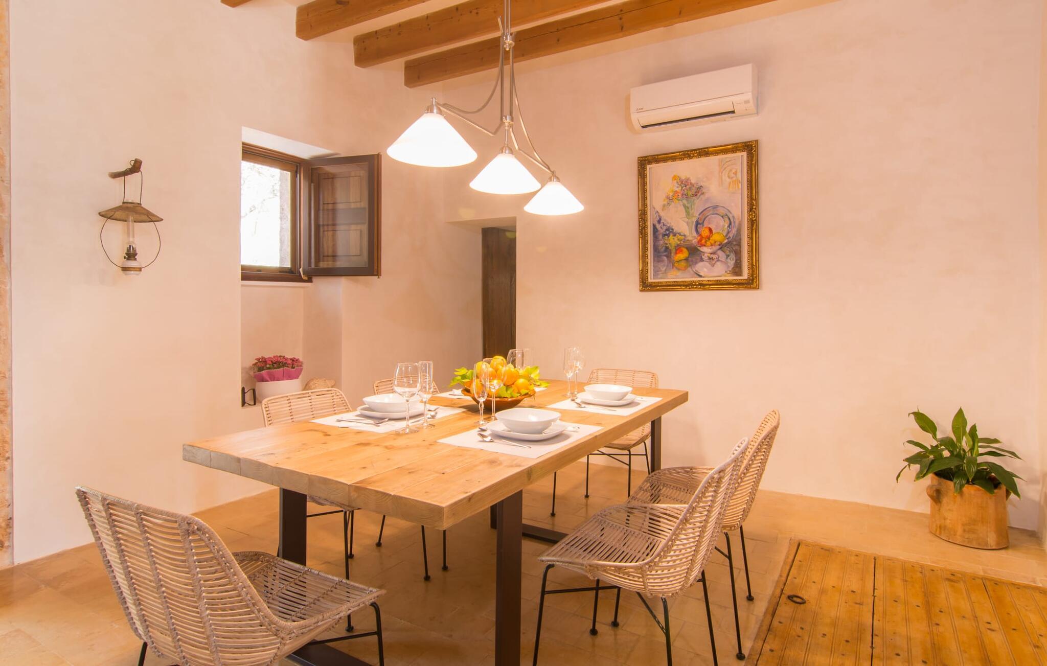 Der er villaer, der giver jer følelsen af, at halvdelen af Mallorca ligger for jeres fødder. Dette er tilfældet med villaen "Son Delabau Gran". Så snart I når den vidtstrakte ejendom efter en kort køretur fra den mallorcanske lufthavn, sætter følelsen af tidløs luksus uundgåeligt ind. På trods af den attraktive nærhed til spændende byer som Palma eller Llucmajor, emmer udsigten over det omkringliggende landskab af ren landlig idyl. Og måske vil den buede terrasse minde jer om de store tider i jeres barndom, hvor I havde en særlig forkærlighed for slotte, der lignede noget ud af et eventyr. Smalle trin, der giver indtryk af et gammelt vartegn, fører til en smuk tagterrasse, hvor I kan nyde øens solskinn. Poolvandet glitrer forførende i solen, noget I måske ikke kan modstå længe. Og hvorfor skulle I det? En af de gavnlige effekter ved vand er, at maden smager meget bedre bagefter. Især når det blev tilberedt i sådan et hyggeligt udekøkken, perfekt udstyret til en stor BBQ. Når I ligger på en af liggestolene og ser solnedgangen eller bruger et af siddeområderne - som pergolaen eller chill-out loungen - til at smage et glas ø-vin, vil I vide: I gjorde alt rigtigt, en mere billedskønt Der er ingen idyl. Vildt romantiske roser kravler op ad stenmursfronten i indgangspartiet. Når I kommer ind, befinder I jer i et hus af særlig kvalitet. I finder ikke noget overflødigt her, den minimalistiske og hyggelige stil minder om skandinavisk æstetik, samtidig med at den "finca-agtige" landlige charme stadig er til stede i næsten alle hjørner. Et hyggeligt opholdsområde med en stenbænk badet i varmt lys, ideel til lange nætter med historie, kan blive et af jeres yndlingssteder i huset. Det kunne den grønne sofa, hvorfra I kan se ud i jeres drømmehave, sige noget om det. Der er to spisepladser. En af dem ligger lige ved siden af det allerede nævnte opholdsområde og springvandet, det andet spisebord står i et større rum. Vinduerne, der varierer i størrelse og form, bidrager til originaliteten af den magiske stemning. Et af værelserne ligner endda et kapel med sit farverige glasvindue i loftet. Her kan I for eksempel meditere om morgenen for at starte dagen afbalanceret og i godt humør. Indretningen af værelserne er meget rustik de to soveværelser nås gennem snoede gange. Hver af dem har sit eget badeværelse, og det lille tredje soveværelse er det perfekte sted for børnene. Naturstensvægelementerne i huset skaber en hjemlig slotsstemning, som også formidler modernitet gennem de hvide farver og det venlige lyskoncept. Så I vil føle jer frisk, når I forlader ejendommen om morgenen. Vejen er let at nå, hvilket kan forårsage hørbar trafikstøj afhængigt af vindretningen. I er ikke meget mere end 10 minutter fra Llucmajor, hvor det livlige Placa d'Espana byder på en farverig blanding af caféer, restauranter og barer. Der er et marked her to gange om ugen, hvor I kan forsyne jer med friske grøntsager, især om fredagen. Til en shoppingtur anbefaler vi også de 20 minutters kørsel til den pulserende ø-hovedstad Palma, som imponerer med sit mangfoldige kulturelle tilbud. Golfentusiaster vil få noget for pengene på Son Antem golfbane, 1 km væk. Efter en halv times kørsel vil I befinde jer foran den paradisiske naturlige sandstrand Es Trenc. Rejsen til Tramuntana-bjergene, som er ideel til vandreture, tager omtrent samme tid. Den fantastiske villa "Son Delabau Gran" har masser af plads og ligger mellem drømmestranden S'Arenal og Llucmajor, 11 km væk. I kan tage ind til byen og nyde den livlige atmosfære på Placa d'Espana. Da I kun er 20 minutters kørsel fra hovedstaden Palma, finder I masser af variation i byens centrum. Efter shopping kan I slappe af på sydkystens strande, herunder Calo de San Antoni.