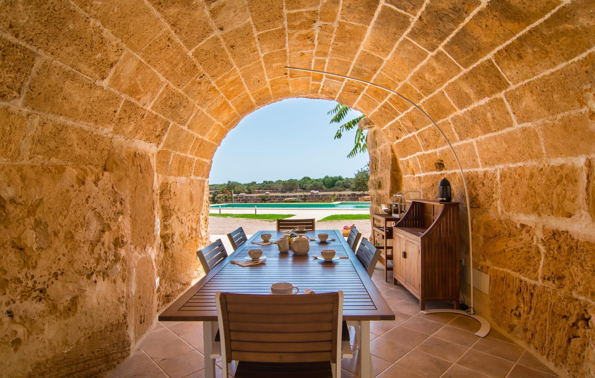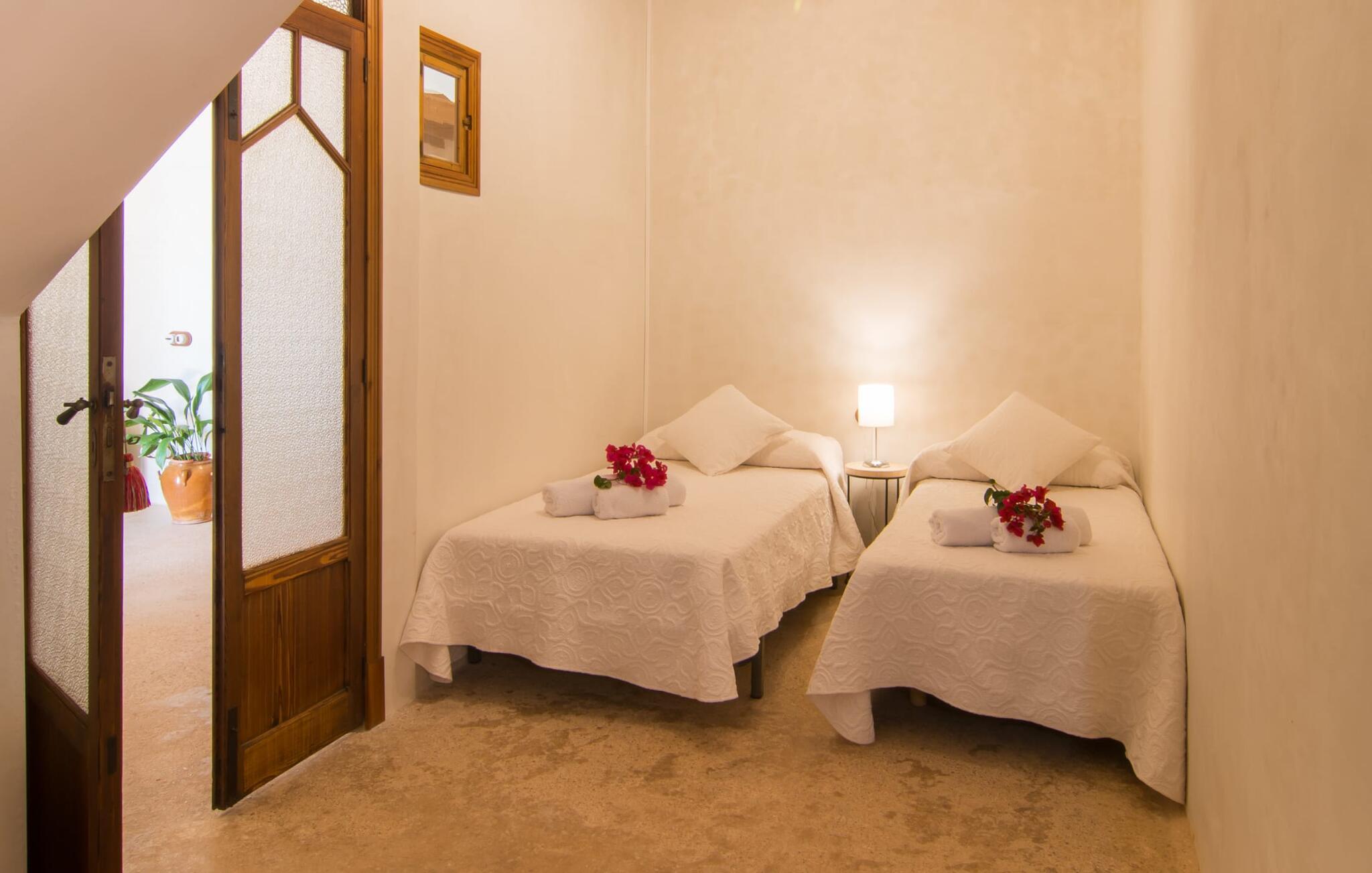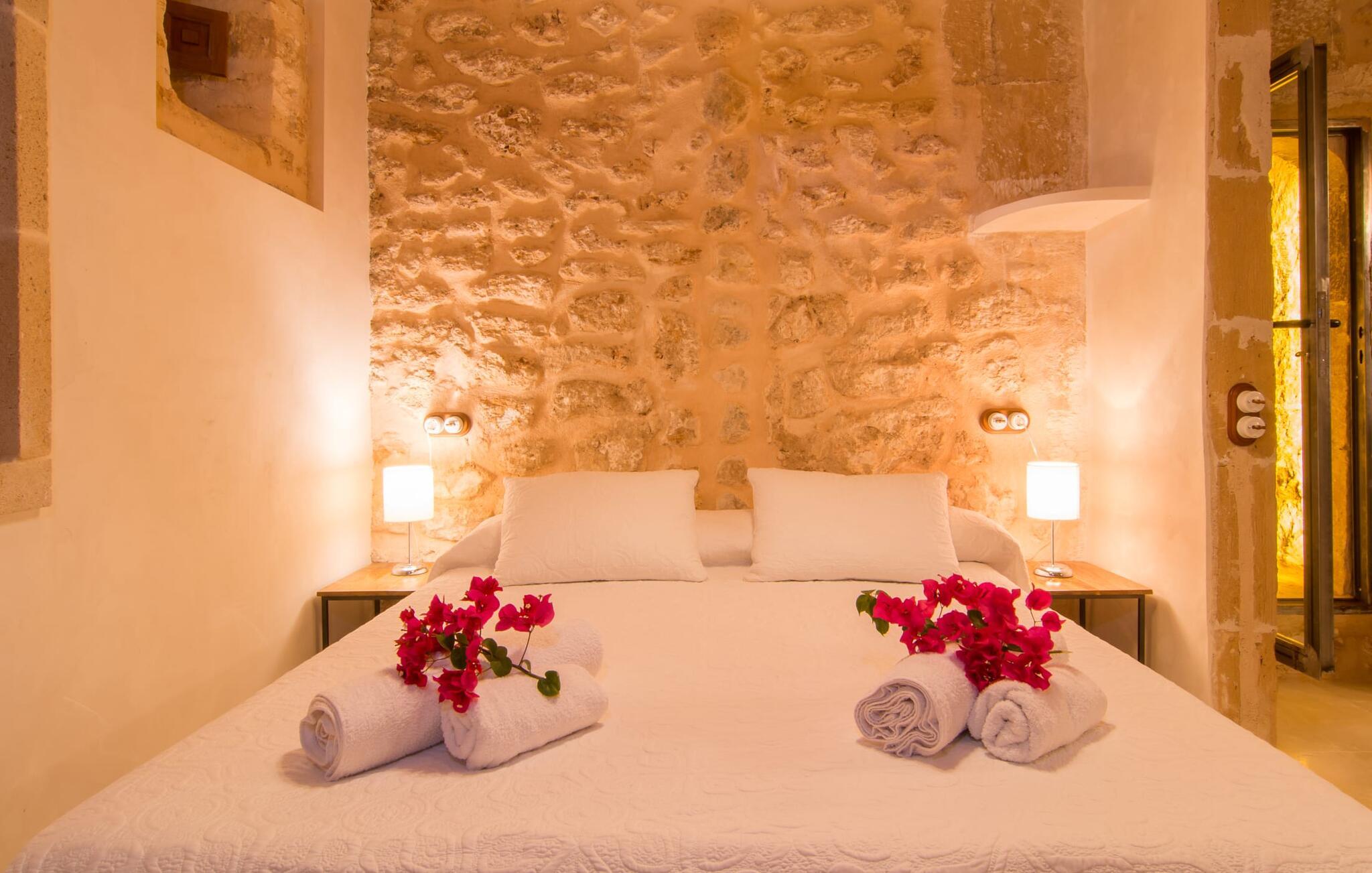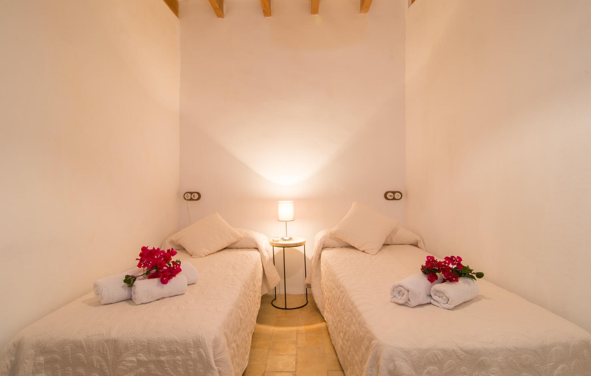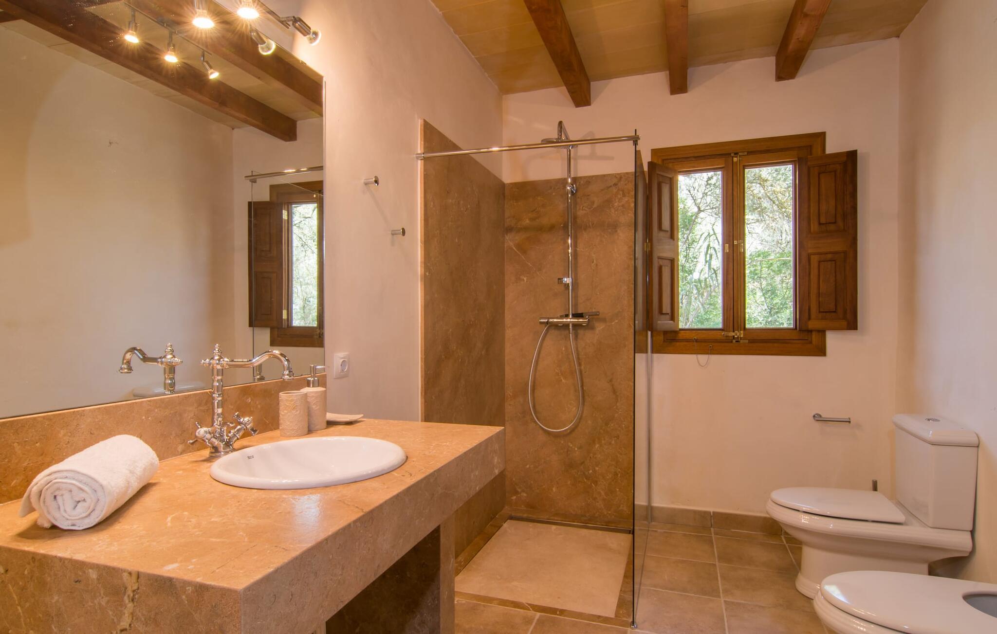 Der er villaer, der giver jer følelsen af, at halvdelen af Mallorca ligger for jeres fødder. Dette er tilfældet med villaen "Son Delabau Gran". Så snart I når den vidtstrakte ejendom efter en kort køretur fra den mallorcanske lufthavn, sætter følelsen af tidløs luksus uundgåeligt ind. På trods af den attraktive nærhed til spændende byer som Palma eller Llucmajor, emmer udsigten over det omkringliggende landskab af ren landlig idyl. Og måske vil den buede terrasse minde jer om de store tider i jeres barndom, hvor I havde en særlig forkærlighed for slotte, der lignede noget ud af et eventyr. Smalle trin, der giver indtryk af et gammelt vartegn, fører til en smuk tagterrasse, hvor I kan nyde øens solskinn. Poolvandet glitrer forførende i solen, noget I måske ikke kan modstå længe. Og hvorfor skulle I det? En af de gavnlige effekter ved vand er, at maden smager meget bedre bagefter. Især når det blev tilberedt i sådan et hyggeligt udekøkken, perfekt udstyret til en stor BBQ. Når I ligger på en af liggestolene og ser solnedgangen eller bruger et af siddeområderne - som pergolaen eller chill-out loungen - til at smage et glas ø-vin, vil I vide: I gjorde alt rigtigt, en mere billedskønt Der er ingen idyl. Vildt romantiske roser kravler op ad stenmursfronten i indgangspartiet. Når I kommer ind, befinder I jer i et hus af særlig kvalitet. I finder ikke noget overflødigt her, den minimalistiske og hyggelige stil minder om skandinavisk æstetik, samtidig med at den "finca-agtige" landlige charme stadig er til stede i næsten alle hjørner. Et hyggeligt opholdsområde med en stenbænk badet i varmt lys, ideel til lange nætter med historie, kan blive et af jeres yndlingssteder i huset. Det kunne den grønne sofa, hvorfra I kan se ud i jeres drømmehave, sige noget om det. Der er to spisepladser. En af dem ligger lige ved siden af det allerede nævnte opholdsområde og springvandet, det andet spisebord står i et større rum. Vinduerne, der varierer i størrelse og form, bidrager til originaliteten af den magiske stemning. Et af værelserne ligner endda et kapel med sit farverige glasvindue i loftet. Her kan I for eksempel meditere om morgenen for at starte dagen afbalanceret og i godt humør. Indretningen af værelserne er meget rustik de to soveværelser nås gennem snoede gange. Hver af dem har sit eget badeværelse, og det lille tredje soveværelse er det perfekte sted for børnene. Naturstensvægelementerne i huset skaber en hjemlig slotsstemning, som også formidler modernitet gennem de hvide farver og det venlige lyskoncept. Så I vil føle jer frisk, når I forlader ejendommen om morgenen. Vejen er let at nå, hvilket kan forårsage hørbar trafikstøj afhængigt af vindretningen. I er ikke meget mere end 10 minutter fra Llucmajor, hvor det livlige Placa d'Espana byder på en farverig blanding af caféer, restauranter og barer. Der er et marked her to gange om ugen, hvor I kan forsyne jer med friske grøntsager, især om fredagen. Til en shoppingtur anbefaler vi også de 20 minutters kørsel til den pulserende ø-hovedstad Palma, som imponerer med sit mangfoldige kulturelle tilbud. Golfentusiaster vil få noget for pengene på Son Antem golfbane, 1 km væk. Efter en halv times kørsel vil I befinde jer foran den paradisiske naturlige sandstrand Es Trenc. Rejsen til Tramuntana-bjergene, som er ideel til vandreture, tager omtrent samme tid. Den fantastiske villa "Son Delabau Gran" har masser af plads og ligger mellem drømmestranden S'Arenal og Llucmajor, 11 km væk. I kan tage ind til byen og nyde den livlige atmosfære på Placa d'Espana. Da I kun er 20 minutters kørsel fra hovedstaden Palma, finder I masser af variation i byens centrum. Efter shopping kan I slappe af på sydkystens strande, herunder Calo de San Antoni.