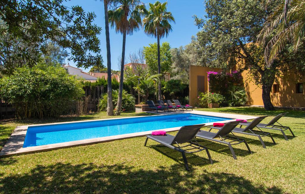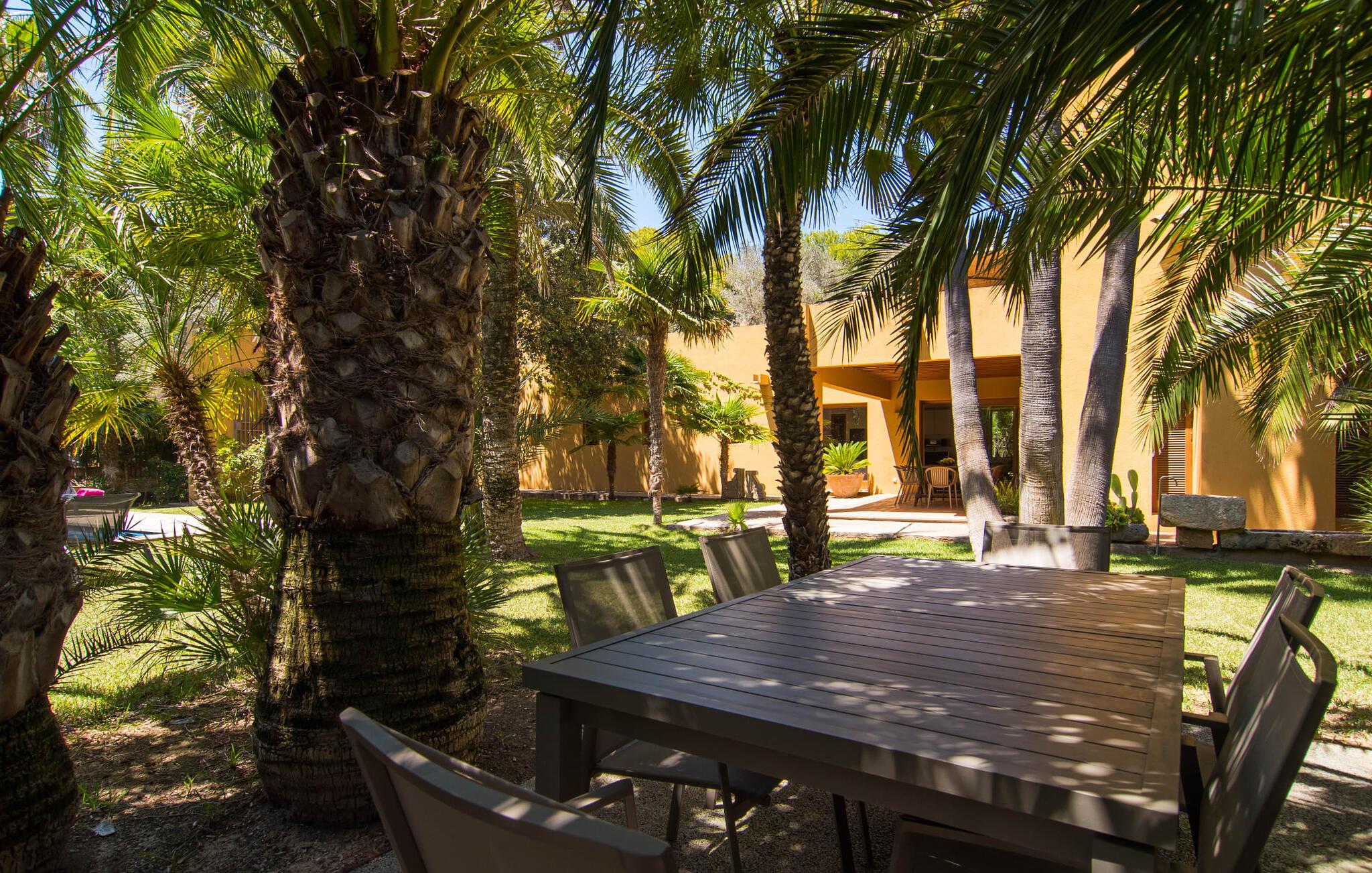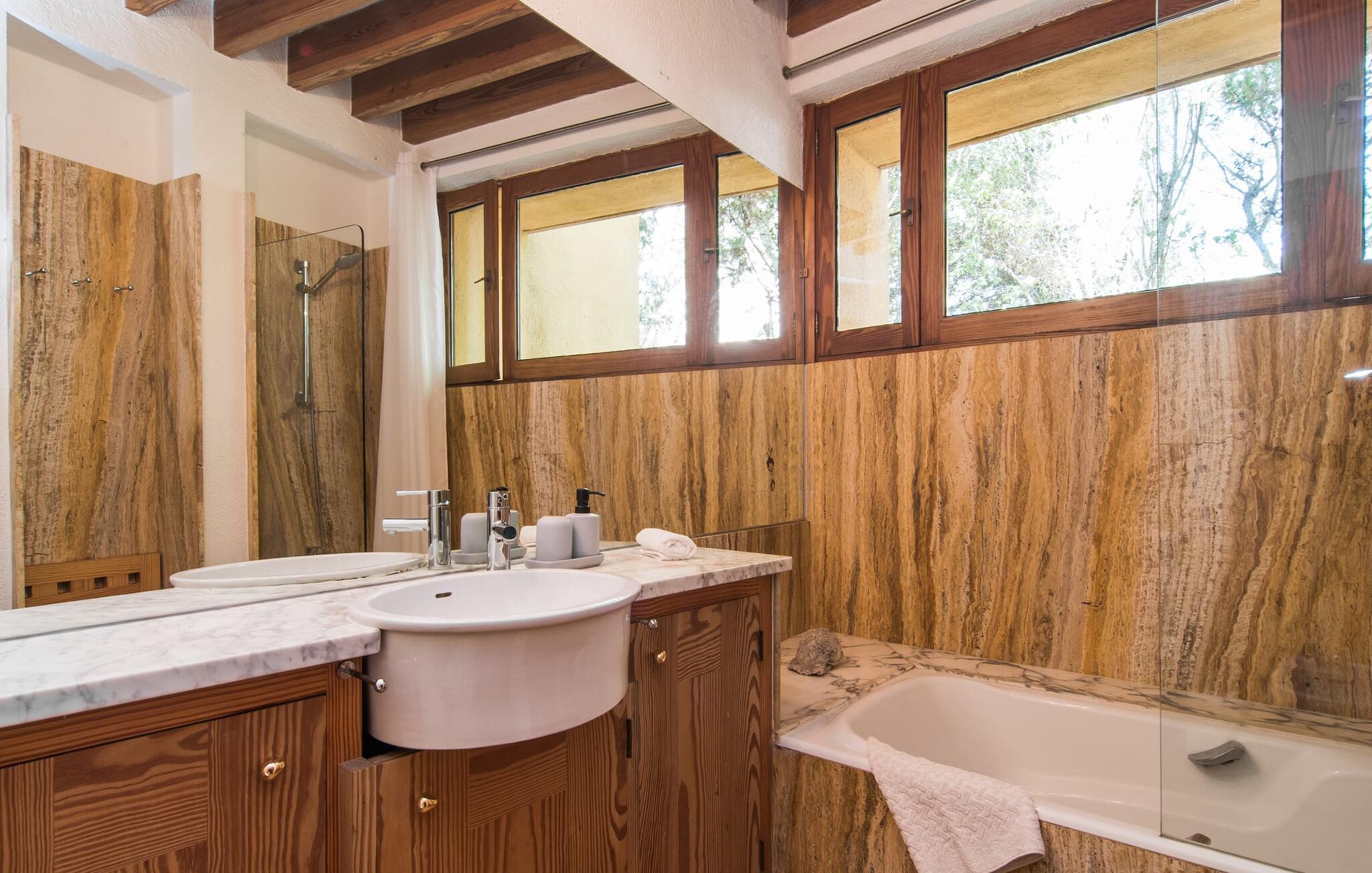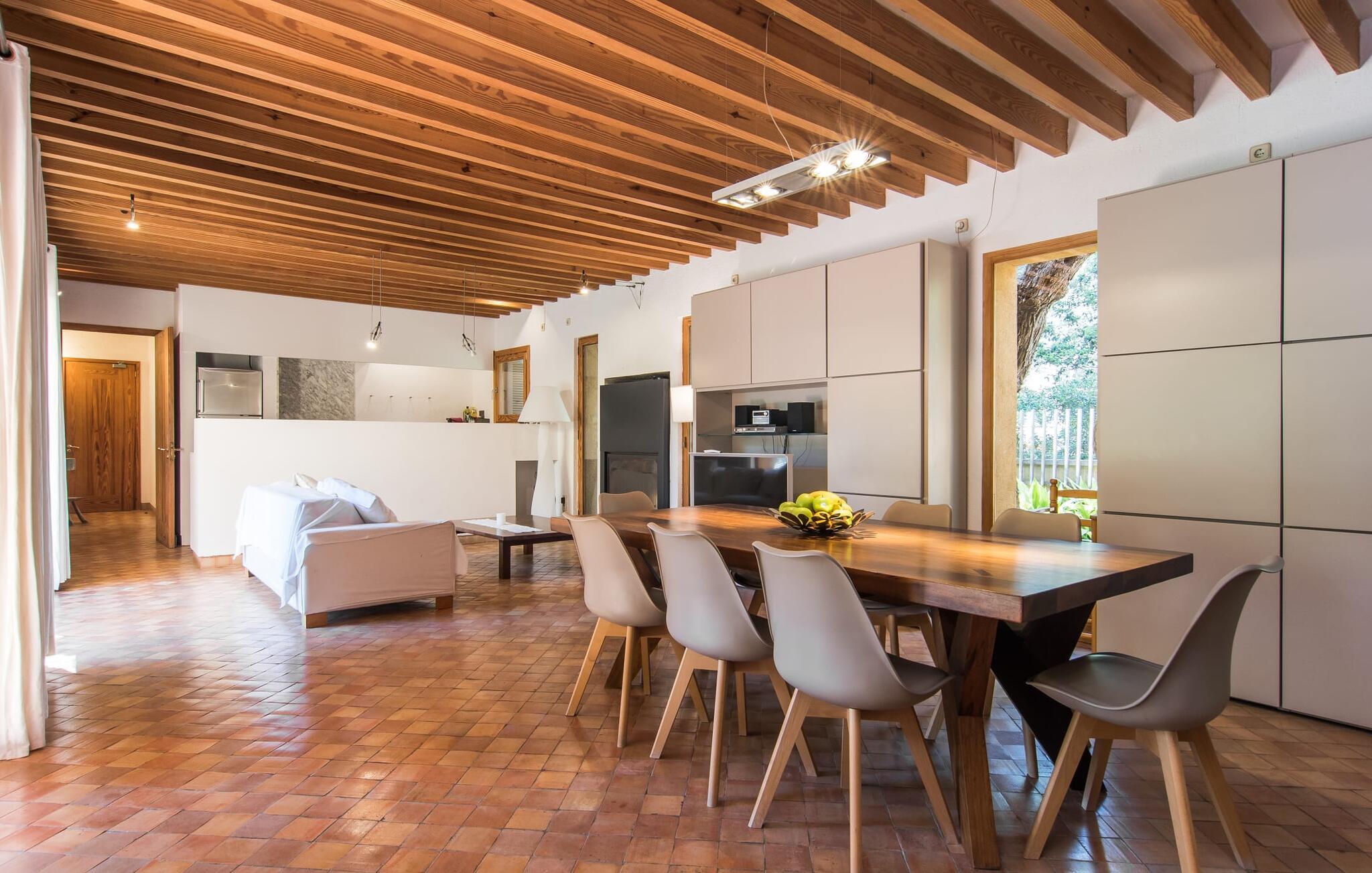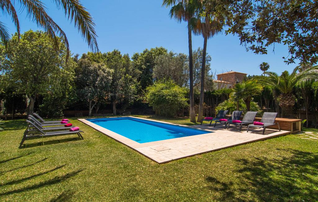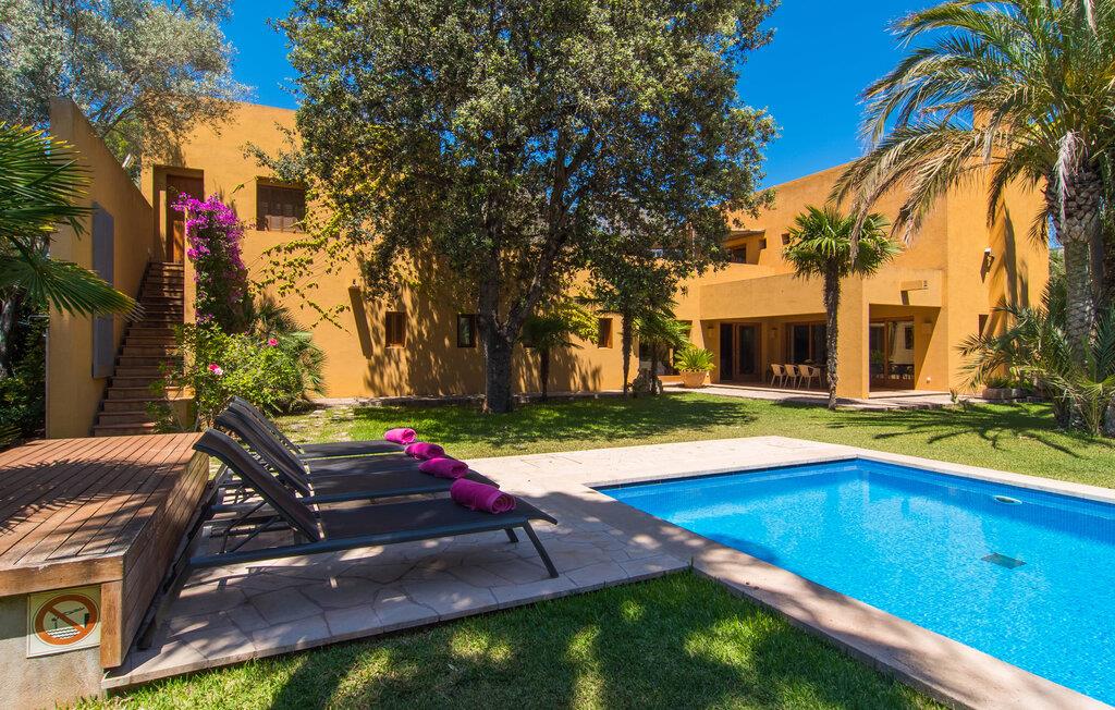 Den solgule villa "Son Floriana" imponerer med sin arkitektoniske individualitet, en oase-lignende have og et helt fantastisk interiør. Arkitekten/ejeren af denne æstetisk tiltalende ejendom har formået perfekt at omsætte sine imponerende ideer til virkelighed. Den L-formede bygning er ideel til rejsende, der foretrækker en vis autonomi, men stadig nyder at gå. At det sydvendte hus ligger i et boligområde er ikke et problem, da udearealet med sin paradisiske have og store pool ikke er synligt. Den enorme have fuld af høje palmer og frodig middelhavsvegetation strækker sig over to forskellige niveauer. På den første side er der den rummelige pool med solterrasse og stor græsplæne. På andet niveau, fredeligt beliggende under et bambustag og i skyggen af de omkringliggende træer, er en fiskedam. En afslapningsø for de ældre gæster, men også et godt sted at lege for de mindste. Der er masser af siddepladser på stedet: vælg mellem de hyggelige siddepladser under siv eller baldakin, den søde lille plet i palmernes skygge eller spisepladsen på den overdækkede veranda. Selvom I har flere personer i jeres gruppe, vil alle finde deres eget yndlingssted at slappe af og slappe af. Glæden ved udeområdet fortsætter, når I træder ind i det indre, hvor et meget lyst hus med en allround afslappende atmosfære og enestående indretning venter jer, og rummenes generøse størrelse bidrager yderligere til faktoren. Moderne møbler og kunstneriske artefakter lavet af materialer som beton blev kombineret med antikke møbler for at skabe en yderst vellykket og decideret ukonventionel og overbevisende blanding. Da opholdsrummene er indrettet i tre plan, er der ingen risiko for at komme i vejen for hinanden. I stueetagen af den aflange bygning finder I et hyggeligt værelse med pejs, en behagelig hvid sofa og - til kontrast - en guldbarok sofa. En skikkelse svæver fra det høje loft som en skytsengel. På den anden side af denne del af bygningen finder I det åbne spise-, opholds- og køkkenområde med et moderne LCD-tv, en anden pejs og et centralt sofahjørne, samt på den ene side en spiseplads med komfortable designerstole, bagved kan I se en smuk træbænk og et elegant klaver – en spændende tilføjelse til de mere funktionelle områder. I skal måske kigge to gange for at finde køkkenet – selvom det er åbent, er det meget smart gemt bag en taljehøj hvid væg. Selvfølgelig med al komfort: Opvaskemaskine, kæmpe køle/fryseskab og keramisk kogeplade forbliver tro mod mottoet "form og funktion". Den øverste etage har forskudte niveauer: mens det første har to soveværelser (et med eget badeværelse), på det andet niveau er der et åbent galleri, der fungerer som et kontor med et opholdsområde (som også kan bruges til to mere senge). gæster) og tilbyder en vidunderlig udsigt direkte ind i pejsestuen. Fitnesscentret er tilgængeligt fra dette niveau og giver mulighed for at vedligeholde jeres kondition med motionscykler, en dansebar, en vægtbænk og andet udstyr. Soveværelser tre og fire er i kælderen. De indbydende, rolige værelser tilbyder direkte, trinfri udgang til haven og har et fælles badeværelse. Hver af dobbeltsengene består af to enkeltsenge, som kan adskilles efter ønske. Mulighederne er næsten uendelige! Det samme gælder den tid, I tilbringer væk fra den forførende villa "Son Floriana". I kan vælge at bo i den lille tidligere havnelandsby Cala Bona, slentre langs havnepromenaden, som blev restaureret i 2006, stoppe ved en af restauranterne med traditionelt køkken eller leje en lystbåd på havnen. Men I kan også tage en tur ind i det indre af øen for at besøge Son Servera eller middelalderbyen Artà i nordøst. Takket være villaens centrale beliggenhed i Cala Bona (trafikstøj kan høres, når en villavej passerer huset), kunne adgangen til de smukke strande på østkysten (den berømte "Calas de Mallorca") ikke være nemmere. Nyd jeres vidunderlige tid på "Son Floriana" nu - vi kan kun varmt anbefale det! Villaen "Son Floriana" er et individuelt designet hus i Son Floriana-distriktet. Takket være beliggenheden er restauranter, barer og havnepromenaden inden for nem gåafstand. Der er indkøbsmuligheder i nabolandet Cala Bona eller i Son Servera, hvor et ugentligt marked finder sted om fredagen. De bløde sandstrande i Cala Millor eller Cala Bona eller længere væk kan nås på få minutter i bil.