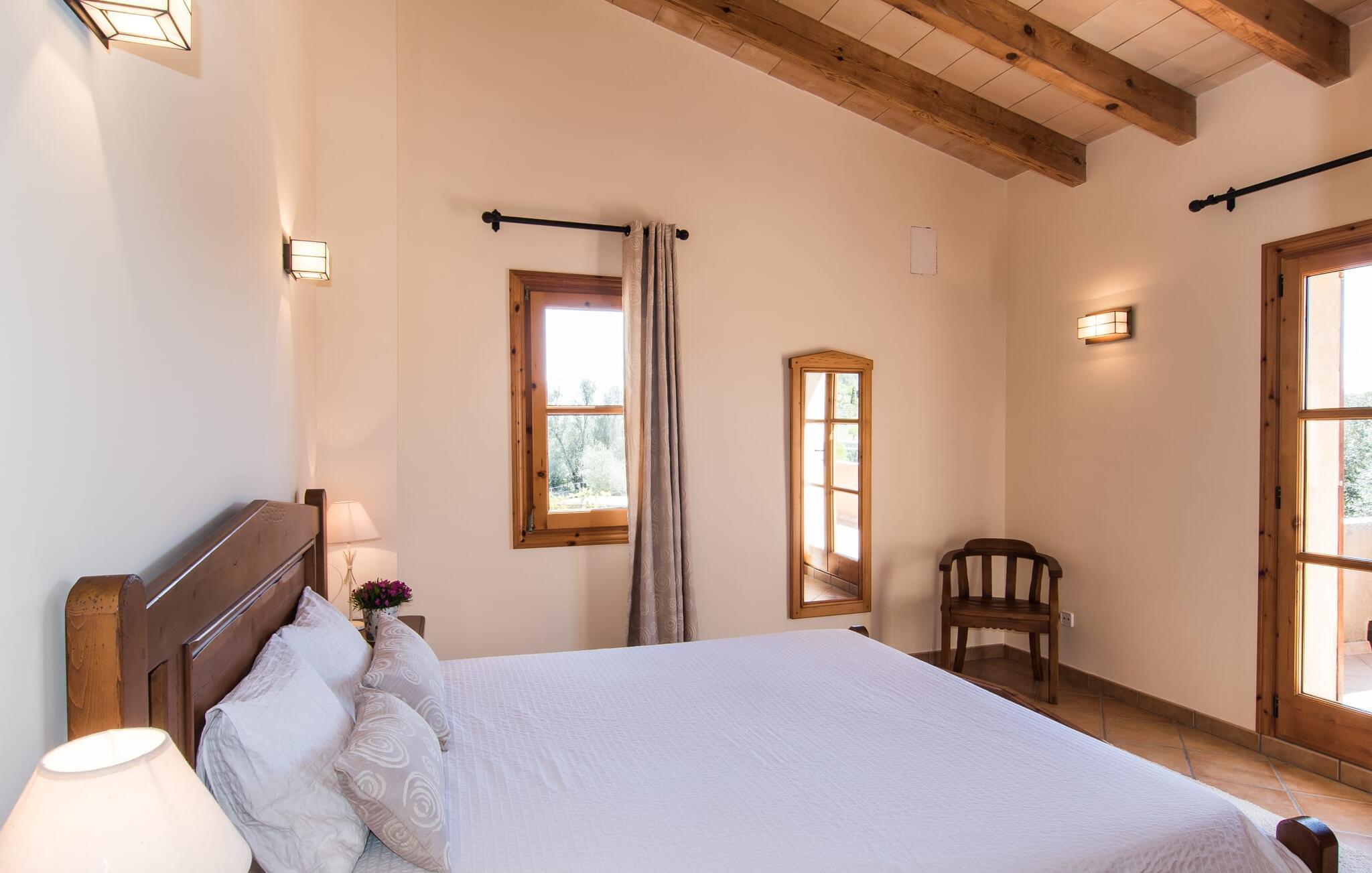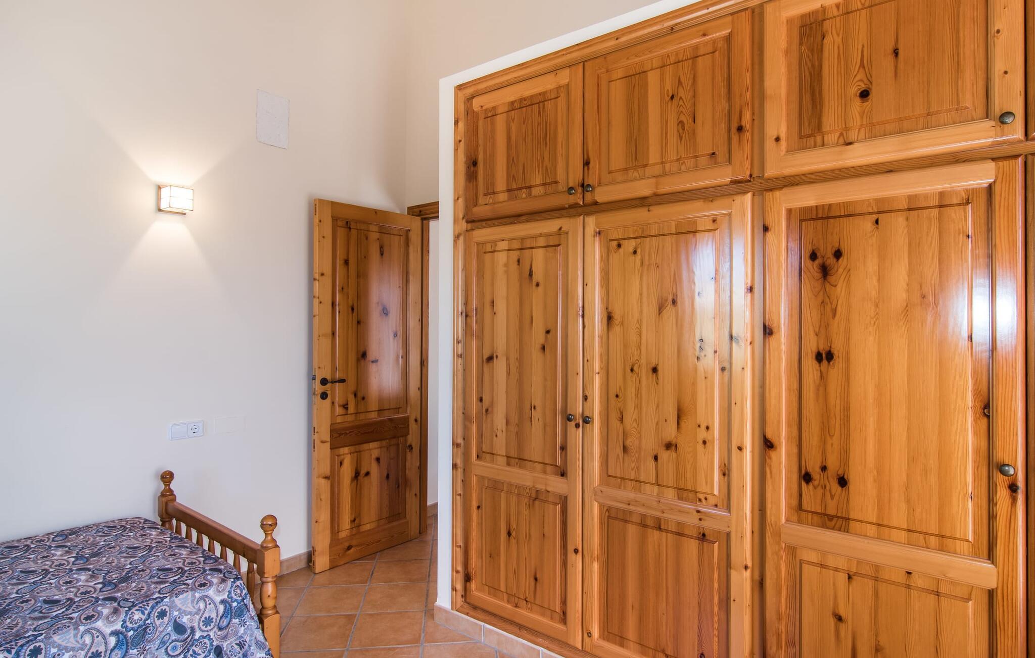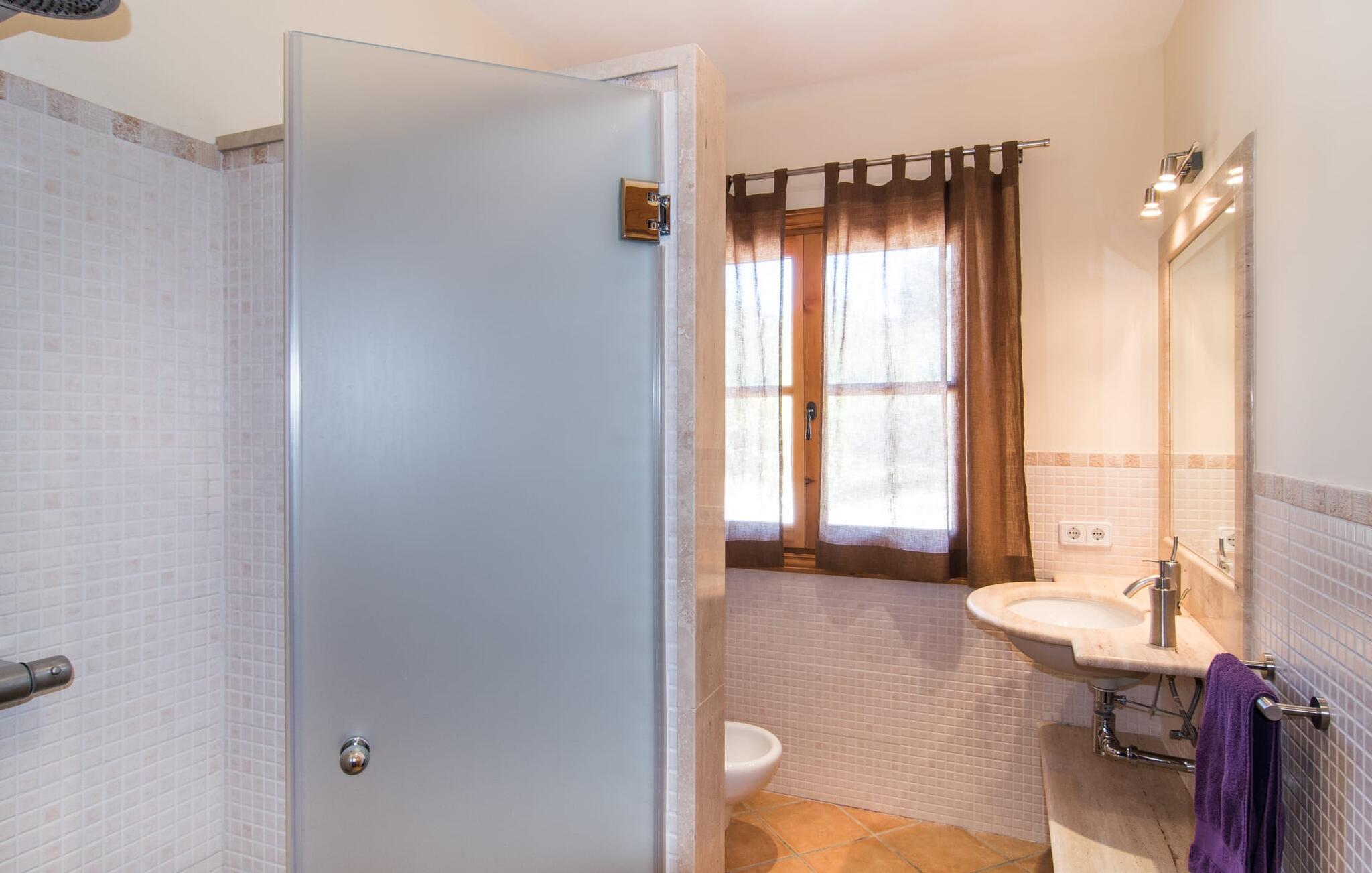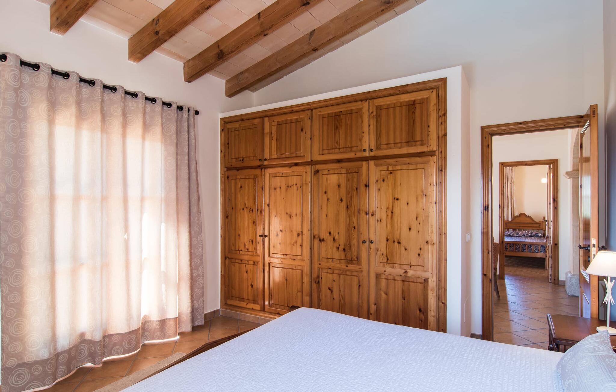Leder I efter et sted, hvor I kan nyde fred og privatliv? Så kig nærmere, for måske er denne lille perle lige det, I leder efter. Villaens idylliske beliggenhed giver jer mulighed for at gå lange ture gennem naturen og blot koble af og koble af med krop og sjæl. Det, der bestemt er værd at fremhæve, er den statelige terrasse - når I først har sat jer derned, vil I ikke tage afsted, udsigten er så betagende. Under jeres ophold kan I føle, som om I er blevet transporteret til et fantastisk filmsæt. Der er flere siddepladser på terrassen, så intet står i vejen for et afslappet måltid udendørs med udsigt til det grønne. På den forudsatte grill kan I tilberede den friske fisk, I har købt hver tirsdag på det ugentlige marked i Artà. Det er bedst at bruge en hjemmelavet marinade lavet af krydderurter, hvidløg og olivenolie, som giver den en udsøgt smag. Og parret med et fremragende glas vin fra en mallorcansk vingård kan livet være så smukt... Selve villaen imponerer med sine stærkt oplyste rum og interiørets naturlige karisma, hvor der ikke er stilistiske modsætninger. De flotte gulvfliser kan findes i alle rum og på terrassen. Møblerne er for det meste indrettet i varme trætoner, der blander sig harmonisk med de cremefarvede vægge. Der er en hyggelig atmosfære, som forstærkes af lysindfaldet gennem villaens store vinduespartier. Soveværelserne ovenpå er designet til komfort og lover afslappende nætter eller en afslappende eftermiddagssiesta. To af værelserne har dobbeltseng, det tredje har to enkeltsenge og er derfor ideelt som børneværelse. Det ene af de to badeværelser byder endda på et hjørnebadekar til et behageligt aftenbad. I stueetagen har den åbne stue et hyggeligt loungehjørne og en pejs - så bare rolig, hvis vejret ikke samarbejder, for I kunne ikke undvære den hyggelige varme og den knitrende ild. Fra stuen er der direkte adgang til trækøkkenet, som byder på alt, hvad et selvforplejningshjerte begærer med ovn, keramisk kogeplade, stort køleskab, opvaskemaskine, mikroovn, kaffemaskine, elkedel og drikkevarekøleskab. På grund af sin afsondrede landlige beliggenhed er villaen "Son Norte Fou" særligt velegnet til folk, der søger fred og afslapning. Leder I efter underholdning, kan I besøge grottesystemet Coves de Artà, et attraktivt udflugtsmål, der også er fascinerende for børn. En tur til den naturlige strand i Cala Torta, som er omkring tredive minutter væk, anbefales også. Når I først krydser den noget ujævne vej til parkeringspladsen, kan I nyde den fascinerende skønhed ved denne sandstrand omgivet af bølgende grønne bakker. Denne landlige og afsondrede villa ligger i de grønne bakker mellem Colònia de Sant Pere og den maleriske lille kunstnerby Artà, kun 2,9 km væk. Der vil I også finde talrige indkøbsmuligheder til at dække jeres daglige behov samt mange seværdigheder. På cirka 20 minutter kan I nå smukke sandstrande som Canyamel og Platja de Son Moll. Bemærk venligst, at denne ejendom ikke accepterer ungdomsgrupper eller polterabender. En ungdomsgruppe på denne ejendom består af personer under 30 år. Book ikke denne ejendom, hvis I er en ungdomsgruppe eller en polterabendgruppe, da jeres reservation vil blive afvist, når den er booket, hvilket også kan være tilfældet ved ankomst til ejendommen eller under jeres ophold, og I vil ikke modtage en refusion.