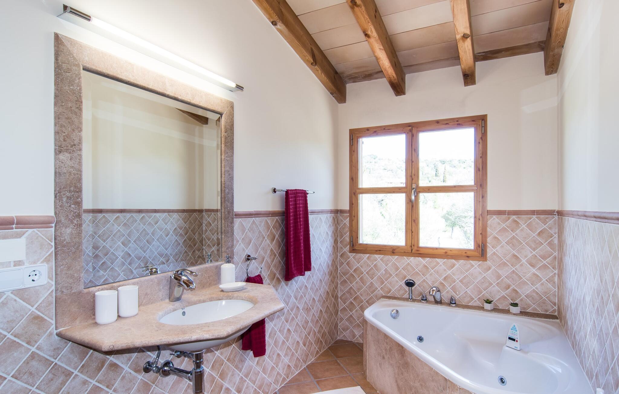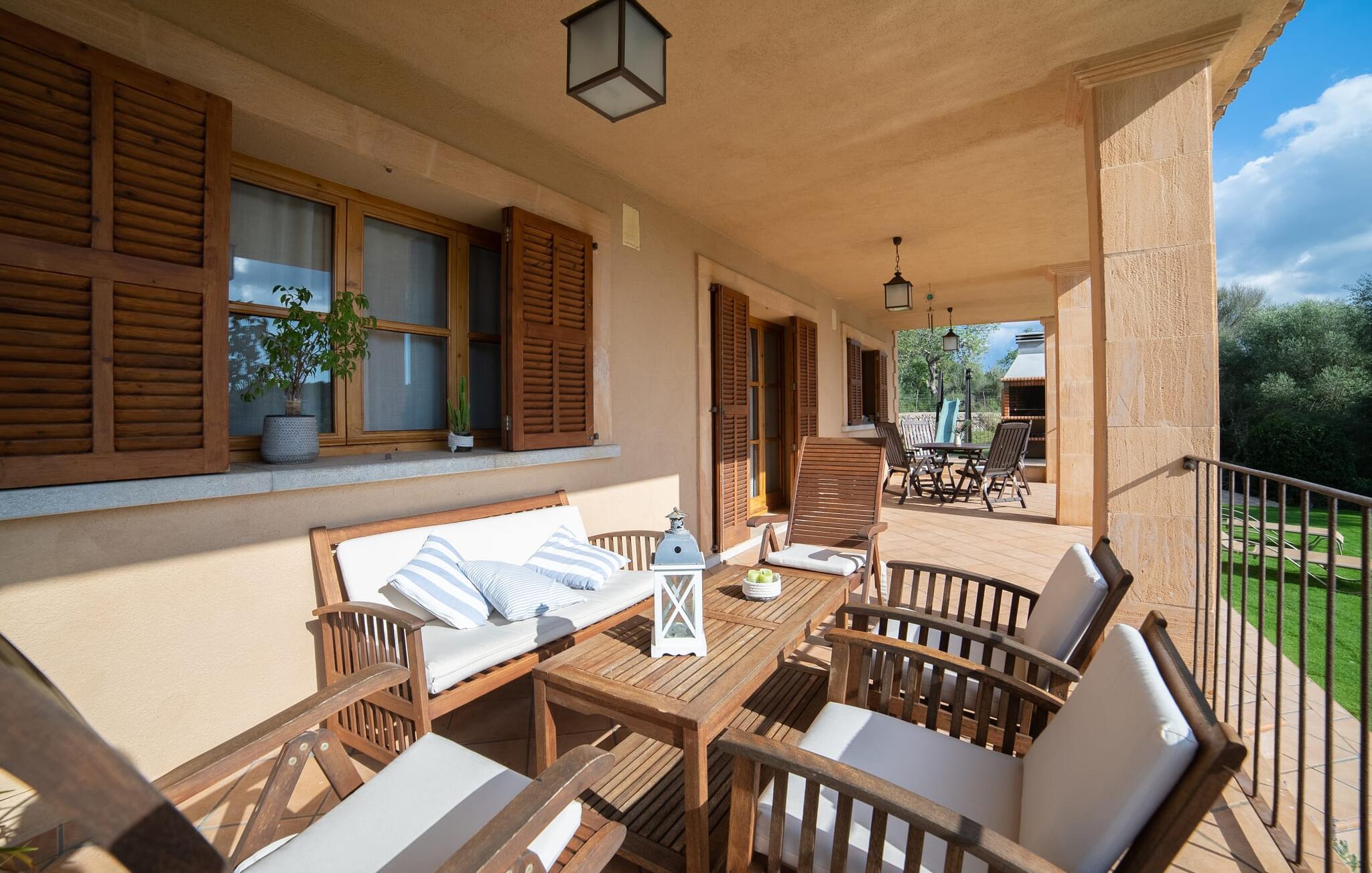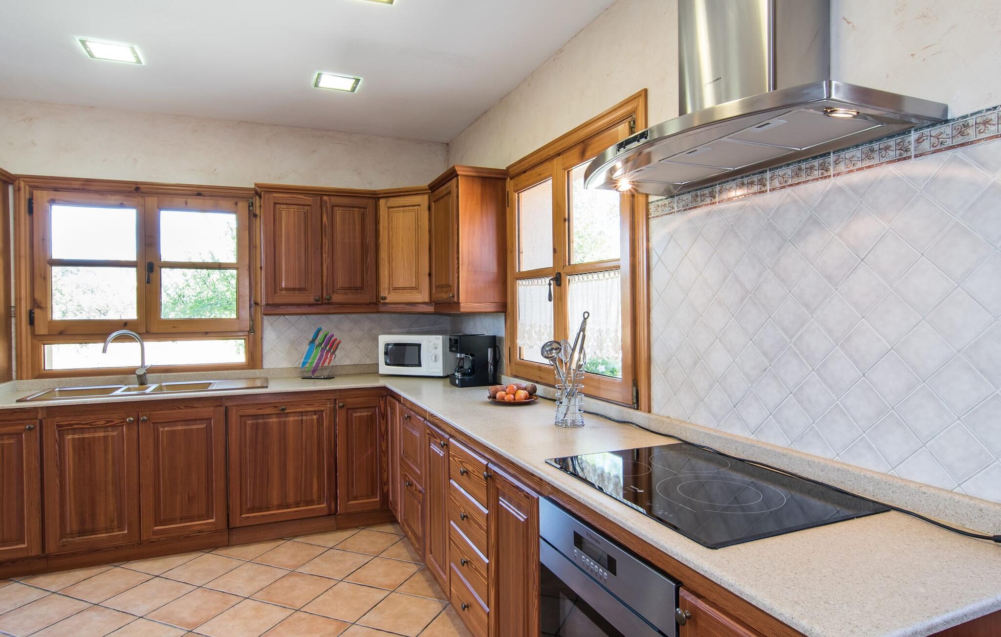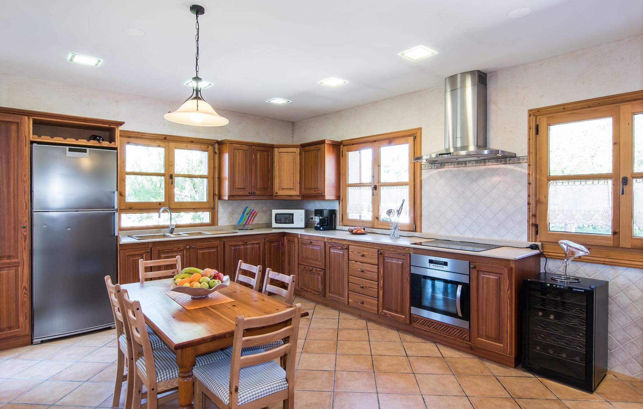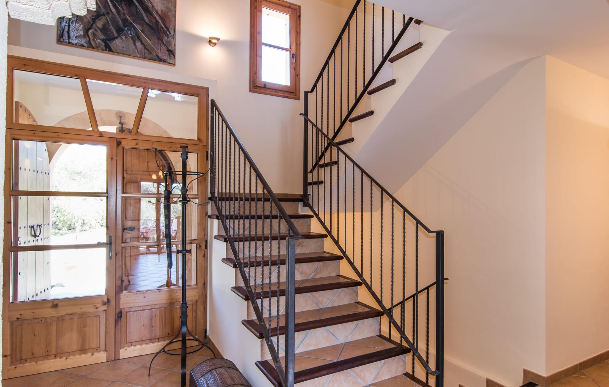 Leder I efter et sted, hvor I kan nyde fred og privatliv? Så kig nærmere, for måske er denne lille perle lige det, I leder efter. Villaens idylliske beliggenhed giver jer mulighed for at gå lange ture gennem naturen og blot koble af og koble af med krop og sjæl. Det, der bestemt er værd at fremhæve, er den statelige terrasse - når I først har sat jer derned, vil I ikke tage afsted, udsigten er så betagende. Under jeres ophold kan I føle, som om I er blevet transporteret til et fantastisk filmsæt. Der er flere siddepladser på terrassen, så intet står i vejen for et afslappet måltid udendørs med udsigt til det grønne. På den forudsatte grill kan I tilberede den friske fisk, I har købt hver tirsdag på det ugentlige marked i Artà. Det er bedst at bruge en hjemmelavet marinade lavet af krydderurter, hvidløg og olivenolie, som giver den en udsøgt smag. Og parret med et fremragende glas vin fra en mallorcansk vingård kan livet være så smukt... Selve villaen imponerer med sine stærkt oplyste rum og interiørets naturlige karisma, hvor der ikke er stilistiske modsætninger. De flotte gulvfliser kan findes i alle rum og på terrassen. Møblerne er for det meste indrettet i varme trætoner, der blander sig harmonisk med de cremefarvede vægge. Der er en hyggelig atmosfære, som forstærkes af lysindfaldet gennem villaens store vinduespartier. Soveværelserne ovenpå er designet til komfort og lover afslappende nætter eller en afslappende eftermiddagssiesta. To af værelserne har dobbeltseng, det tredje har to enkeltsenge og er derfor ideelt som børneværelse. Det ene af de to badeværelser byder endda på et hjørnebadekar til et behageligt aftenbad. I stueetagen har den åbne stue et hyggeligt loungehjørne og en pejs - så bare rolig, hvis vejret ikke samarbejder, for I kunne ikke undvære den hyggelige varme og den knitrende ild. Fra stuen er der direkte adgang til trækøkkenet, som byder på alt, hvad et selvforplejningshjerte begærer med ovn, keramisk kogeplade, stort køleskab, opvaskemaskine, mikroovn, kaffemaskine, elkedel og drikkevarekøleskab. På grund af sin afsondrede landlige beliggenhed er villaen "Son Norte Fou" særligt velegnet til folk, der søger fred og afslapning. Leder I efter underholdning, kan I besøge grottesystemet Coves de Artà, et attraktivt udflugtsmål, der også er fascinerende for børn. En tur til den naturlige strand i Cala Torta, som er omkring tredive minutter væk, anbefales også. Når I først krydser den noget ujævne vej til parkeringspladsen, kan I nyde den fascinerende skønhed ved denne sandstrand omgivet af bølgende grønne bakker. Denne landlige og afsondrede villa ligger i de grønne bakker mellem Colònia de Sant Pere og den maleriske lille kunstnerby Artà, kun 2,9 km væk. Der vil I også finde talrige indkøbsmuligheder til at dække jeres daglige behov samt mange seværdigheder. På cirka 20 minutter kan I nå smukke sandstrande som Canyamel og Platja de Son Moll. Bemærk venligst, at denne ejendom ikke accepterer ungdomsgrupper eller polterabender. En ungdomsgruppe på denne ejendom består af personer under 30 år. Book ikke denne ejendom, hvis I er en ungdomsgruppe eller en polterabendgruppe, da jeres reservation vil blive afvist, når den er booket, hvilket også kan være tilfældet ved ankomst til ejendommen eller under jeres ophold, og I vil ikke modtage en refusion.
