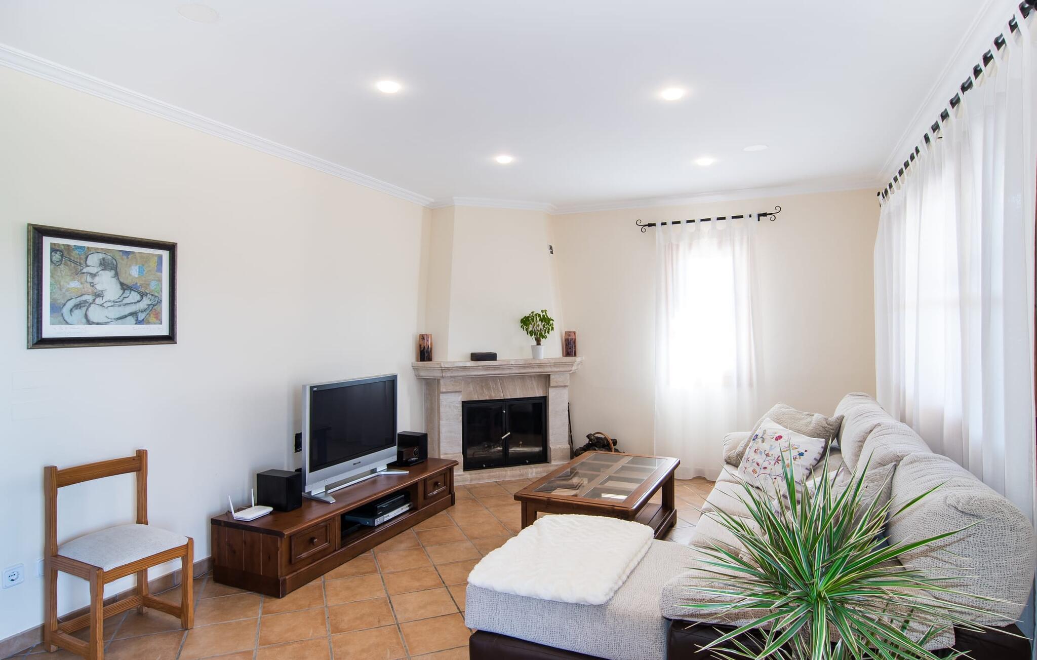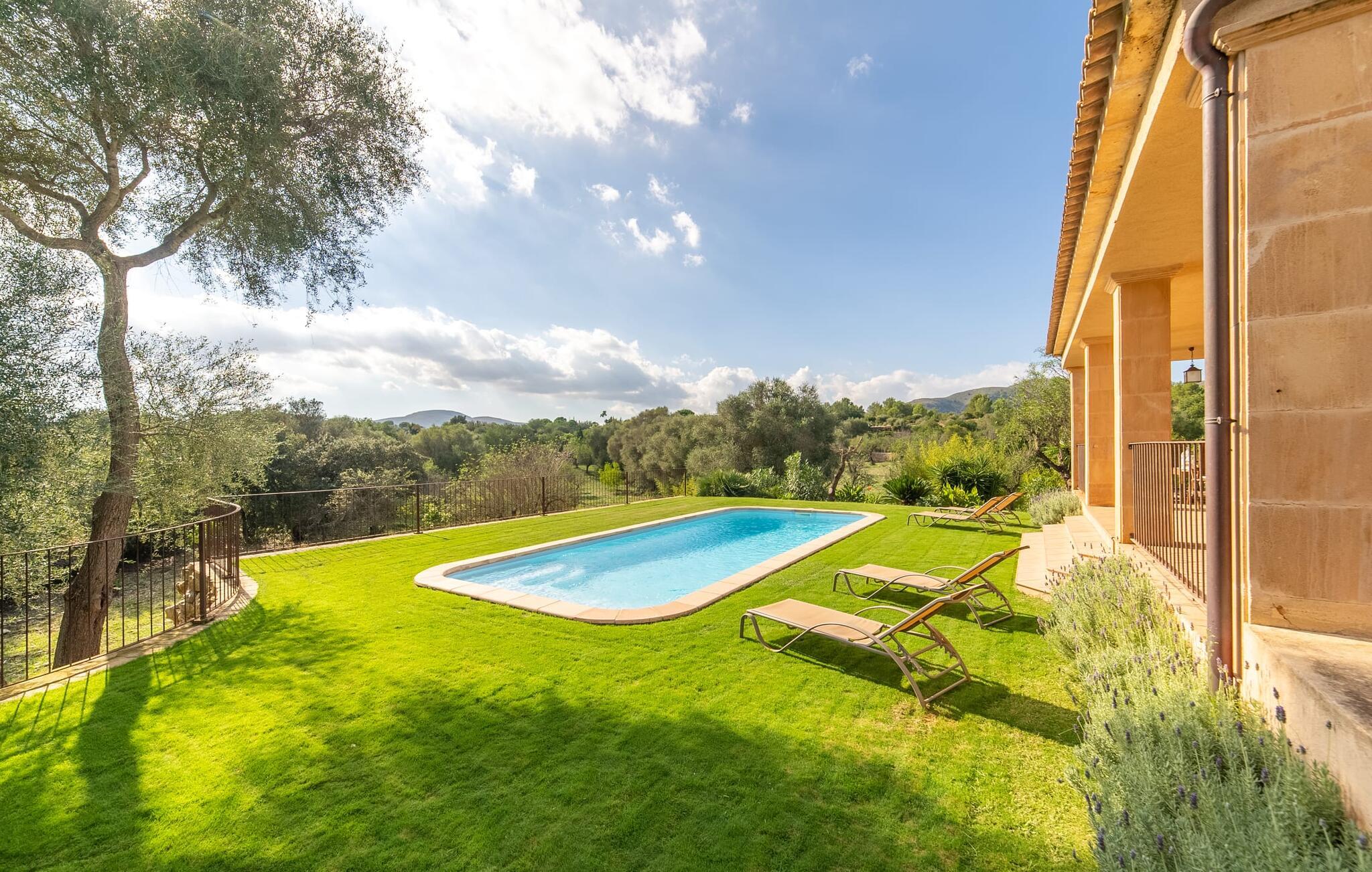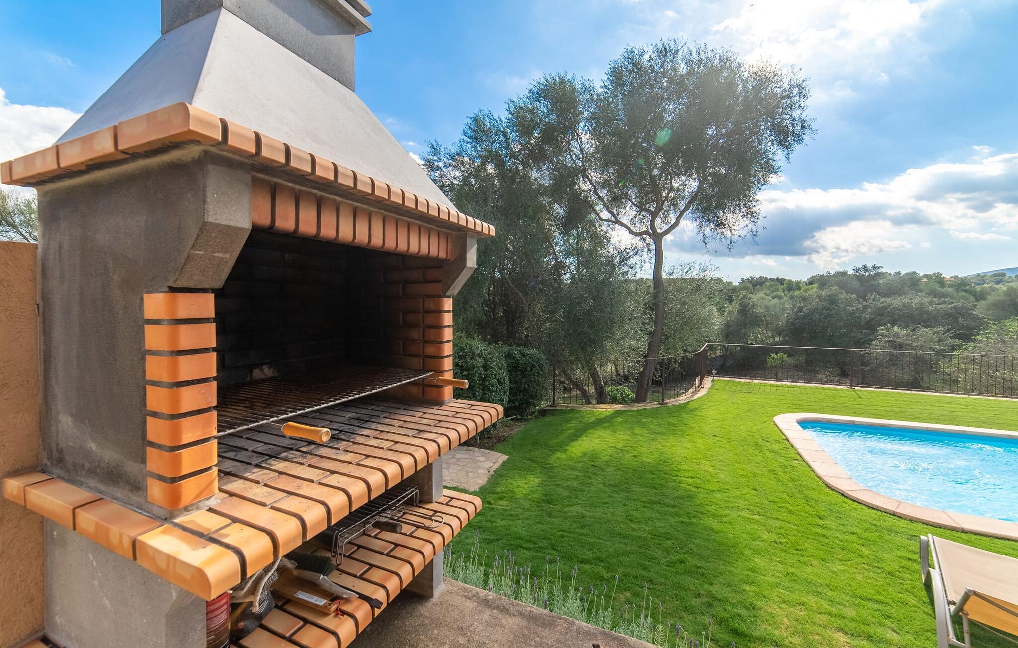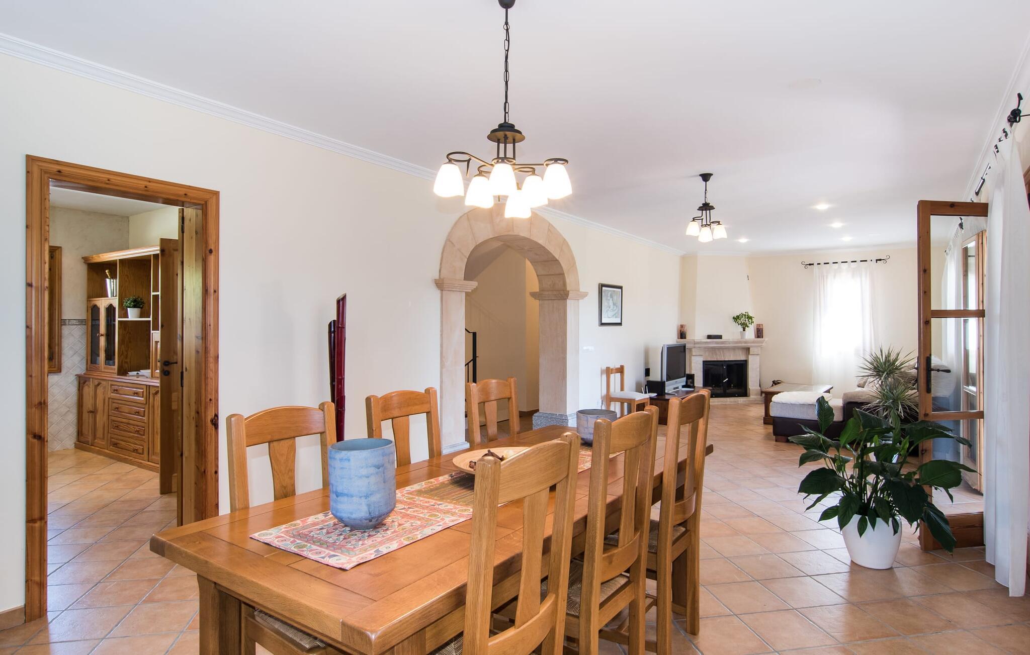 Leder I efter et sted, hvor I kan nyde fred og privatliv? Så kig nærmere, for måske er denne lille perle lige det, I leder efter. Villaens idylliske beliggenhed giver jer mulighed for at gå lange ture gennem naturen og blot koble af og koble af med krop og sjæl. Det, der bestemt er værd at fremhæve, er den statelige terrasse - når I først har sat jer derned, vil I ikke tage afsted, udsigten er så betagende. Under jeres ophold kan I føle, som om I er blevet transporteret til et fantastisk filmsæt. Der er flere siddepladser på terrassen, så intet står i vejen for et afslappet måltid udendørs med udsigt til det grønne. På den forudsatte grill kan I tilberede den friske fisk, I har købt hver tirsdag på det ugentlige marked i Artà. Det er bedst at bruge en hjemmelavet marinade lavet af krydderurter, hvidløg og olivenolie, som giver den en udsøgt smag. Og parret med et fremragende glas vin fra en mallorcansk vingård kan livet være så smukt... Selve villaen imponerer med sine stærkt oplyste rum og interiørets naturlige karisma, hvor der ikke er stilistiske modsætninger. De flotte gulvfliser kan findes i alle rum og på terrassen. Møblerne er for det meste indrettet i varme trætoner, der blander sig harmonisk med de cremefarvede vægge. Der er en hyggelig atmosfære, som forstærkes af lysindfaldet gennem villaens store vinduespartier. Soveværelserne ovenpå er designet til komfort og lover afslappende nætter eller en afslappende eftermiddagssiesta. To af værelserne har dobbeltseng, det tredje har to enkeltsenge og er derfor ideelt som børneværelse. Det ene af de to badeværelser byder endda på et hjørnebadekar til et behageligt aftenbad. I stueetagen har den åbne stue et hyggeligt loungehjørne og en pejs - så bare rolig, hvis vejret ikke samarbejder, for I kunne ikke undvære den hyggelige varme og den knitrende ild. Fra stuen er der direkte adgang til trækøkkenet, som byder på alt, hvad et selvforplejningshjerte begærer med ovn, keramisk kogeplade, stort køleskab, opvaskemaskine, mikroovn, kaffemaskine, elkedel og drikkevarekøleskab. På grund af sin afsondrede landlige beliggenhed er villaen "Son Norte Fou" særligt velegnet til folk, der søger fred og afslapning. Leder I efter underholdning, kan I besøge grottesystemet Coves de Artà, et attraktivt udflugtsmål, der også er fascinerende for børn. En tur til den naturlige strand i Cala Torta, som er omkring tredive minutter væk, anbefales også. Når I først krydser den noget ujævne vej til parkeringspladsen, kan I nyde den fascinerende skønhed ved denne sandstrand omgivet af bølgende grønne bakker. Denne landlige og afsondrede villa ligger i de grønne bakker mellem Colònia de Sant Pere og den maleriske lille kunstnerby Artà, kun 2,9 km væk. Der vil I også finde talrige indkøbsmuligheder til at dække jeres daglige behov samt mange seværdigheder. På cirka 20 minutter kan I nå smukke sandstrande som Canyamel og Platja de Son Moll. Bemærk venligst, at denne ejendom ikke accepterer ungdomsgrupper eller polterabender. En ungdomsgruppe på denne ejendom består af personer under 30 år. Book ikke denne ejendom, hvis I er en ungdomsgruppe eller en polterabendgruppe, da jeres reservation vil blive afvist, når den er booket, hvilket også kan være tilfældet ved ankomst til ejendommen eller under jeres ophold, og I vil ikke modtage en refusion.