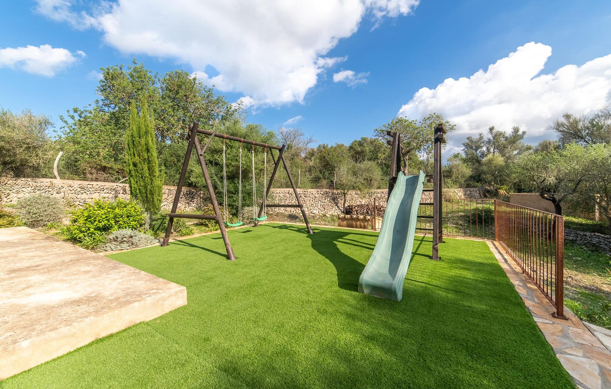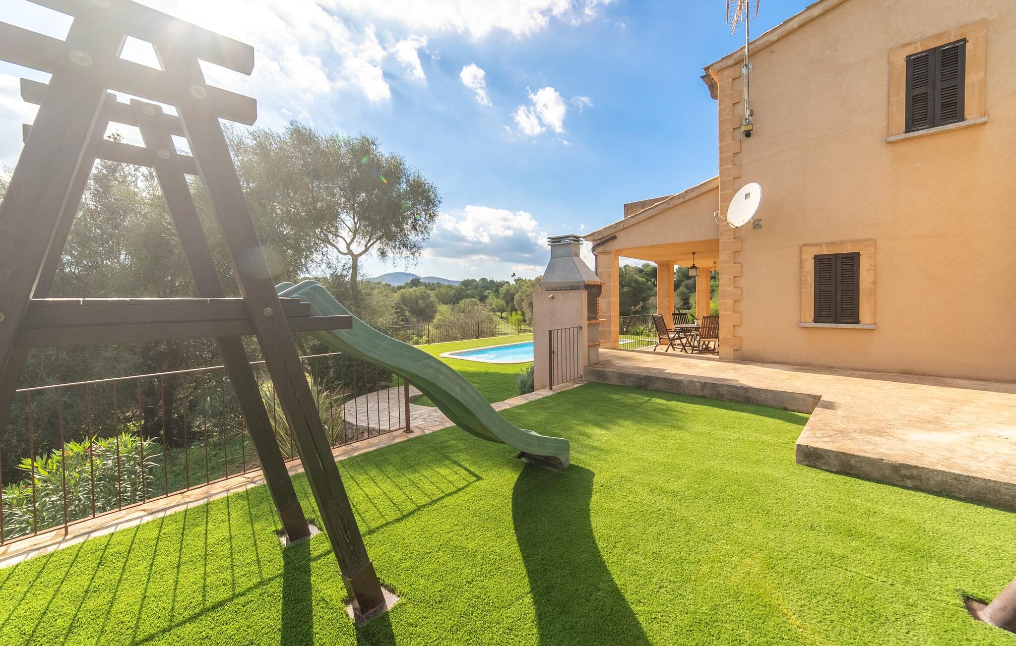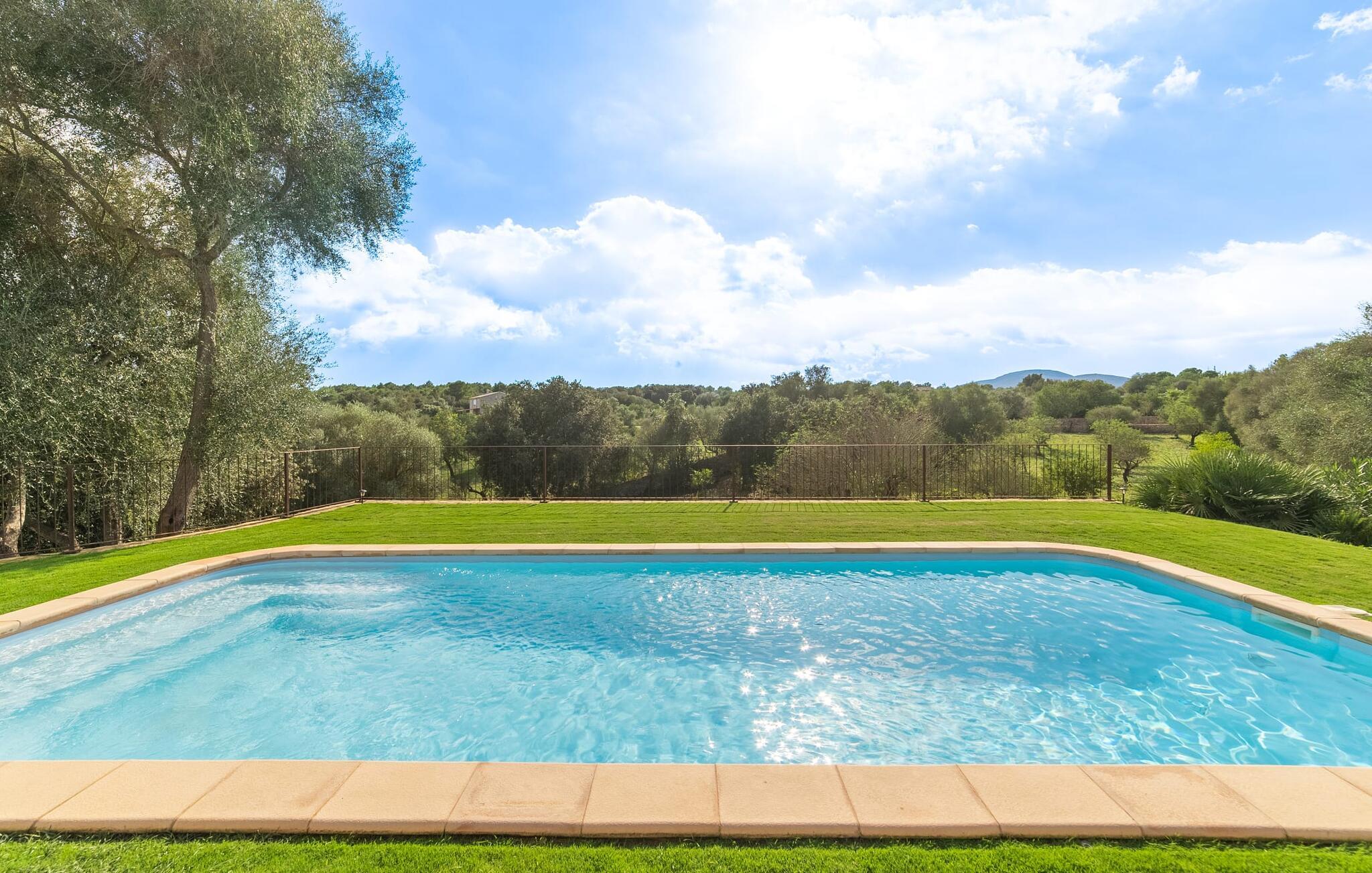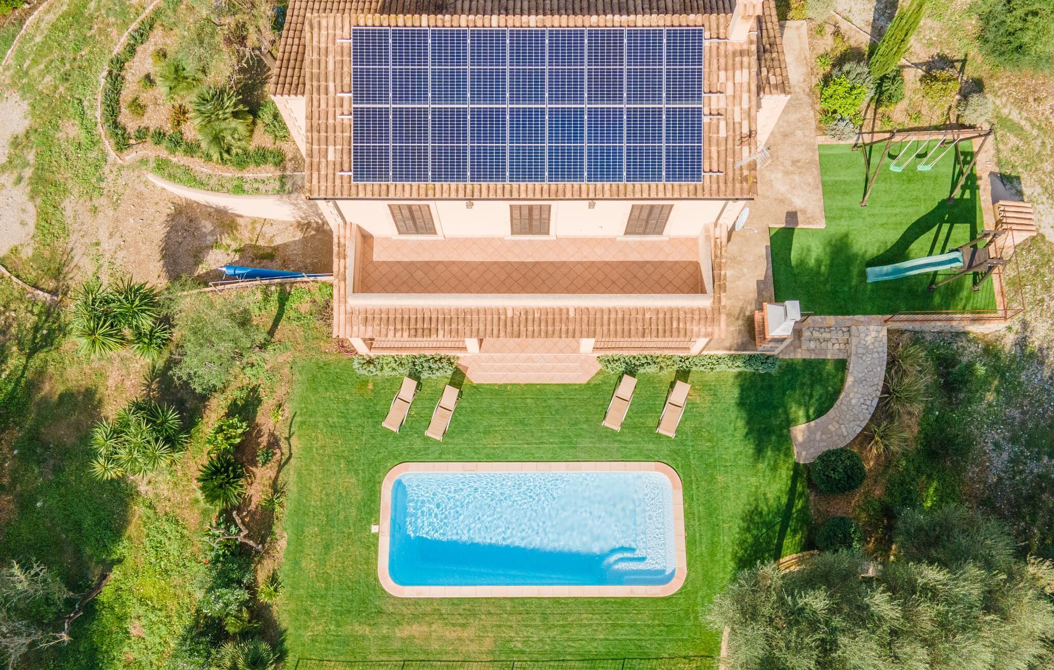 Leder I efter et sted, hvor I kan nyde fred og privatliv? Så kig nærmere, for måske er denne lille perle lige det, I leder efter. Villaens idylliske beliggenhed giver jer mulighed for at gå lange ture gennem naturen og blot koble af og koble af med krop og sjæl. Det, der bestemt er værd at fremhæve, er den statelige terrasse - når I først har sat jer derned, vil I ikke tage afsted, udsigten er så betagende. Under jeres ophold kan I føle, som om I er blevet transporteret til et fantastisk filmsæt. Der er flere siddepladser på terrassen, så intet står i vejen for et afslappet måltid udendørs med udsigt til det grønne. På den forudsatte grill kan I tilberede den friske fisk, I har købt hver tirsdag på det ugentlige marked i Artà. Det er bedst at bruge en hjemmelavet marinade lavet af krydderurter, hvidløg og olivenolie, som giver den en udsøgt smag. Og parret med et fremragende glas vin fra en mallorcansk vingård kan livet være så smukt... Selve villaen imponerer med sine stærkt oplyste rum og interiørets naturlige karisma, hvor der ikke er stilistiske modsætninger. De flotte gulvfliser kan findes i alle rum og på terrassen. Møblerne er for det meste indrettet i varme trætoner, der blander sig harmonisk med de cremefarvede vægge. Der er en hyggelig atmosfære, som forstærkes af lysindfaldet gennem villaens store vinduespartier. Soveværelserne ovenpå er designet til komfort og lover afslappende nætter eller en afslappende eftermiddagssiesta. To af værelserne har dobbeltseng, det tredje har to enkeltsenge og er derfor ideelt som børneværelse. Det ene af de to badeværelser byder endda på et hjørnebadekar til et behageligt aftenbad. I stueetagen har den åbne stue et hyggeligt loungehjørne og en pejs - så bare rolig, hvis vejret ikke samarbejder, for I kunne ikke undvære den hyggelige varme og den knitrende ild. Fra stuen er der direkte adgang til trækøkkenet, som byder på alt, hvad et selvforplejningshjerte begærer med ovn, keramisk kogeplade, stort køleskab, opvaskemaskine, mikroovn, kaffemaskine, elkedel og drikkevarekøleskab. På grund af sin afsondrede landlige beliggenhed er villaen "Son Norte Fou" særligt velegnet til folk, der søger fred og afslapning. Leder I efter underholdning, kan I besøge grottesystemet Coves de Artà, et attraktivt udflugtsmål, der også er fascinerende for børn. En tur til den naturlige strand i Cala Torta, som er omkring tredive minutter væk, anbefales også. Når I først krydser den noget ujævne vej til parkeringspladsen, kan I nyde den fascinerende skønhed ved denne sandstrand omgivet af bølgende grønne bakker. Denne landlige og afsondrede villa ligger i de grønne bakker mellem Colònia de Sant Pere og den maleriske lille kunstnerby Artà, kun 2,9 km væk. Der vil I også finde talrige indkøbsmuligheder til at dække jeres daglige behov samt mange seværdigheder. På cirka 20 minutter kan I nå smukke sandstrande som Canyamel og Platja de Son Moll. Bemærk venligst, at denne ejendom ikke accepterer ungdomsgrupper eller polterabender. En ungdomsgruppe på denne ejendom består af personer under 30 år. Book ikke denne ejendom, hvis I er en ungdomsgruppe eller en polterabendgruppe, da jeres reservation vil blive afvist, når den er booket, hvilket også kan være tilfældet ved ankomst til ejendommen eller under jeres ophold, og I vil ikke modtage en refusion.