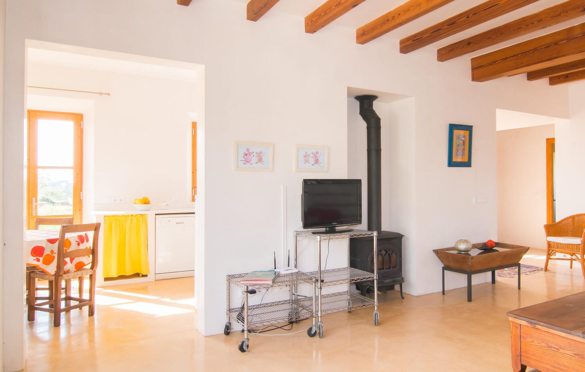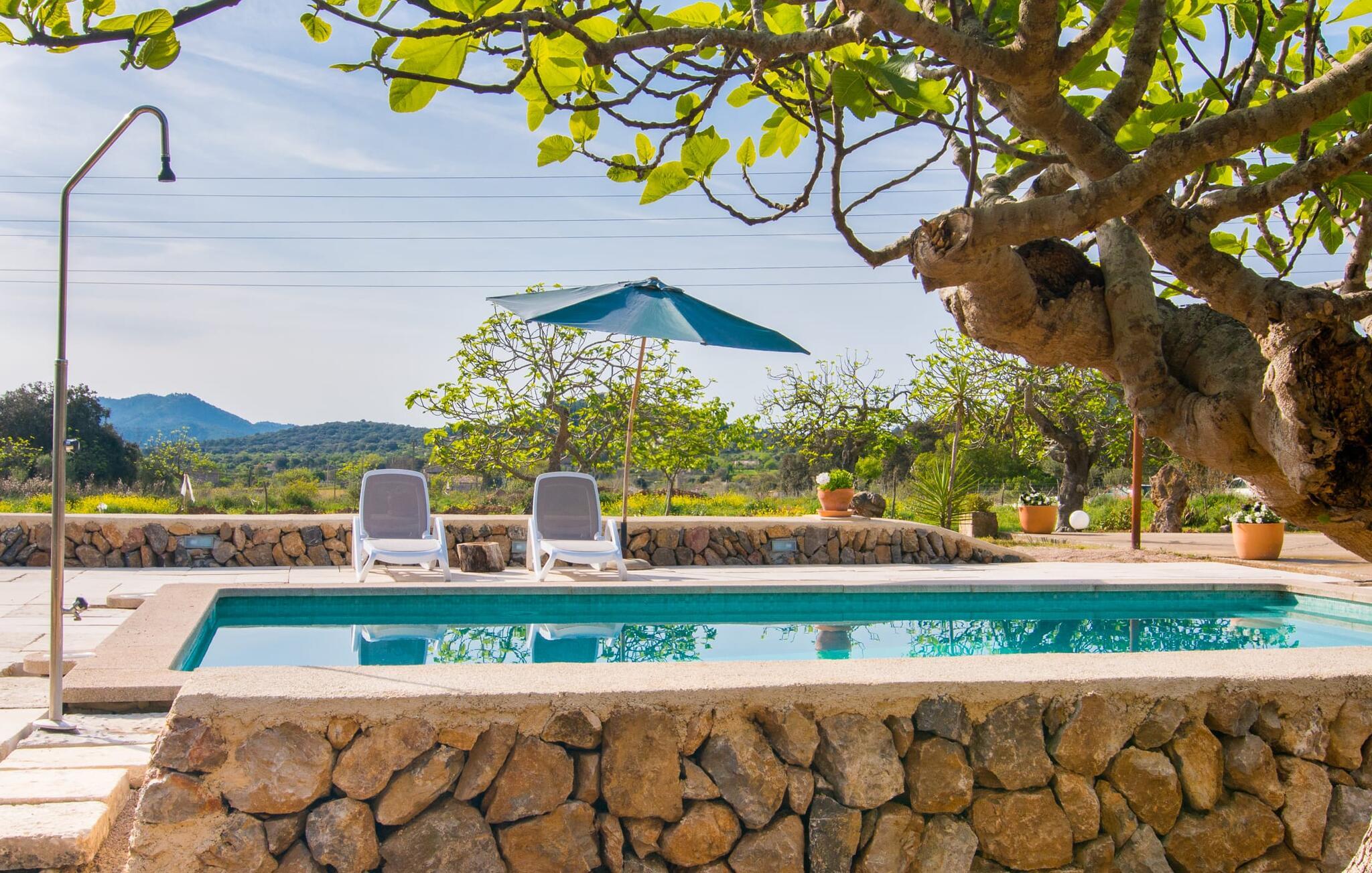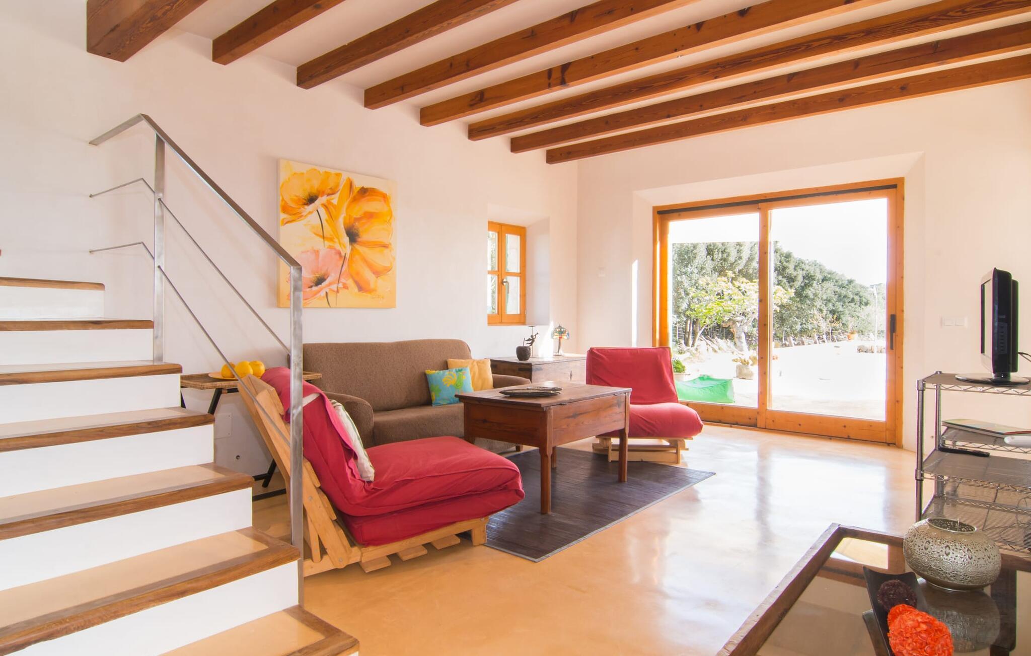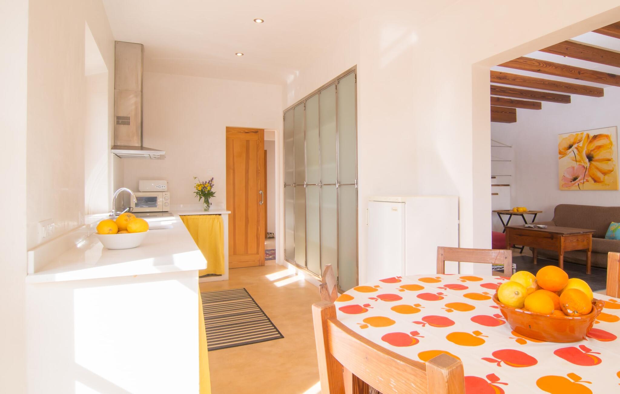 Beliggende i de frodige bakker omkring Artà tilbyder den charmerende villa "Son Frare" fuldstændig privatliv og en betagende udsigt. Dette fuldstændigt restaurerede stenbrudshus har mintgrønne skodder og en vidunderlig solterrasse med privat pool. Poolområdet med liggestole og parasoller flyder ud i en skyggefuld terrasse med et behageligt opholdsområde og bærbar grill - perfekt til afslappende aftener. Indenfor kombineres moderne komfort med rustik charme. Den åbne plan stue, spiseplads og køkken byder på en indbydende atmosfære med masser af naturligt lys, der kommer gennem store vinduespartier. Køkkenet er udstyret med alt hvad I behøver, og spisebordet har plads til seks personer. Der er to soveværelser: et soveværelse med 2 enkeltsenge i stueetagen og et soveværelse i åbent plan med en queensize seng (1,6 m) og ensuite badeværelse ovenpå. Det store soveværelse fører til en privat terrasse med en betagende udsigt, hvilket gør det til et ideelt tilflugtssted for par eller små grupper. Villaen ligger i fantastiske landlige omgivelser nær den lille middelalderby Artà. Kun 2 km væk finder I butikker til jeres daglige behov, et hyggeligt ugentligt marked om tirsdagen og gode caféer og restauranter. Cala Ratjada med sine mange attraktive barer langs promenaden er også et besøg værd. Villaen ligger kun få kilometer fra populære sandstrande som Sa Marjal eller Cala Bono. Nyd at cykle eller vandre langs Via Verde, da den 30 km lange rute fra Manacor til Artà generelt er meget flad og byder på en vidunderlig udsigt over det omkringliggende landskab.