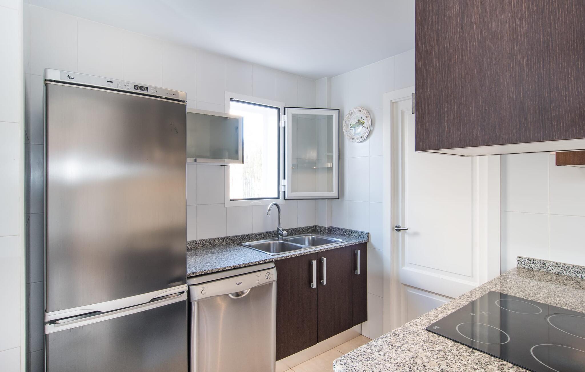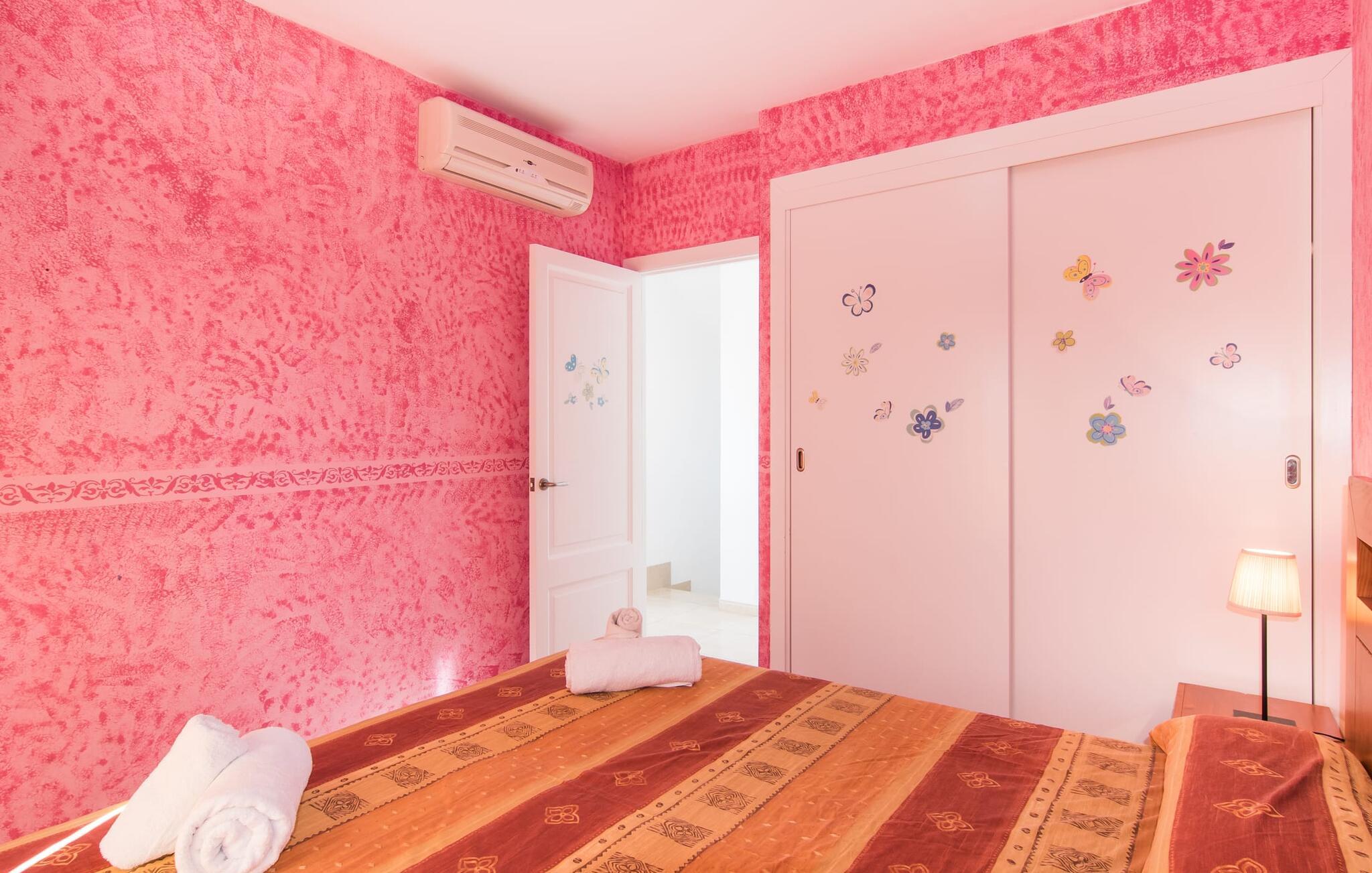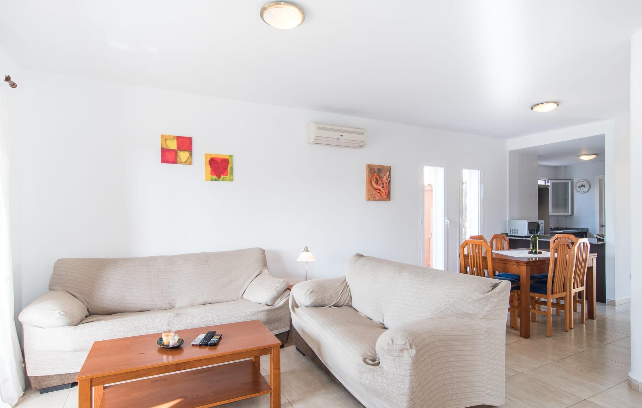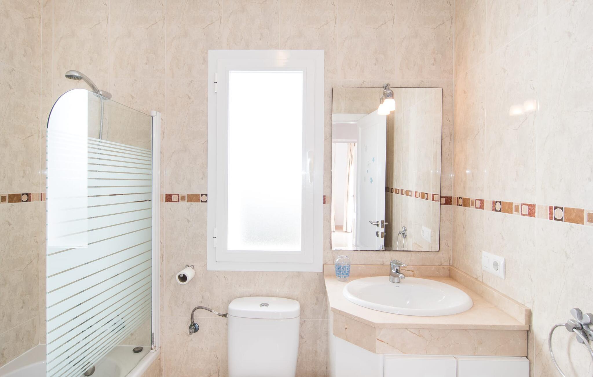 Din ferie begynder enkelt og nemt, så snart I ankommer: Kun en times kørsel, udelukkende på asfaltveje, tager jer fra lufthavnen til villaen, hvor I hurtigt kan slå jer ned og slappe af. Efter jeres ankomst vil I måske nyde en kølig drink på terrassen, som takket være sit tag tilbyder et behageligt sted at slappe af selv i varmt sommervejr. Hvis vejret er godt, kan det smukke bord blive rammen om alle måltider sammen de kommende dage. Selvom en lækker morgenmad i disse omgivelser bestemt er en særlig fornøjelse, vil den nærliggende indbyggede grill sandsynligvis også opmuntre jer til at nyde kulinariske lækkerier sammen om aftenen. Hvem bliver den første til at hoppe i poolens kølige vand? Med en dybde på mellem 0,80 og 2 m og en længde på 8 m er poolen dekoreret med blå mosaikfliser og små halvcirkelformede trin en fremragende base for varme solrige dage, hvor det store palmetræ giver ekstra skygge. Til solbadning kan I placere de komfortable liggestole i haven som ønsket. Vil I se verden fra oven, så tag til tagterrassen, som ligger på husets første sal og også har udsigt til haven. Terrassen i stueplan fører direkte ind i opholds- og spisestuen, som bekvemt er opdelt i to områder, så I kan slappe af indendørs uden at komme i vejen for hinanden. Sofaen er det perfekte sted at komfortabelt se tv; Flere borde inviterer jer til at læse eller skrive - hvad med at sende et godt gammeldags postkort til jeres familie og venner derhjemme? Spisebordet kan nemt rumme hele jeres gruppe til indendørs spisning, hvilket kan være særligt fristende på en doven dag, da turen til køkkenet er behagelig kort. I brun og sølv stil tilbyder det omfattende udstyret køkken et fremragende grundlag for selvforplejning, og det store køleskab/fryser holder feriebaren pålideligt kølig. Et soveværelse med to enkeltsenge og et badeværelse er også i stueetagen. En enkel trappe fører jer op og videre til de to ekstra soveværelser - begge med dobbeltsenge på 1,80 x 2,00 m, hvoraf det ene har eget badeværelse. Villaen har i alt tre brusere og et badekar på sine tre badeværelser. Villaernes særlige tiltrækningskraft på den sydøstlige del af øen er blandt andet deres nærhed til det såkaldte "Calas de Mallorca". Disse mange små, delvist ubebyggede sandbugter, med deres ofte fine sand og lavvandede indsejling i vandet, er ideelle for familier med små børn. Den lille vej nær huset fører jer hurtigt til talrige smukke udflugts- og bademål, herunder den velbeskyttede badebugt Cala Murada, hvor det blå flag for rent vand flyver i vinden, og hvor der er liggestole, toiletfaciliteter, osv. Strandbaren dækker en lang række behov. I bør bestemt planlægge et besøg på de smukke strande ved Son S'Arenal i Porto Colom (ca. 10 km) og Cala Sa Nau i S`Horta (ca. 14 km)! Regionen omkring Cales de Mallorca med dens rigdom af huler bringer historien til live, og en tur til det nærliggende kloster San Salvador lover en fantastisk udsigt. Nyd den urbane følelse, gå til stranden og ind i landsbyen med dens supermarkeder og barer - villaen "Son Ganxo Uno" gør det muligt! Med Cala d'Or, Portocolom og Porto Cristo inden for 20 km, sørger promenader, gode restauranter og lystbådehavne for fornøjelse og nydelse. Husets styrker: Terrasse med muret grill, privat græsplæne og pool udenfor, to skriveborde til hjemmekontorer i stueetagen.