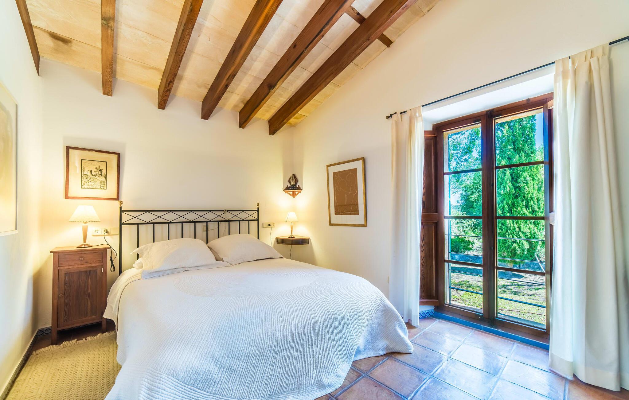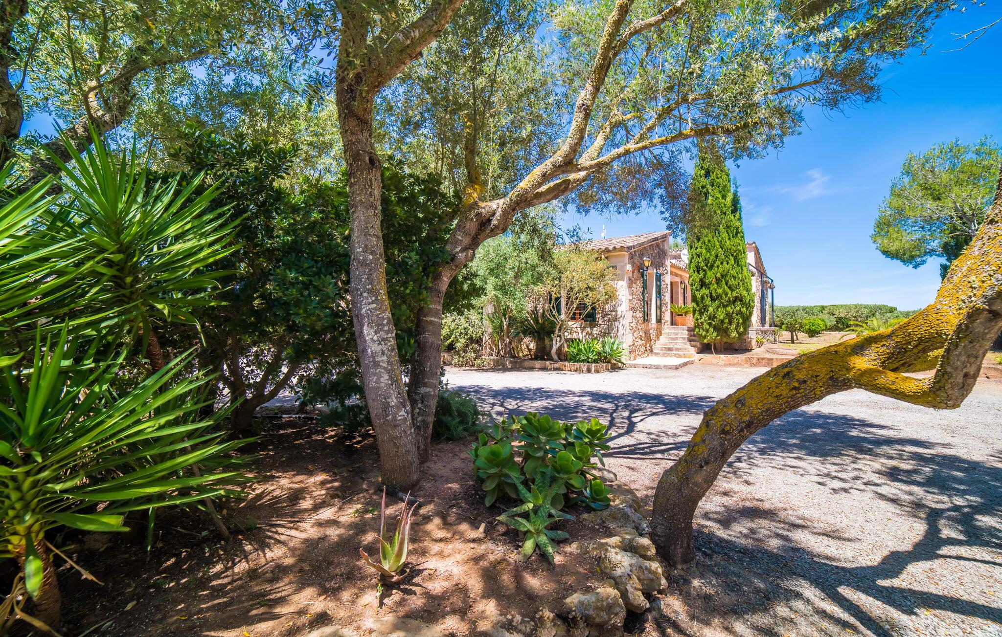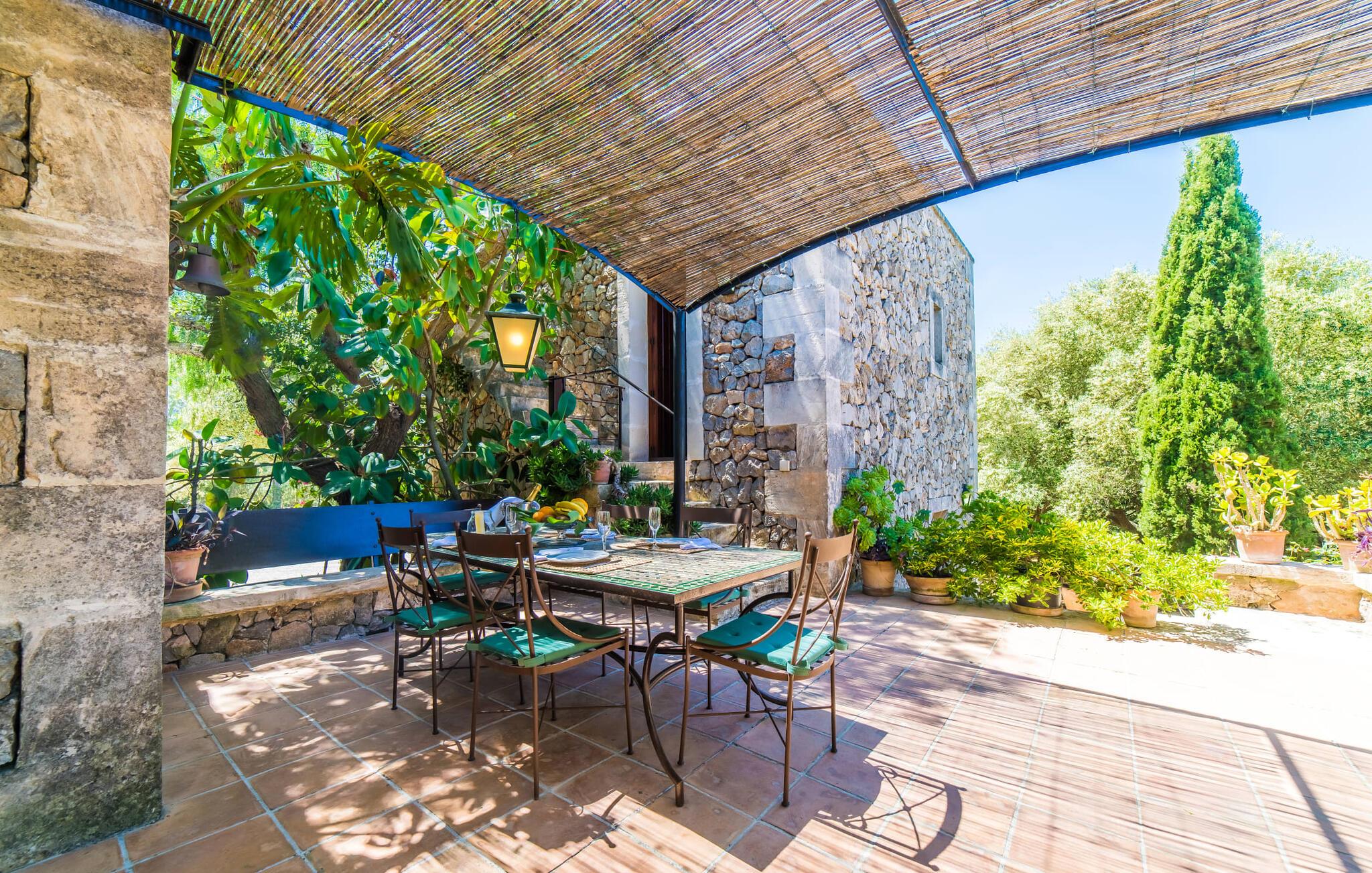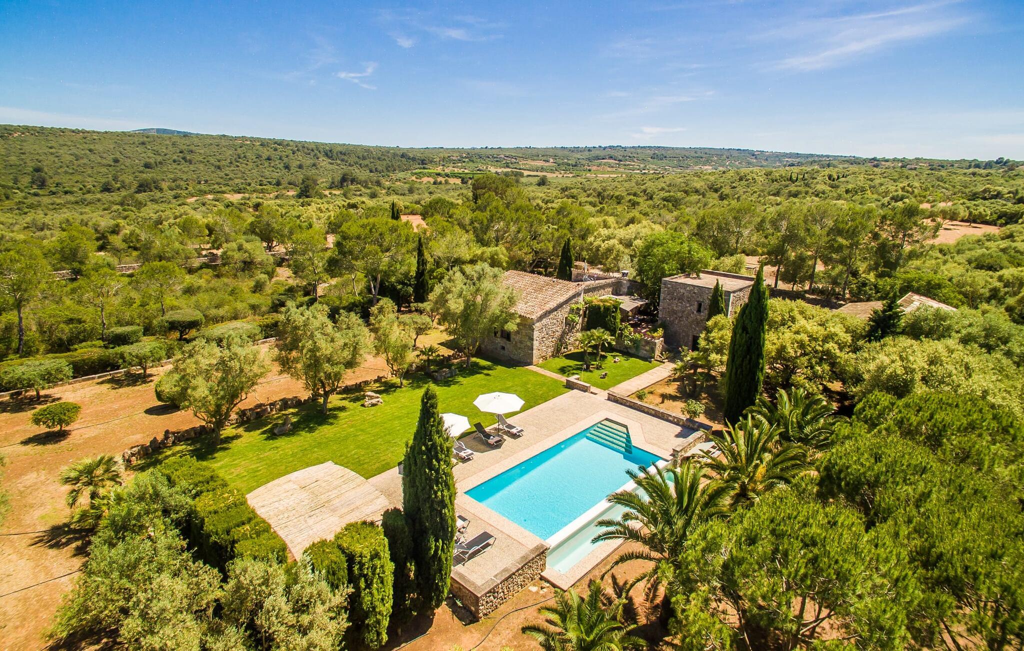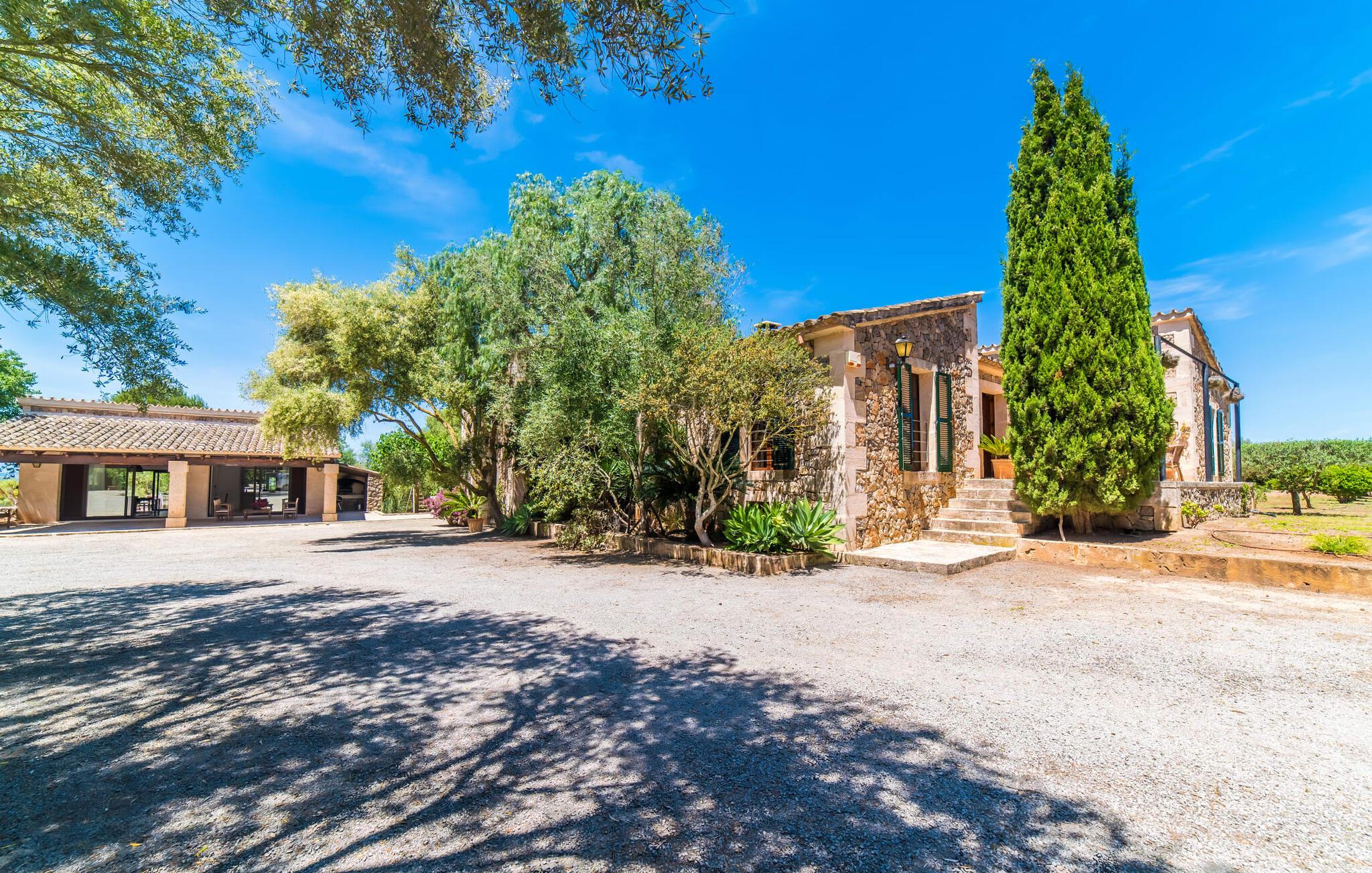 Naturstensvillaen "Son Guillotet" blev bygget på en meget smuk 120.000 kvadratmeter stor grund. Det er kendetegnet ved sin afsides beliggenhed midt i et uberørt naturlandskab med frodig vegetation lige ved siden af huset. En del af det huser en have og byder på adskillige områder til solbadning og skyggefulde træer. Her vokser hovedsageligt middelhavsplanter, herunder oliventræer og nogle få imponerende palmer. Den rolige atmosfære omkring huset er præget af naturens lyde og tilbyder de ideelle rammer for privat afslapning og rekreation. En stor 66 kvadratmeter infinity pool er integreret i det store havelandskab og sørger for, at I holder jer dejlig frisk på varme dage. Det har nem adgang og er omgivet af en omsluttende terrasse med adskillige komfortable liggestole. Er sollyset for kraftigt, kan I selvfølgelig bruge en parasol. Derudover inviterer et hyggeligt opholdsområde under et let bambustag til at slappe af og blive hængende. Herfra har I den bedste udsigt over pool og græsplæner og kan holde øje med børnene, der leger og svømmer, hvis det er nødvendigt. Her kan I sidde skønt og nyde idyllen når som helst på dagen eller natten. Stien fører fra poolterrassen, kun få meter væk, til villaen. En romantisk overdækket terrasse dækket med vinstokke venter gæsterne her. Alt efter jeres ønsker kan I sidde ved det smukke spisebord eller tage plads ved et af de vægmaleriagtige siddepladser. Andre designede hjørner og nicher omkring villaen inviterer til at finde nye yndlingssteder igen og igen og til at opleve dette smukke stykke jord intensivt. For sportsentusiaster er der et bordtennisbord under den luftige skygge. I vil måske også bruge grillen og nyde friske middelhavsdelikatesser ved en kulinarisk grill en aften. Den tiltalende atmosfære fortsætter inde i villaen. Der er en kombineret stue/alrum/køkken, som umiddelbart fremstår hyggeligt og stemningsfuldt med harmonisk afstemte materialer og farvekombinationer. Brugen af massive trælofter, vinduer og møbler samt lyse og muntre farver er her et smart valg. Den åbne pejs i hjørnet af stuen og den lille ovn i spisepladsen fremtryller yderligere hygge. Det runde spisebord, hvorfra man har en vidunderlig udsigt til terrassen og haven bagved, byder på plads til seks personer. Det integrerede, separate køkken er adskilt af en bordplade og er fuldt udstyret. Ud over en kedel og en Nespresso-kaffemaskine har den også et køleskab, en ovn, en keramisk kogeplade og en vaskemaskine. Soveværelserne er oplyste og har lyse farver, hyggelige loftsbjælker og sparsomt doserede farver, men har ikke påtrængende tilbehør. Komfortable 1,60 x 2,00 m senge sikrer en afslappende søvn. De tre badeværelser er rummelige og indrettet i moderne stil, med flotte væg- og gulvfliser og æstetisk tiltalende indretning. I kan nemt lade jeres hårtørrer og strygejern blive derhjemme. Ekstraordinær og meget smuk naturstensvilla på en smuk, rummelig ejendom nær Ariany på øens kyst. Petra tilbyder den perfekte mulighed for dagligvareindkøb. Der er et ugentligt marked her om onsdagen med et stort udvalg af friske spanske produkter. De nærmeste strande er for eksempel den smukke sandstrand Son Serra de Marina eller Cas Capellans. Bemærk venligst, at denne ejendom ikke accepterer ungdomsgrupper eller polterabender. En ungdomsgruppe på denne ejendom består af personer på 28 år eller derunder. Book ikke denne ejendom, hvis I er en ungdomsgruppe eller polterabend, da jeres reservation vil blive afvist, når den er booket, hvilket også kan være tilfældet ved ankomst til ejendommen eller under jeres ophold, og I vil ikke modtage en refusion