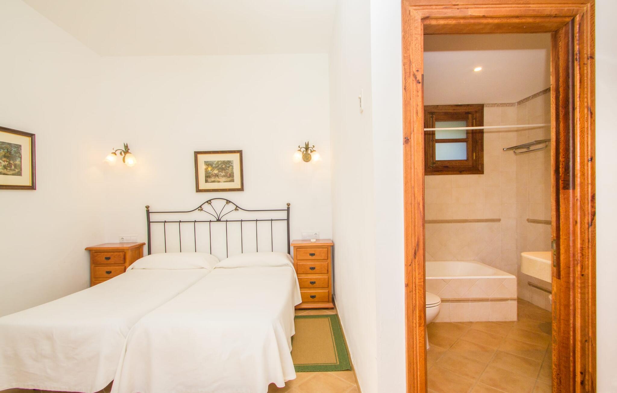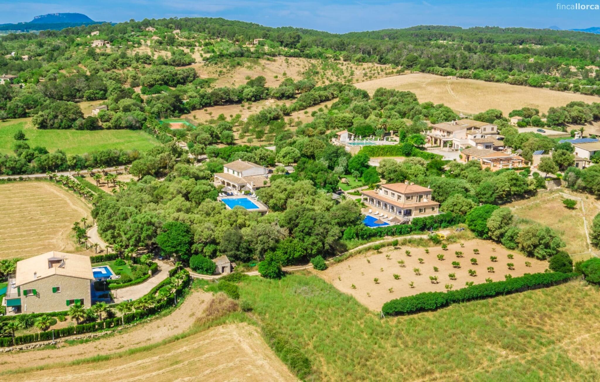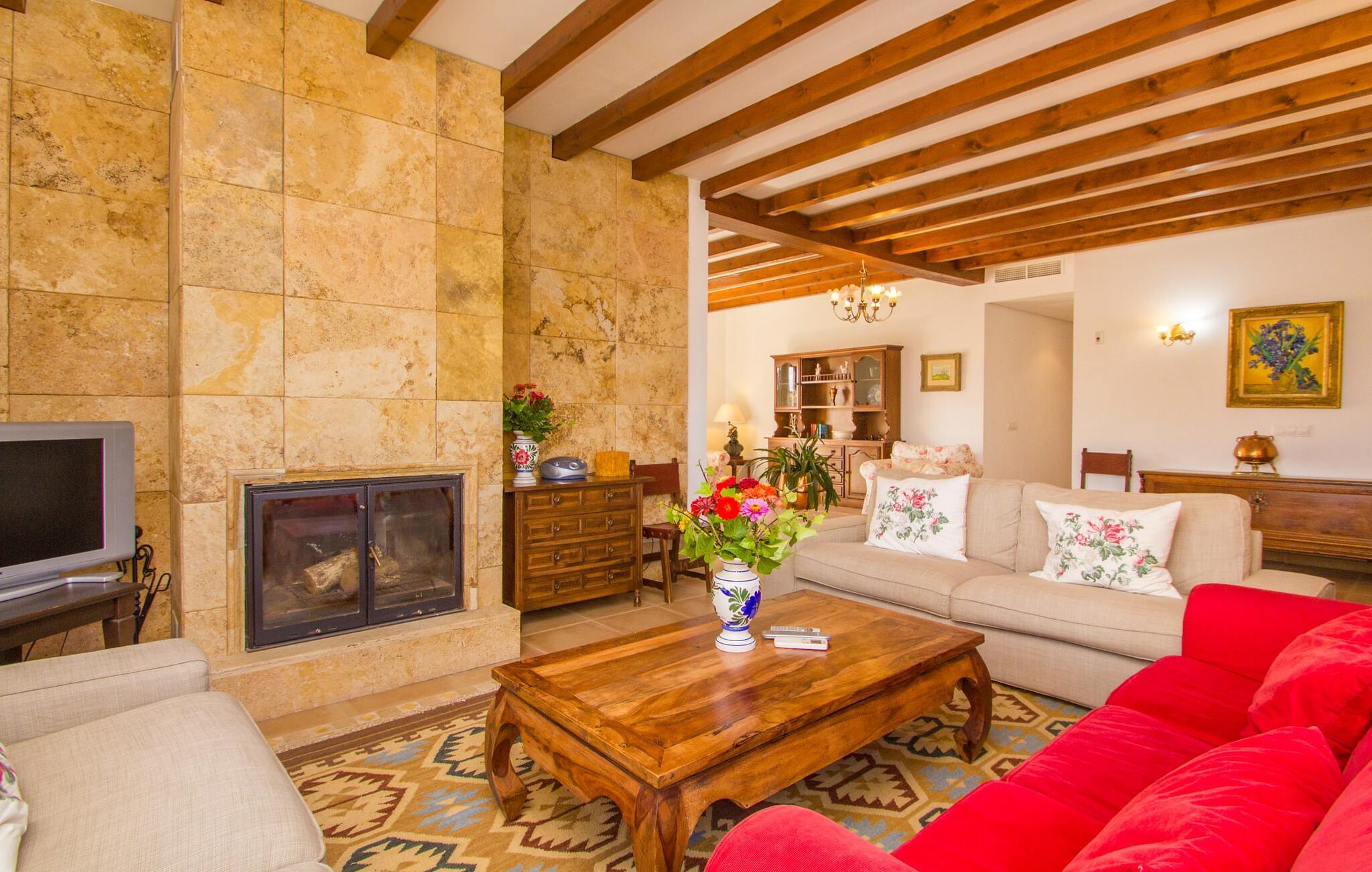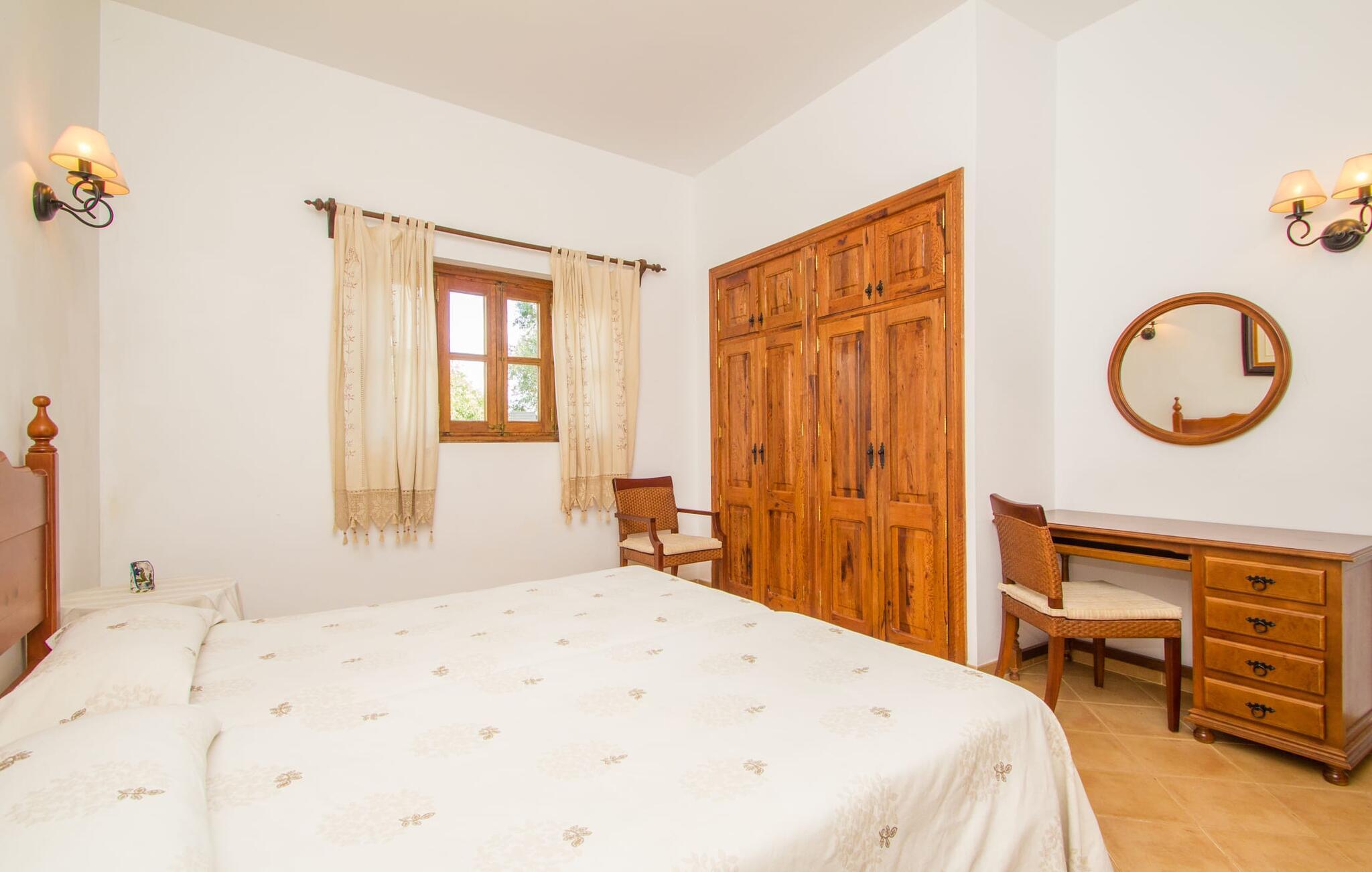 Indenfor er villaen fuldt airconditioneret, og den åbne stue og spisestue med en hyggelig brændeovn er ideel til sociale sammenkomster, mens det fuldt udstyrede køkken er perfekt til at tilberede lækre måltider. Med seks dobbeltværelser, hver med eget badeværelse, er dette den ideelle ejendom for flere familier, der holder ferie sammen.