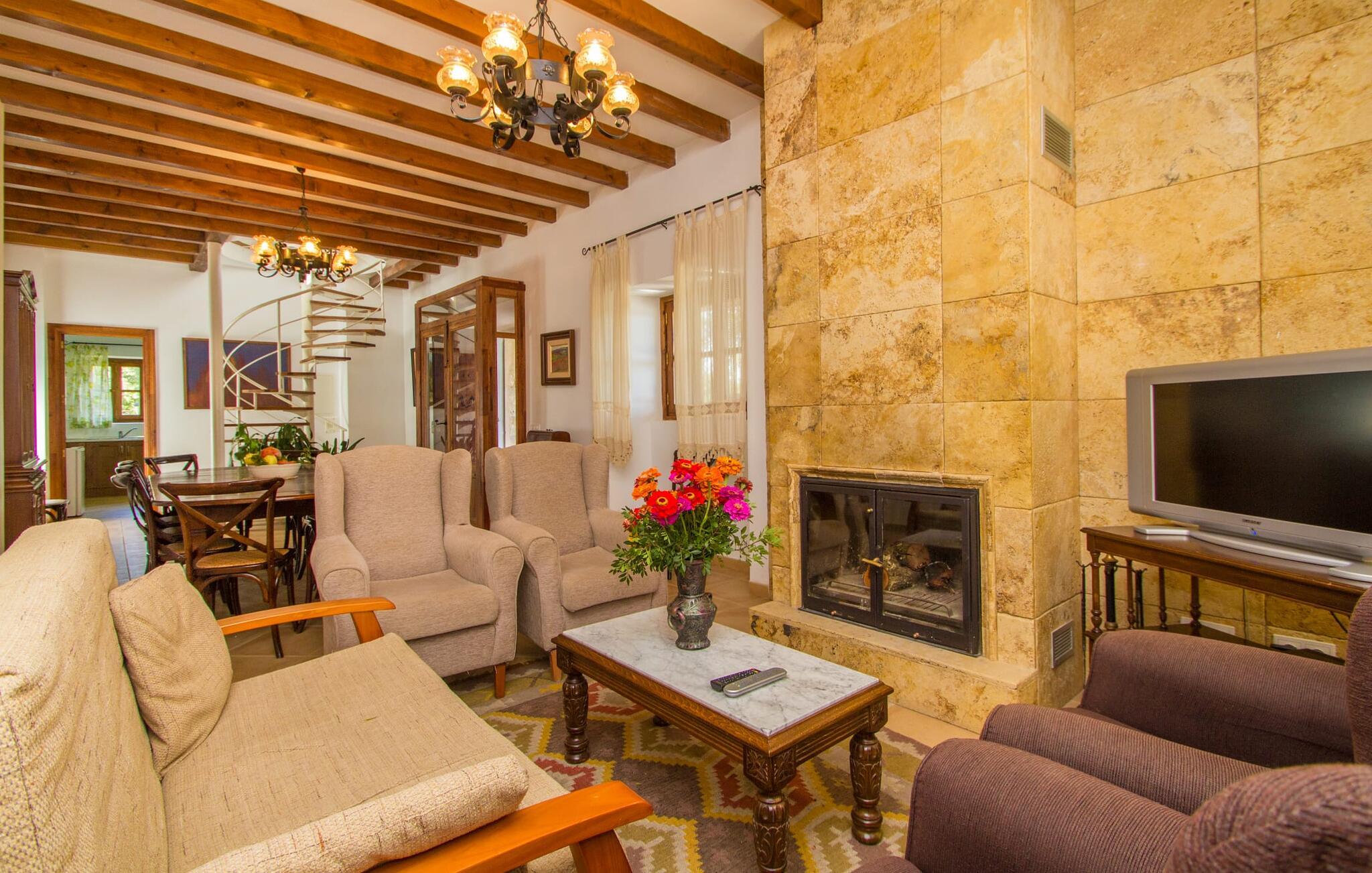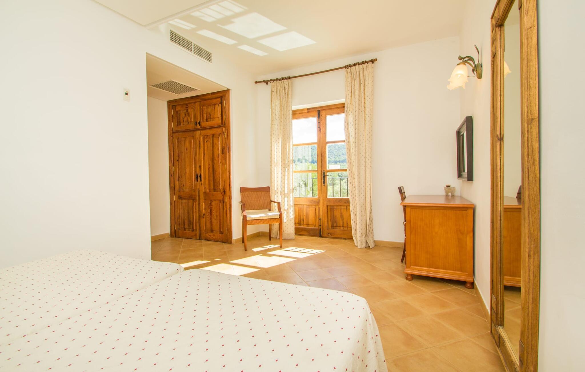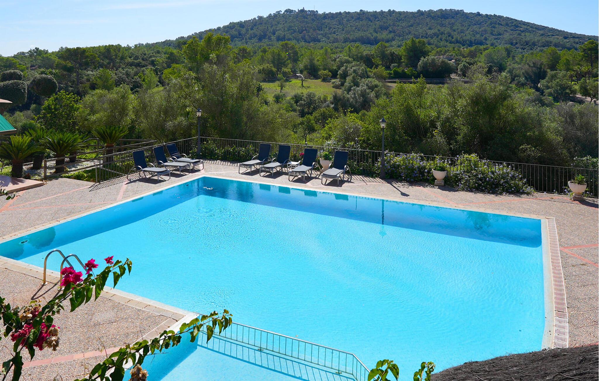 Indenfor er villaen fuldt airconditioneret, og den åbne stue og spisestue med en hyggelig brændeovn er ideel til sociale sammenkomster, mens det fuldt udstyrede køkken er perfekt til at tilberede lækre måltider. Med seks dobbeltværelser, hver med eget badeværelse, er dette den ideelle ejendom for flere familier, der holder ferie sammen.