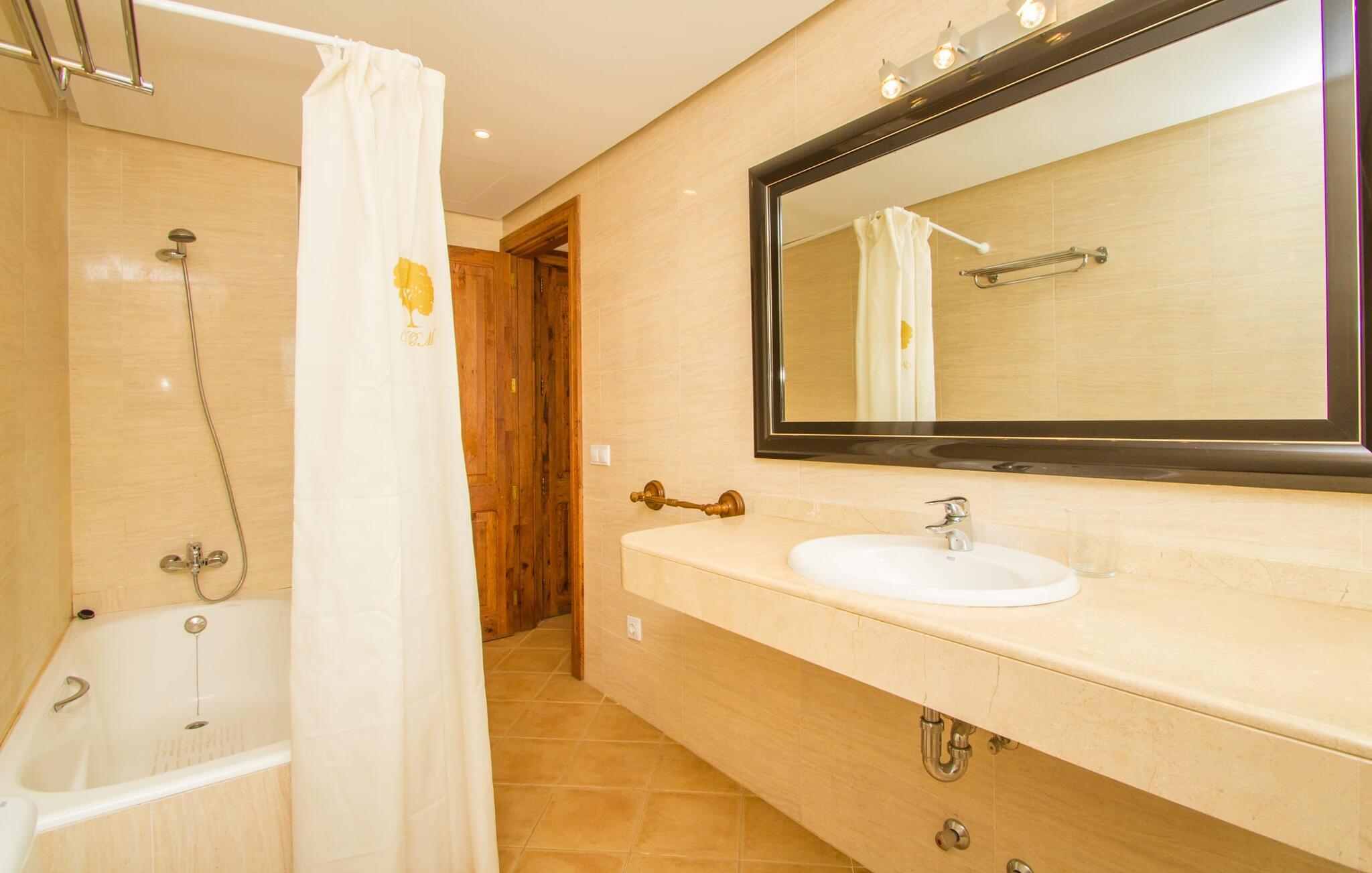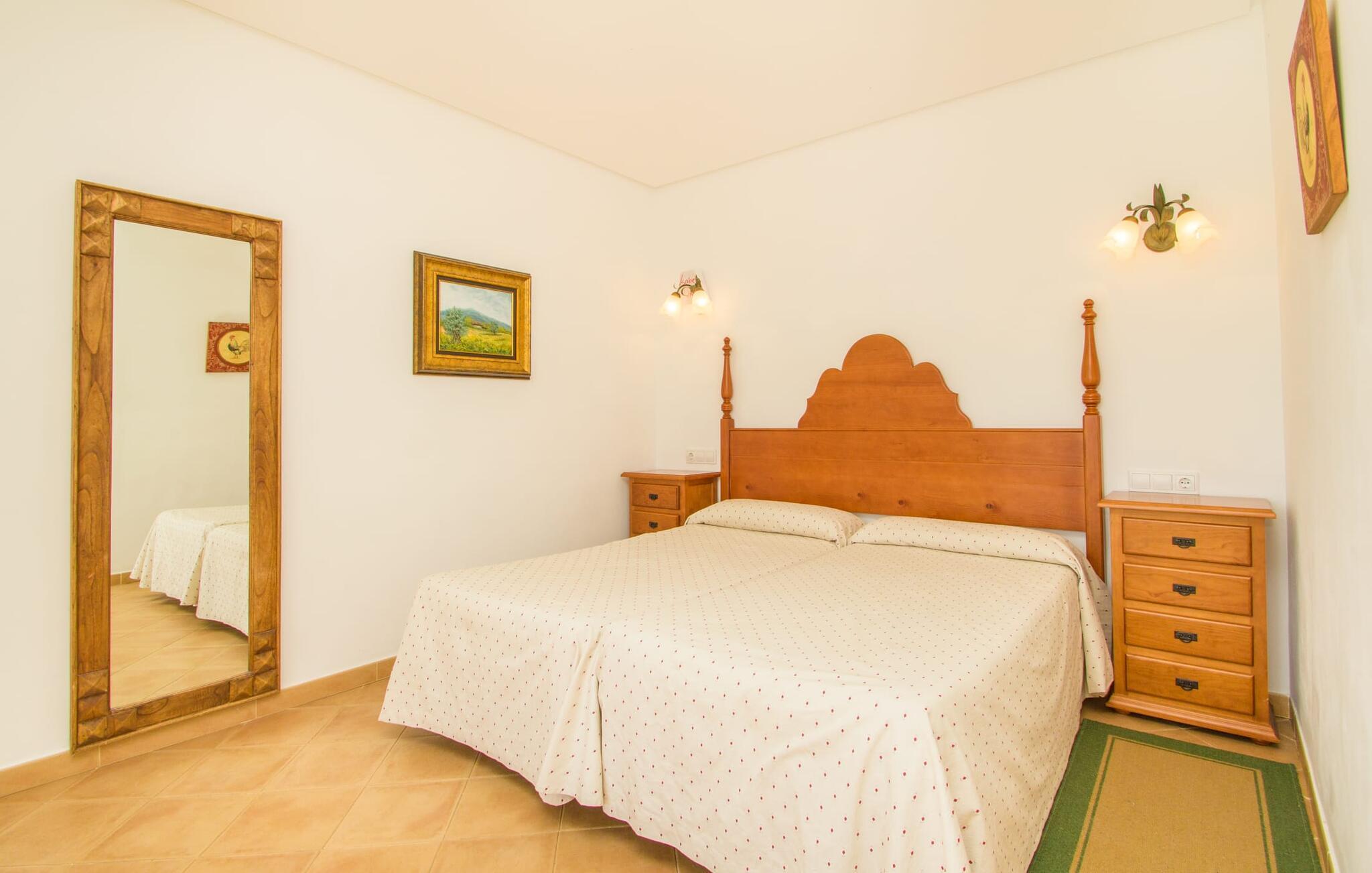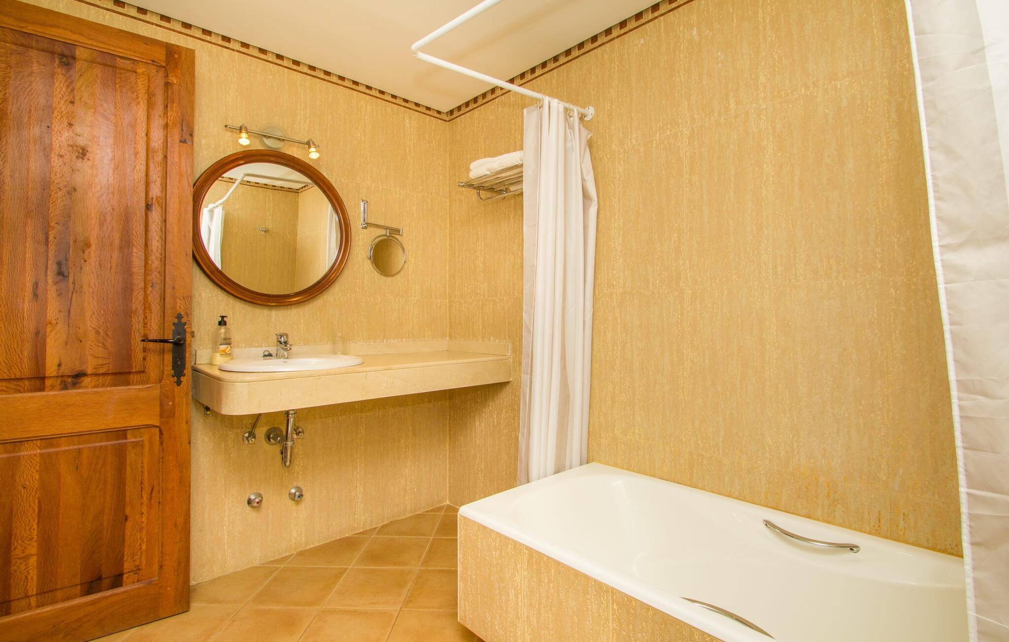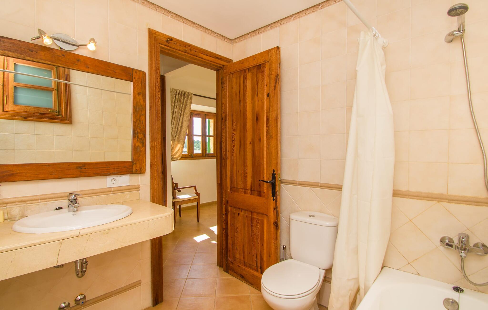 Indenfor er villaen fuldt airconditioneret, og den åbne stue og spisestue med en hyggelig brændeovn er ideel til sociale sammenkomster, mens det fuldt udstyrede køkken er perfekt til at tilberede lækre måltider. Med seks dobbeltværelser, hver med eget badeværelse, er dette den ideelle ejendom for flere familier, der holder ferie sammen.