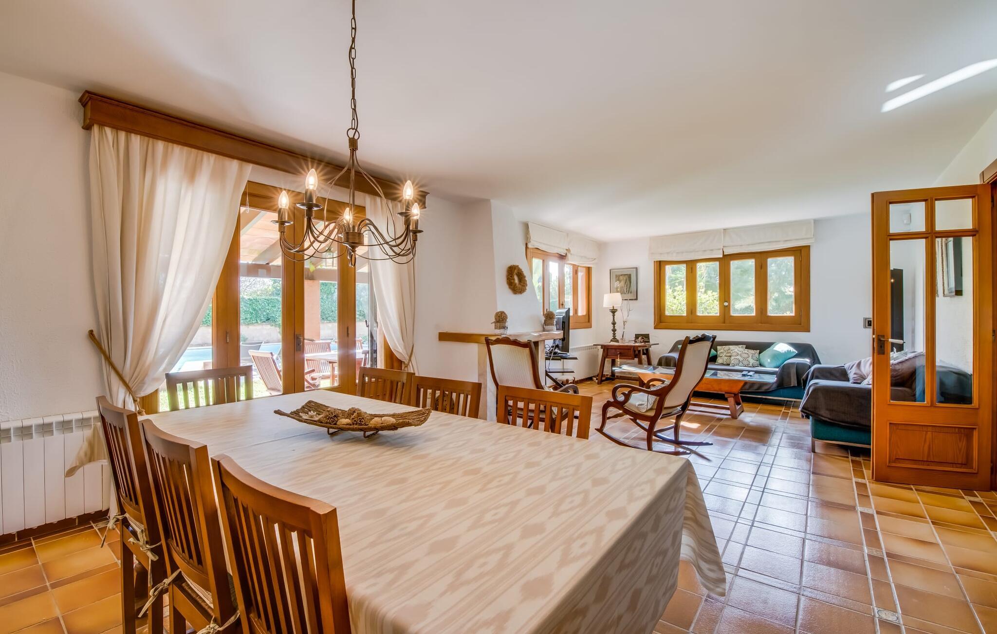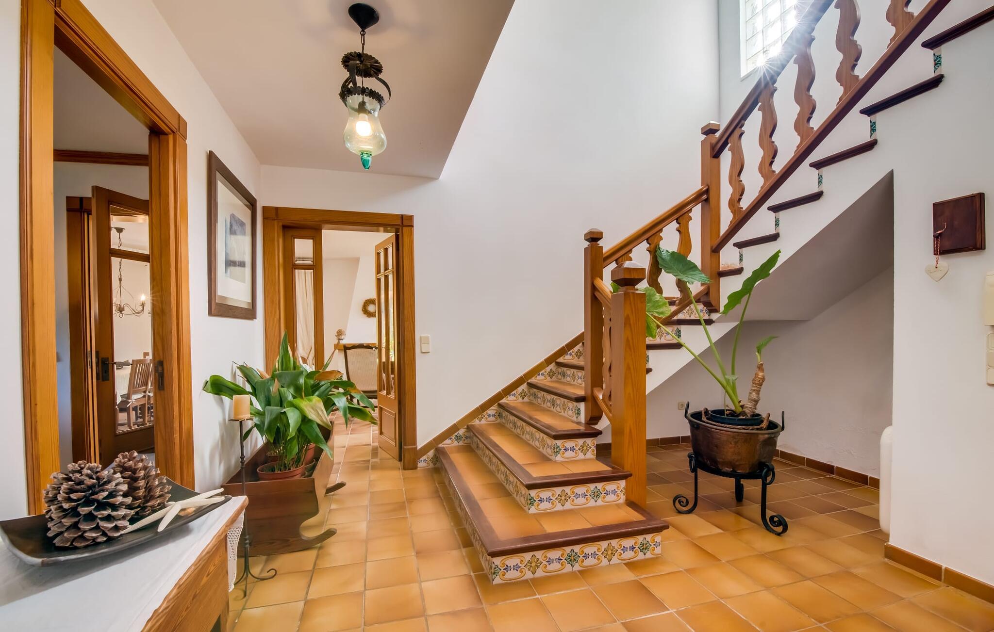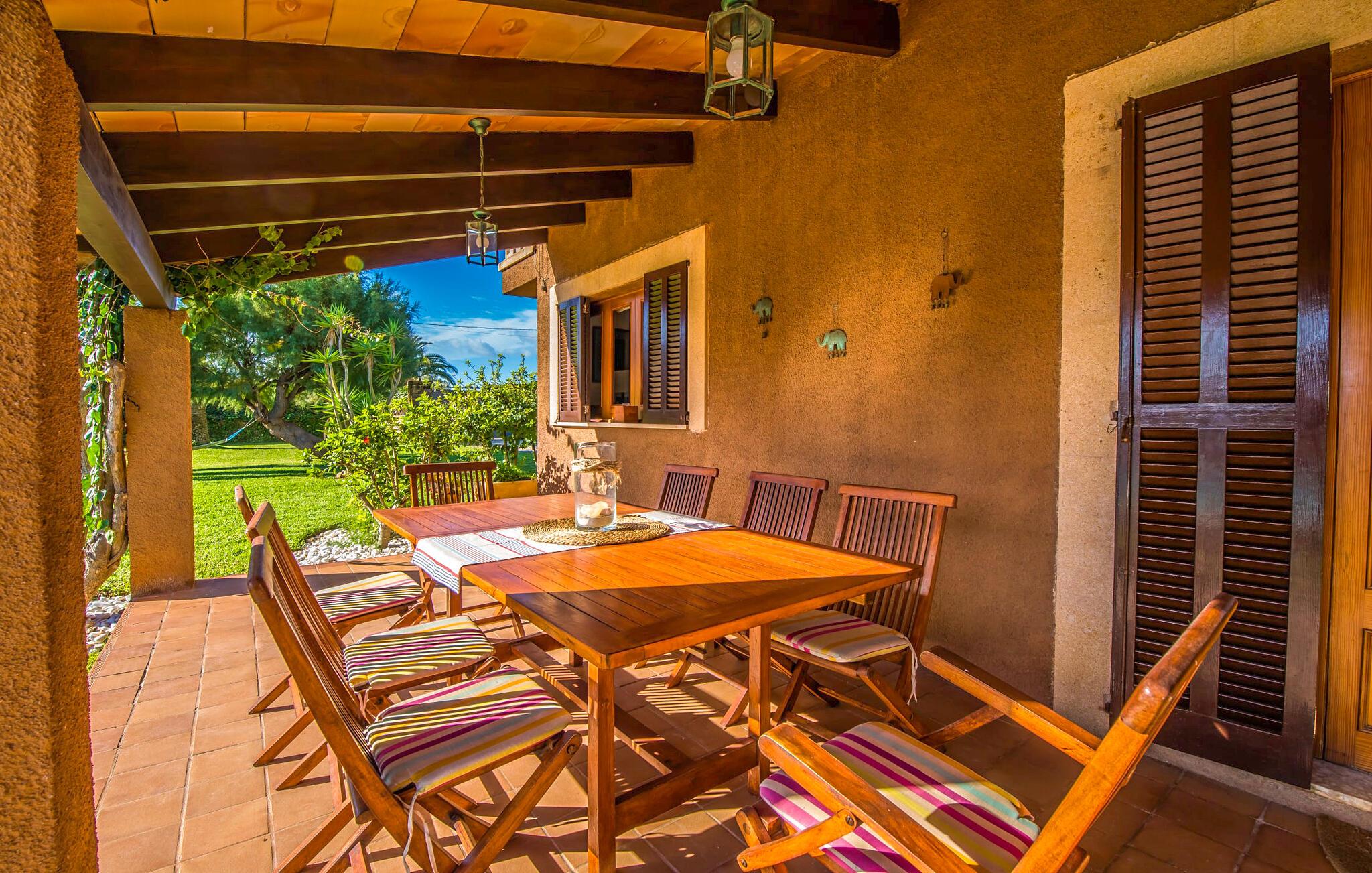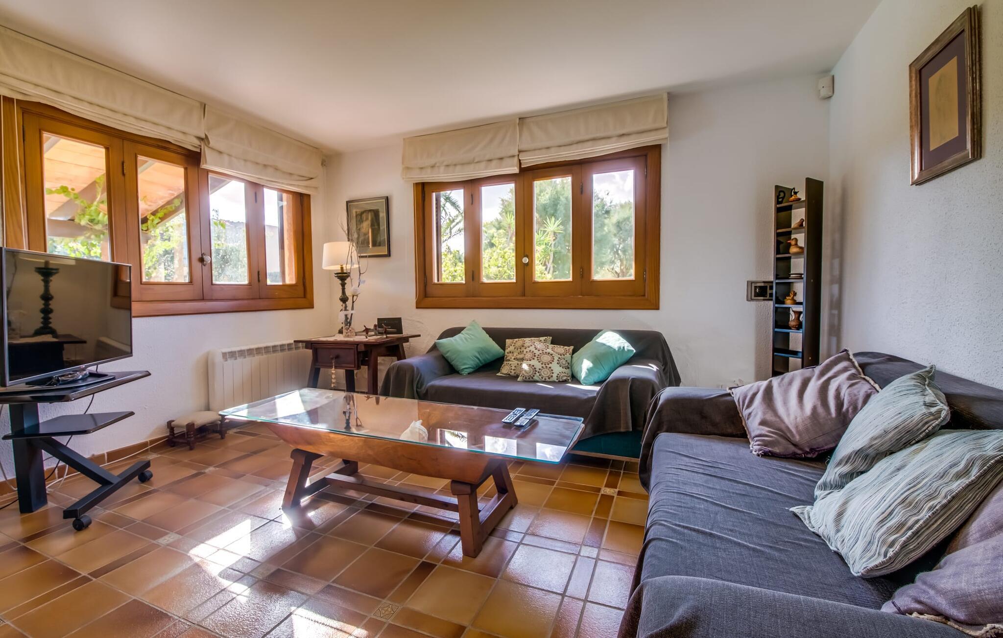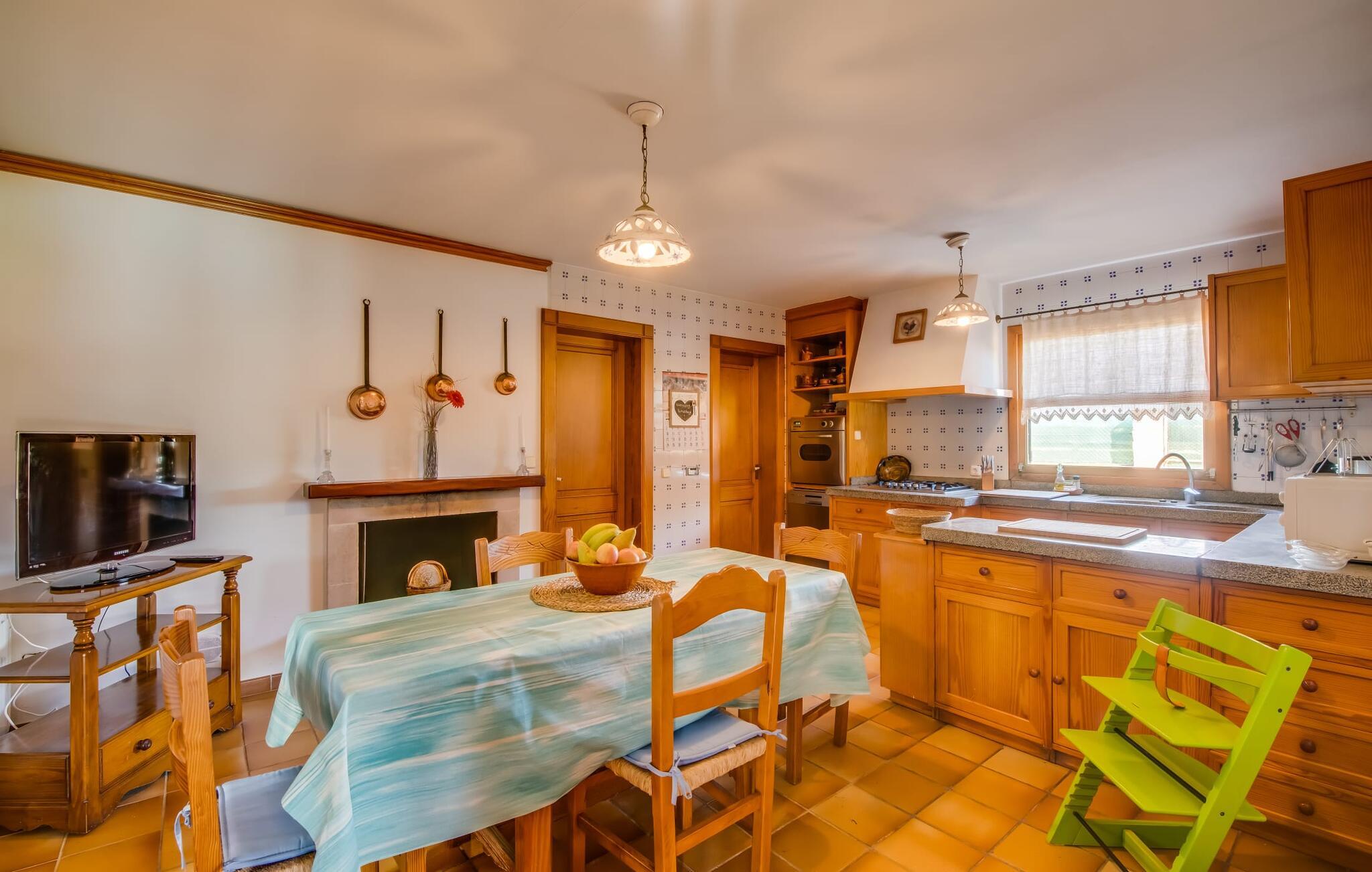 Den charmerende villa "Son Moro Vell" tilbyder den perfekte blanding til en ferie fuld af idyllisk fred og spændende oplevelser! Det skyldes i høj grad den fantastiske beliggenhed. Selvom I er i umiddelbar nærhed af byen, med alle muligheder for en varieret fritidsaktivitet, er villaen stadig så landligt beliggende, at der er garanteret en landlig stemning. Ved første øjekast er villaens smukke udendørsområde slående. En rummelig have inviterer jer til at blive hængende. Her finder I ikke kun et gennemtænkt plantelayout, men også komfortable liggestole, en forfriskende pool og endda en hængekøje, der inviterer til afslapning. Der er også to små siddepladser, hvor I kan nyde en drink eller to. På den overdækkede terrasse finder I det store spisebord, hvor I kan spise efter hjertens lyst. Lækre lækkerier kan tilberedes i det lille udekøkken med grill. Omgivet af det smukke landskab er madlavning dobbelt så sjovt! Og foretrækker I et fuldt udstyret køkken mellem fire solide vægge, så er det netop det, I finder i villaen. I den hyggelige, rustikke atmosfære kan I hugge og lave mad efter hjertens lyst. Husets øvrige rum har også meget at byde på. Stuen og spisestuen er i åbent plan, og de store vinduespartier sikrer, at rummet er lyst og luftigt. De store sofaer inviterer jer til at slappe af, dase og se tv. Og en af de komfortable gyngestole er bestemt ideel til en hyggelig læsetime. Når I bliver træt om aftenen, skal I bare gå op ad trætrappen med fortryllende farverige fliser og vælge et af de pragtfulde soveværelser på første sal. Hvad med en stor dobbeltseng? Eller vil I hellere have en af de elegante enkeltsenge? Valget er dit! Til de mindste gæster er der en sød barneseng til rådighed, som tilbyder et fantastisk sted at slumre og drømme. Et af de rummelige badeværelser kan bruges til brusebad om morgenen. Her er god plads og indretningen lader intet tilbage at ønske. I kan også opfylde mange ønsker i området omkring villaen. Der er mange måder at skabe uforglemmelige ferieminder på. De landlige omgivelser indbyder til lange gå- og vandreture. Og for fans af lidt mere action, tilbyder ejendommens beliggenhed tæt på vejen et godt udgangspunkt for at køre til forlystelsesparken i Cala Millor eller Safari Zoo i Sa Coma, kun få minutter væk. Især yngre gæster vil helt sikkert få noget for pengene her. I Cala Millor finder I også utallige butikker, hvor I kan købe smukke feriesouvenirs. Og de fantastiske restauranter venter bare på, at I skal besøge. Herligheder er garanteret! Og vil I tilbringe en afslappende dag, så pak en picnickurv og et par badehåndklæder i bilen og tag til Mallorcas østkyst, som kun ligger få minutter væk i bil. Der er adskillige strande på begge sider, som bestemt er et besøg værd. Den smukke villa "Son Moro Vell" ligger på en rummelig ejendom i den smukke østlige del af De Baleariske Øer i udkanten af Cala Millor. Byen tilbyder alt til jeres daglige behov; fra supermarkedet til apoteket og adskillige restauranter og butikker. Og kysten med sine mange flotte sandstrande ligger kun 900 m væk i luftlinje.