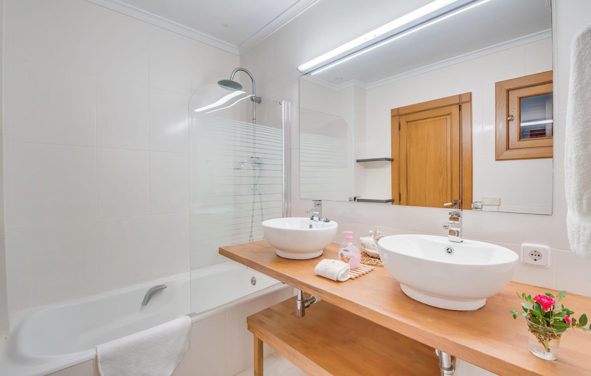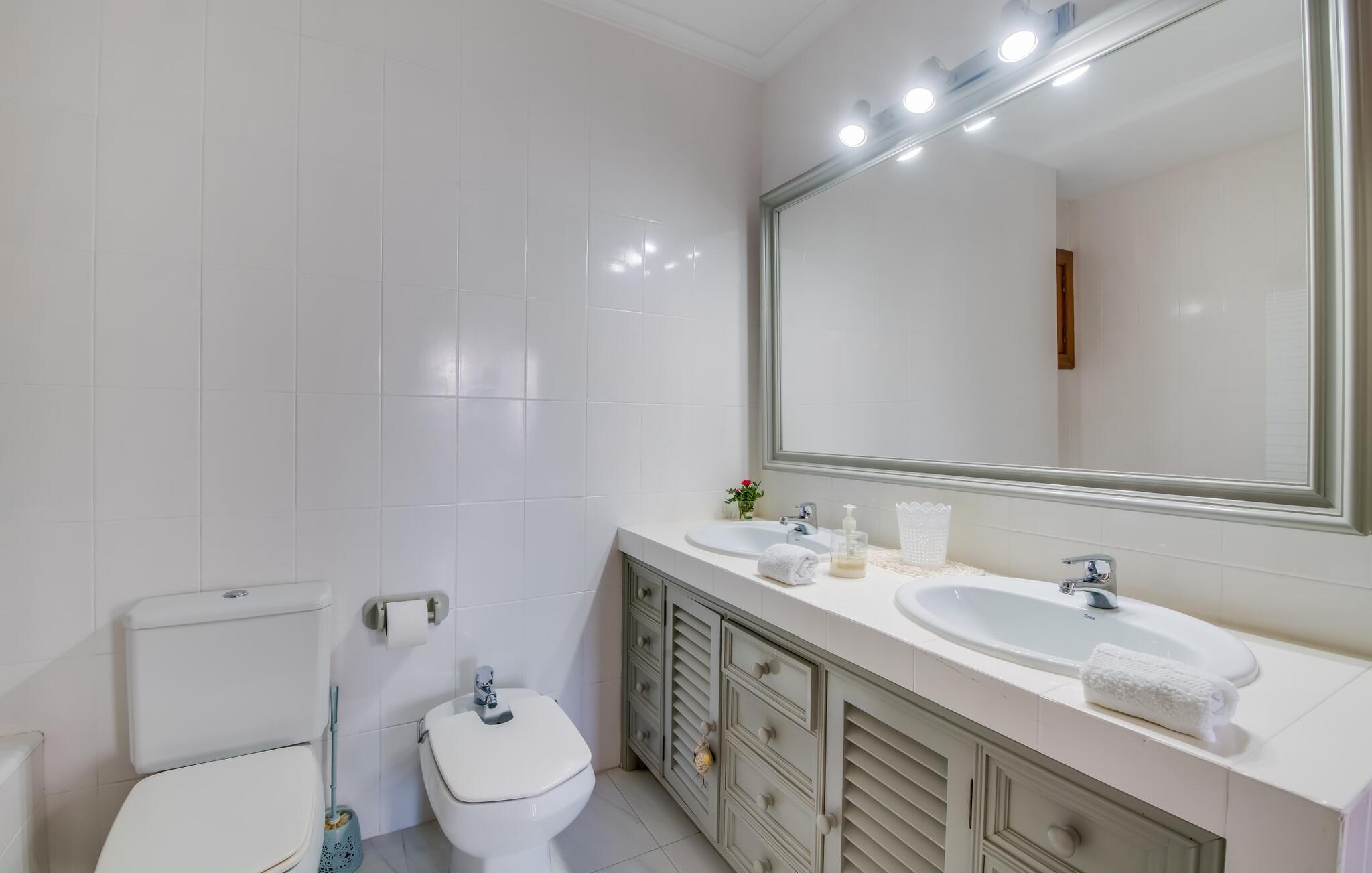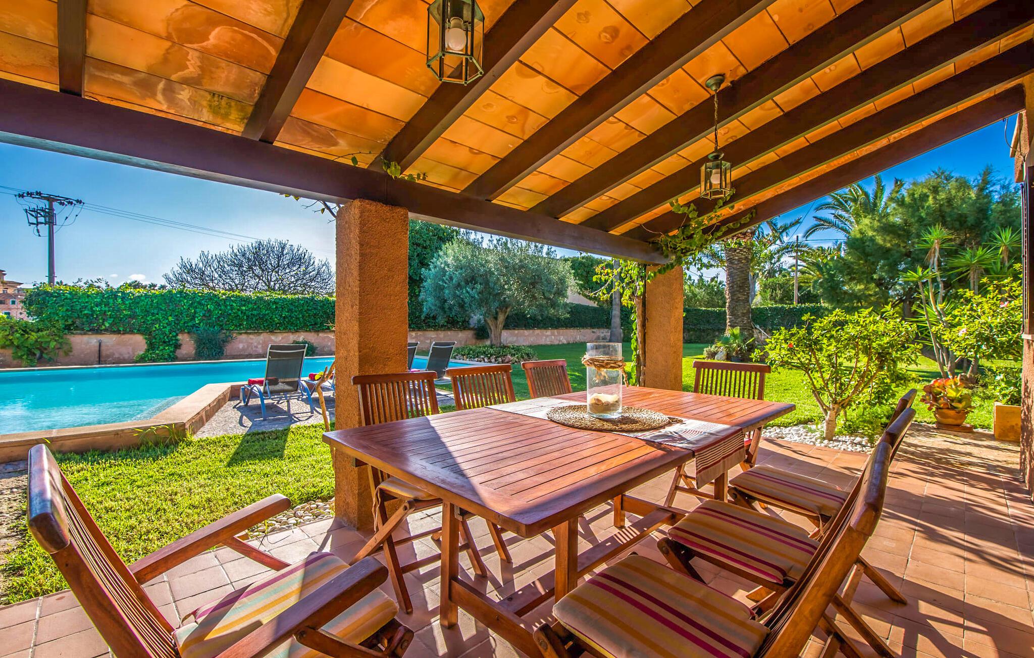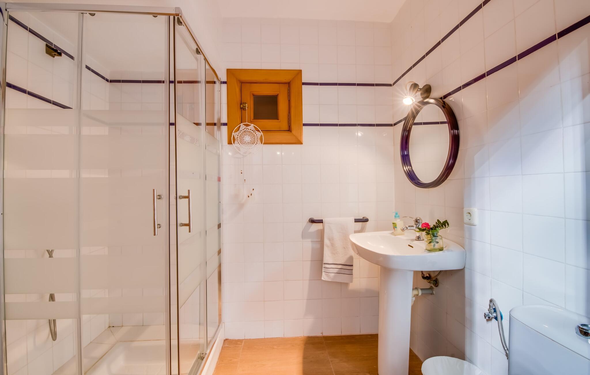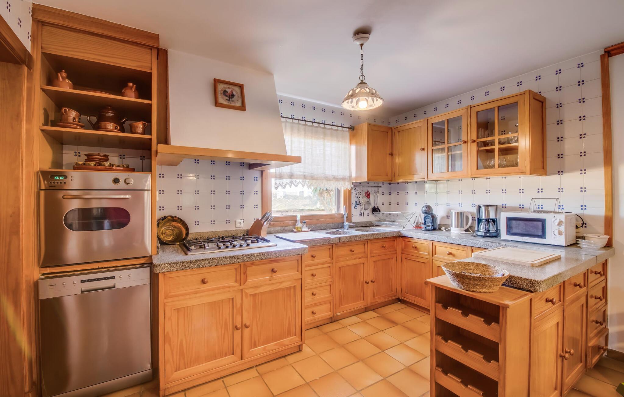 Den charmerende villa "Son Moro Vell" tilbyder den perfekte blanding til en ferie fuld af idyllisk fred og spændende oplevelser! Det skyldes i høj grad den fantastiske beliggenhed. Selvom I er i umiddelbar nærhed af byen, med alle muligheder for en varieret fritidsaktivitet, er villaen stadig så landligt beliggende, at der er garanteret en landlig stemning. Ved første øjekast er villaens smukke udendørsområde slående. En rummelig have inviterer jer til at blive hængende. Her finder I ikke kun et gennemtænkt plantelayout, men også komfortable liggestole, en forfriskende pool og endda en hængekøje, der inviterer til afslapning. Der er også to små siddepladser, hvor I kan nyde en drink eller to. På den overdækkede terrasse finder I det store spisebord, hvor I kan spise efter hjertens lyst. Lækre lækkerier kan tilberedes i det lille udekøkken med grill. Omgivet af det smukke landskab er madlavning dobbelt så sjovt! Og foretrækker I et fuldt udstyret køkken mellem fire solide vægge, så er det netop det, I finder i villaen. I den hyggelige, rustikke atmosfære kan I hugge og lave mad efter hjertens lyst. Husets øvrige rum har også meget at byde på. Stuen og spisestuen er i åbent plan, og de store vinduespartier sikrer, at rummet er lyst og luftigt. De store sofaer inviterer jer til at slappe af, dase og se tv. Og en af de komfortable gyngestole er bestemt ideel til en hyggelig læsetime. Når I bliver træt om aftenen, skal I bare gå op ad trætrappen med fortryllende farverige fliser og vælge et af de pragtfulde soveværelser på første sal. Hvad med en stor dobbeltseng? Eller vil I hellere have en af de elegante enkeltsenge? Valget er dit! Til de mindste gæster er der en sød barneseng til rådighed, som tilbyder et fantastisk sted at slumre og drømme. Et af de rummelige badeværelser kan bruges til brusebad om morgenen. Her er god plads og indretningen lader intet tilbage at ønske. I kan også opfylde mange ønsker i området omkring villaen. Der er mange måder at skabe uforglemmelige ferieminder på. De landlige omgivelser indbyder til lange gå- og vandreture. Og for fans af lidt mere action, tilbyder ejendommens beliggenhed tæt på vejen et godt udgangspunkt for at køre til forlystelsesparken i Cala Millor eller Safari Zoo i Sa Coma, kun få minutter væk. Især yngre gæster vil helt sikkert få noget for pengene her. I Cala Millor finder I også utallige butikker, hvor I kan købe smukke feriesouvenirs. Og de fantastiske restauranter venter bare på, at I skal besøge. Herligheder er garanteret! Og vil I tilbringe en afslappende dag, så pak en picnickurv og et par badehåndklæder i bilen og tag til Mallorcas østkyst, som kun ligger få minutter væk i bil. Der er adskillige strande på begge sider, som bestemt er et besøg værd. Den smukke villa "Son Moro Vell" ligger på en rummelig ejendom i den smukke østlige del af De Baleariske Øer i udkanten af Cala Millor. Byen tilbyder alt til jeres daglige behov; fra supermarkedet til apoteket og adskillige restauranter og butikker. Og kysten med sine mange flotte sandstrande ligger kun 900 m væk i luftlinje.