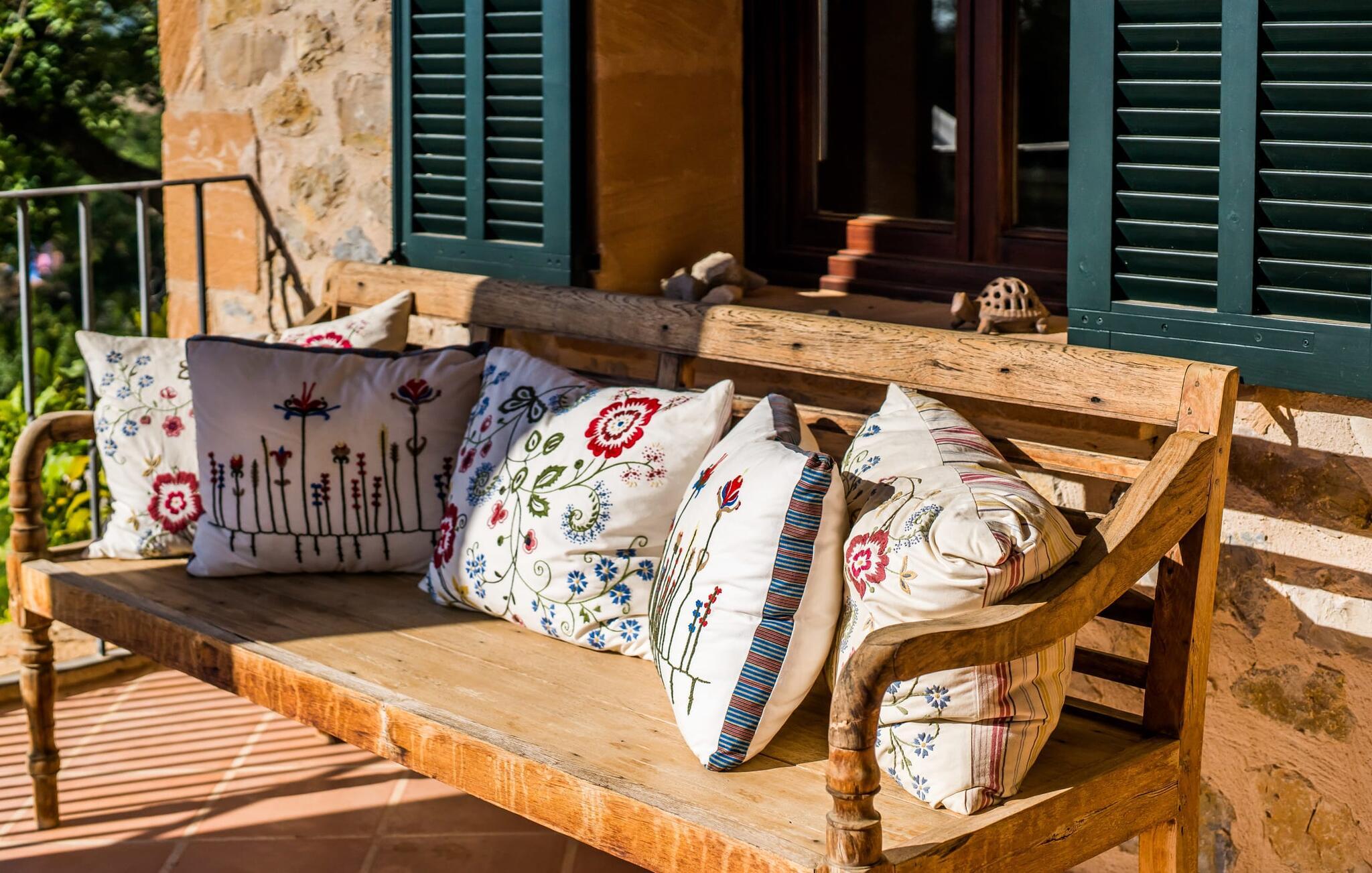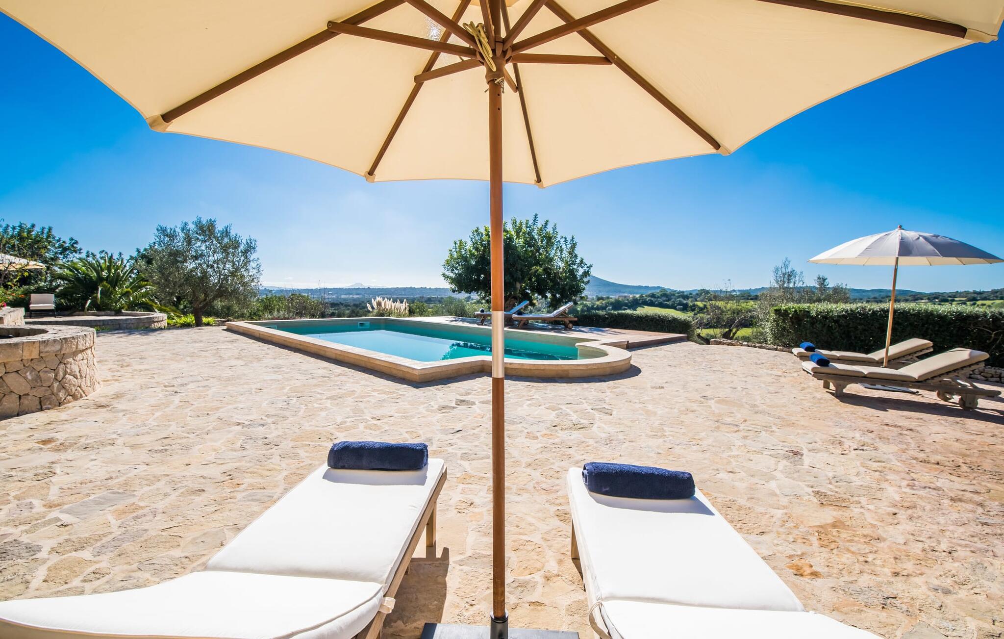 Denne meget stilfulde finca har en idyllisk beliggenhed i centrum af Mallorca, ca. 5 km fra Petra og Ariany. Petra er kendt for sine atmosfæriske smalle gader og gyldenbrune stenhuse og er ideel til daglige indkøb. De populære strande i Alcúdia, Can Picafort eller Son Serra de Marina ligger cirka 20 km væk.