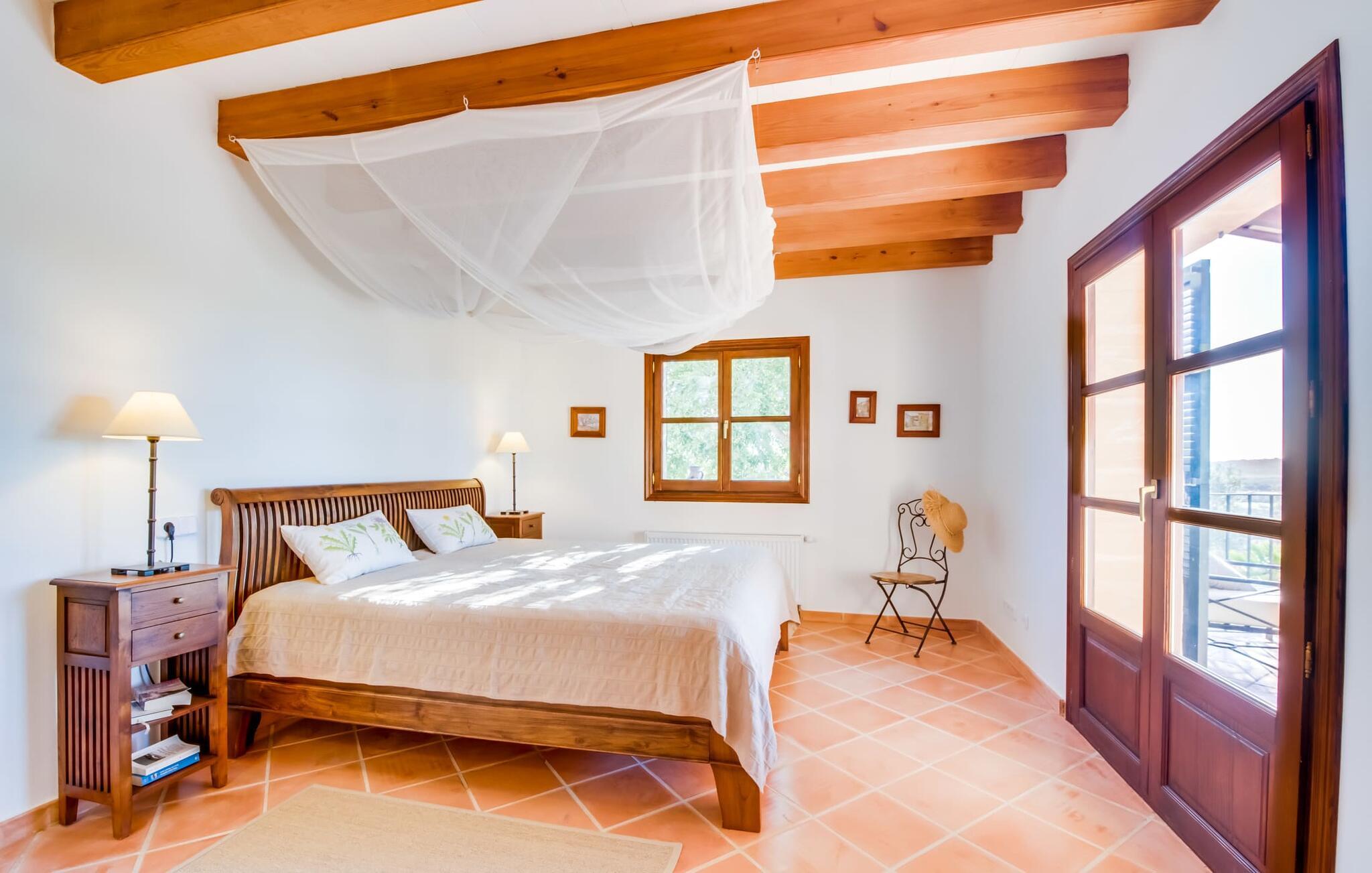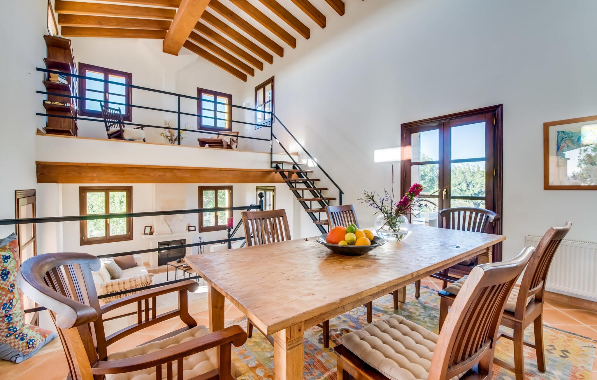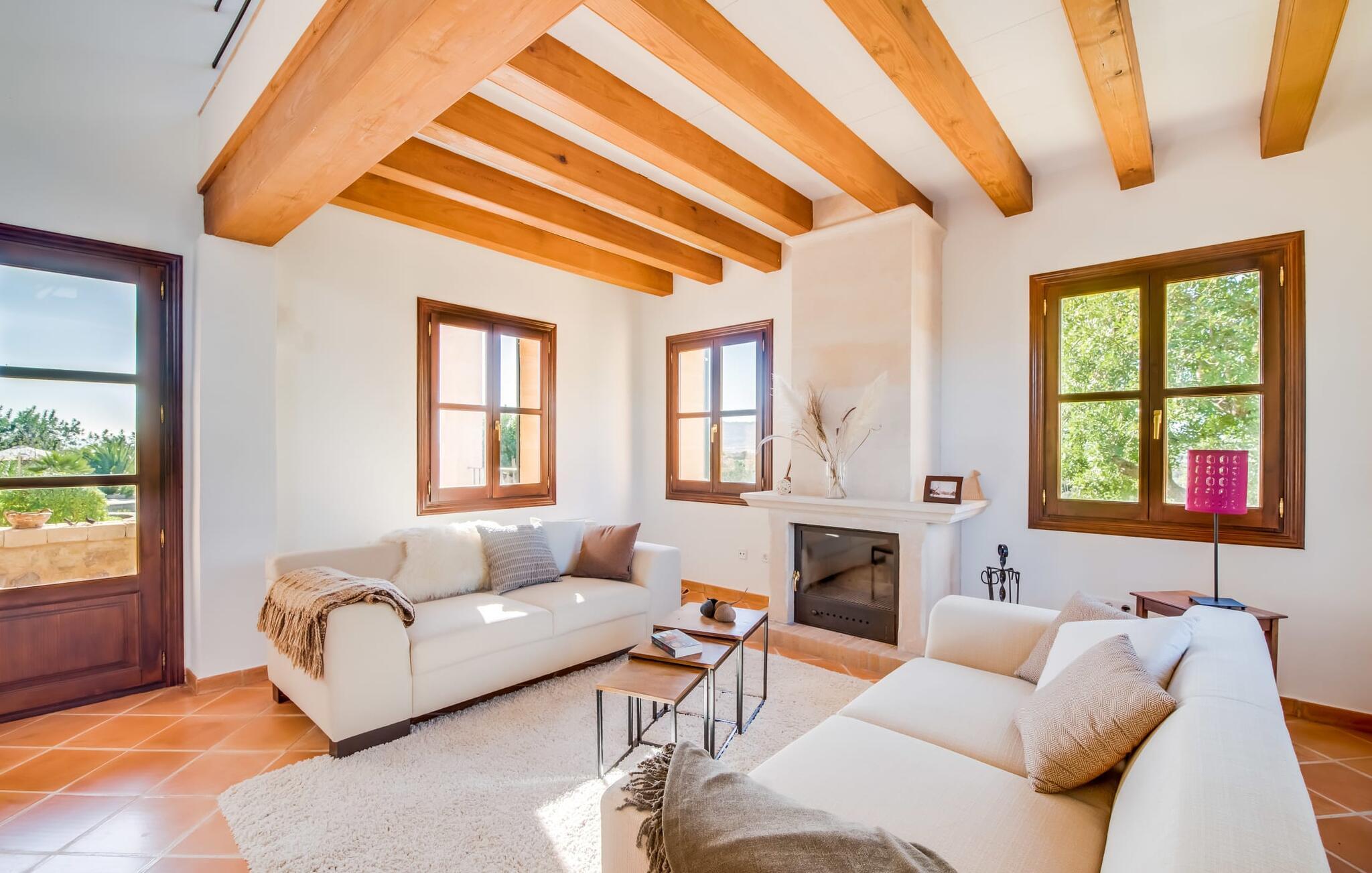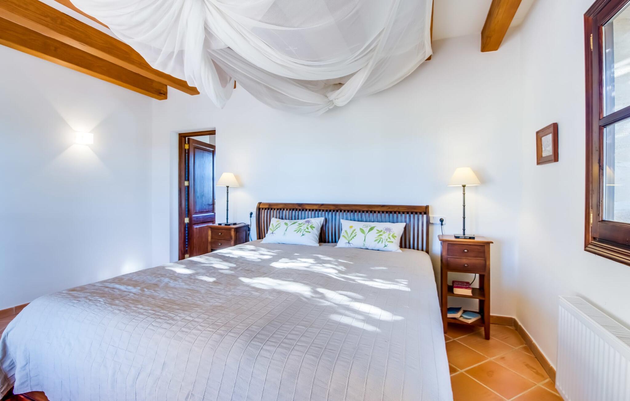 Indvendigt imponerer "Son Net" med sit stilfulde design og en indretning af høj kvalitet. Terrakottafliser, synlige træbjælker og lyse, luftige rum med kvalitetsmøbler sørger for et harmonisk aftryk. Fra spisepladsen er der direkte adgang op på en hems med det hyggelige bibliotek, som byder på en fantastisk udsigt over det omkringliggende område. Et par trin fører ned til stuen med komfortable sofaer og pejs. Det moderne, fuldt udstyrede køkken til selvforplejning råder også over et postevand-filtersystem. Et dobbeltværelse med eget badeværelse inkl. badekar er placeret i stueetagen, mens yderligere to dobbeltværelser med altaner, der deler et badeværelse, er placeret ovenpå. Begge badeværelser råder over bruseområder i gulvniveau. Alle senge er udstyret med topmadras for ekstra komfort.