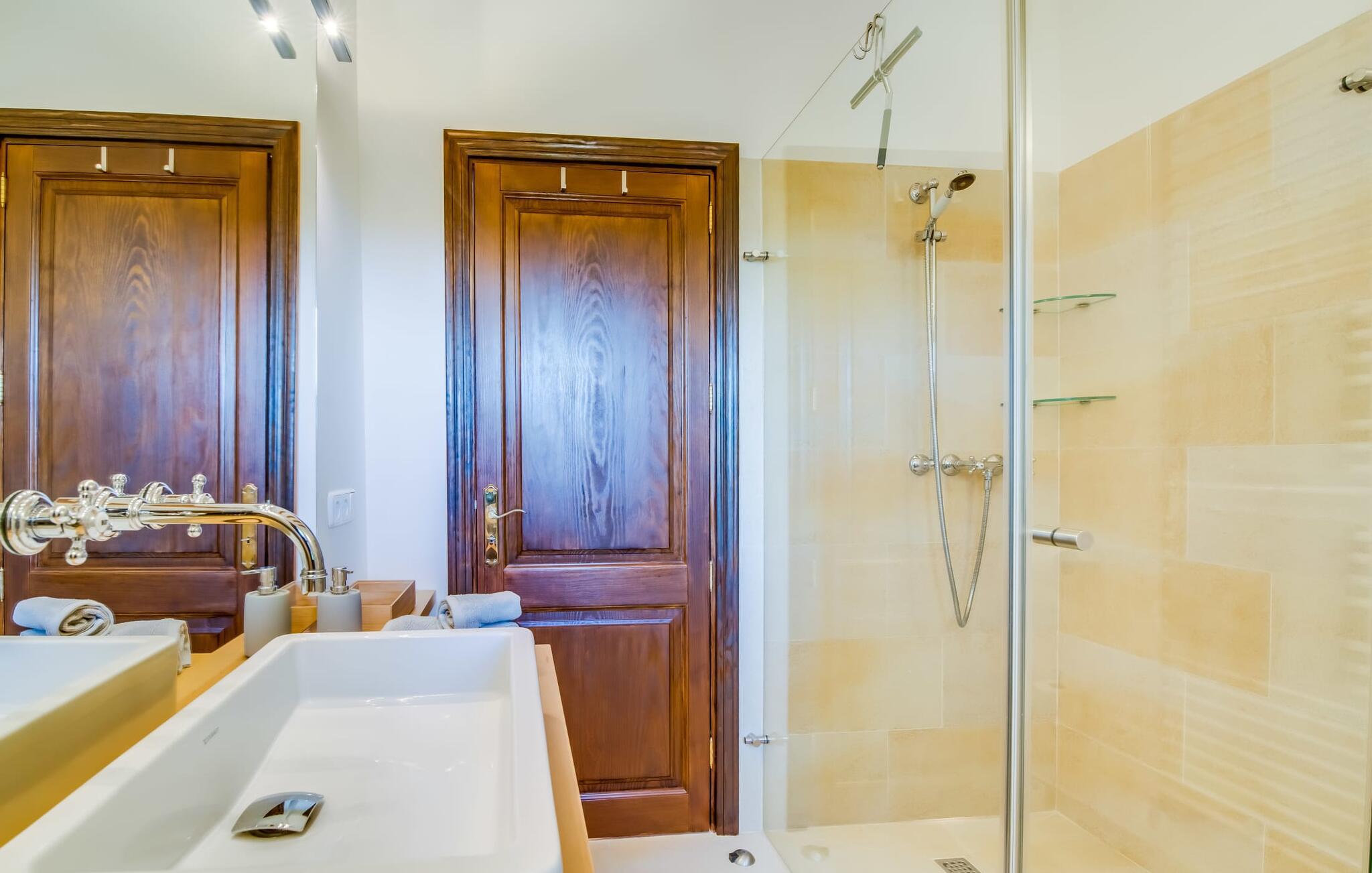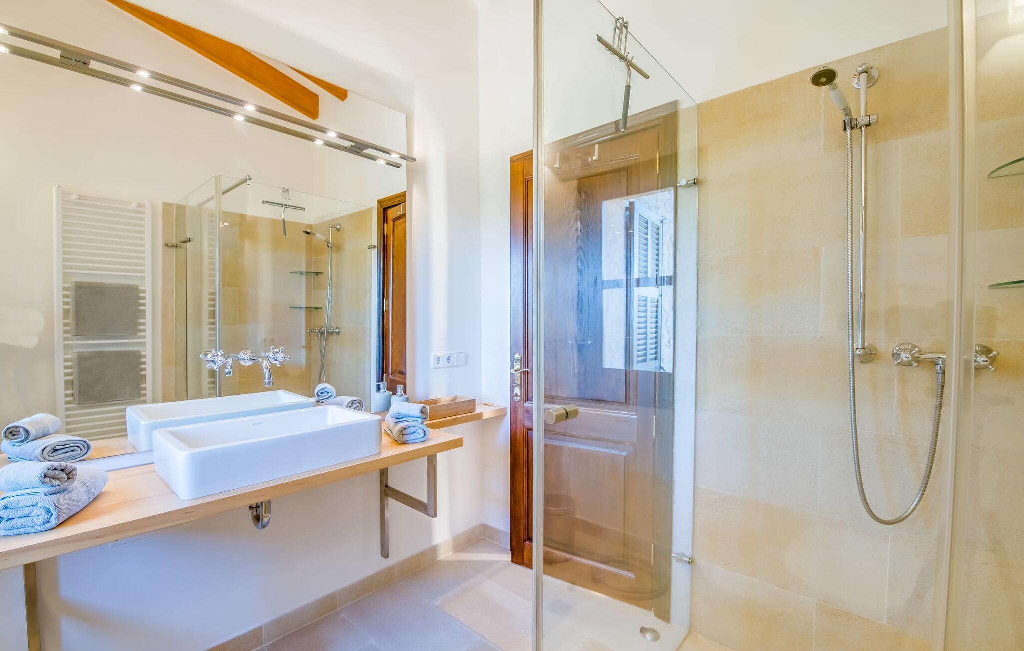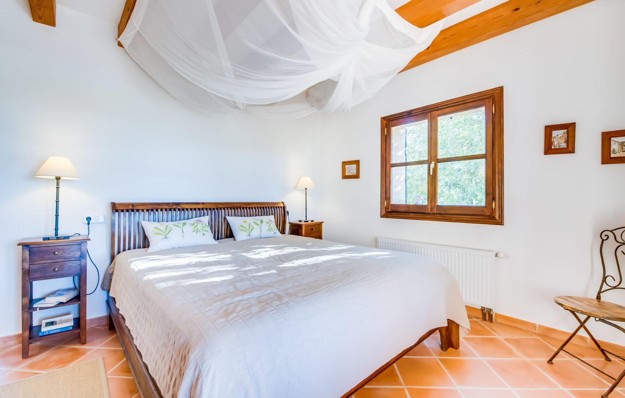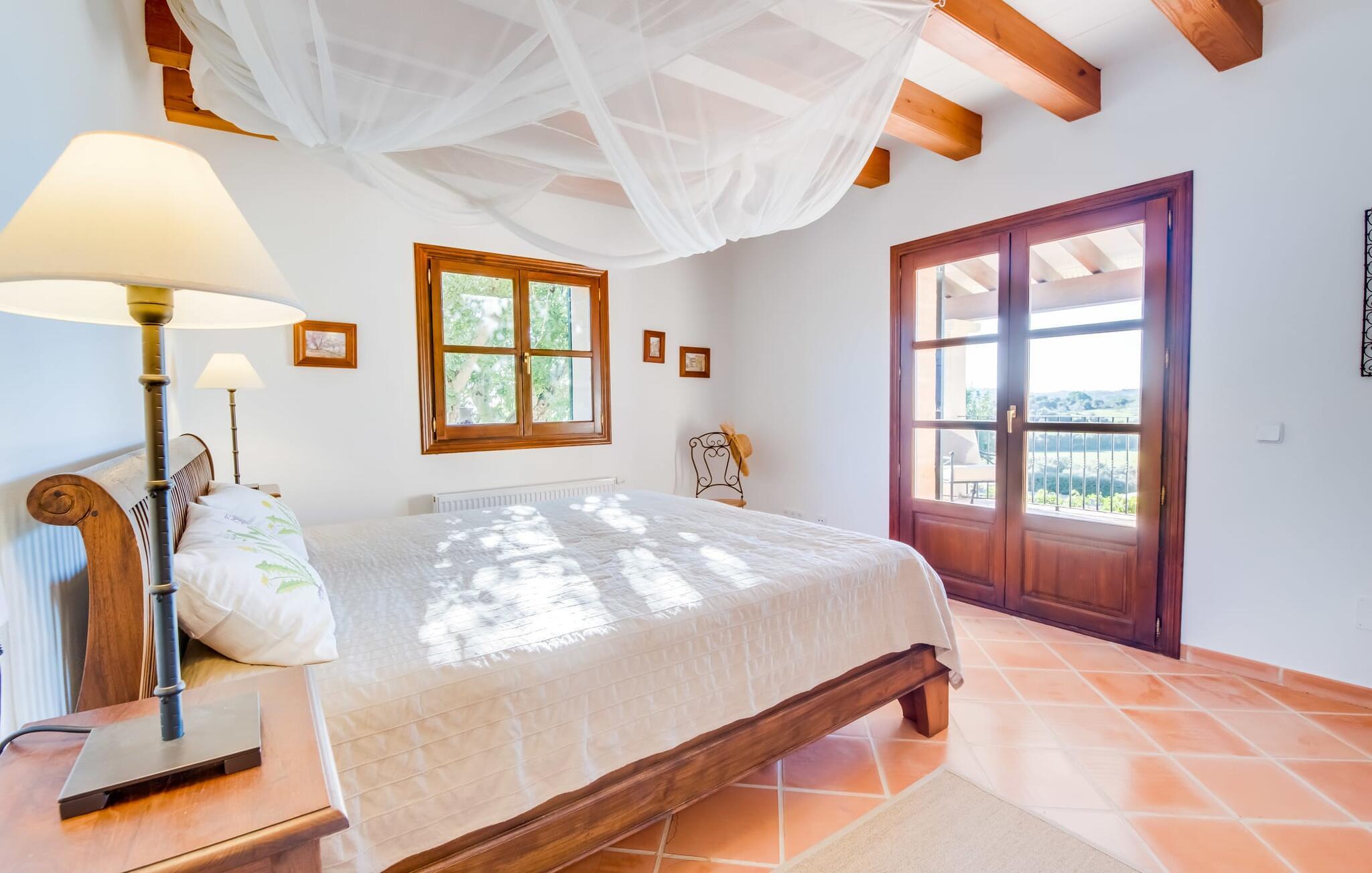 Indvendigt imponerer "Son Net" med sit stilfulde design og en indretning af høj kvalitet. Terrakottafliser, synlige træbjælker og lyse, luftige rum med kvalitetsmøbler sørger for et harmonisk aftryk. Fra spisepladsen er der direkte adgang op på en hems med det hyggelige bibliotek, som byder på en fantastisk udsigt over det omkringliggende område. Et par trin fører ned til stuen med komfortable sofaer og pejs. Det moderne, fuldt udstyrede køkken til selvforplejning råder også over et postevand-filtersystem. Et dobbeltværelse med eget badeværelse inkl. badekar er placeret i stueetagen, mens yderligere to dobbeltværelser med altaner, der deler et badeværelse, er placeret ovenpå. Begge badeværelser råder over bruseområder i gulvniveau. Alle senge er udstyret med topmadras for ekstra komfort.