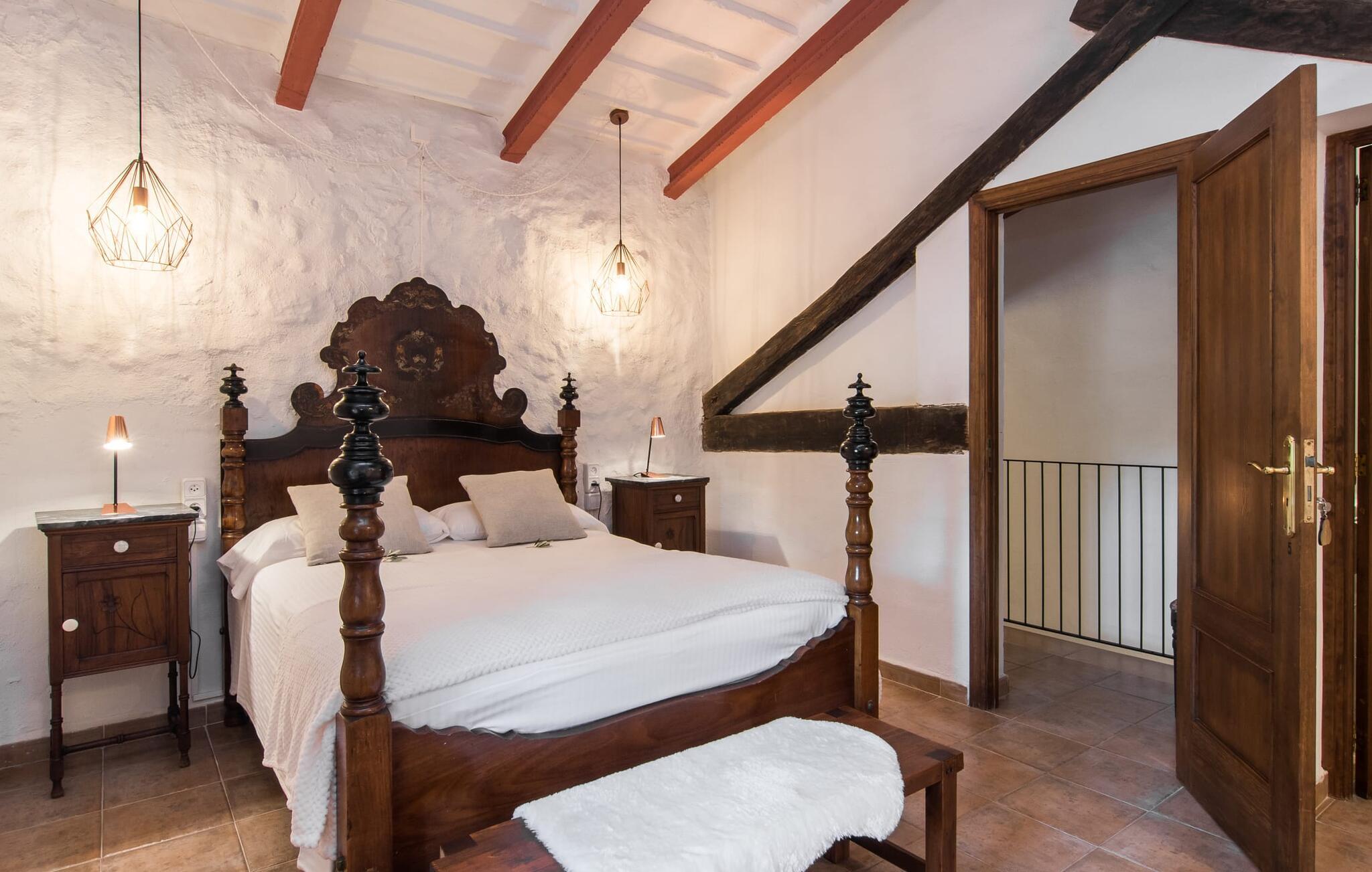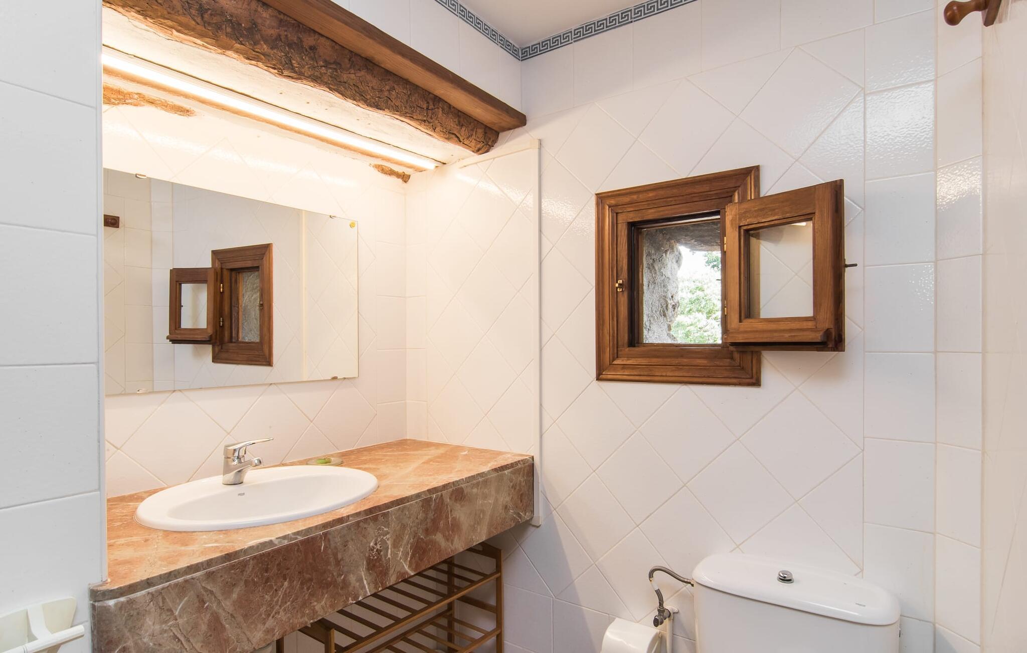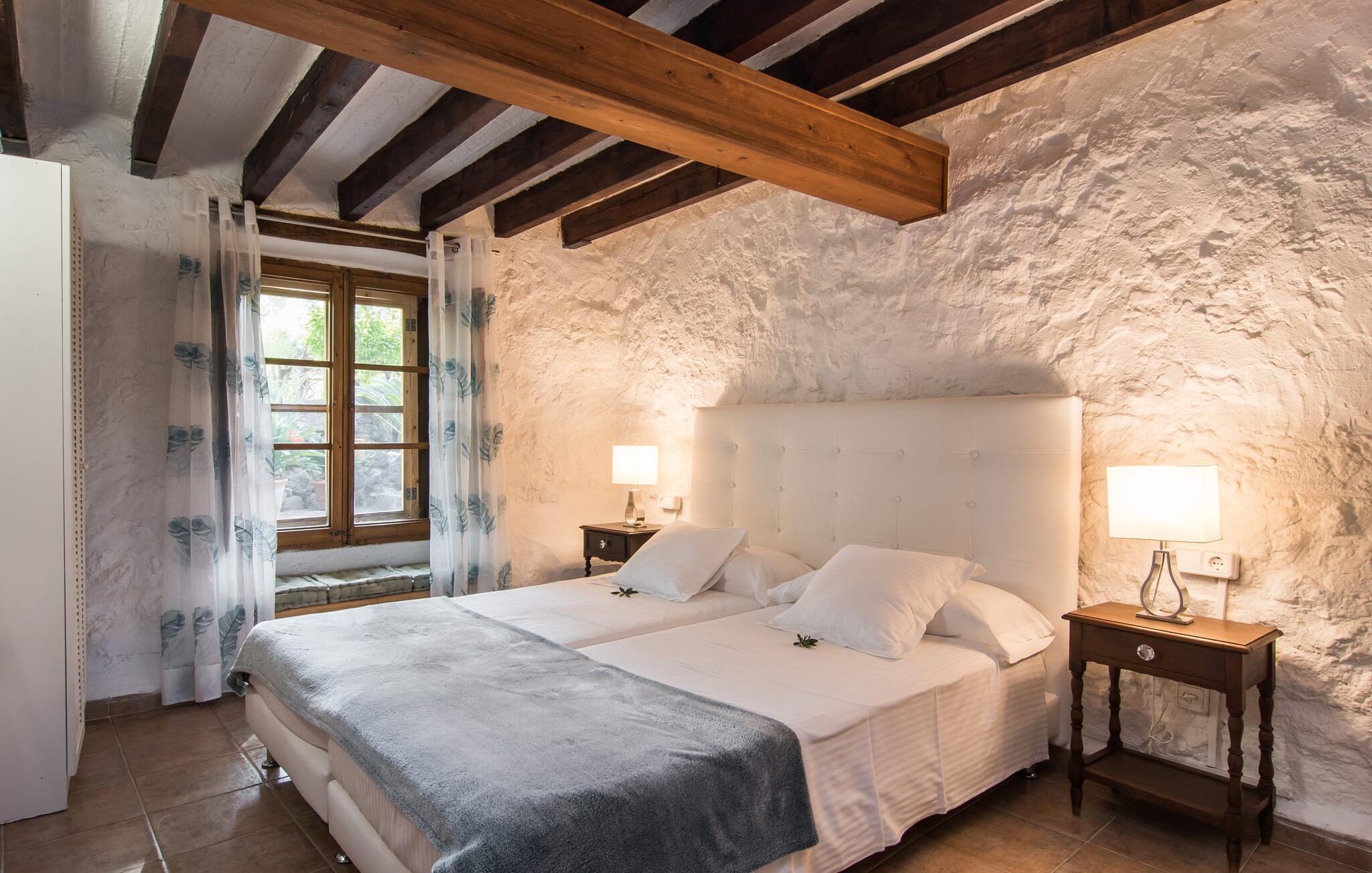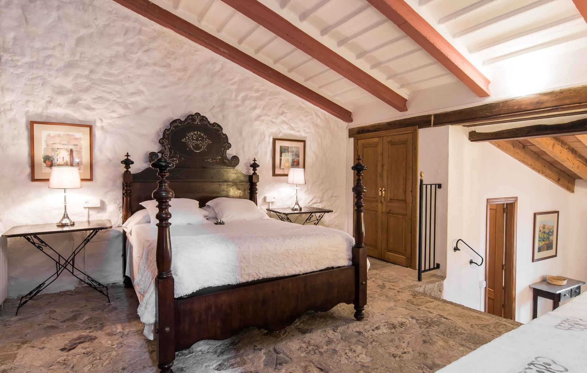 Den majestætiske ejendom "Son Penyaflor Agroturismo" med over 16 hektar jord i spektakulære landlige omgivelser ligger i det lidt bemærkede centrum af øen nær Alaró. Langt væk fra masseturismen kan I opleve naturens skønhed i ubekymret stilhed. Nyd den smukke have på den rummelige lejefinca fuld af oliventræer, cypresser, palmer og en frugthave, og tilbring en ubekymret ferie der. Her kan I være ét med naturen, vandre, meditere eller køle af i den forfriskende pool med omgivende solterrasse. Områder til solbadning og talrige smukt designede siddepladser, hvoraf nogle er overdækkede, giver jer komfortable muligheder for aktiv eller afslappet afslapning. Bortset fra naturens lyde vil intet distrahere jer fra jeres ferie. Her kan I nyde jeres morgenmad sammen og en hyggelig grillaften - måske med et godt glas mallorcansk vin fra den venlige driftsfamilie - i en idyllisk atmosfære. I denne fortryllende smukke leje finca vil I opdage et sandt paradis af enestående skønhed, der er uden sidestykke. Der er næppe bedre rammer for at sætte farten ned end dette bæredygtigt renoverede feriehus. Spor af Mallorcas historie kan også findes inde som en tidligere landejendom. De synlige stenmure og andre traditionelle detaljer er blevet dygtigt fremvist og overgået af moderne komfort. Resultatet er en næsten utraditionel planløsning med to hyggelige stuer med pejse og syv soveværelser, hver med en-suite badeværelser. Disse er i etager, et par trin fører jer fra soveværelset til badeværelset, og nogle har et opholdsområde med plads til en suite. Det er denne ekstra komfort, der gør huset ideelt til mange personlige konstellationer - det være sig en tur til familie- eller firmajubilæum eller en ferie med venner, der gerne vil tilbringe tid sammen, men stadig værdsætter et værdigt privatliv. Fællesarealerne som opholds- og spisestuerne er alle meget komfortable med komfortable sofaer eller et opholdsområde med klublokale-atmosfære. Det fuldt udstyrede køkken imponerer også med sin kombination af naturlige, muntre farver og materialer og bestemmer dermed kvaliteten af dette mallorcanske landhus i topklasse med spektakulære perspektiver, der kan ændre jeres syn. Med den imponerende ejendom "Son Penyaflor Agroturismo" fra 1200-tallet præsenterer vi jer et stateligt landsted med det mest moderne udstyr og en idyllisk pool og have. Den absolut rolige mallorcanske finca ligger på den maleriske baggrund af Tramuntana-bjergene og er derfor et godt udgangspunkt for vandreture. Den rolige landsby Alaró kan nås på 6 minutter med udlejningsbil. Der kan I shoppe eller besøge markedet. Strandene i hovedstaden Palma kan nås på 30 minutter.