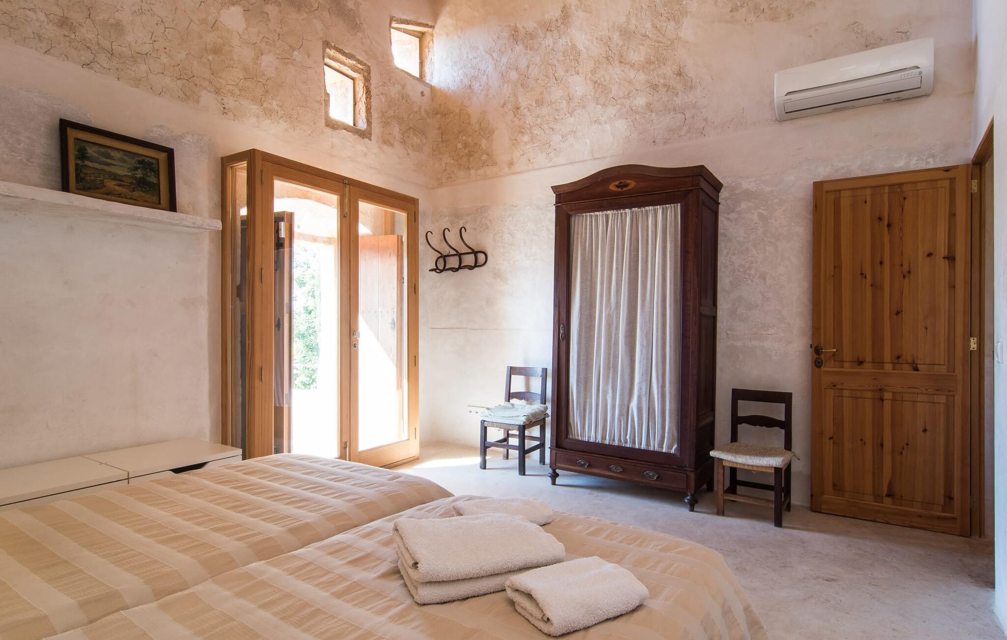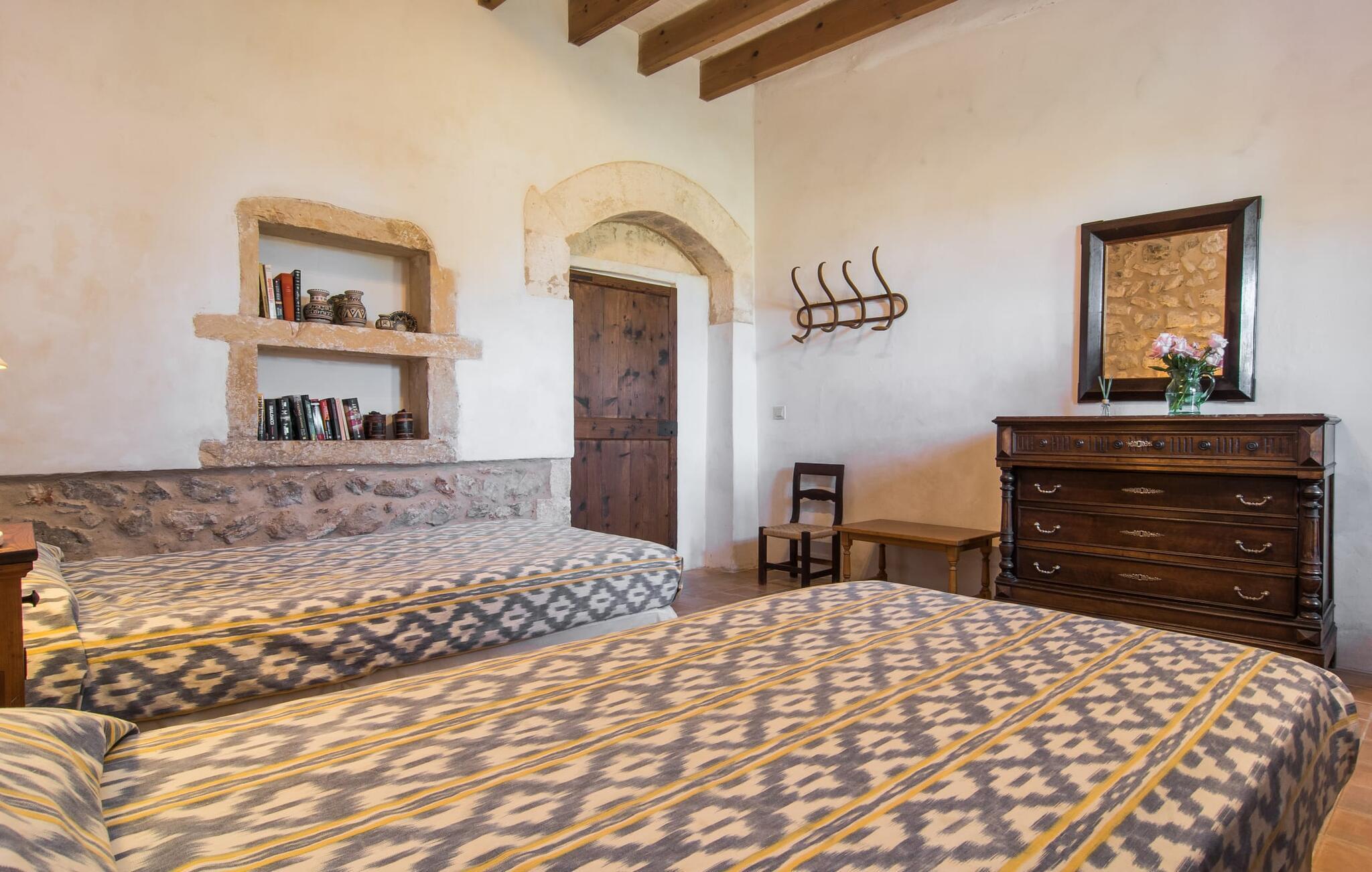 Længes I efter fred og natur? Sætter I pris på jeres privatliv, men det betyder ikke, at I vil bo helt afsondret? Og I kan lide det rustikt, men bestemt også hyggeligt? Så er det smukke bondehus "Son Peretó" simpelthen perfekt til jeres næste ophold på øen: Feriehuset til op til ti personer i en vidunderlig afsides beliggenhed på landet på en kæmpe ejendom i centrum af Mallorca byder ikke kun på masser af plads til alle rejser med jer, men scorer også point med masser af karakter og charme. Familier med børn føler sig lige så godt tilpas her som venner, der rejser sammen. Stuehuset i natursten er omgivet af en paradisisk have, I finder indbydende siddepladser på forskellige overdækkede og solrige terrasseområder, altid beklædt med palmer og andre frodige grønne planter. Poolen lover behagelig forfriskning, og I kan slappe vidunderligt af på liggestolene omkring den. I kan parkere jeres lejebil på grusparkeringspladsen lige foran huset i skyggen af ??træer. Her har I masser af plads: Sommerhuset er særdeles generøst indrettet og opdelt. I stueetagen finder I den rummelige opholds- og spisestue med komfortable sofaer og et stort spisebord samt det veludstyrede køkken. I alt tre smagfuldt indrettede soveværelser og to moderne badeværelser fuldender boligkomforten på dette niveau. På øverste etage er der yderligere to meget flotte, store soveværelser og to badeværelser, hvoraf det ene er en suite. Huset er renoveret med stor sans for detaljen, så det rustikke bondehuskarakter bibeholdes indvendigt. Samtidig har “Son Peretó” en masse moderne komfort og er meget stilfuld på en smuk enkel, reserveret måde. Mange store vinduer lukker lyset ind, ru pudsede vægge, rundbuer, naturfarver, natursten og masser af træ giver et landligt præg. I kan nyde fuldstændig fred og ro midt i en landlig idyl: Det smukke gamle bondehus "Son Peretó" står på en kæmpe grund i centrum af Mallorca. Og selvom I kun kører omkring 3,2 km til den næste landsby Sant Llorenc eller 6,7 km til Manacor, tilbyder jeres sommerhus og dets indbydende udendørsområde jer det højeste niveau af privatliv. Strande som Porto Cristo, Sa Coma eller Cala Petita ligger mellem 12 og 14 km væk og kan nemt nås i bil.