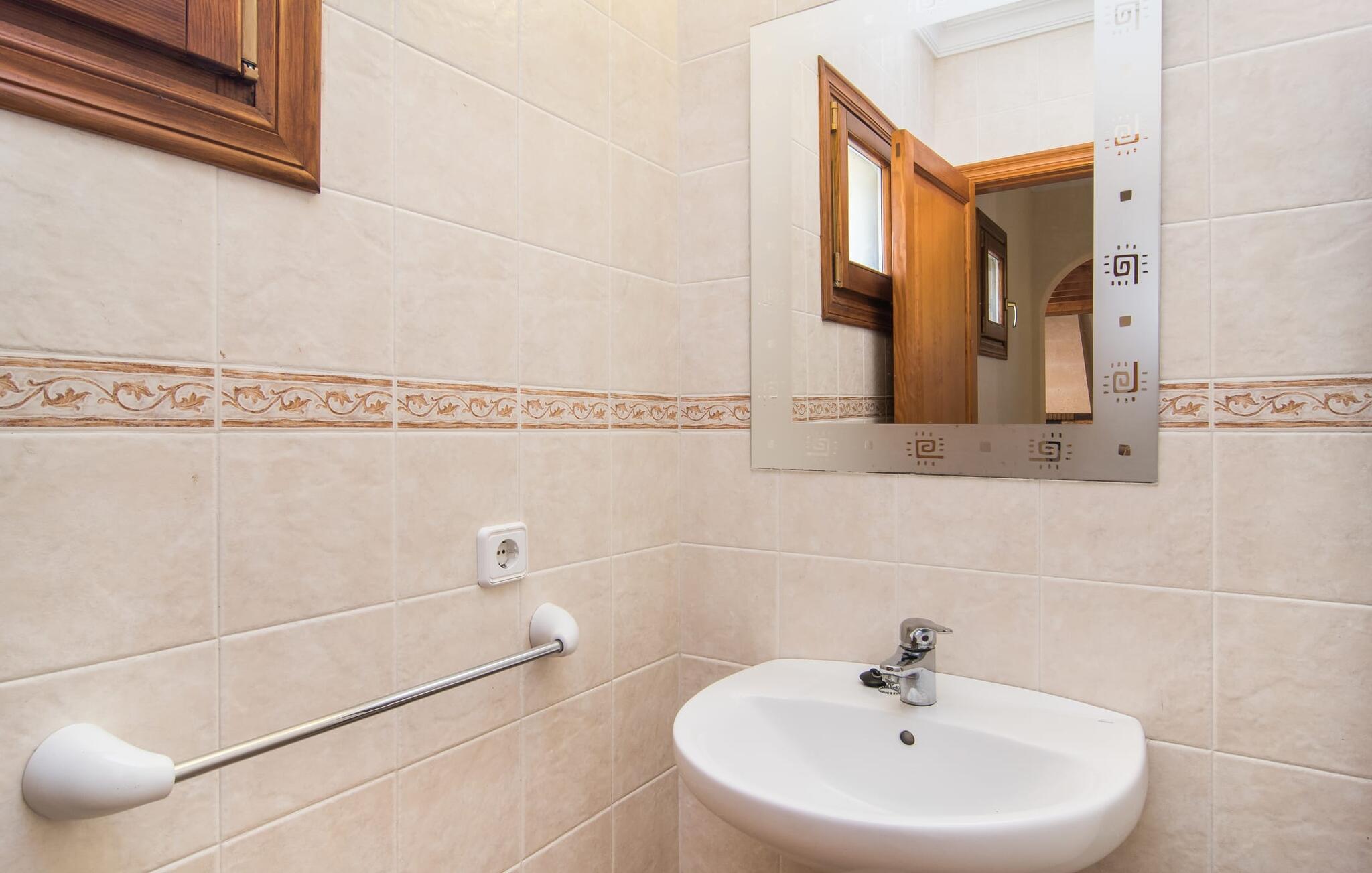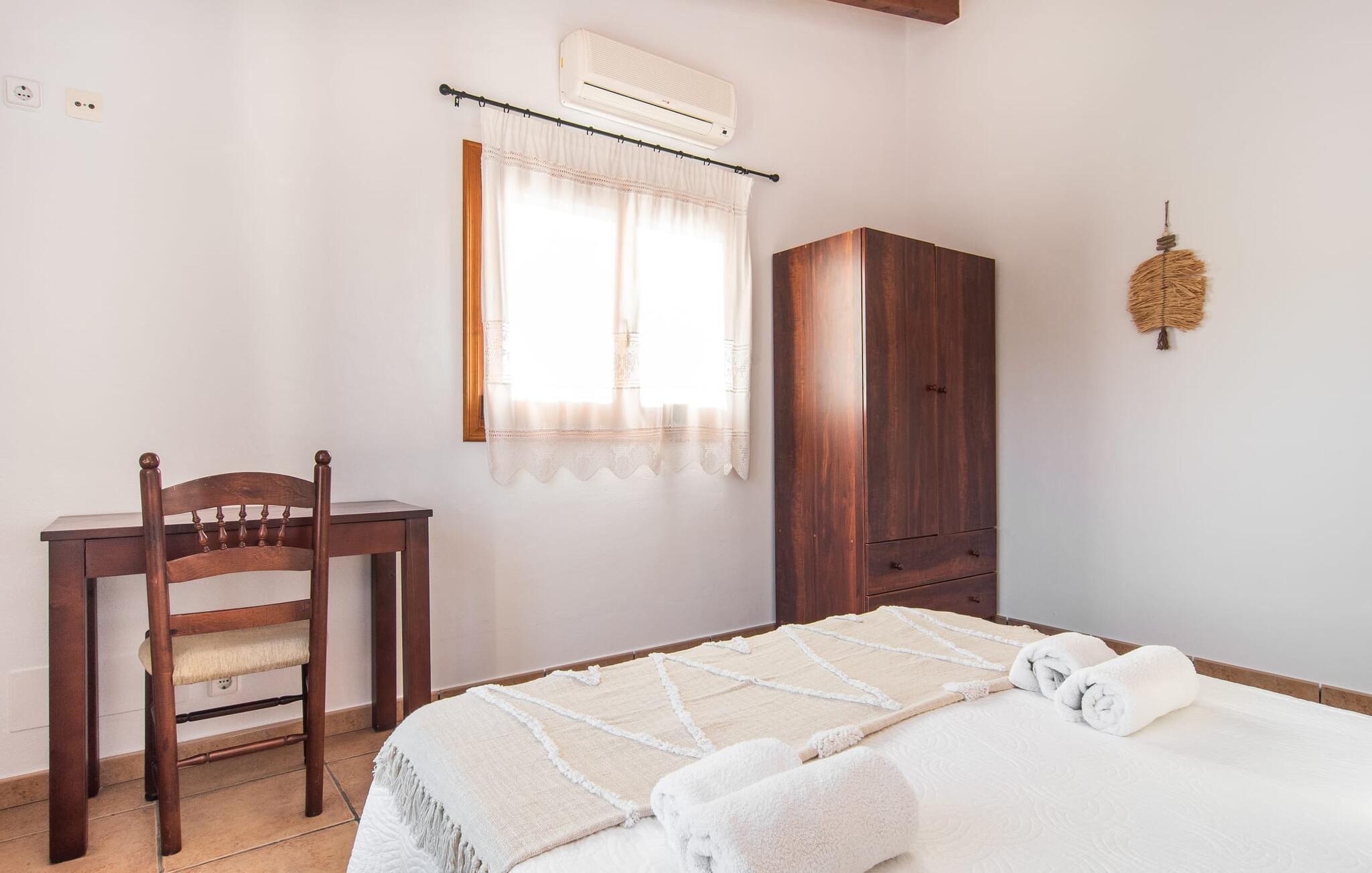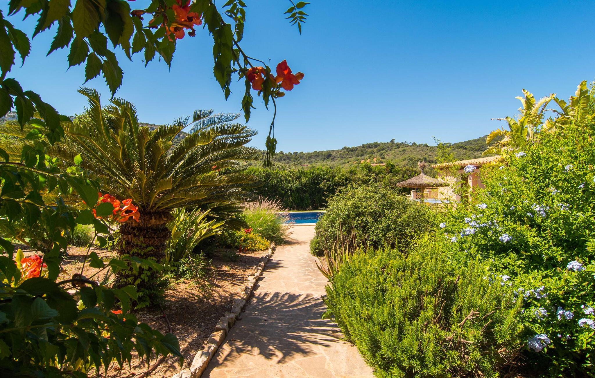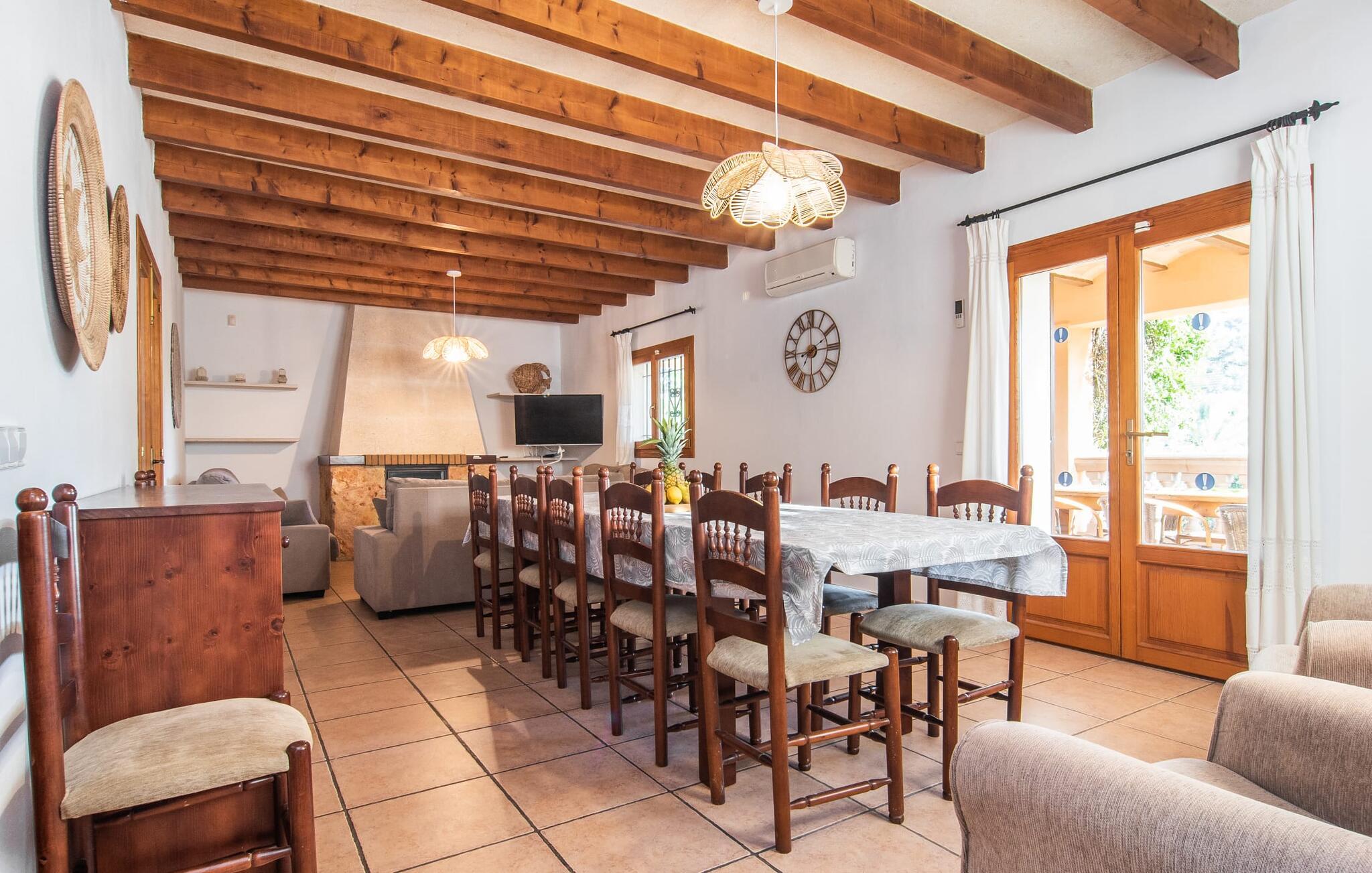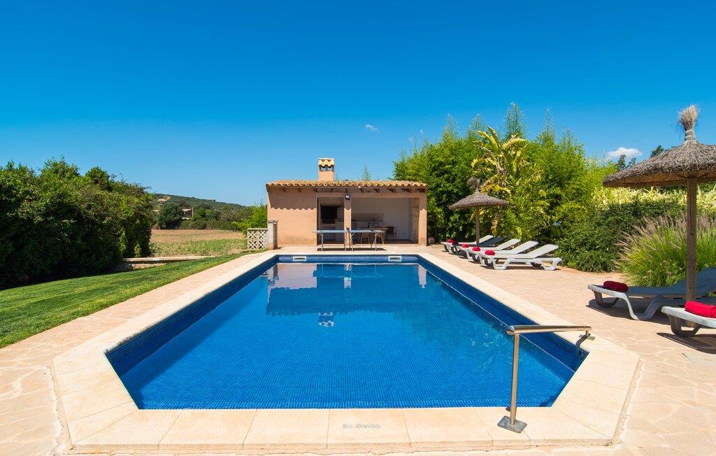 Fold jer ud i 17.000 m² roligt uderum, som byder på varierede loungeområder, smukke træer og et skønt poolområde. På 10 x 5 meter kan I gennemføre både sporty og afslappede kurser om morgenen og starte den nye dag veludhvilet. Morgenmaden vil helt sikkert smage særligt godt på den store veranda med en magisk udsigt - flere siddemuligheder inviterer jer til at slappe af. Om dagen kan I nyde liggestolene eller den overdækkede terrasse ved det hyggelige poolhus, hvor I også om aftenen kan sidde og fremtrylle grillspecialiteter i det praktiske udekøkken. De små, der rejser med jer, vil nyde en række forskellige legemuligheder. I kan i øvrigt få endnu mere panoramaudsigt fra altanen - hold øjnene åbne og fremsyn! Indersiden af fincaen er også meget venlig. Når man træder ind i huset gennem hovedindgangen, befinder man sig først i en rummelig entre, hvorfra trappen fører op til overetagen. På denne etage finder I også det store køkken, to soveværelser med hver to enkeltsenge, et soveværelse med en dobbeltseng, et eget badeværelse og endnu et badeværelse. Stuen og spisestuen, der ligger direkte på verandaen, er harmonisk forbundet med hinanden - et smukt loungeområde til at tilbringe tid sammen indendørs. Den første stueetage rummer et soveværelse med dobbeltseng og badeværelse en suite. Den enkle, rolige stil på denne finca med pool gør det nemt for jer at komme her for at slappe af og få mest muligt ud af den smukke tid på året. Alt dette til et godt pris-ydelsesforhold gør dette hus til et rigtigt tip til os! Denne solide feriefinca med pool byder velkommen i en landlig atmosfære og ligger mindre end 3 km fra den lille by Cas Concos des Cavaller, hvor I kan få alt, hvad I behøver til jeres daglige behov. Efter cirka 14 km er I i Campos, en charmerende by med talrige barer, restauranter og butikker. Feanitx ligger 11 km derfra. I kystbyen Porto Colom - kun et kvarters kørsel væk - kan I slentre langs promenaden eller nyde en svømmetur i Middelhavet.