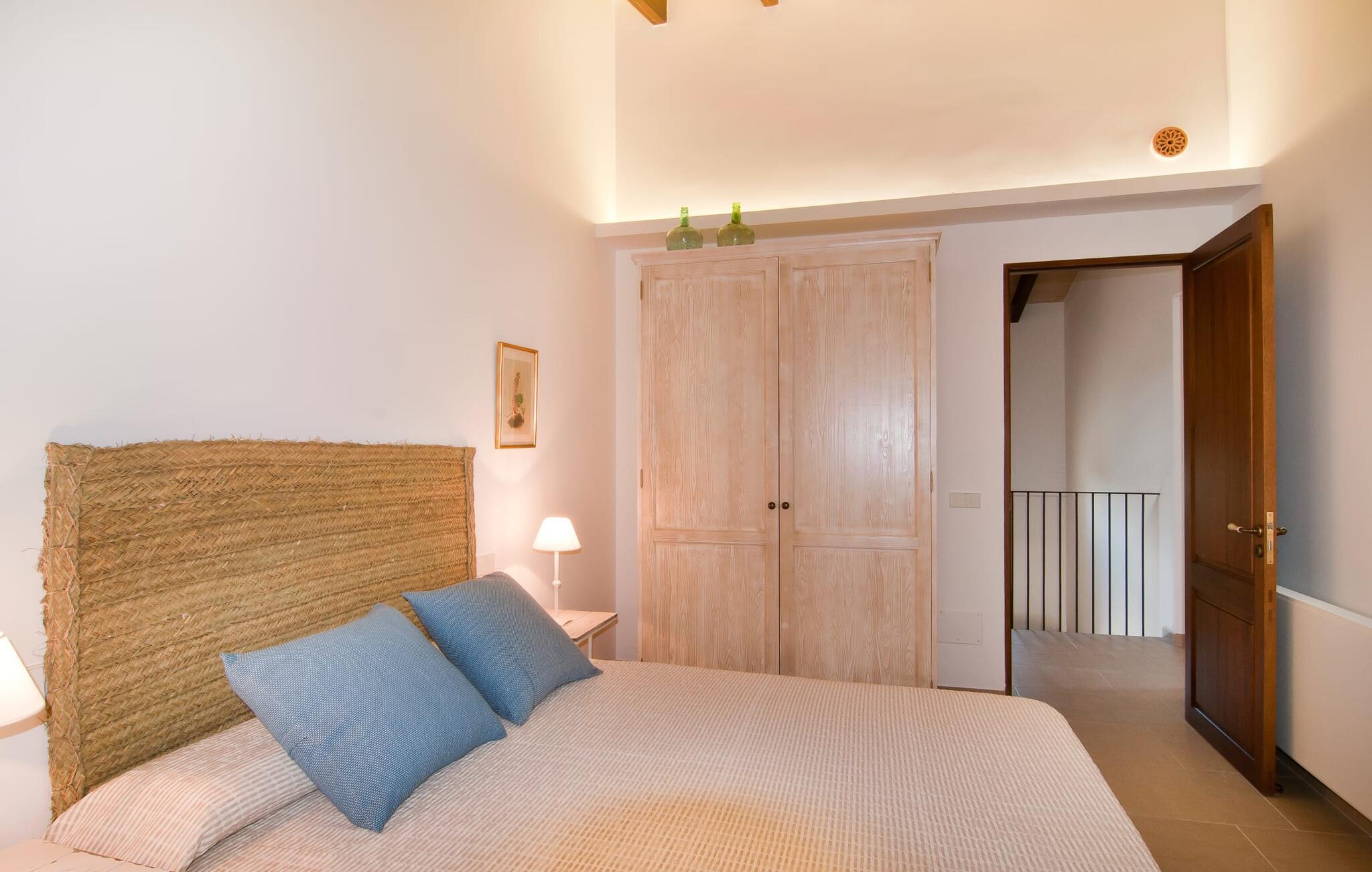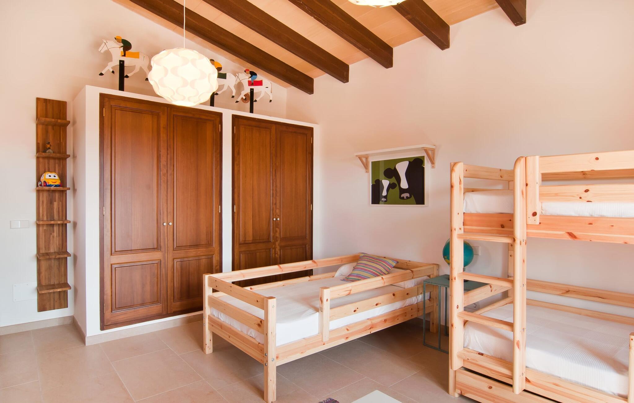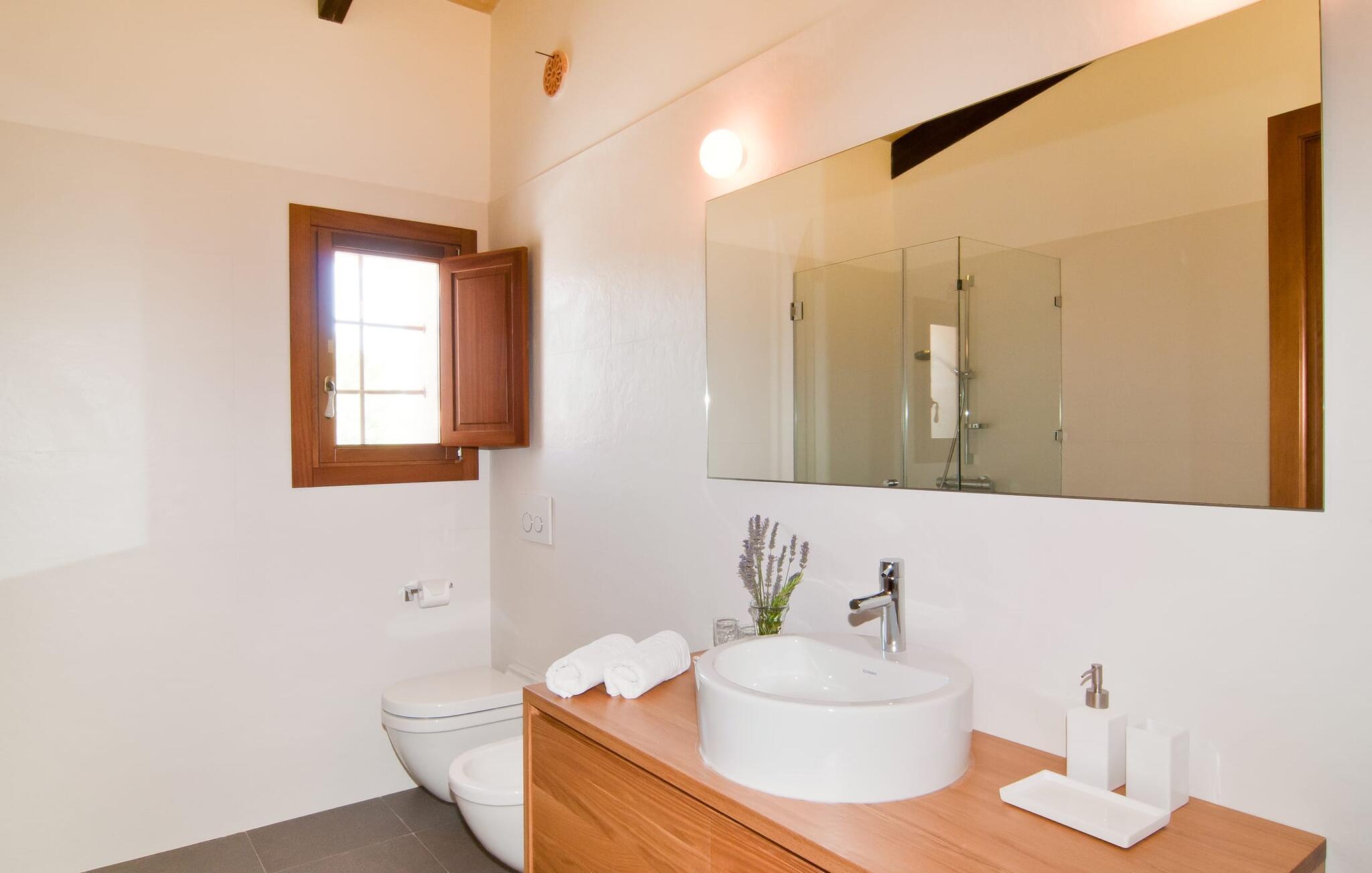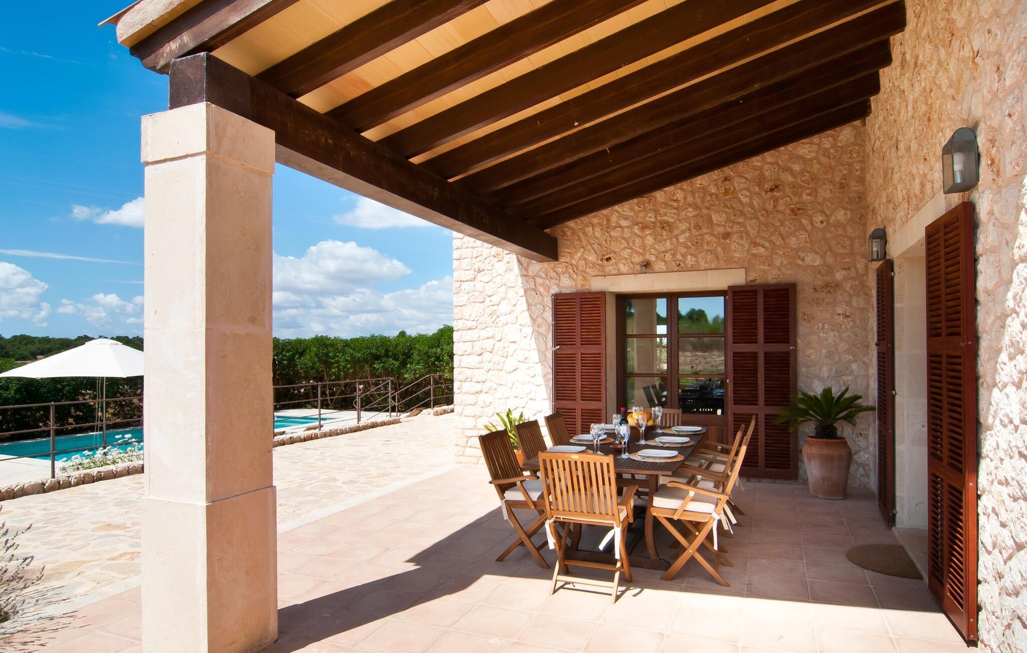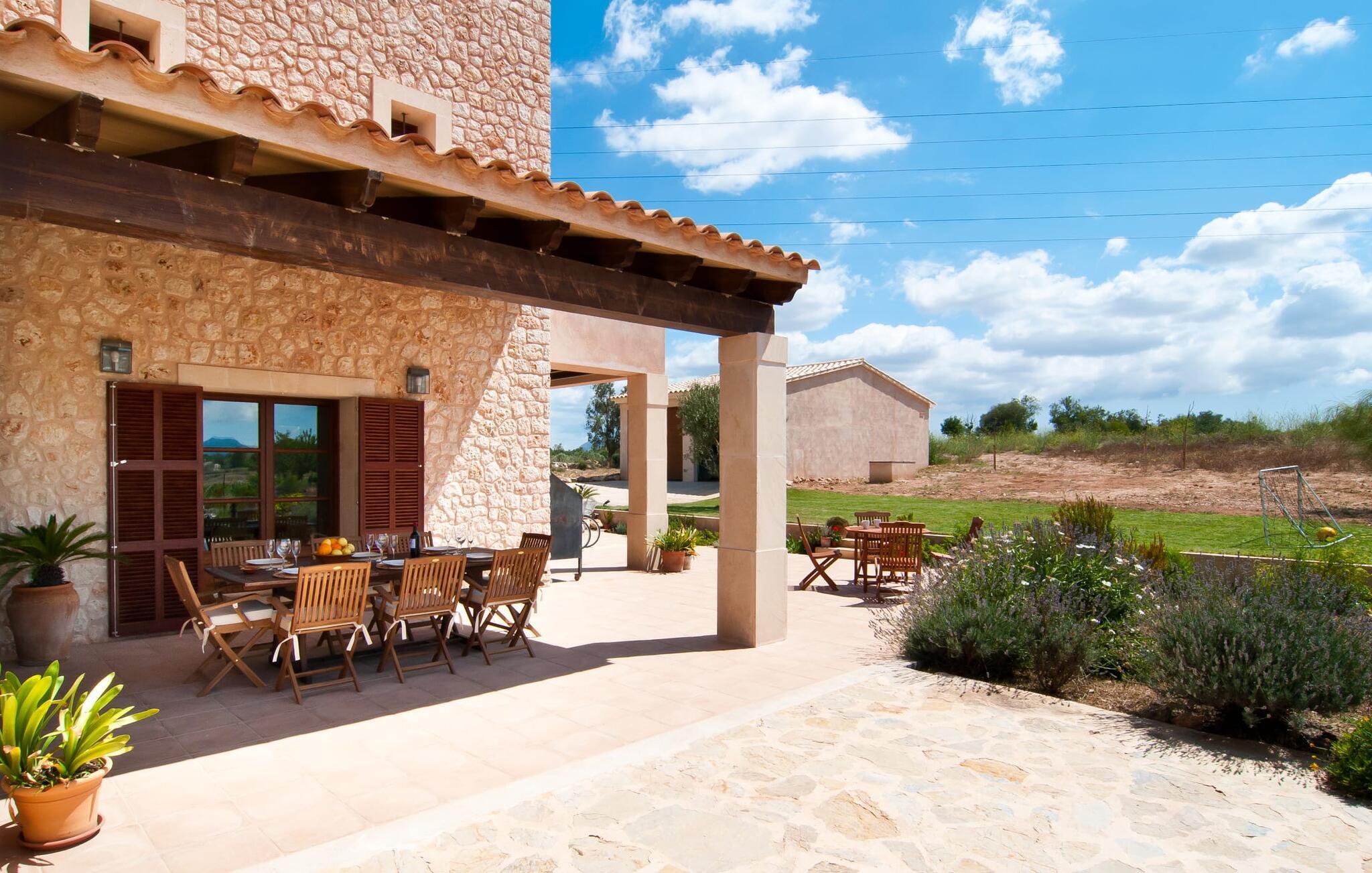 Selv på afstand kan du se, hvilket fortryllende feriehus villaen "Son Perot" er. Det to-etagers hus med en betagende smuk naturstensfacade samt trævinduer og skodder er beliggende på en 15.000 m² stor grund, der nyder godt af gode transportforbindelser mellem Manacor og Vilafranca og samtidig er i landlig beliggenhed de Bonany. Ejendommen tilbyder dig også alt, hvad du behøver for en fuldstændig tilfredsstillende ferie. En del af det smukt omgivne område er præget af terrasser og græsplæner samt forskellige dekorative middelhavsplanter i bede og krukker. I kan køle af på varme dage i den 9 m lange pool, som er placeret foran huset. Poolen kan nemt nås via en bred trappe og er omkranset af en indbydende solterrasse. Der er seks komfortable liggestole til rådighed for omfattende afslapning. Her kan du ligge og drømme under den dybblå middelhavshimmel og lægge hverdagen langt bag dig. En parasol er tilgængelig for yderligere beskyttelse mod UV-stråler. Terrassen direkte foran huset, som kan nås via få trin, giver også mulighed for at sidde i den luftige skygge og nyde de fantastiske omgivelser derfra. Du kan sidde ved det massive spisebord i en fantastisk atmosfære, spise dine måltider udendørs, som du ønsker, og lade blikket vandre i det fjerne. Udekøkkenet og grillen giver fremragende muligheder for at tilberede mad al fresco og giver mulighed for at tilberede lokale delikatesser ved hjælp af råvarer indsamlet fra markedet. Husets indretning er ikke kun hyggeligt, men også meget smagfuldt og skaber en fantastisk atmosfære at blive hængende i. Lyse materialer er omgivet af kontrasterende elementer, for det meste lavet af træ, som bidrager væsentligt til den harmoniske stemning. Du kan finde dig tilpas i sofaområdet eller spise sammen i den afslappende stue/spisestue i åbent plan. Et fjernsyn og pejs fuldender komforten i dette værelse. I dette hus bliver dekoration brugt sparsomt og omhyggeligt, så der på intet tidspunkt opstår et overbelastet billede, men tværtimod præger følelsen af rummelighed behageligt rummene. Det gælder også det rummelige køkken, hvor typisk mallorcansk flair er blevet dygtigt kombineret med modernitet. Et godt sted for en fest med familie eller venner. Køkkenet byder på alt til dine daglige behov. Filterkaffemaskinen giver dig mulighed for at lave frisk kaffe hver morgen. Fire soveværelser er individuelt indrettede og tilbyder det ideelle hvilested for enhver smag. Ejendommen er udstyret med seks senge i alt, hvoraf fire er 0,90x2,00m og to er 1,60x2,00m. Et andet soveværelse er smukt indrettet som børneværelse og har en enkeltseng og en køjeseng med en tredje udtræksseng. Madrasmålene er her 0,80x1,80m. Dette feriehus kan derfor højst rumme otte voksne og fire børn. De tre stilfulde badeværelser - et i stueetagen, de to andre på første sal - er udstyret med sofistikeret indretning, og deres design fortsætter på overbevisende vis husets æstetik. To hårtørrere og et strygejern er til rådighed i huset og skal ikke medbringes hjemmefra. Villaen ligger omkring en halv kilometer fra hovedvejen, der forbinder Manacor og Vilafranca. I Manacor finder du alt, hvad du har brug for til dine daglige behov. Der er også et stort udvalg af restauranter med godt mallorcansk køkken. Sydøstkystens strande, som er nemme at nå fra feriehuset, er blandt de smukkeste bugter på øen. Den yderst charmerende villa "Son Perot" ligger kun 8 minutter vest for Manacor på den østlige del af øen. Vilafranca ligger i den anden retning, cirka samme afstand fra feriehuset. Det veludstyrede hus er ideelt til en familieferie. I Manacor finder du en solid infrastruktur og alt hvad du har brug for til dine daglige behov. En af de nærmeste smukke strande er Cala Varques, som kun ligger 17 kilometer væk. Dette er et Fincallorca feriehus.
