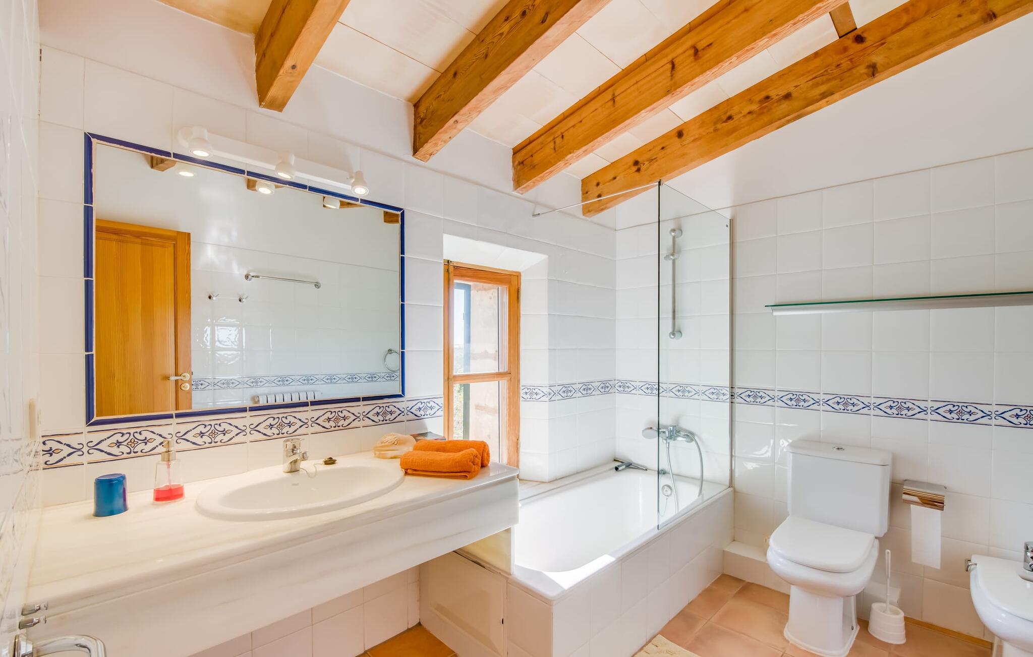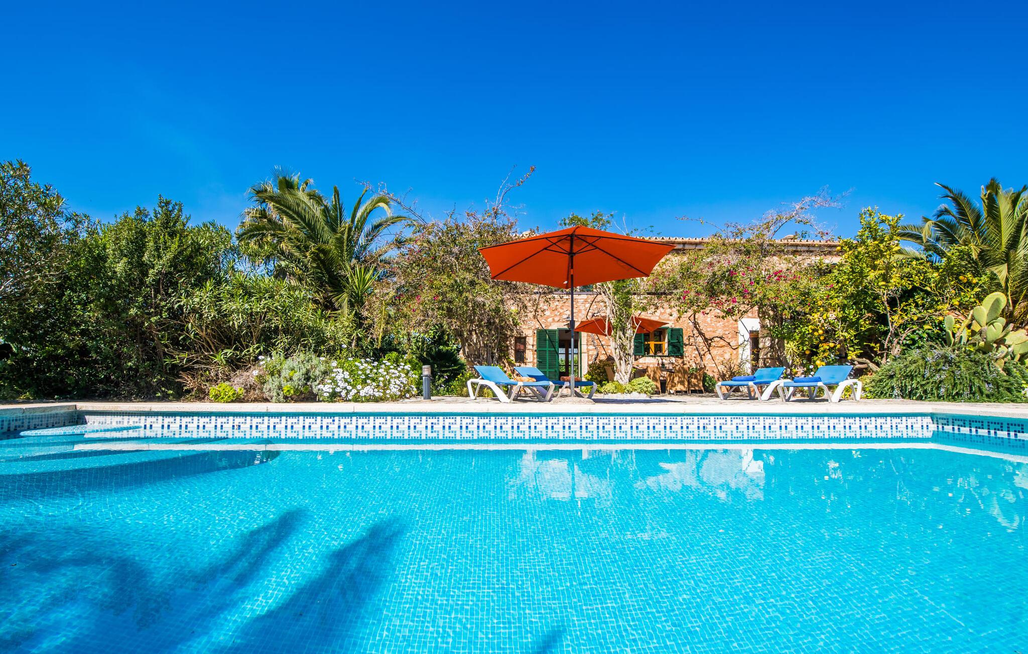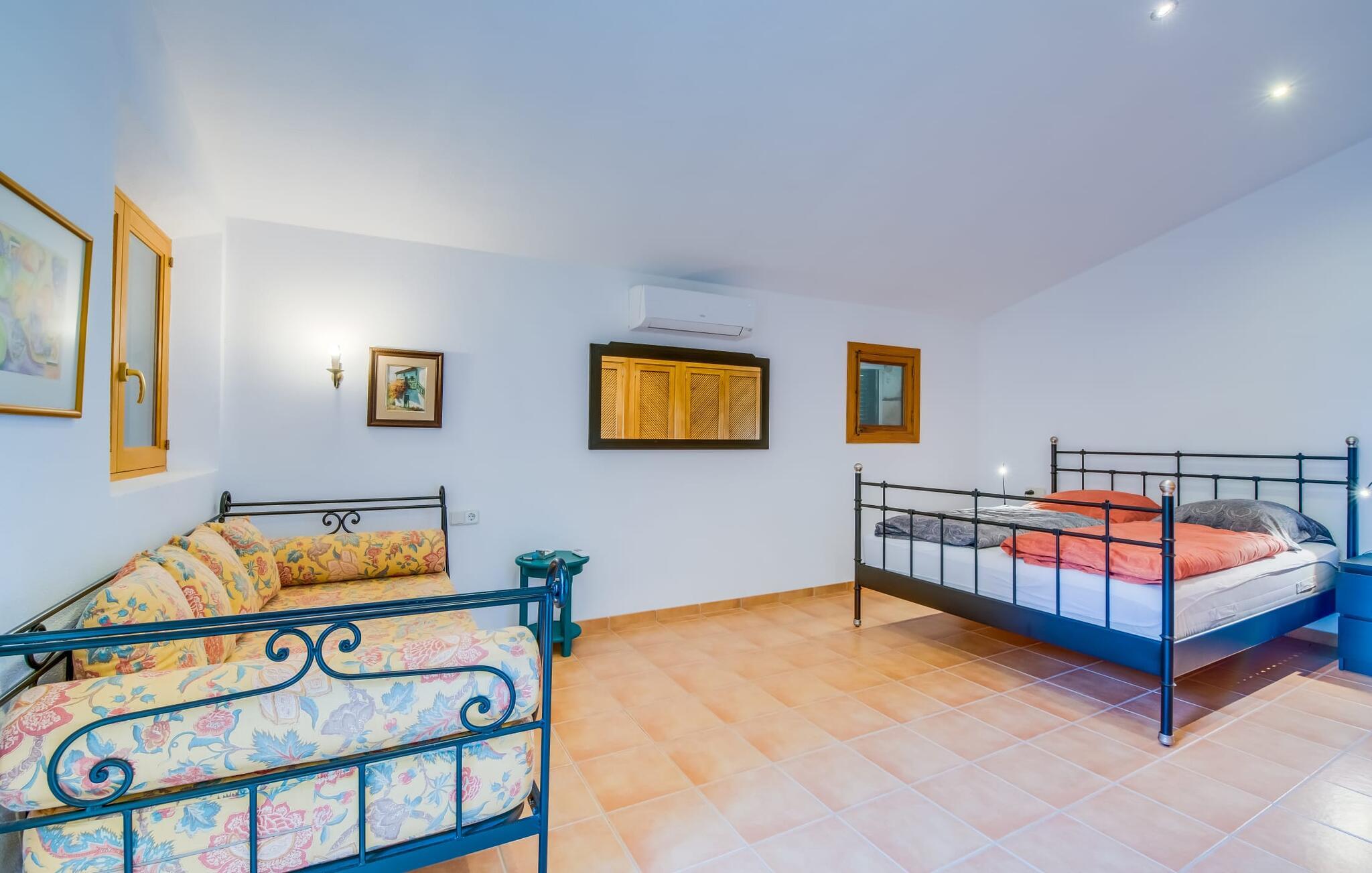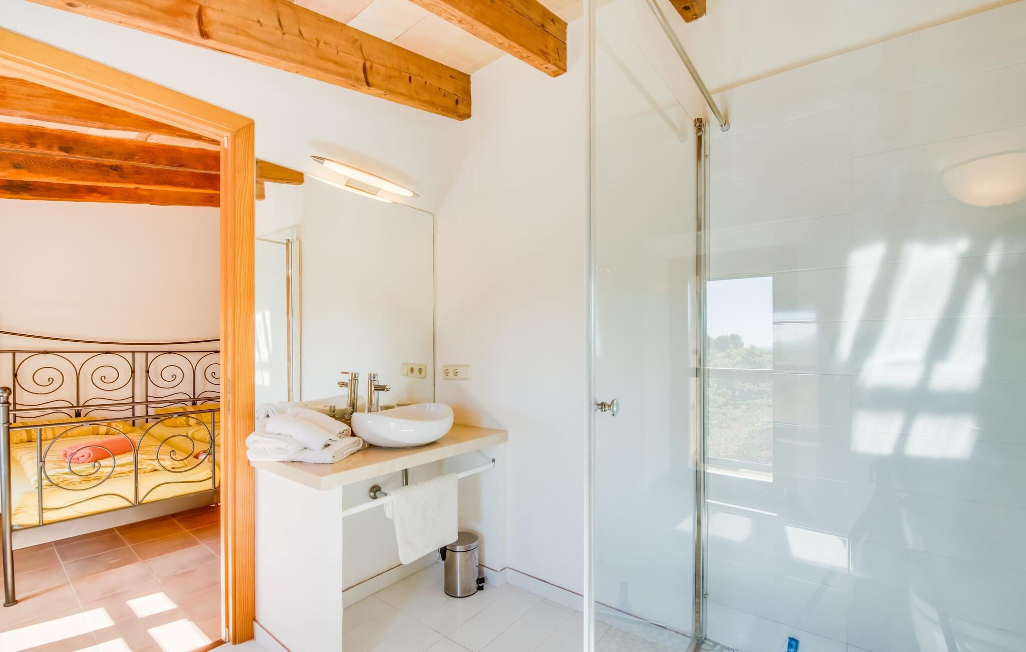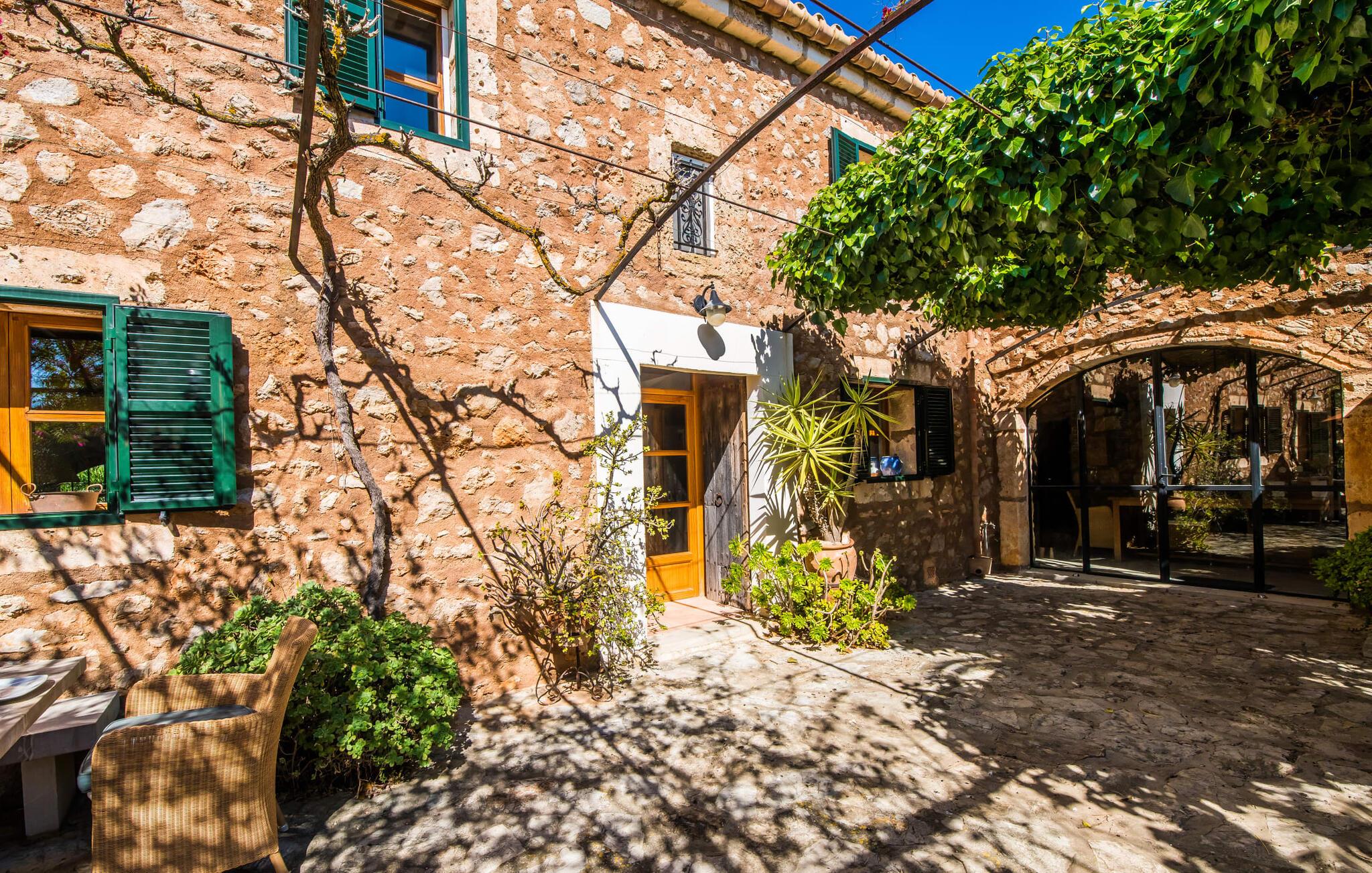 Citrontræer, palmer, kaktusser - "Son Pi" er omgivet af en vidunderligt fortryllende have, der næsten ikke kunne være mere naturlig og rustik. Ejendommen har ikke kun smukke planter, det omkringliggende område er også præget af frodig vegetation. Dette rundes af af det ru stengulv, som passer så vidunderligt ind i billedet, og selvfølgelig af selve villaen, der emmer af ren ro med sine grønne skodder. I kan finde siddepladser i delvis skygge af den tilgroede pergola, på komfortable rattanmøbler eller på den overdækkede terrasse foran huset. Hvis I ønsker det, kan I varme murstensgrillen op eller forkæle jer selv med en forfriskende svømmetur i den højkvalitets flisebelagte, velholdte pool - I kommer nemt ind via få trin. Der er også en udendørs bruser lige ved siden af poolen. Liggestole, mobile parasoller, masser af privatliv - I har alt hvad I behøver til en afslappende dag under den behagelige ø-sol. Praktisk for jeres ankomst: En asfalteret vej fører direkte til villaen og tilbyder plads til parkering. Interiøret er ikke mindre charmerende. Fuldstændig nyrenoveret, oprindeligt indrettet med stor sans for detaljer. Alt I skal gøre er at pakke jeres kufferter ud, og I vil føle jer afslappet. Masser af naturlige elementer, masser af træbjælker og stenvægge, plus varme farver og masser af naturligt lys. Den hyggelige stue/spisestue imponerer med sin smukke siddegruppe og store bord, men har også en pejs, der varmer jeres fødder på køligere aftener. Fra den anden ende af rummet kommer I ind i køkkenet, som er udstyret med mange praktiske faciliteter. Så smukt: den separate spisestue med en stor glasvæg og udsigt til haven. Et godt sted at afslutte dagen om aftenen med et knitrende bål. "Son Pi" har i alt tre dobbeltværelser, hvoraf to er ovenpå og har eget badeværelse og udsigt til havet i det fjerne. Alle værelser er venlige og komfortabelt indrettede, så intet står i vejen for en god nats søvn. Den østlige del af øen er præget af bølgende bakker, grøn vegetation og landlige vidder. Udover skøn fred og smukke gåture kan I også nyde nærheden til mange interessante byer og drømmestrande. Porto Cristo, den lille havn og fiskerlandsby med sit hvide sand og smukke strandpromenade, ligger 20 minutter væk i bil. "Son Pi" ligger på en lille gade, hvilket betyder, at der kan høres en del trafikstøj afhængig af vindretningen. Det positive er dog den næsten perfekte forbindelse til motorvej MA-15 og alle retninger på øen. Aktive rejsende vil måske tage til Pula Golfbane eller besøge en af de mange grotter i denne region, som bestemt er et besøg værd. Den charmerende villa "Son Pi" ligger i den smukke østlige del af øen, lige uden for Sant Llorenç des Cardassar. Udover gode restauranter og små butikker, finder I også nogle supermarkeder i byen til jeres ugentlige indkøb. Frisk frugt og grønt kan købes på det ugentlige marked i Son Servera, som kun ligger et kvarter væk i bil. Fantastisk: de smukke strande i Porto Cristo og Sa Coma er også kun 13 km væk.