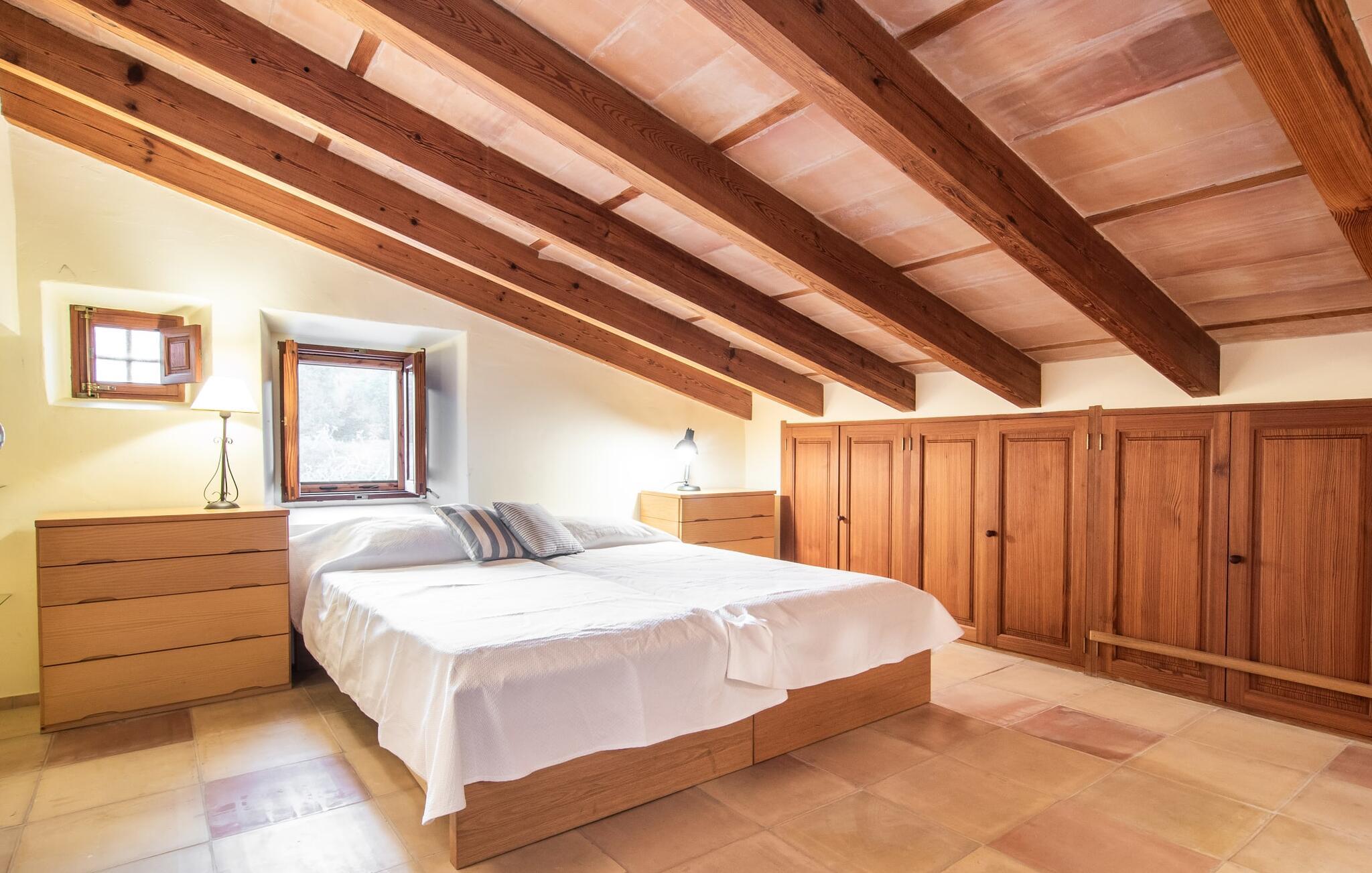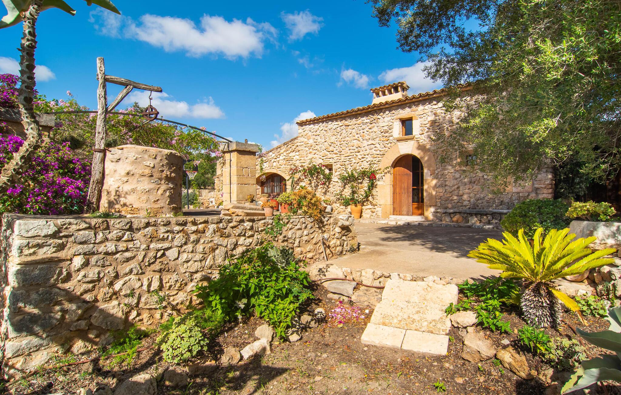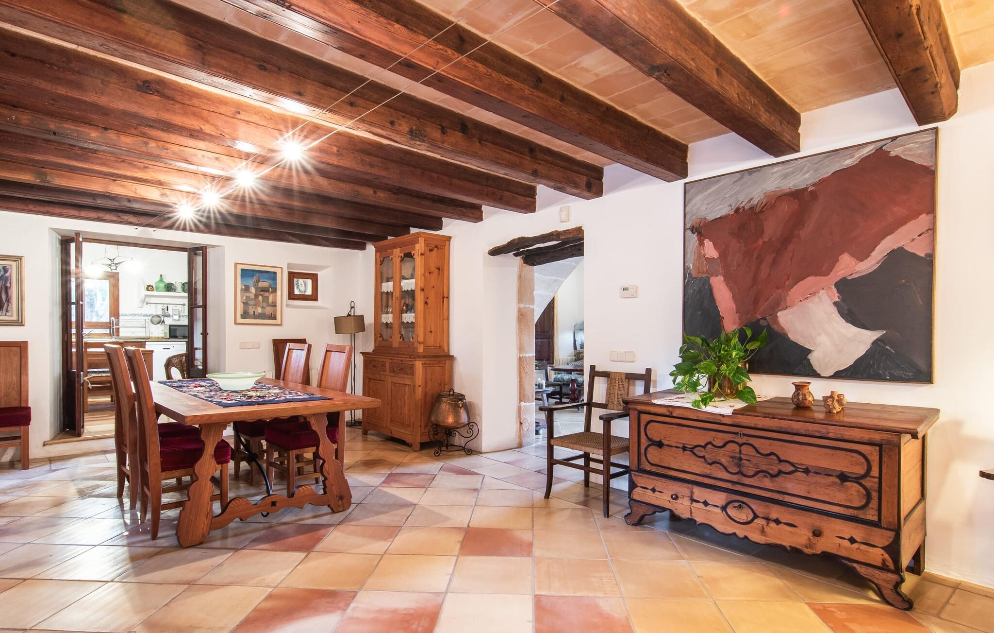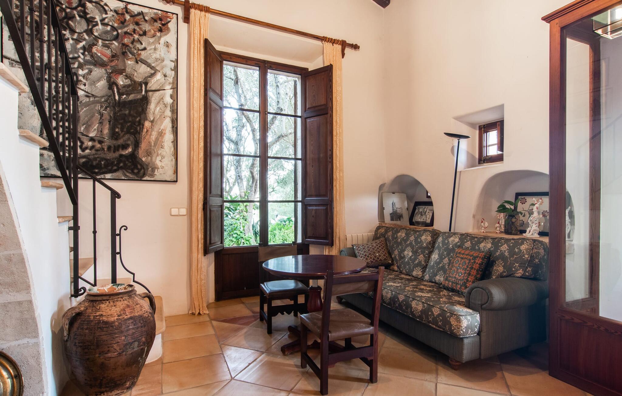 Den historiske bondegård "Son Poca Palla" er et perfekt eksempel på en ferie i mallorcansk stil. Det er omgivet af en uberørt have fuld af majestætiske frugt- og oliventræer og magien ved middelhavsblomstrende planter. Børn vil finde masser af muligheder for at lege på ejendommen (der er også en basketballkurv). Voksne kan slappe af i fred og nyde deres ferie på en traditionel mallorcansk finca. Den fantastiske saltvandspool i infinity-stil tilbyder vidunderlig udsigt over haven og landskabet. Bagefter kan I solbade i komfortable liggestole. En udendørs bruser og toilet er til rådighed. Udover yderligere udendørs siddepladser på landet er det overdækkede udekøkken med grill, kogefaciliteter og hyggelig spiseplads endnu et højdepunkt i dette førsteklasses feriehus tæt på naturen. Indretningen kombinerer rustik mallorcansk flair med moderne boligkomfort. Med solide træbjælker og let vinklede rum kan I nyde en hyggelig feriefølelse i en indbydende atmosfære. Møblerne består af antikke møbler, der er blevet smukt kombineret med moderne boligtilbehør. Det gælder også den store pejsestue og spisepladsen. Pejseområdet med en murstensbænk ved siden af det fuldt udstyrede køkken er særligt rustikt - et vidunderligt sted at slappe af i den køligere sæson. På øverste etage, ved siden af det tredje soveværelse, finder I det perfekte arbejdsområde og kan være særligt aktiv på hjemmekontoret. Alle værelser har aircondition og udstyret med to enkeltsenge eller en dobbeltseng. En særlig luksus ved dette charmerende feriehus: hvert soveværelse har sit eget badeværelse. Så intet står i vejen for en drømmeferie med op til seks personer – absolut familievenligt. Velkommen til "Søn Poca Palla". Det antikke bondehus "Son Poca Palla" imponerer med en rustik have med et fantastisk udendørs køkken, en infinity-pool og et moderne interiør. Den absolut rolige ejendom er beliggende i den østlige del af Mallorca, cirka fem minutters kørsel fra den veludviklede landsby Sant Llorenç, hvor I kan gøre jeres indkøb. De smukke strande i øst, herunder Cala Petita eller Cala Varques, er omkring 15-20 minutter væk i bil.