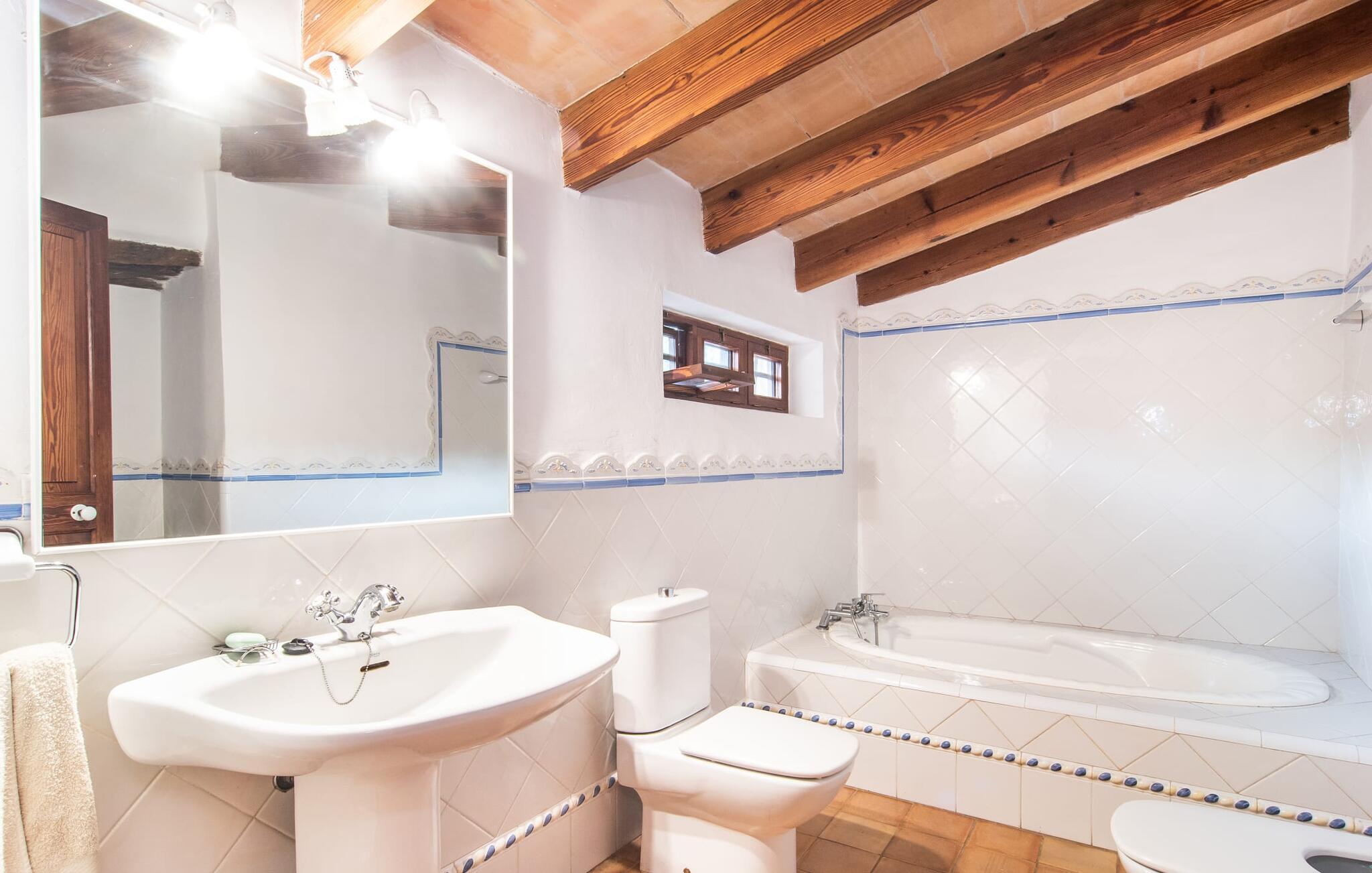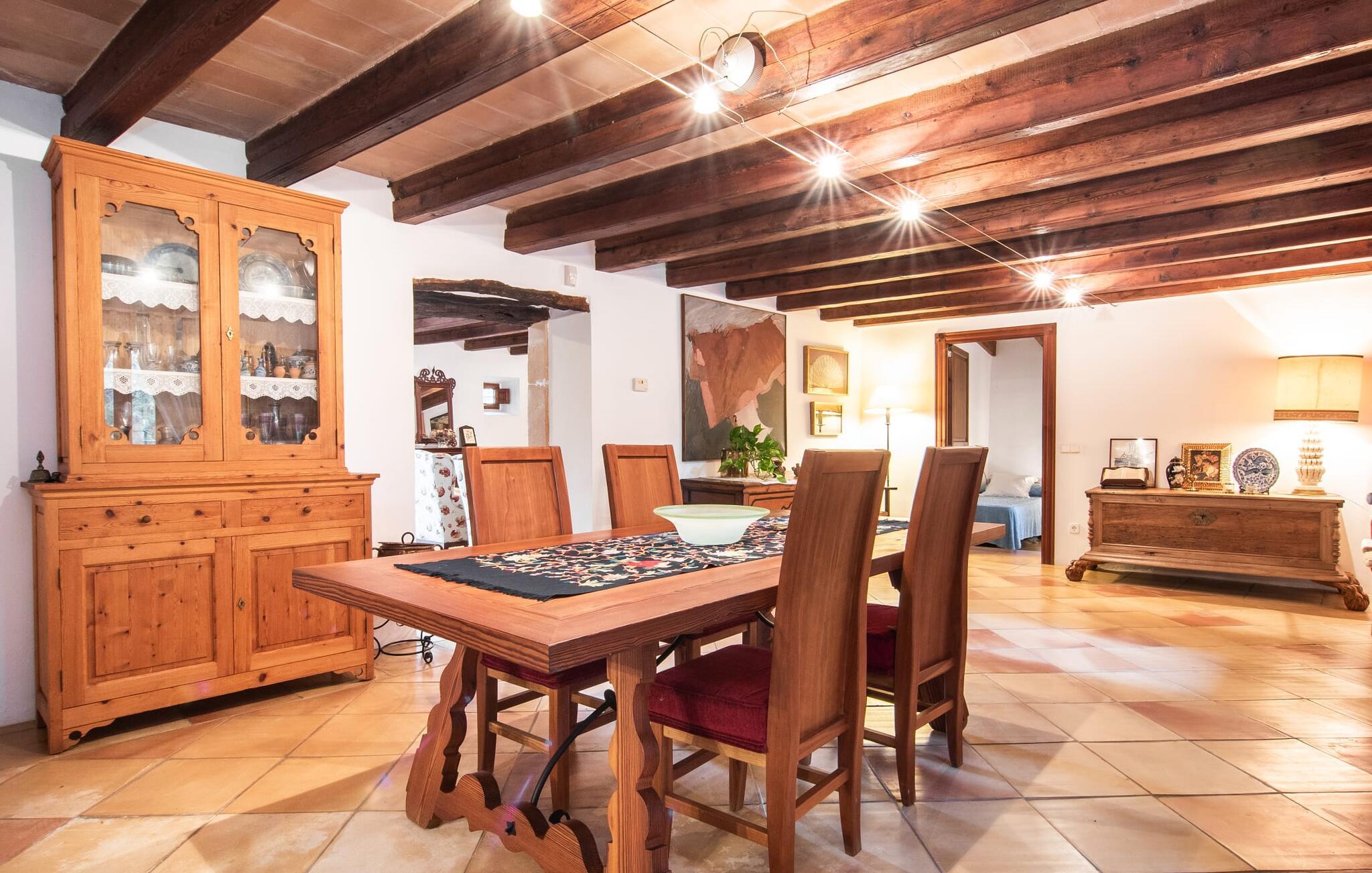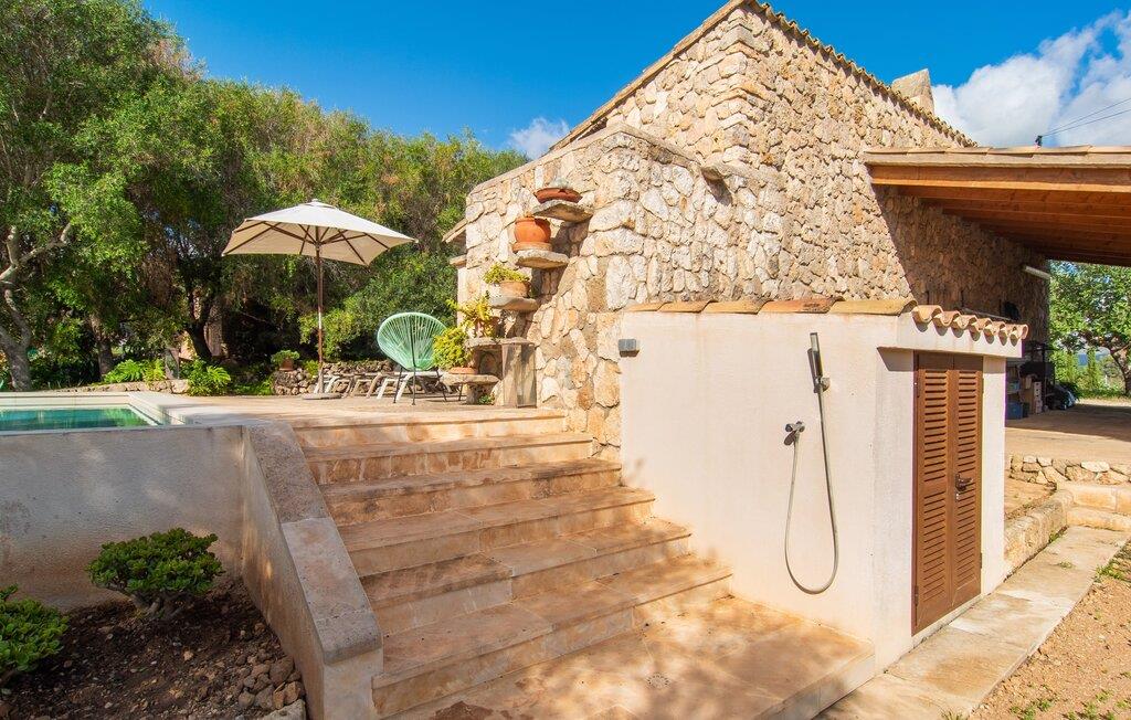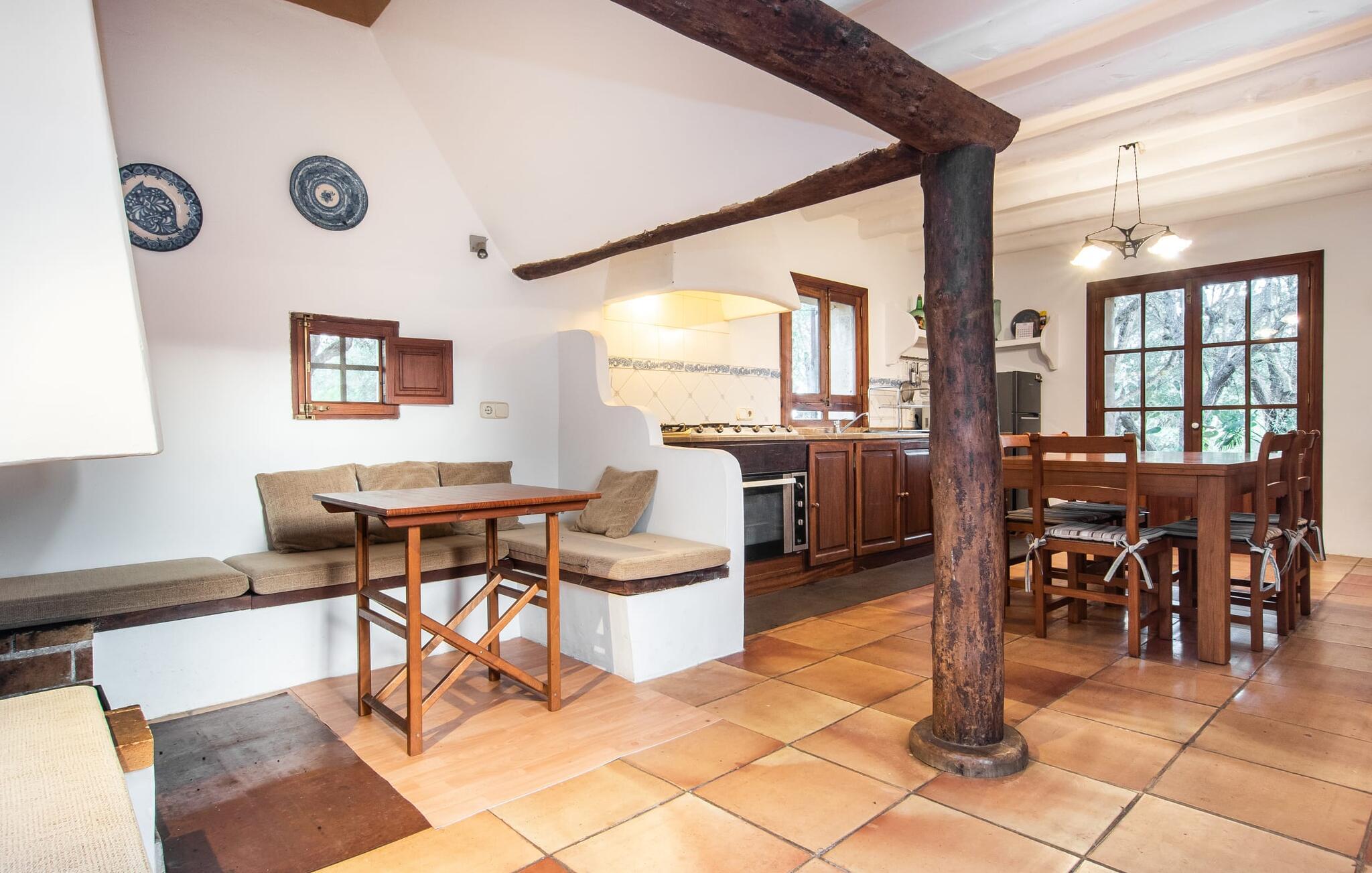 Den historiske bondegård "Son Poca Palla" er et perfekt eksempel på en ferie i mallorcansk stil. Det er omgivet af en uberørt have fuld af majestætiske frugt- og oliventræer og magien ved middelhavsblomstrende planter. Børn vil finde masser af muligheder for at lege på ejendommen (der er også en basketballkurv). Voksne kan slappe af i fred og nyde deres ferie på en traditionel mallorcansk finca. Den fantastiske saltvandspool i infinity-stil tilbyder vidunderlig udsigt over haven og landskabet. Bagefter kan I solbade i komfortable liggestole. En udendørs bruser og toilet er til rådighed. Udover yderligere udendørs siddepladser på landet er det overdækkede udekøkken med grill, kogefaciliteter og hyggelig spiseplads endnu et højdepunkt i dette førsteklasses feriehus tæt på naturen. Indretningen kombinerer rustik mallorcansk flair med moderne boligkomfort. Med solide træbjælker og let vinklede rum kan I nyde en hyggelig feriefølelse i en indbydende atmosfære. Møblerne består af antikke møbler, der er blevet smukt kombineret med moderne boligtilbehør. Det gælder også den store pejsestue og spisepladsen. Pejseområdet med en murstensbænk ved siden af det fuldt udstyrede køkken er særligt rustikt - et vidunderligt sted at slappe af i den køligere sæson. På øverste etage, ved siden af det tredje soveværelse, finder I det perfekte arbejdsområde og kan være særligt aktiv på hjemmekontoret. Alle værelser har aircondition og udstyret med to enkeltsenge eller en dobbeltseng. En særlig luksus ved dette charmerende feriehus: hvert soveværelse har sit eget badeværelse. Så intet står i vejen for en drømmeferie med op til seks personer – absolut familievenligt. Velkommen til "Søn Poca Palla". Det antikke bondehus "Son Poca Palla" imponerer med en rustik have med et fantastisk udendørs køkken, en infinity-pool og et moderne interiør. Den absolut rolige ejendom er beliggende i den østlige del af Mallorca, cirka fem minutters kørsel fra den veludviklede landsby Sant Llorenç, hvor I kan gøre jeres indkøb. De smukke strande i øst, herunder Cala Petita eller Cala Varques, er omkring 15-20 minutter væk i bil.