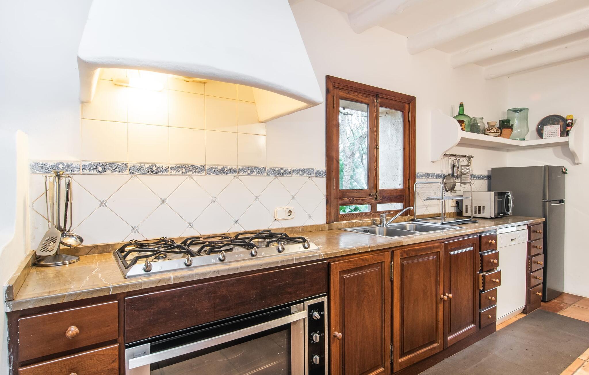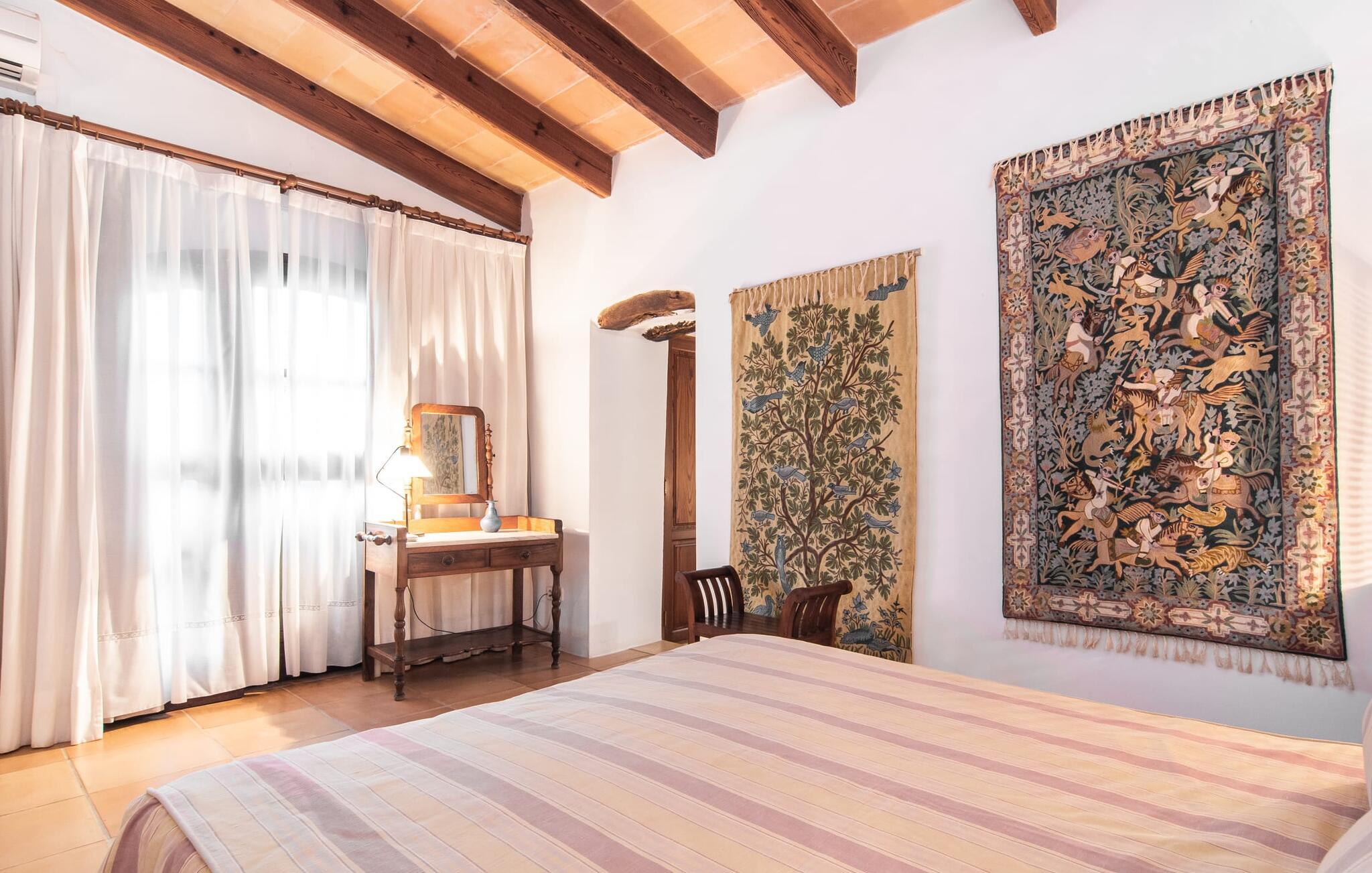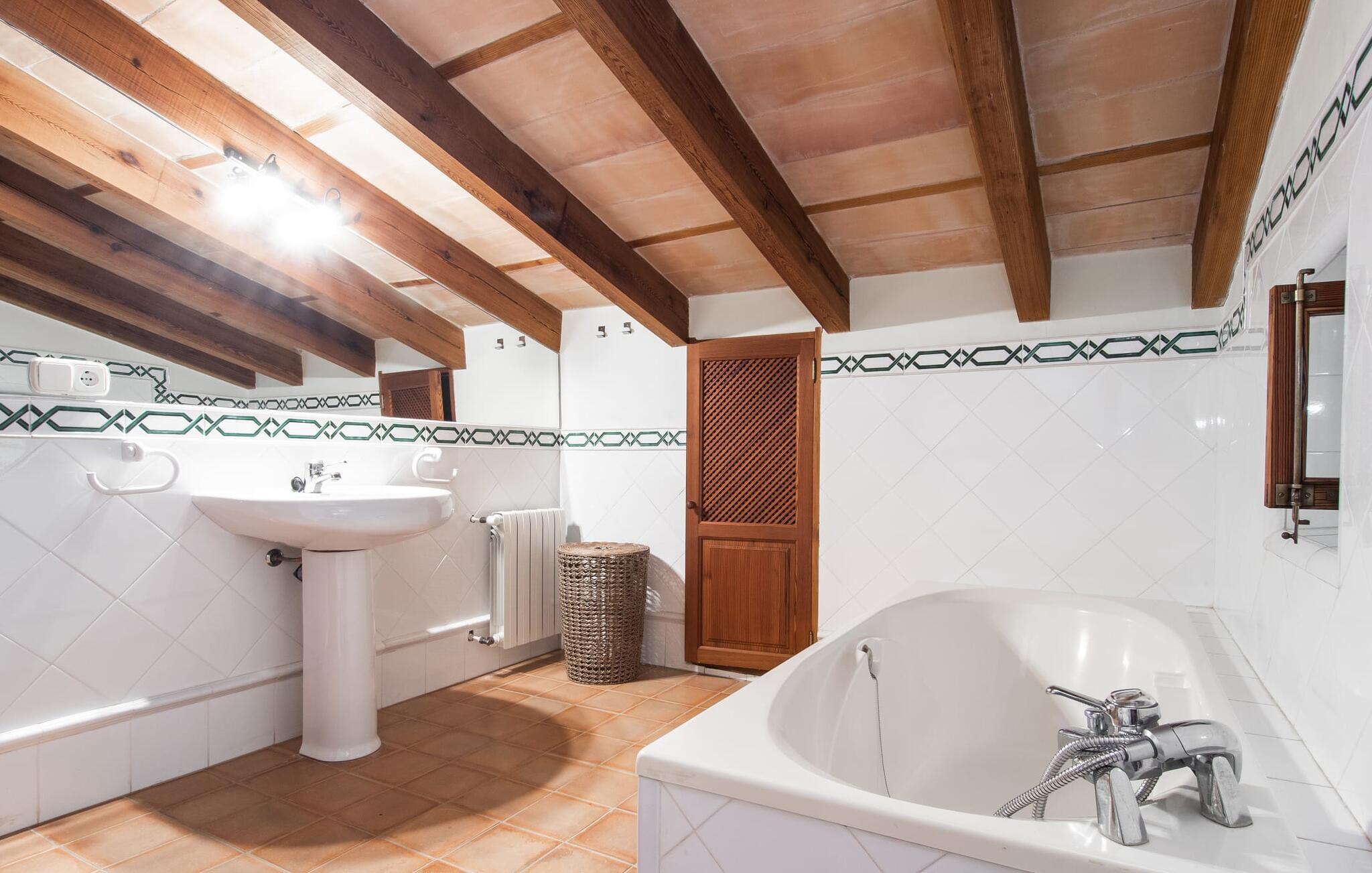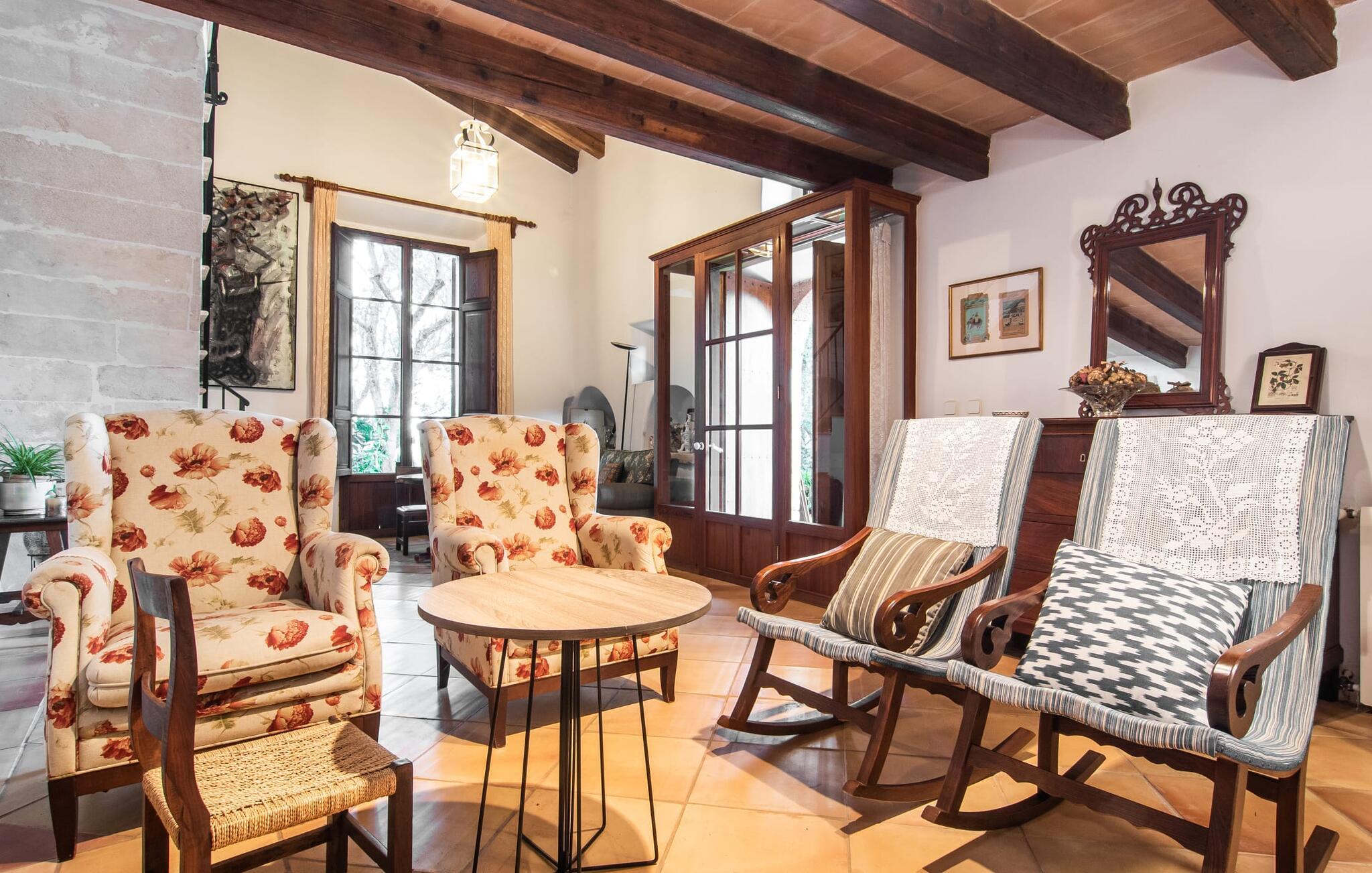 Den historiske bondegård "Son Poca Palla" er et perfekt eksempel på en ferie i mallorcansk stil. Det er omgivet af en uberørt have fuld af majestætiske frugt- og oliventræer og magien ved middelhavsblomstrende planter. Børn vil finde masser af muligheder for at lege på ejendommen (der er også en basketballkurv). Voksne kan slappe af i fred og nyde deres ferie på en traditionel mallorcansk finca. Den fantastiske saltvandspool i infinity-stil tilbyder vidunderlig udsigt over haven og landskabet. Bagefter kan I solbade i komfortable liggestole. En udendørs bruser og toilet er til rådighed. Udover yderligere udendørs siddepladser på landet er det overdækkede udekøkken med grill, kogefaciliteter og hyggelig spiseplads endnu et højdepunkt i dette førsteklasses feriehus tæt på naturen. Indretningen kombinerer rustik mallorcansk flair med moderne boligkomfort. Med solide træbjælker og let vinklede rum kan I nyde en hyggelig feriefølelse i en indbydende atmosfære. Møblerne består af antikke møbler, der er blevet smukt kombineret med moderne boligtilbehør. Det gælder også den store pejsestue og spisepladsen. Pejseområdet med en murstensbænk ved siden af det fuldt udstyrede køkken er særligt rustikt - et vidunderligt sted at slappe af i den køligere sæson. På øverste etage, ved siden af det tredje soveværelse, finder I det perfekte arbejdsområde og kan være særligt aktiv på hjemmekontoret. Alle værelser har aircondition og udstyret med to enkeltsenge eller en dobbeltseng. En særlig luksus ved dette charmerende feriehus: hvert soveværelse har sit eget badeværelse. Så intet står i vejen for en drømmeferie med op til seks personer – absolut familievenligt. Velkommen til "Søn Poca Palla". Det antikke bondehus "Son Poca Palla" imponerer med en rustik have med et fantastisk udendørs køkken, en infinity-pool og et moderne interiør. Den absolut rolige ejendom er beliggende i den østlige del af Mallorca, cirka fem minutters kørsel fra den veludviklede landsby Sant Llorenç, hvor I kan gøre jeres indkøb. De smukke strande i øst, herunder Cala Petita eller Cala Varques, er omkring 15-20 minutter væk i bil.