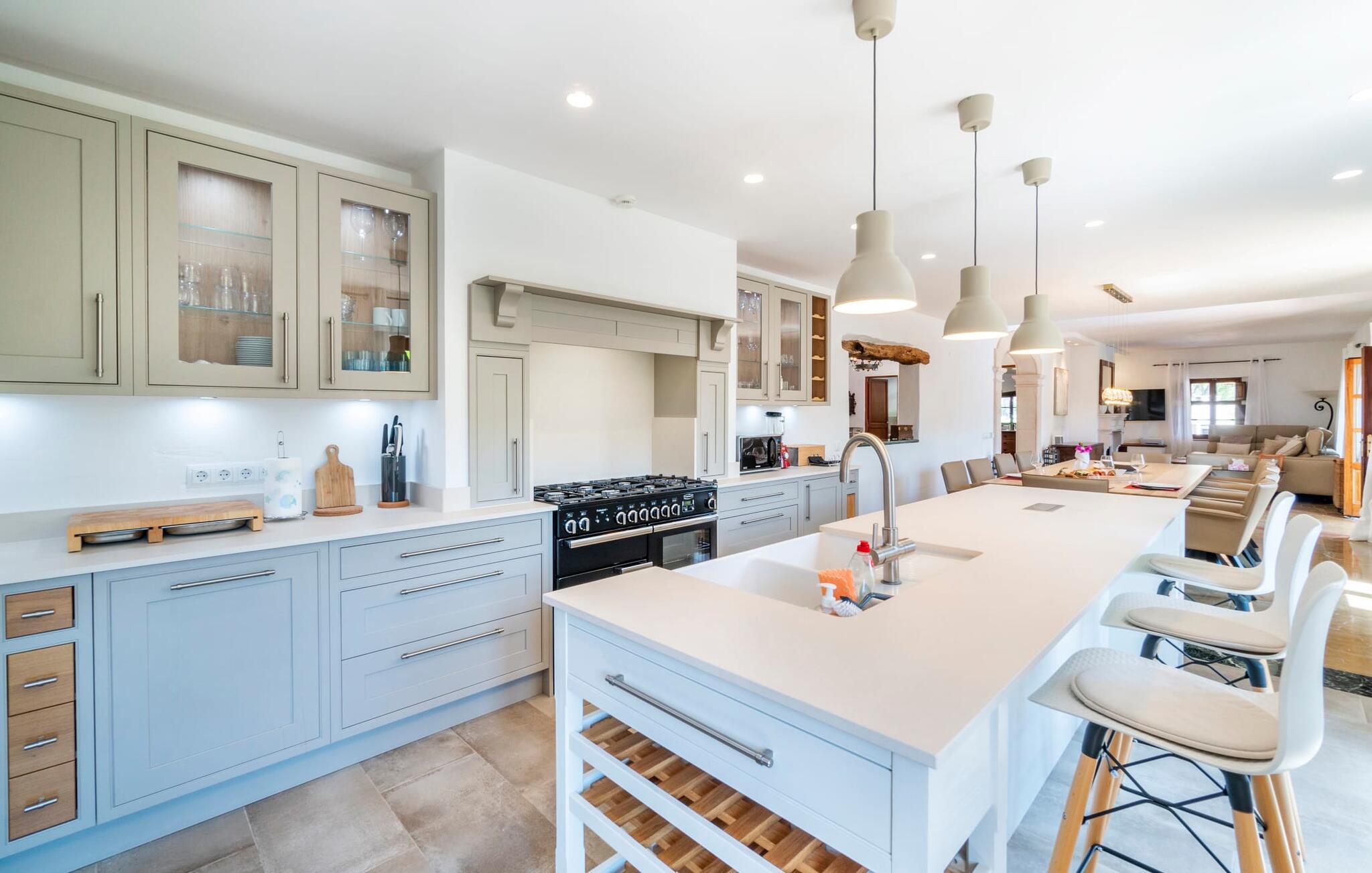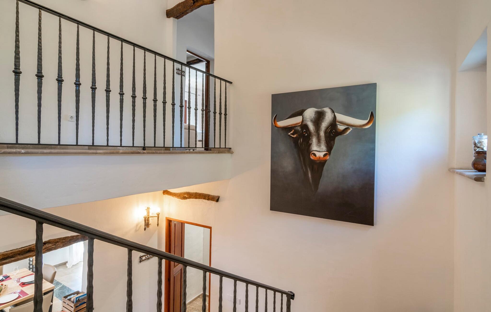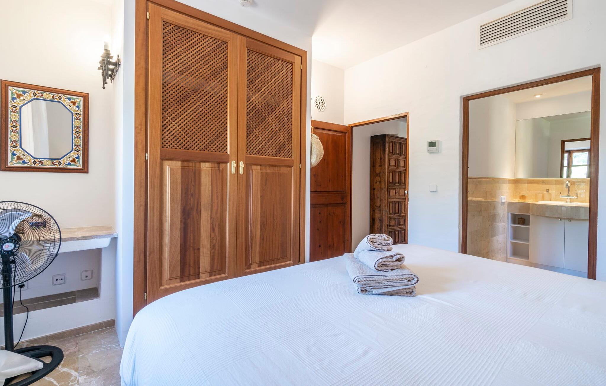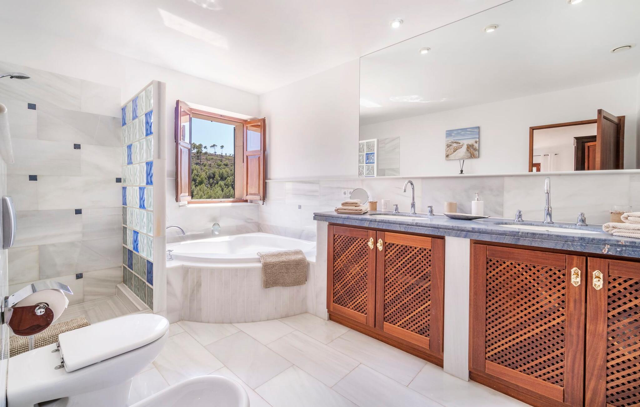 Ankom, sluk, nyd: Dette fristende feriemantra byder jer velkommen til den imponerende villa "Son Pujol de Andratx". Det smukke naturstenshus i to rummelige etager ligger ikke kun på en charmerende bjergskråning, men er også sydvendt og nyder godt af masser af sol og en behagelig ugenert beliggenhed. Det er ikke kun omgivet af forskellige overdækkede og udækkede indbydende terrassearealer, men tiltrækker også med endnu en terrasse på øverste etage og en kæmpe, alsidigt anlagt ejendom. En del af terrassearealet er udstyret med et spraykølesystem, som køler omgivelsestemperaturen med omkring 10 grader og holder hvepse væk. I kan gå rundt blandt velduftende rosmarin- og lavendelbuske, små oliventræer og palmer, men der er også plads til, at børn kan lege på plænerne. For sportsentusiaster er der et udendørs bordtennisbord, en pull-up bar og en boulebane i strandsandet. Hist og her er der skabt smukke hjørner til afslapning, for eksempel stilfulde liggestole eller en daybed med gardiner, der svajer romantisk i vinden - simpelthen fantastisk! Det gælder også infinity-poolen lige ved siden af huset, hvorfra man kan tage et kig på den omkringliggende natur. I kan nyde en lignende udsigt fra det ekstra lange spisebord på den overdækkede terrasse, som byder på plads nok til alle rejsende. Silbermühlen-grillen i det fuldt udstyrede udendørs stenkøkken tilbyder de bedste betingelser for kulinariske aftener af høj kvalitet i det fri. Storslåede stengulve, hvide vægge, flotte detaljer som gamle bjælker, glitrende lysekroner og elegante søjler – indretningen af jeres sommerhus er et sandt blikfang. "Son Pujol de Andratx" er blevet møbleret og dekoreret med stor smag, men også en god følelse af komfort. Værelserne er rummelige og lyse, det imponerende indgangsparti byder jer velkommen i stueetagen. Lad os derefter gå videre til et enkelt åbent rum, der rummer opholds- og spiseområderne samt køkkenet. Mens en stor sofa med afslapningsfunktion i stuen indbyder til at putte sig foran pejsen, er der et langt træbord i spisestuen til en overdådig middag. I kan tilberede de lækkerier, I vil servere, i køkkenet lige ved siden af. Hobbykokke vil blive begejstrede for pladsen og de absolut højkvalitets apparater. Når det er tid til søde drømme, kan I trække jer tilbage til et af de fem stilfulde soveværelser, hver med et smart en-suite badeværelse, pengeskab og aircondition. Det bakkede og skovklædte landskab omkring jeres ejendom er særdeles velegnet til lange gå- eller vandreture, da det er et af de smukkeste områder i den sydvestlige del af øen. Andratx er ca. 3,9 km væk med udlejningsbil. Den traditionelle by, populær som eksklusivt boligområde, ligger i Tramuntana-bjergenes dal og er bestemt et besøg værd. Med sine smalle gader og autentiske mallorcanske bybilleder giver Andratx ikke kun inspiration til mange kunstnere og forfattere, men tiltrækker også et internationalt publikum. Ud over de smukke kirker Santa Maria de Andratx og s'Arracó og Castel de Son Mas, som nu bruges som rådhus, bør I også kigge forbi kulturcentret CCA Andratx, hvor moderne kunst er udstillet. For en dag på stranden kan I for eksempel tage til Platja de Sant Elm, kun 10 km væk. Takket være dets fine sand og let skrånende kyst er den særlig populær blandt familier med små børn. Stranden byder også på god infrastruktur og en promenade til slentreture. "Son Pujol de Andratx" er en villadrøm, der går i opfyldelse: et betagende, stort naturstenshus, bygget i en fantastisk sydvendt beliggenhed, afsondret beliggenhed på en skråning, på en kæmpe ejendom med en fortryllende have, kun 3,9 km fra Andratx . Bag huset kan I forvente ikke kun overdækkede og solrige terrasseområder, men også en fantastisk infinity-pool, hvorfra I kan nyde en imponerende udsigt over den omkringliggende natur. Stranden i Platja de Sant Elm ligger kun 10 km væk i bil. Bemærk venligst, at denne ejendom ikke accepterer ungdomsgrupper eller polterabender. En ungdomsgruppe på denne ejendom består af personer under 30 år. Book ikke denne ejendom, hvis I er en ungdomsgruppe eller en polterabendgruppe, da jeres reservation vil blive afvist, når den er booket, hvilket også kan være tilfældet ved ankomst til ejendommen eller under jeres ophold, og I vil ikke modtage en refusion.