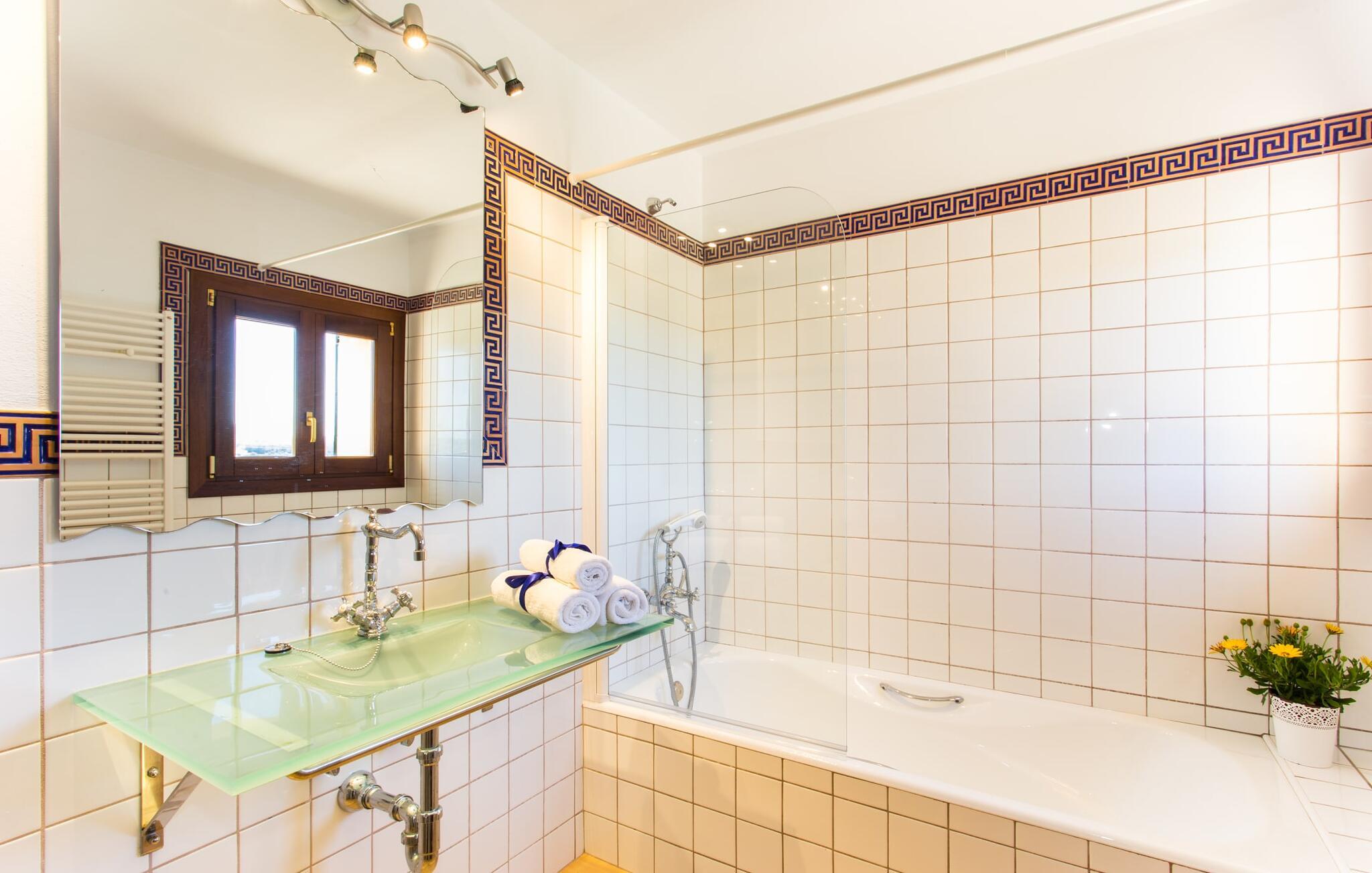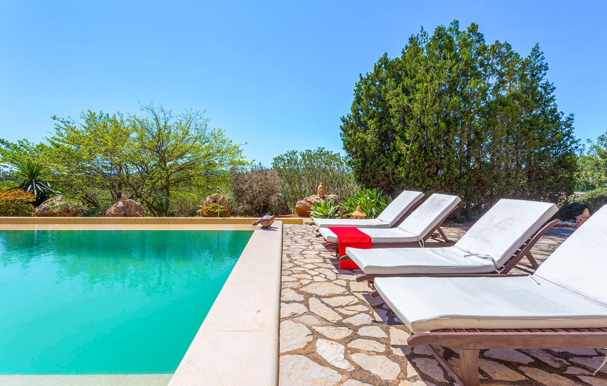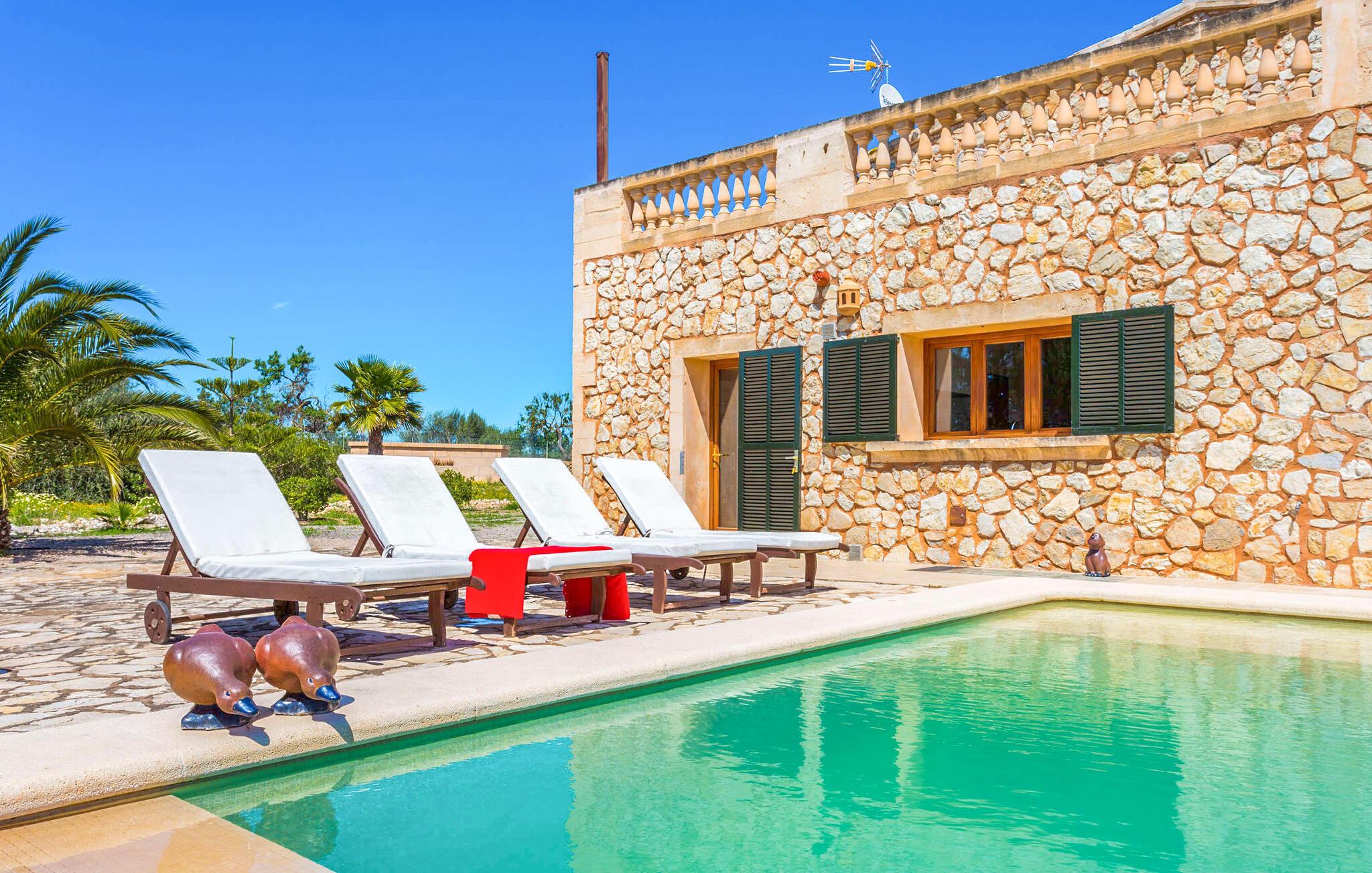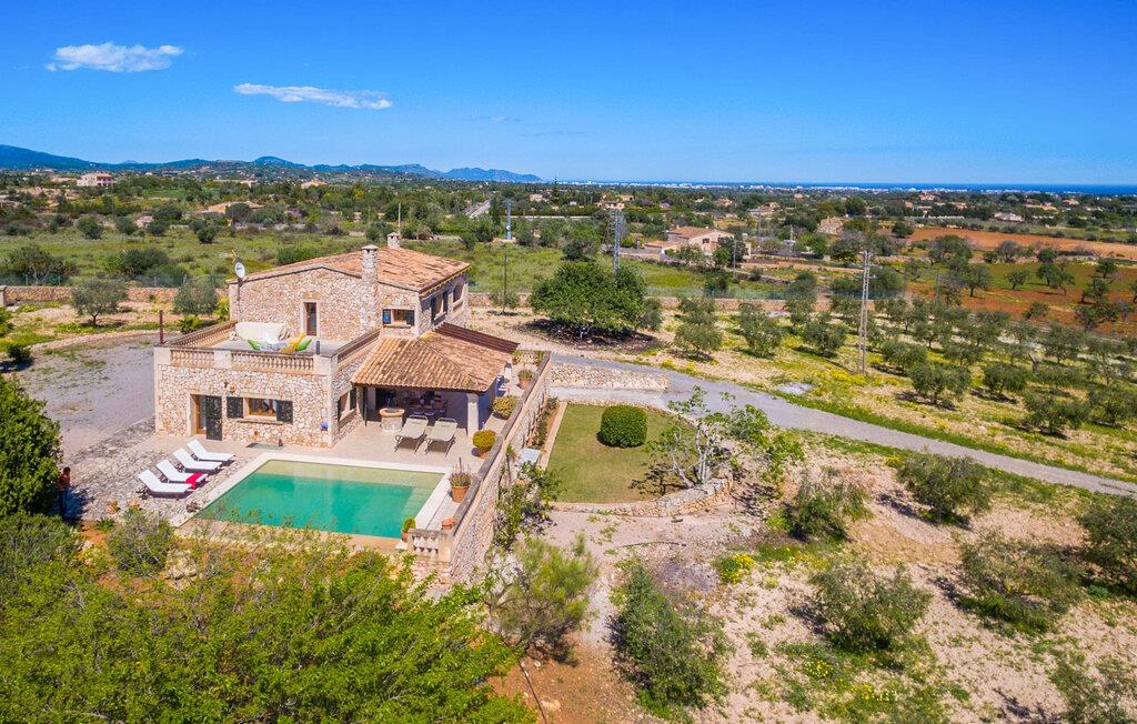 Det moderne feriehus "Son Ropit" med en smuk stenfacade har en høj beliggenhed på en lille bakke i det landlige lavland nær Mallorcas østkyst. Huset, poolområdet og terrasserne er velsignet med en vidunderlig udsigt over landskabet nær Portocristo og ud til havet. Den rummelige finca til 6 personer er omgivet af velholdt ejendom med den mest typiske vegetation på øen. jeres private indkørsel løber gennem midten og ender i en parkeringsplads til flere biler bag huset. Til siden af huset er der en skøn, forhøjet, sydøstvendt solterrasse. Her indbyder komfortable liggestole og en stor, lavvandet pool til solbadning i timevis. En rummelig overdækket terrasse med en mobil grill er tilgængelig for afslappende lurer og omgængelige måltider i skyggen. I vil nyde dette hyggelige, oplyste sted, især på varme sommernætter. Interiøret i "Son Ropit" er lyst og venligt. Et elegant indgangsparti leder ind til en sommerlig indrettet stue. En bred glasdør giver nem adgang til den overdækkede terrasse. Lige ved siden af: et veludstyret køkken, hvor I kan forfine jeres morgenmad med frisk blandet frugtjuice. Spisepladsen med pejs er integreret i køkkenet. Også i stueetagen er der et komfortabelt soveværelse med dobbeltseng og et separat badeværelse med badekar. Trappen ved indgangen fører op til øverste etage. Det rummer yderligere to soveværelser med dobbeltsenge, hvoraf det ene har udgang til en stor overdækket terrasse med sensationel udsigt. På dette niveau er der også to individuelle badeværelser med badekar og en anden solterrasse med udsigt over poolen. Til selskabelige aftener finder I et godt udvalg af brætspil. Feriehuset ligger cirka 10 minutters kørsel fra Manacor og det livlige feriested Portocristo. Begge byer byder på gode indkøbsmuligheder. De smukke sandstrande i Cala Millor, Cala Mendia, S'Illot og Sa Coma ligger cirka 12 minutter væk i bil.